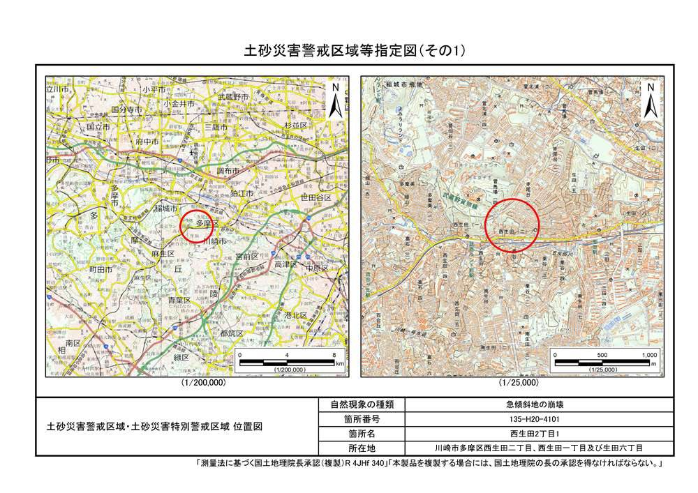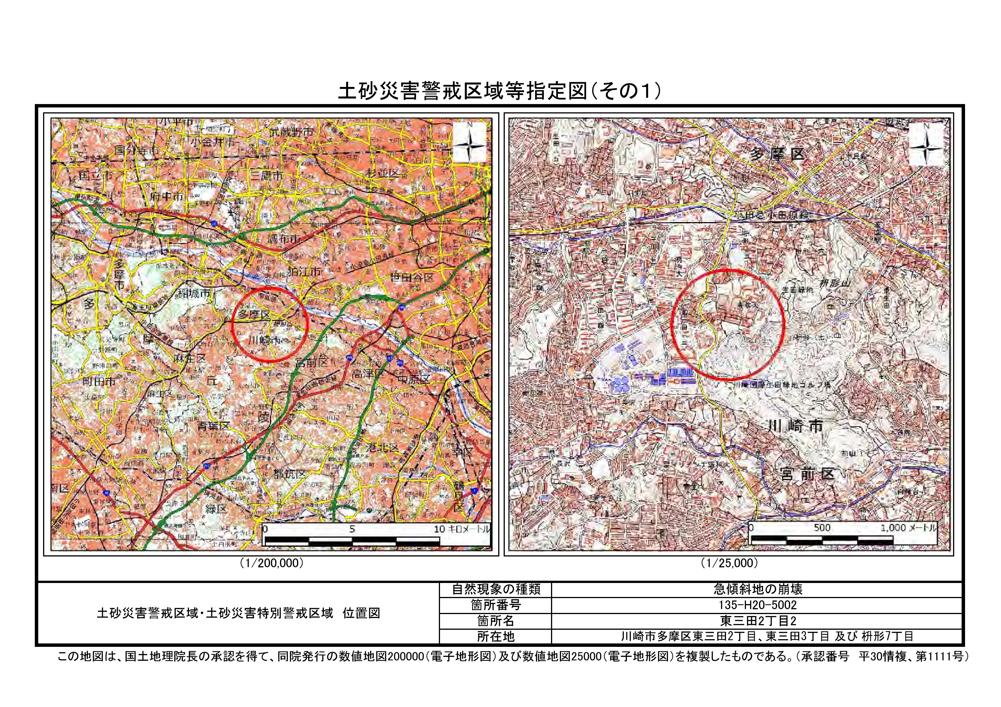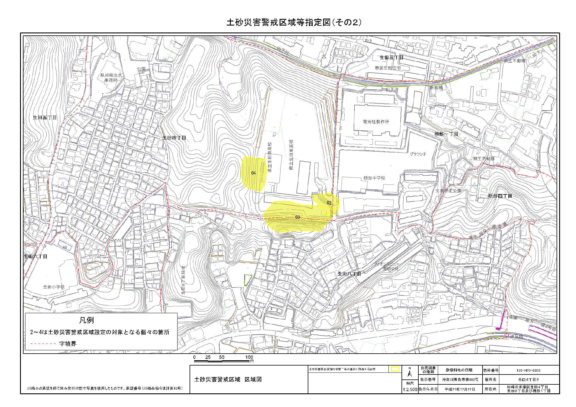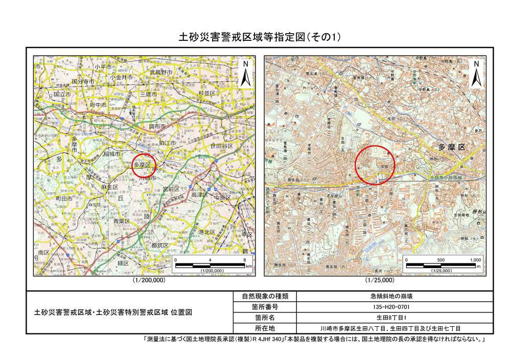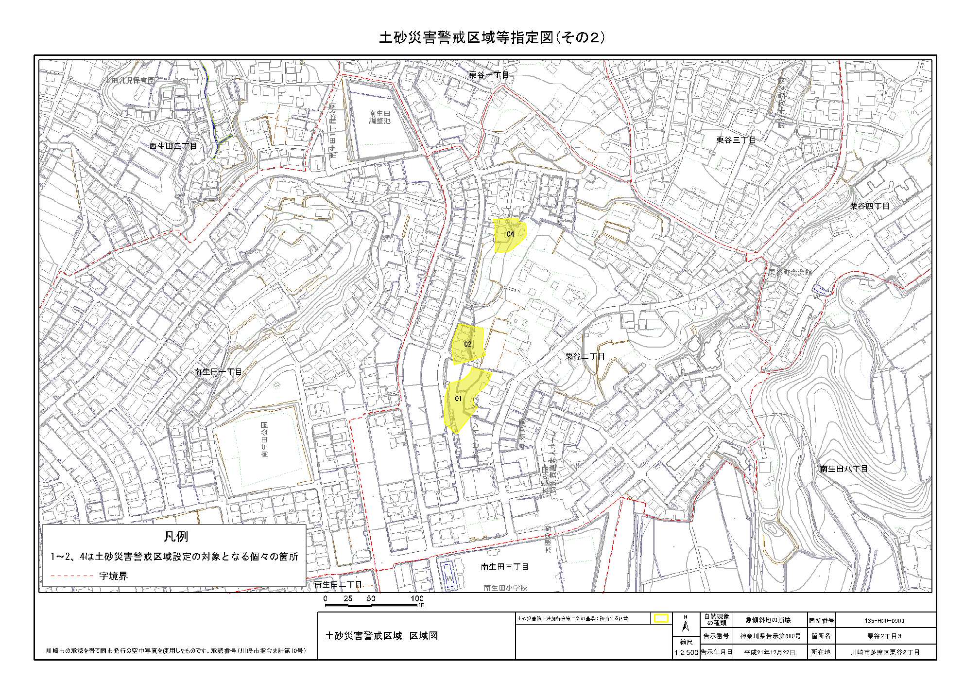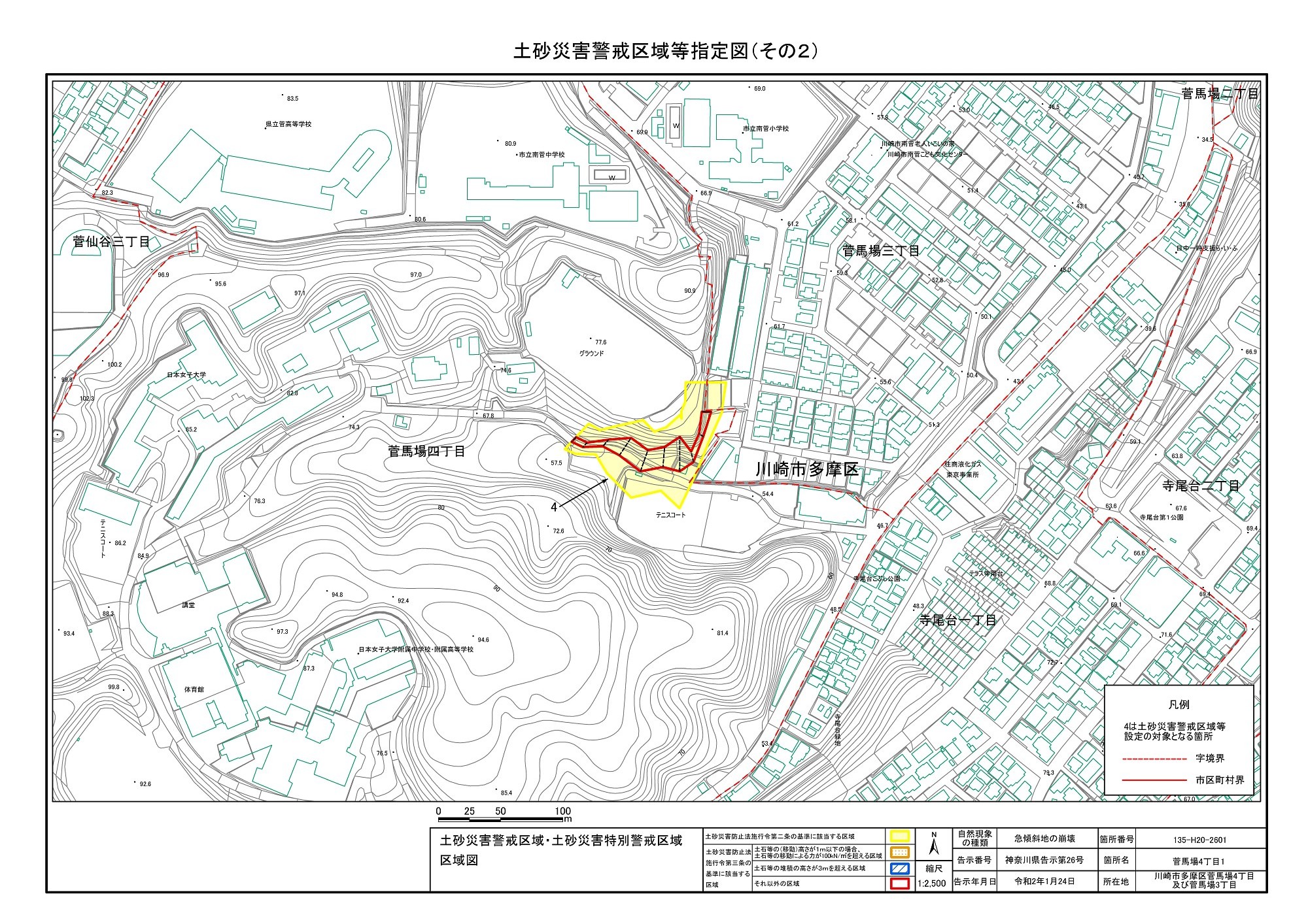 宮前区五所塚1丁目、神木本町1丁目、多摩区長尾2丁目及び長尾3丁目 ※宮前区と多摩区にまたがるため両区に掲載