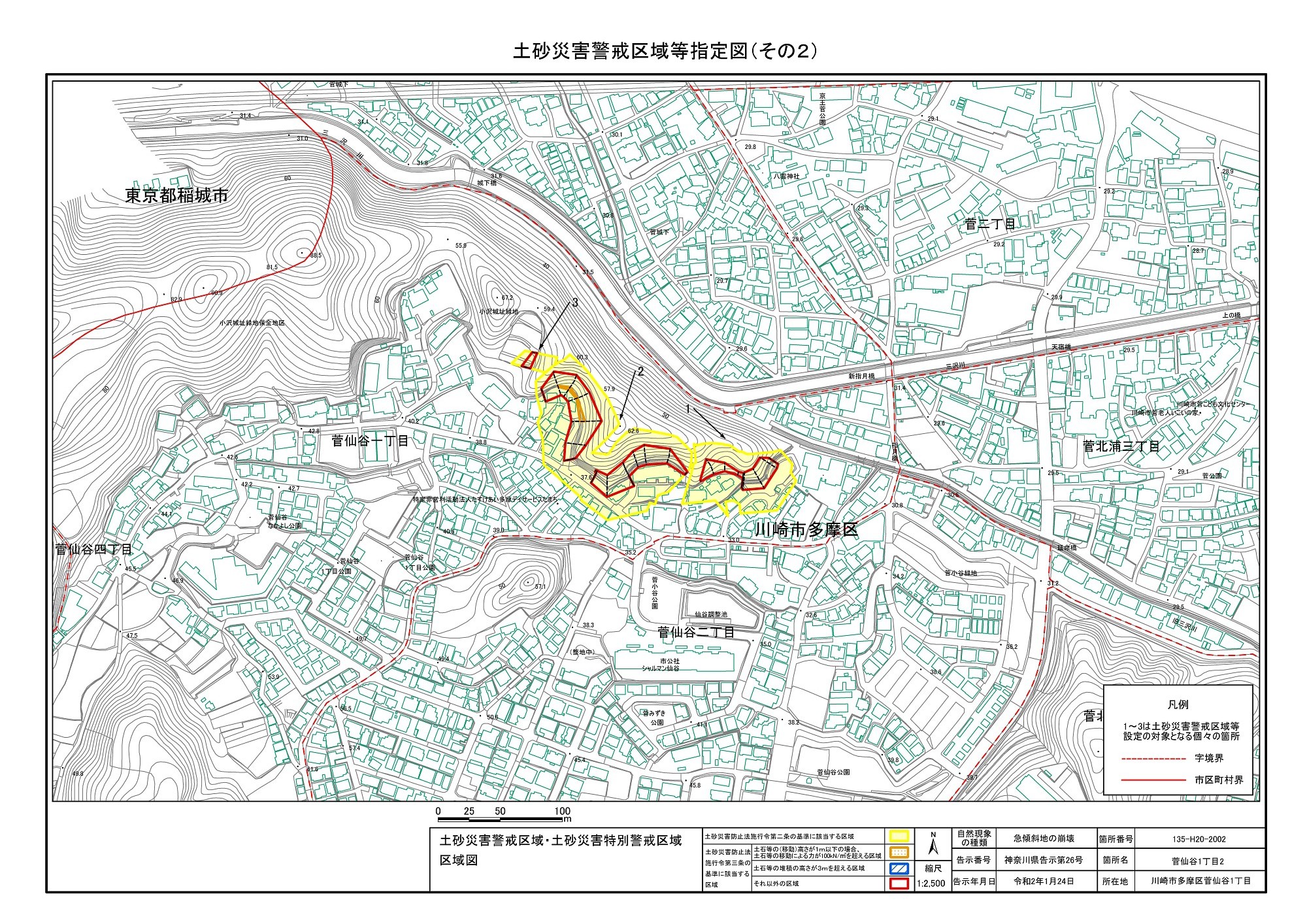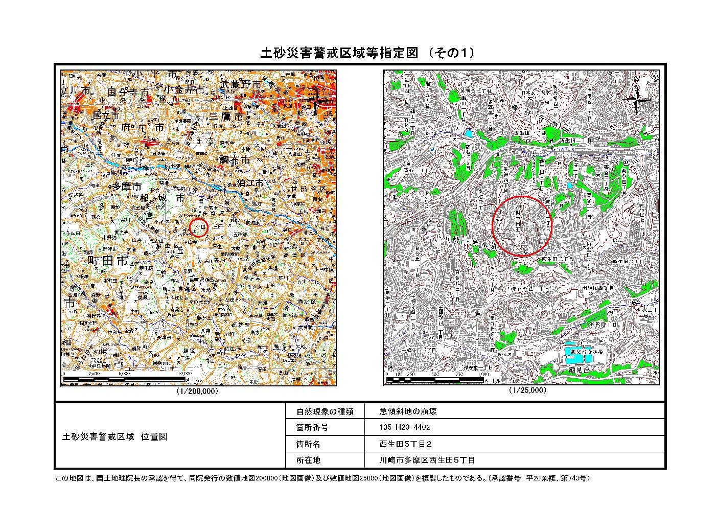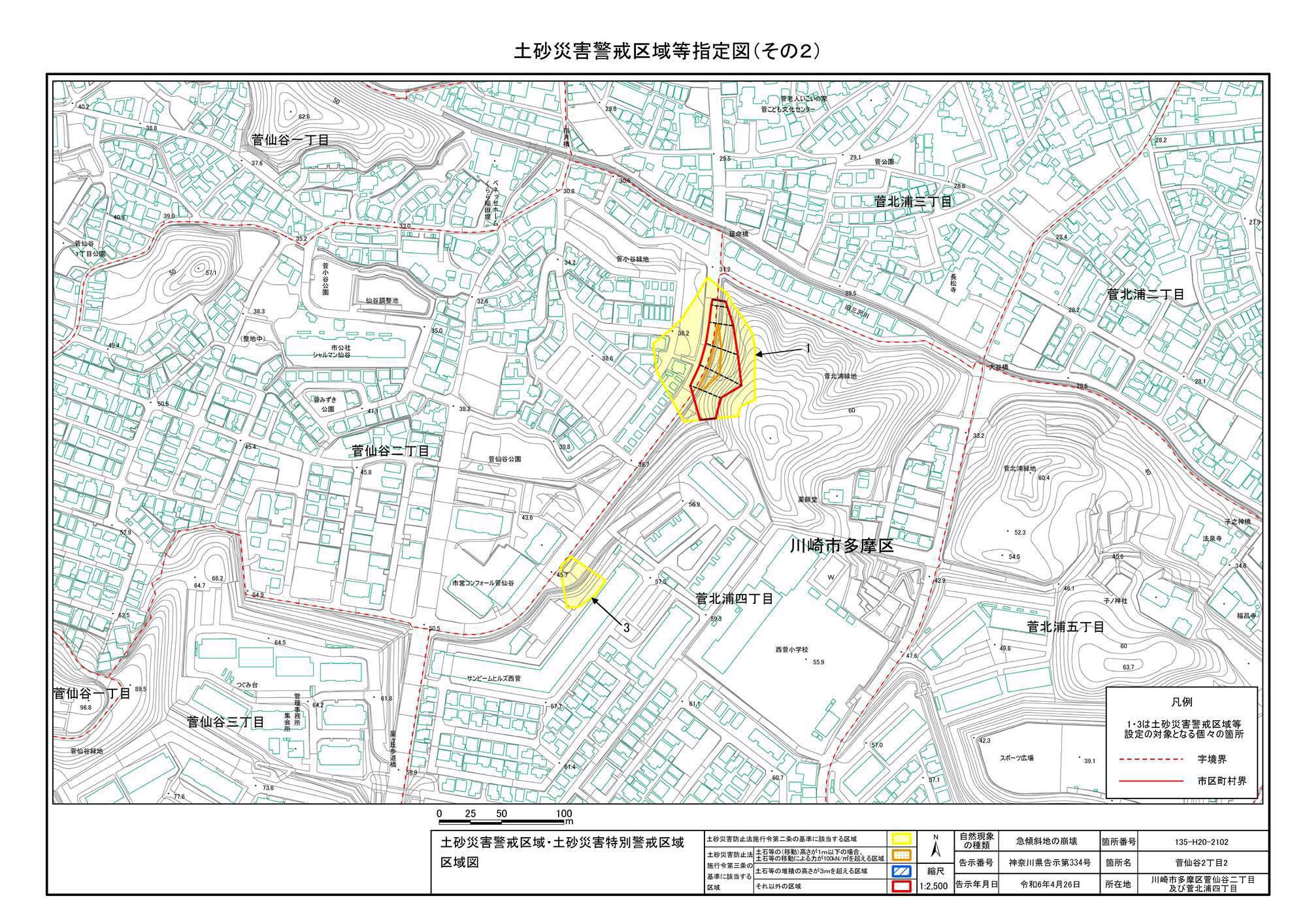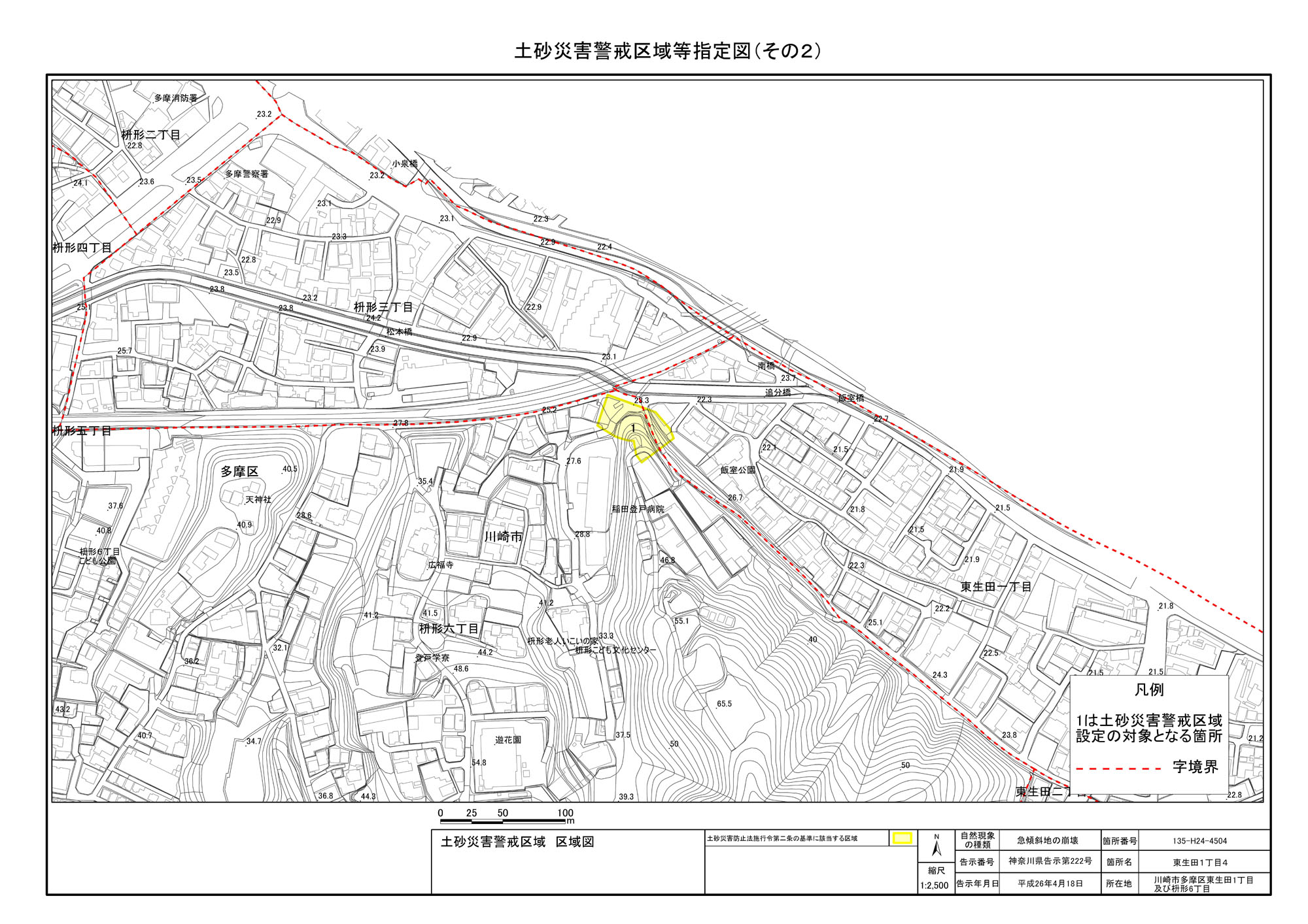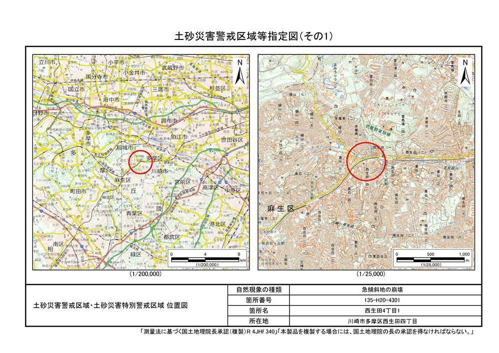 宮前区五所塚1丁目、神木本町1丁目、多摩区長尾2丁目及び長尾3丁目 ※宮前区と多摩区にまたがるため両区に掲載