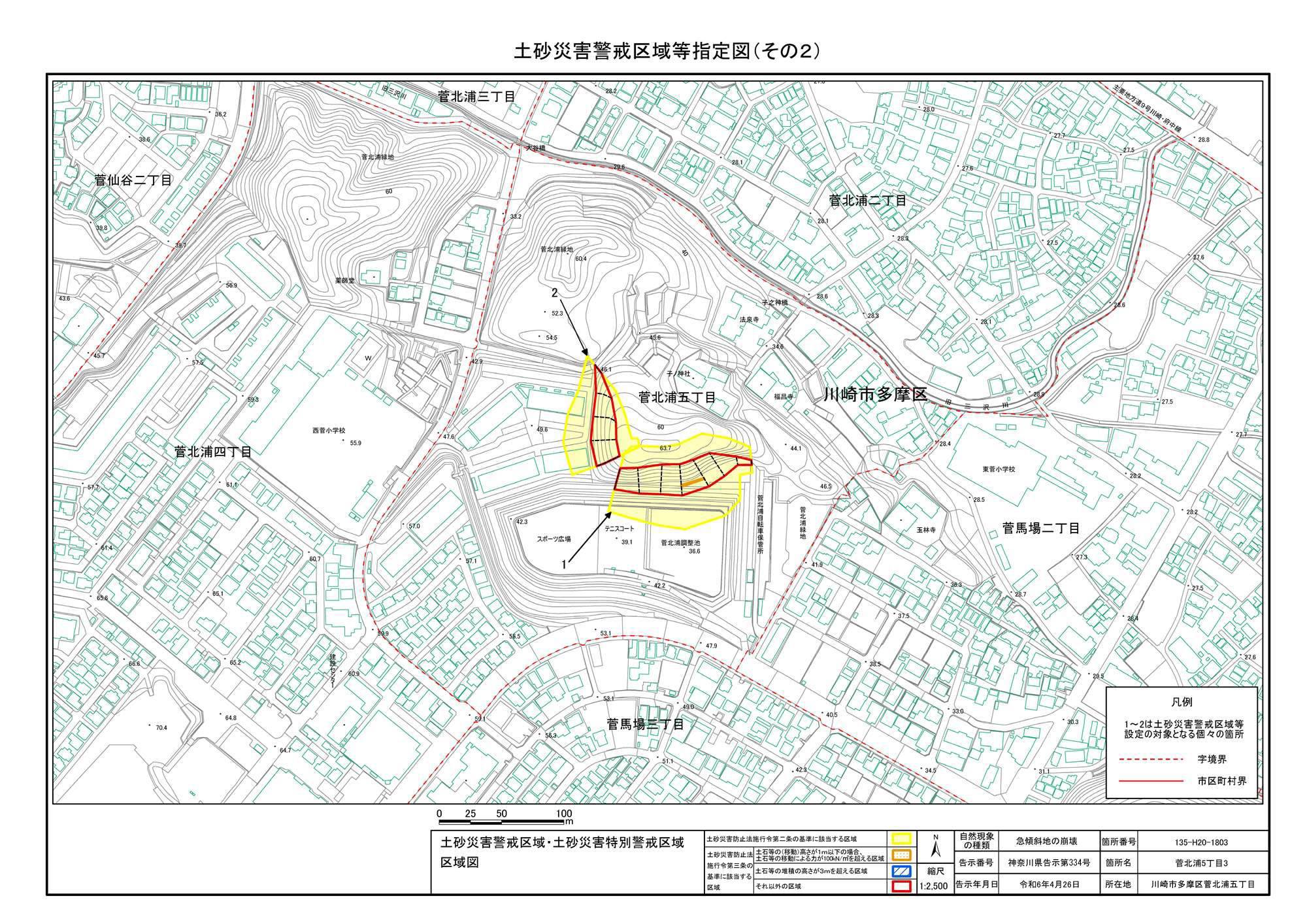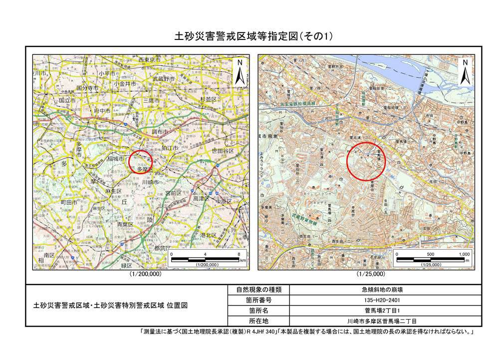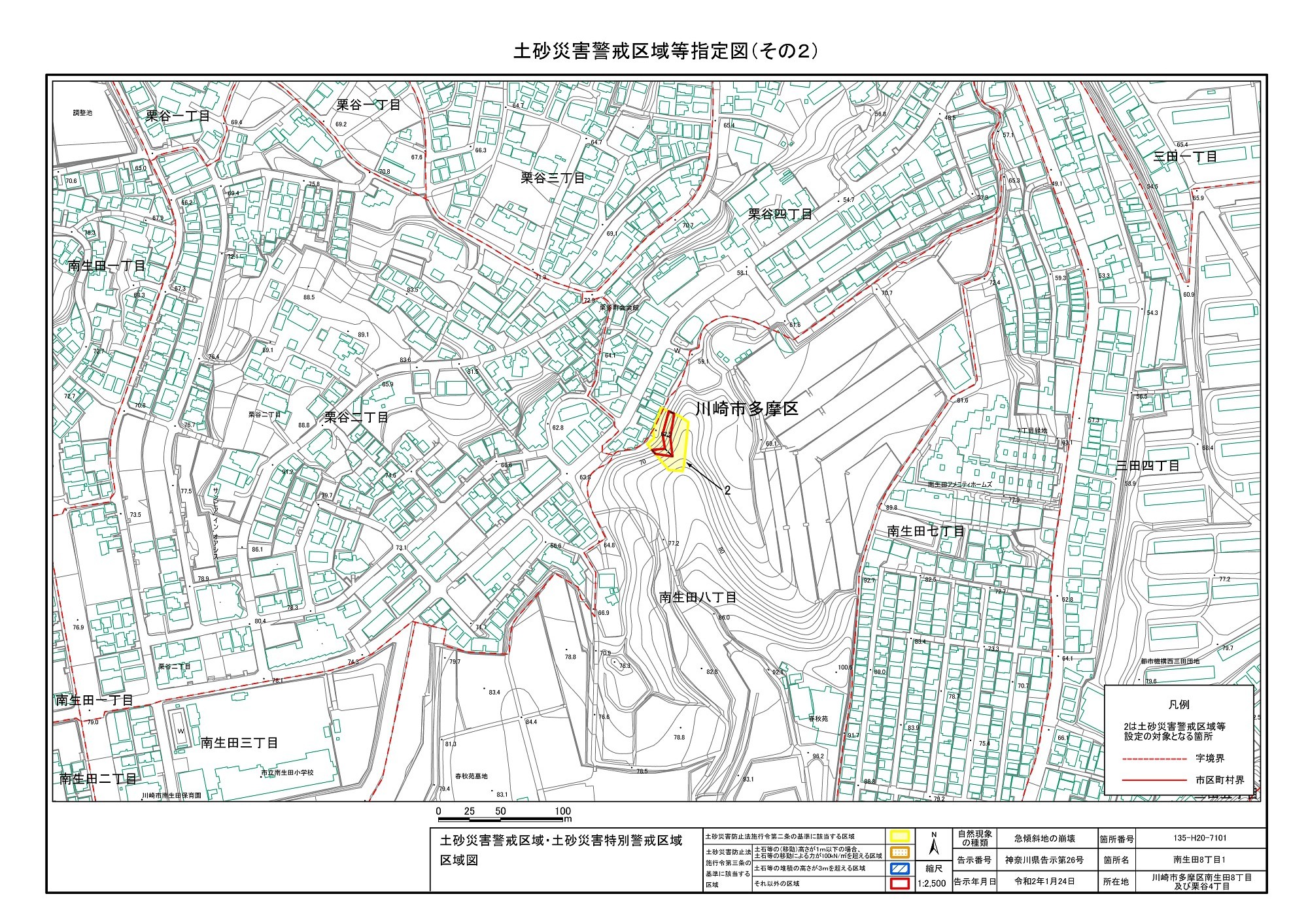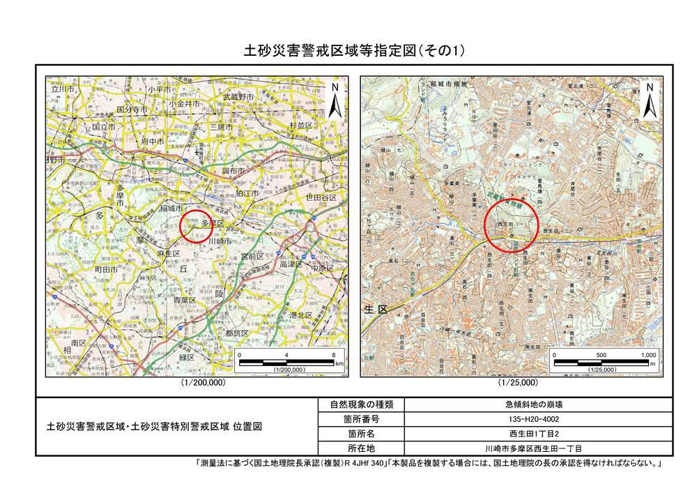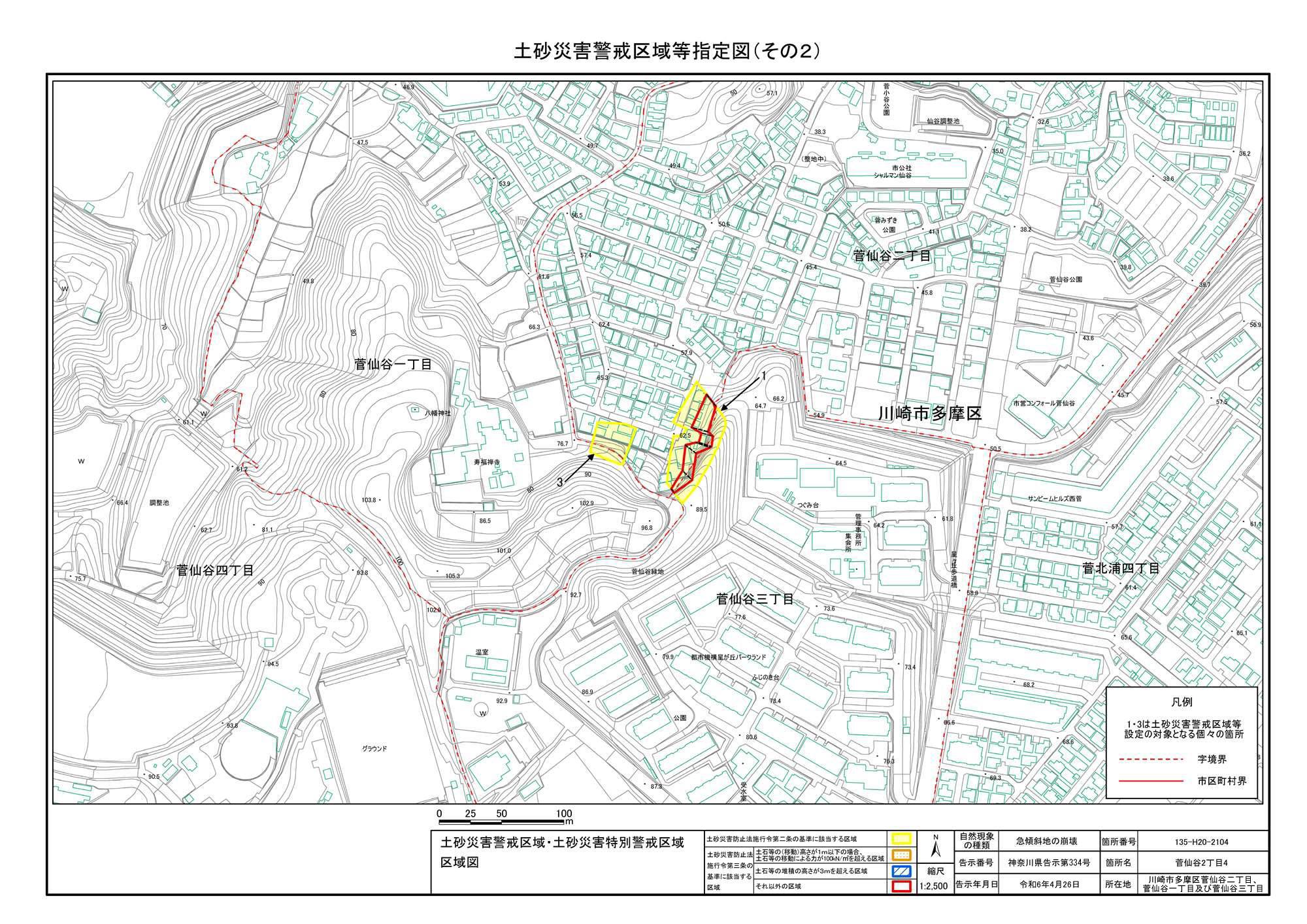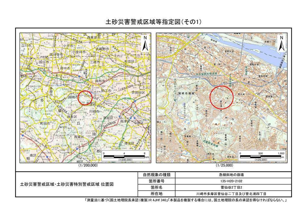 宮前区五所塚1丁目、神木本町1丁目、多摩区長尾2丁目及び長尾3丁目 ※宮前区と多摩区にまたがるため両区に掲載
