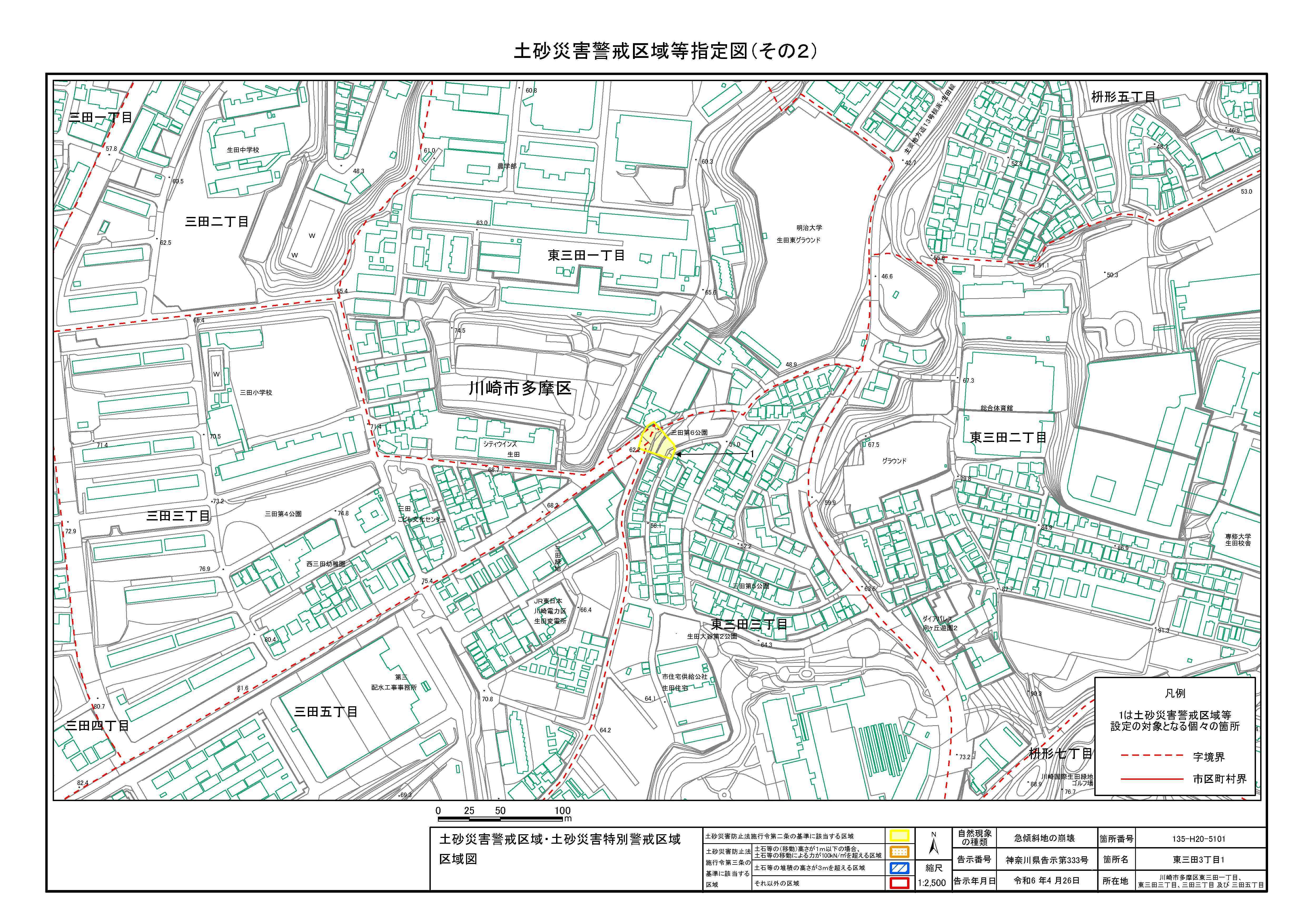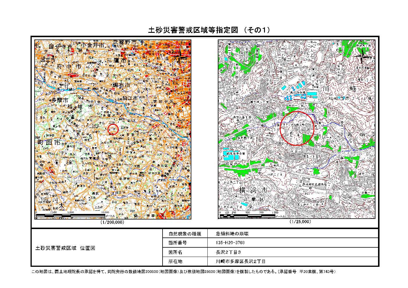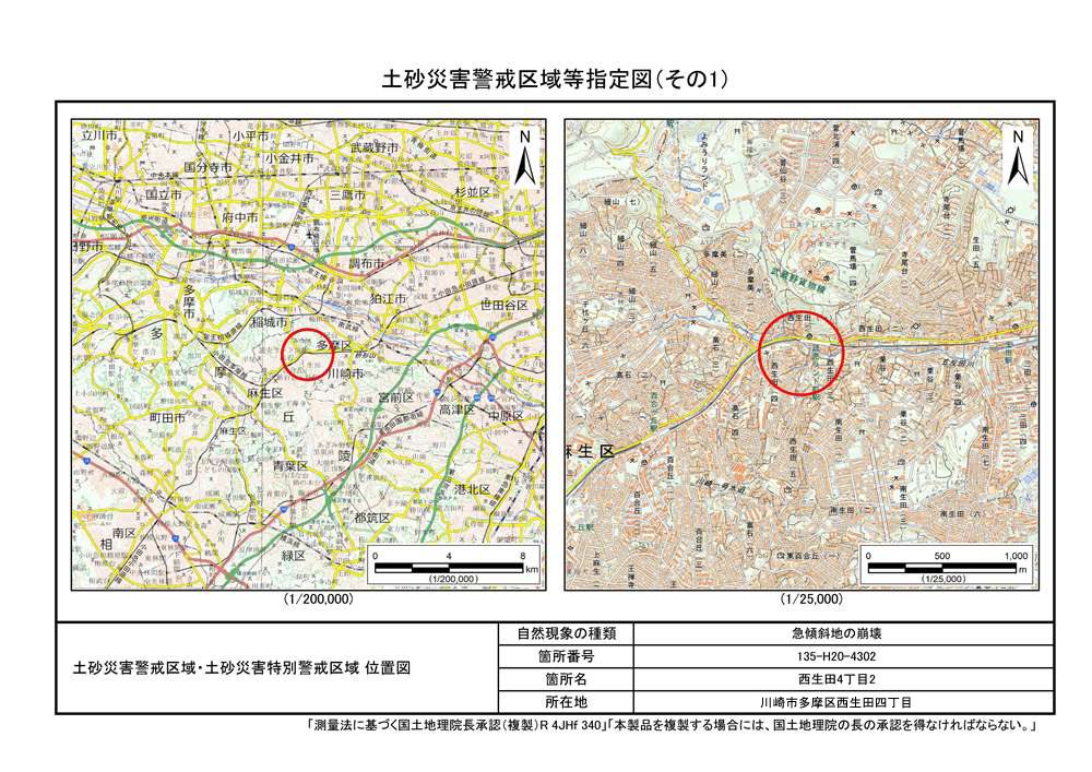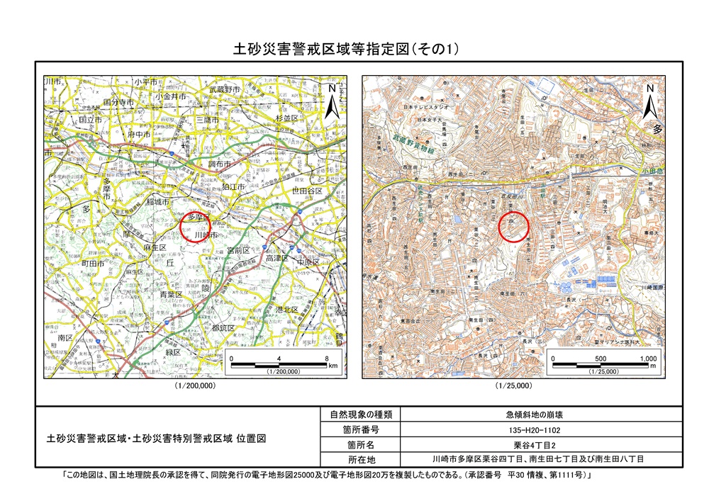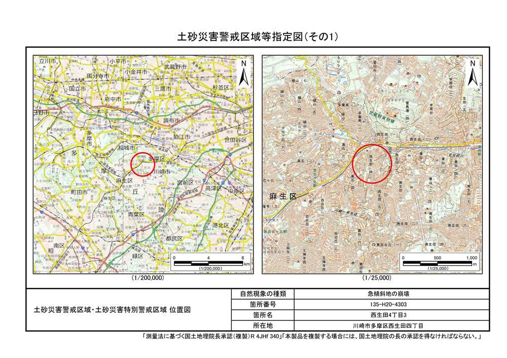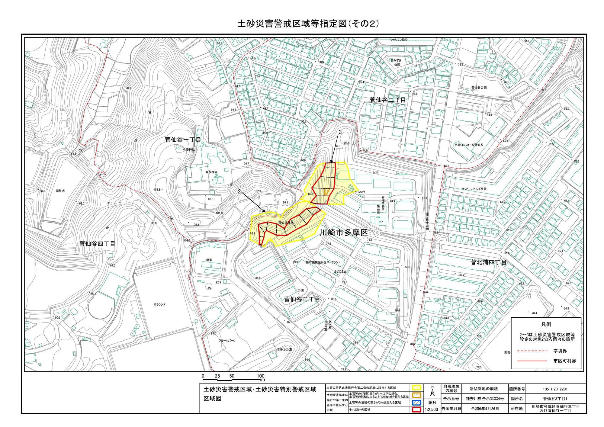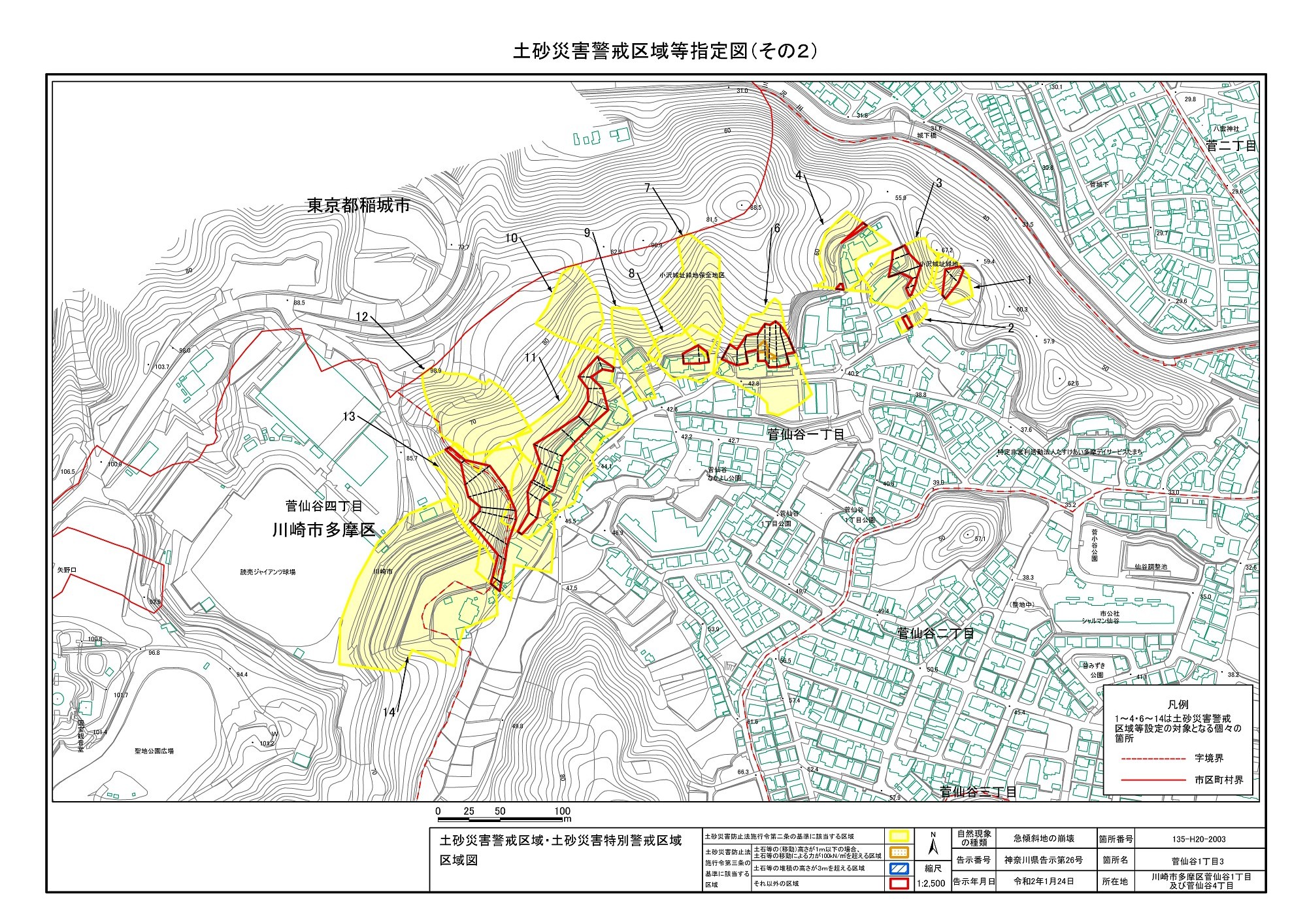 宮前区五所塚1丁目、神木本町1丁目、多摩区長尾2丁目及び長尾3丁目 ※宮前区と多摩区にまたがるため両区に掲載