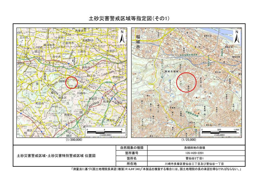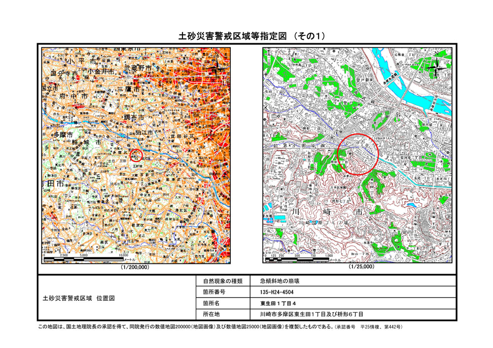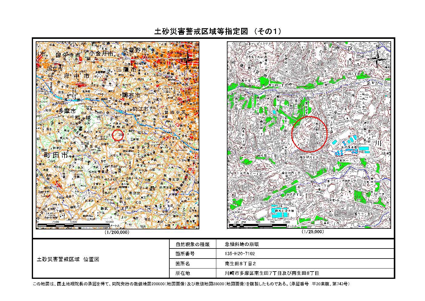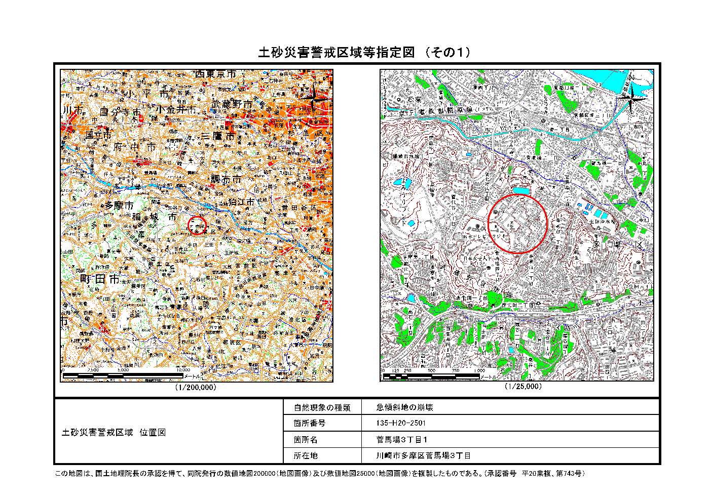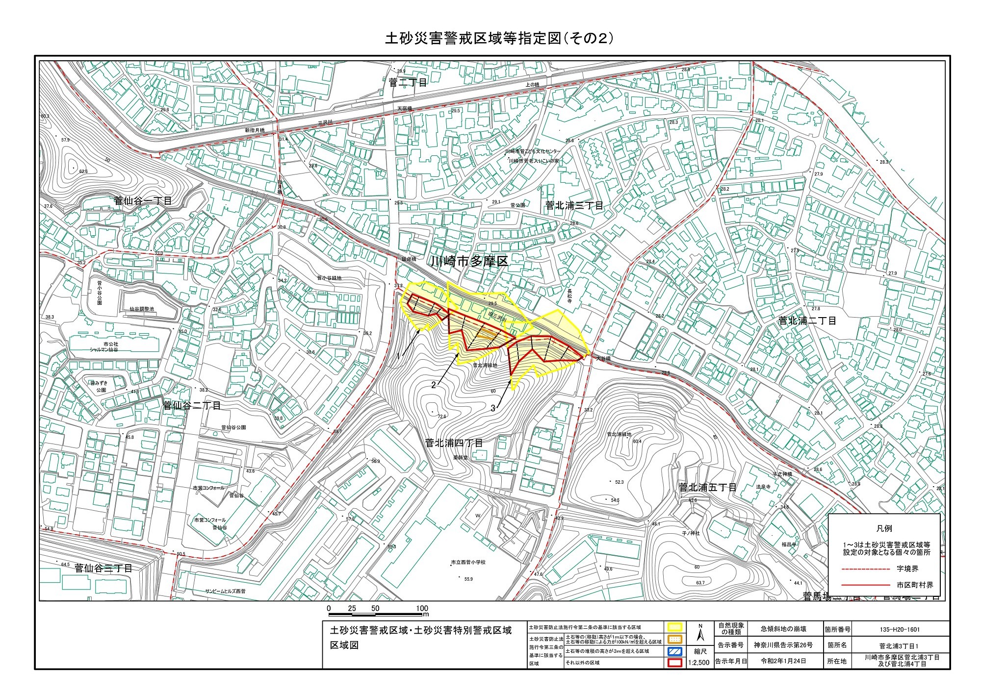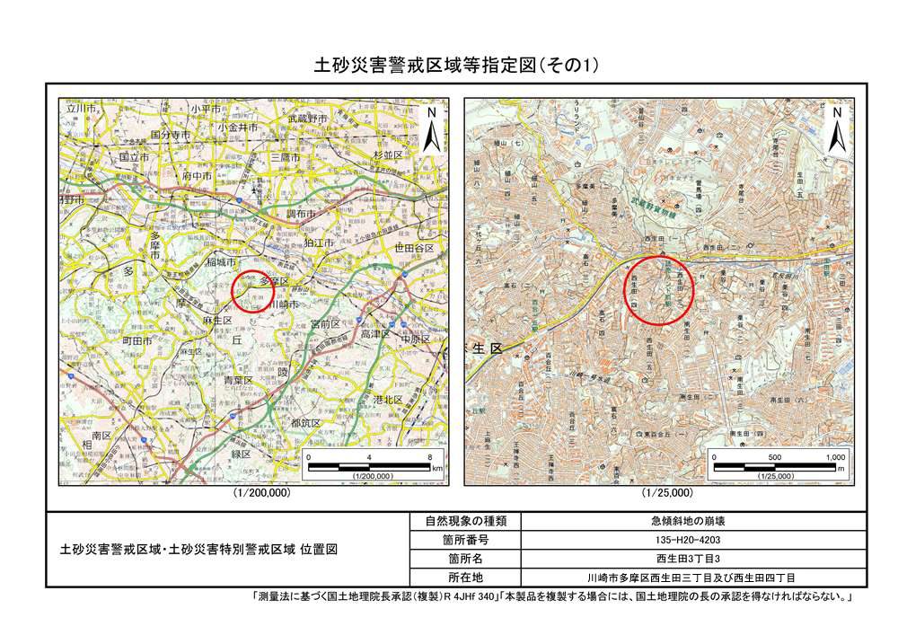 宮前区五所塚1丁目、神木本町1丁目、多摩区長尾2丁目及び長尾3丁目 ※宮前区と多摩区にまたがるため両区に掲載