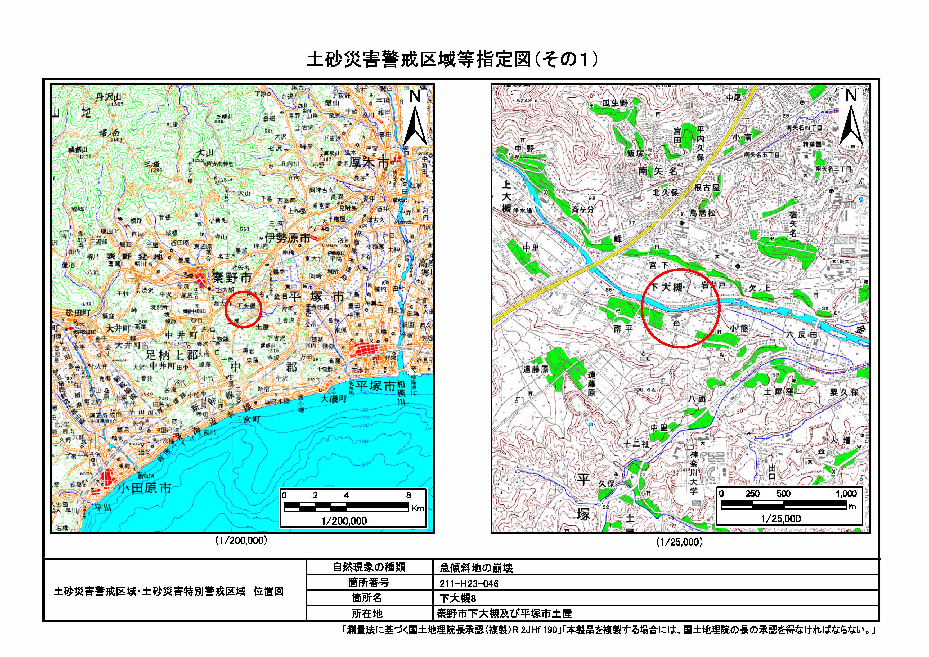 土砂災害警戒区域及び土砂災害特別警戒区域 告示図書