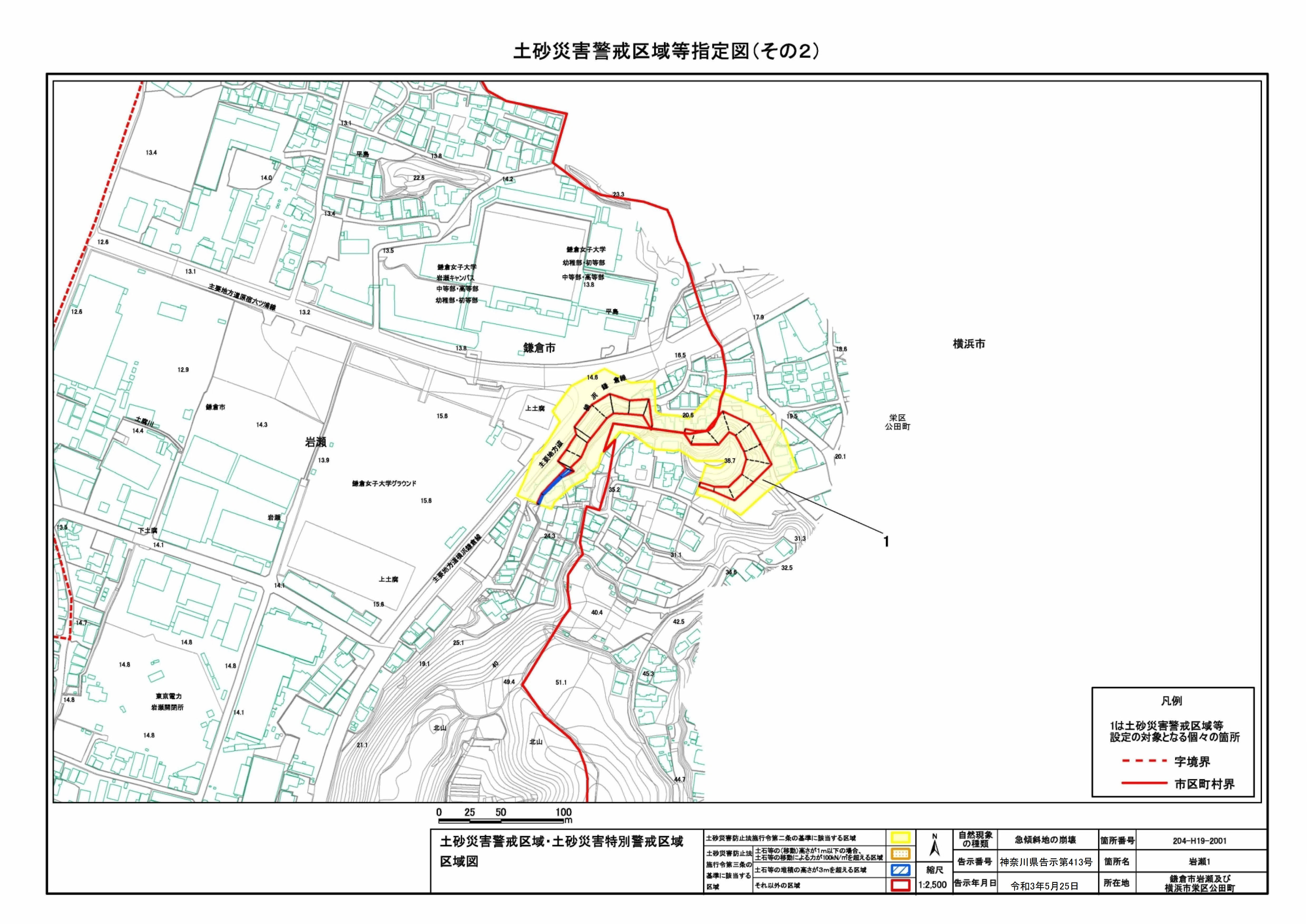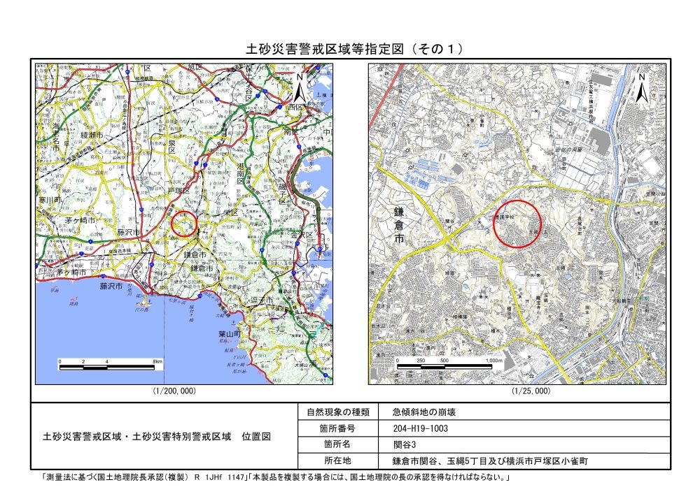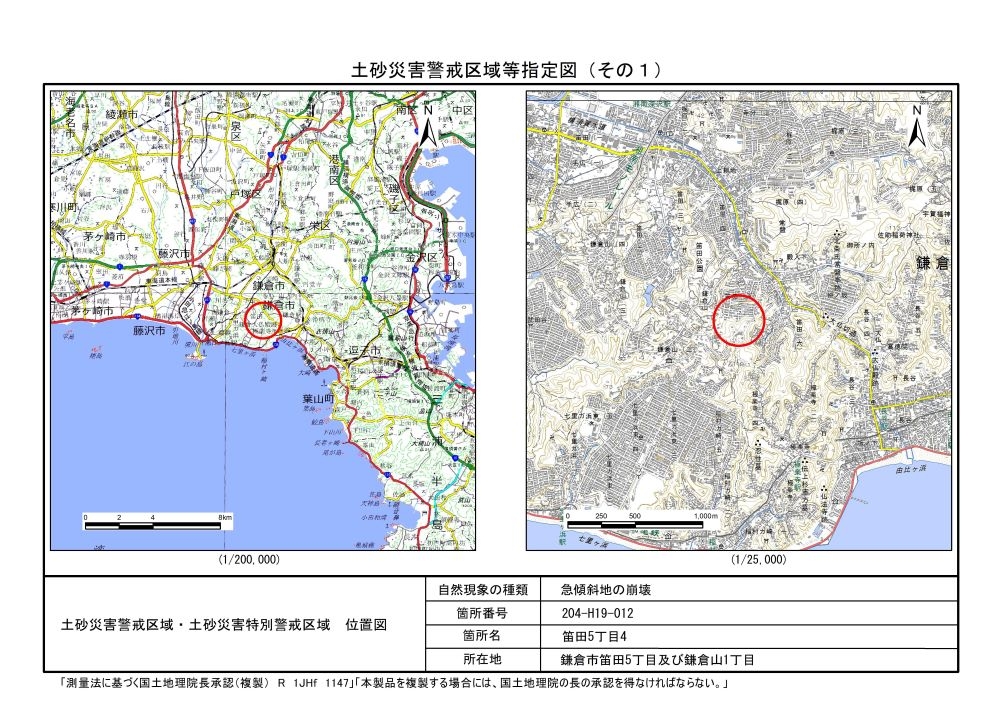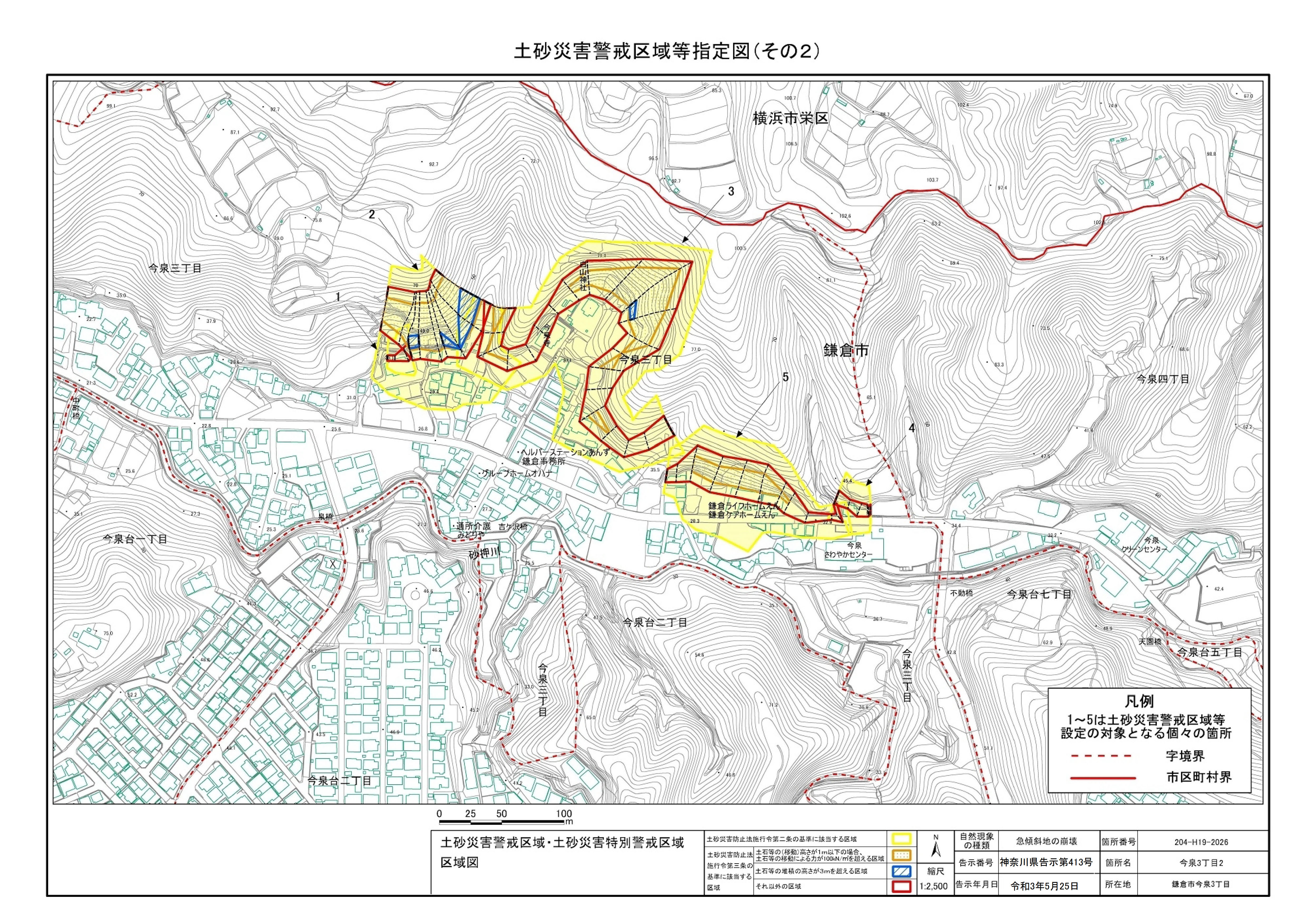 横浜市栄区笠間5丁目及び鎌倉市岩瀬1丁目