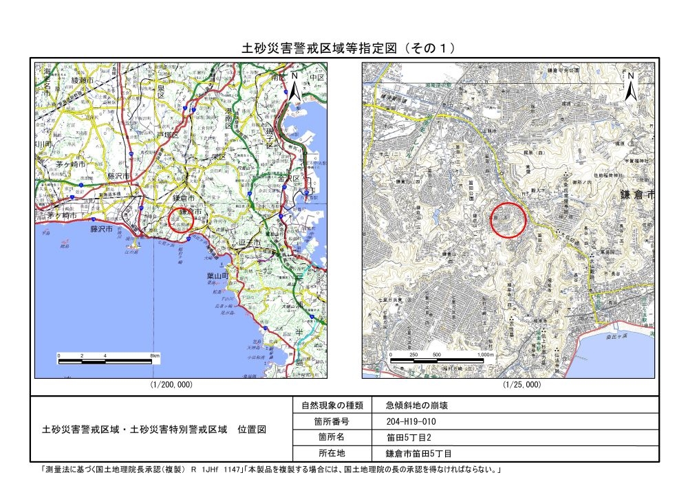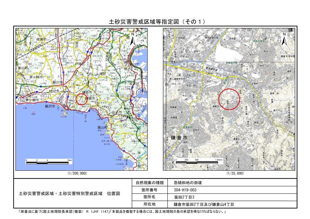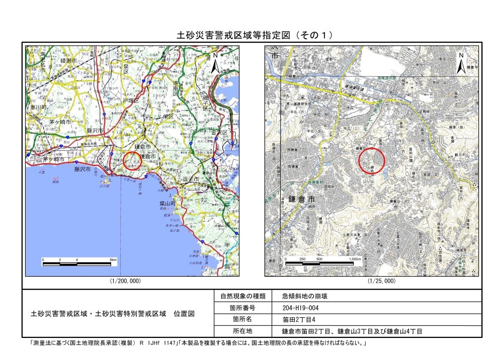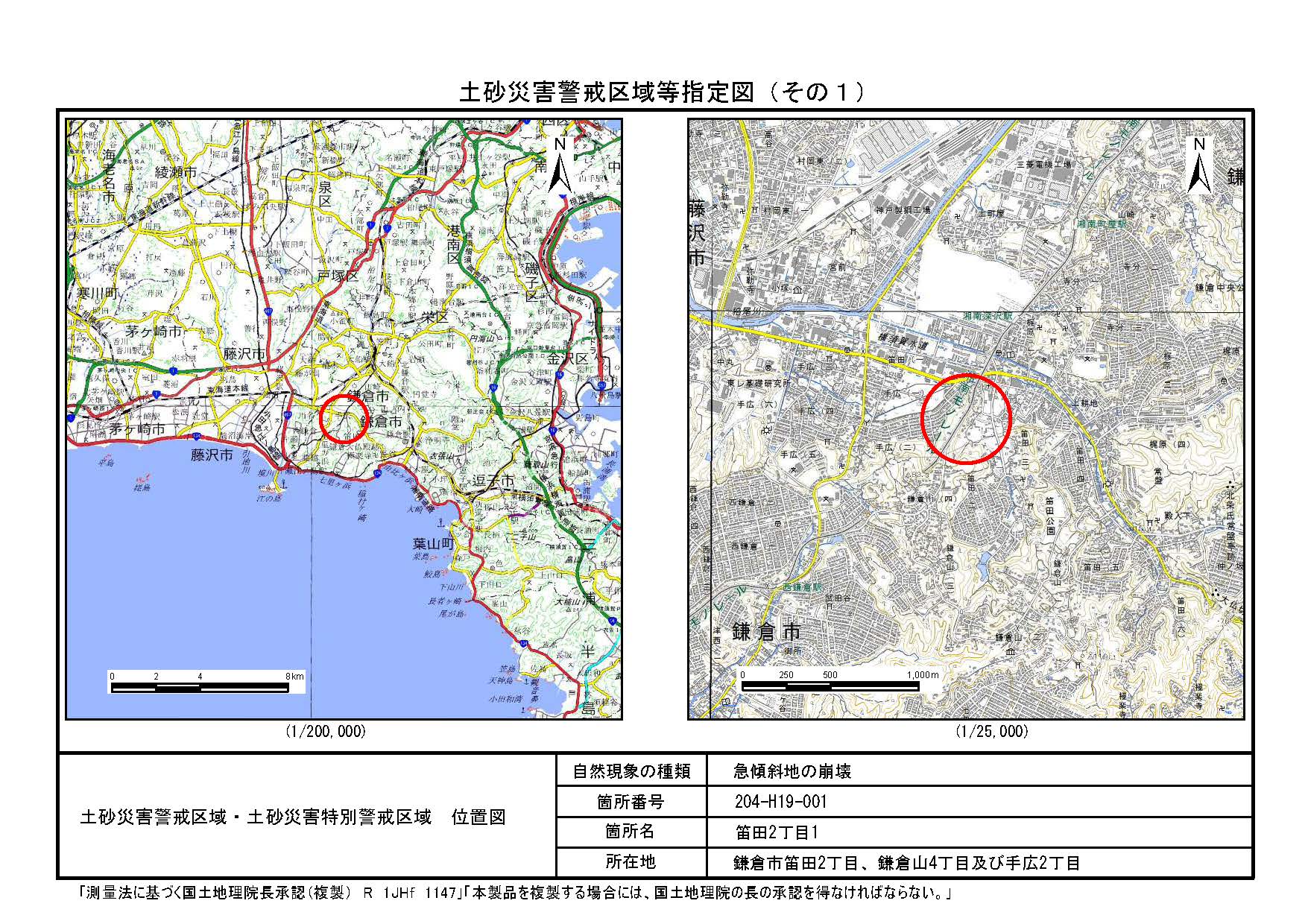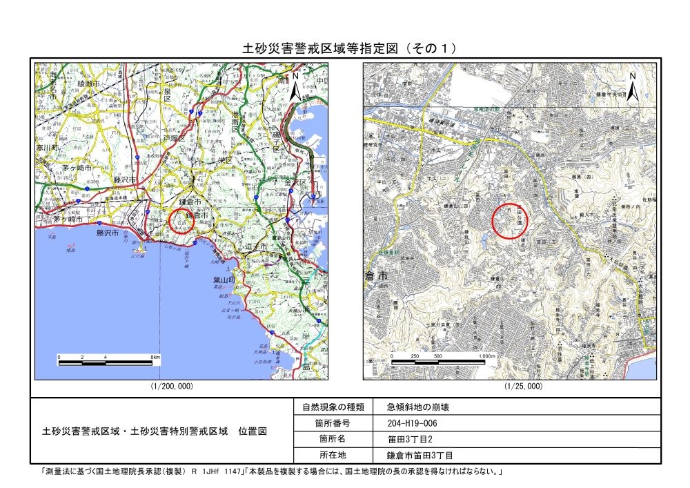 横浜市栄区笠間5丁目及び鎌倉市岩瀬1丁目