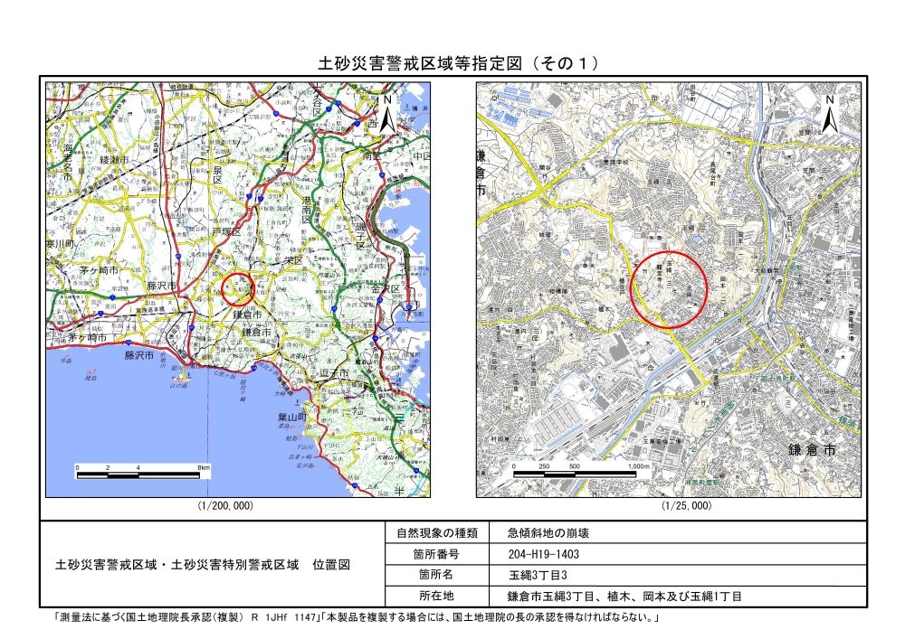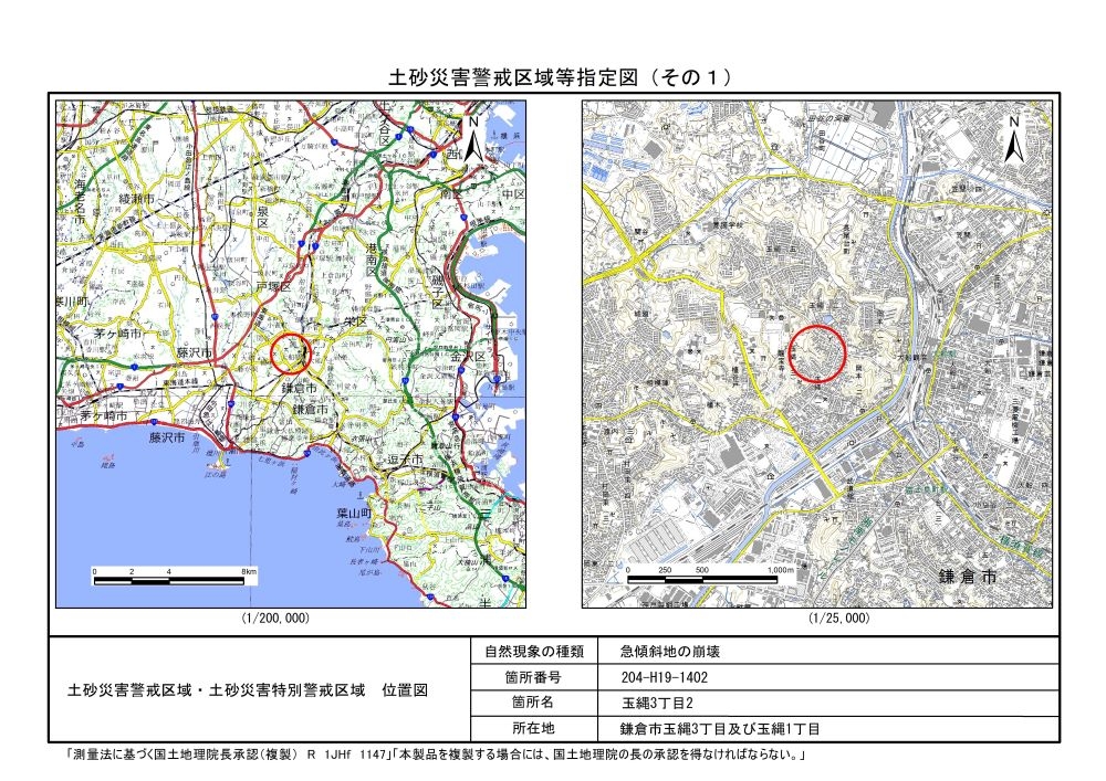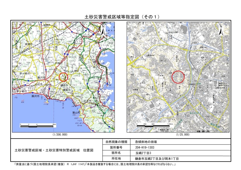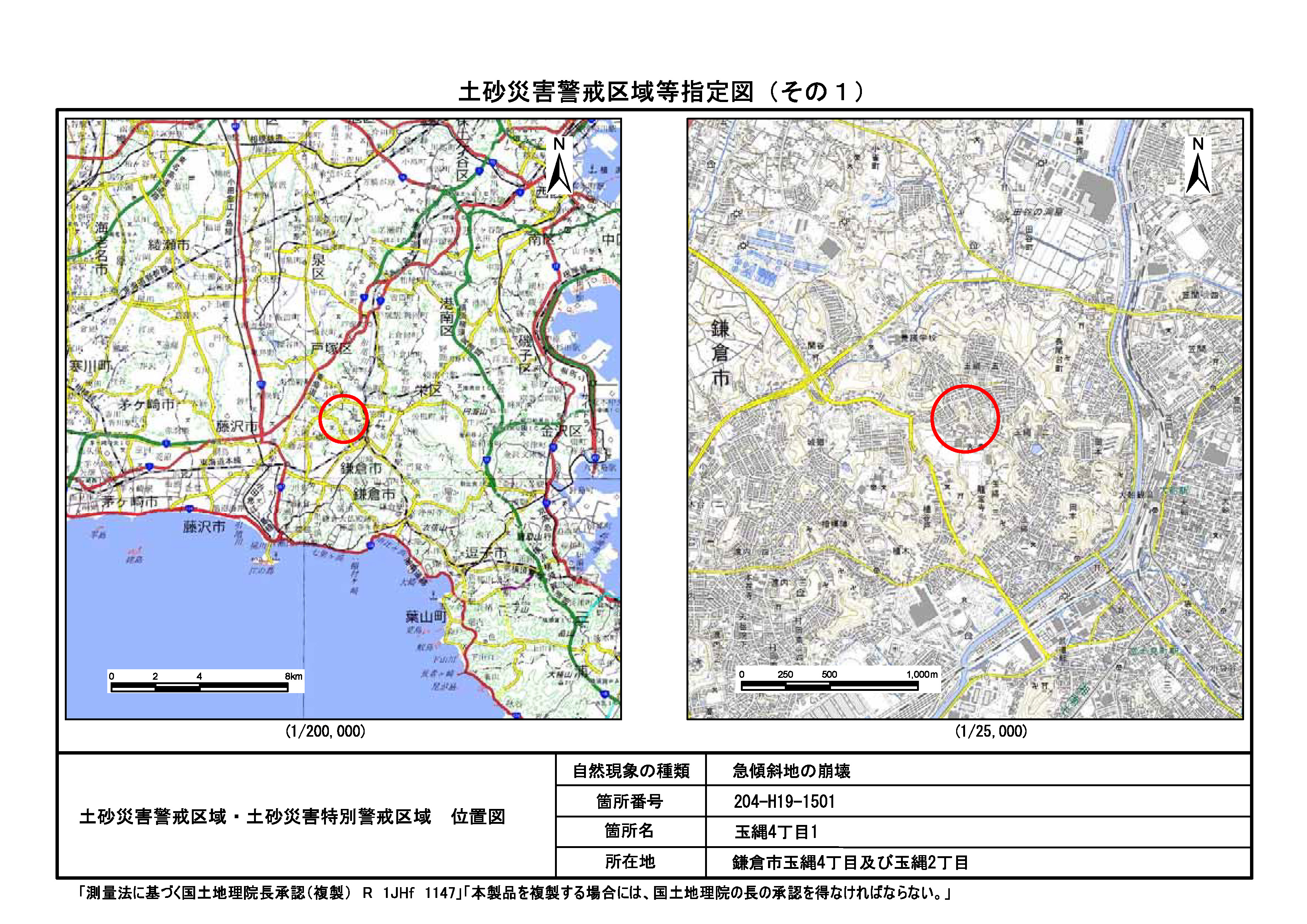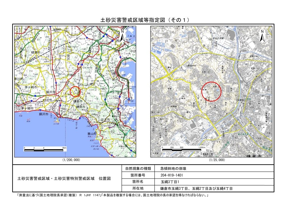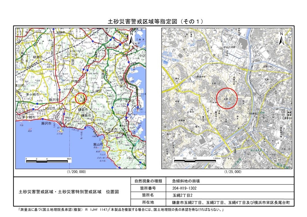 横浜市栄区田谷町、鎌倉市玉縄5丁目及び関谷