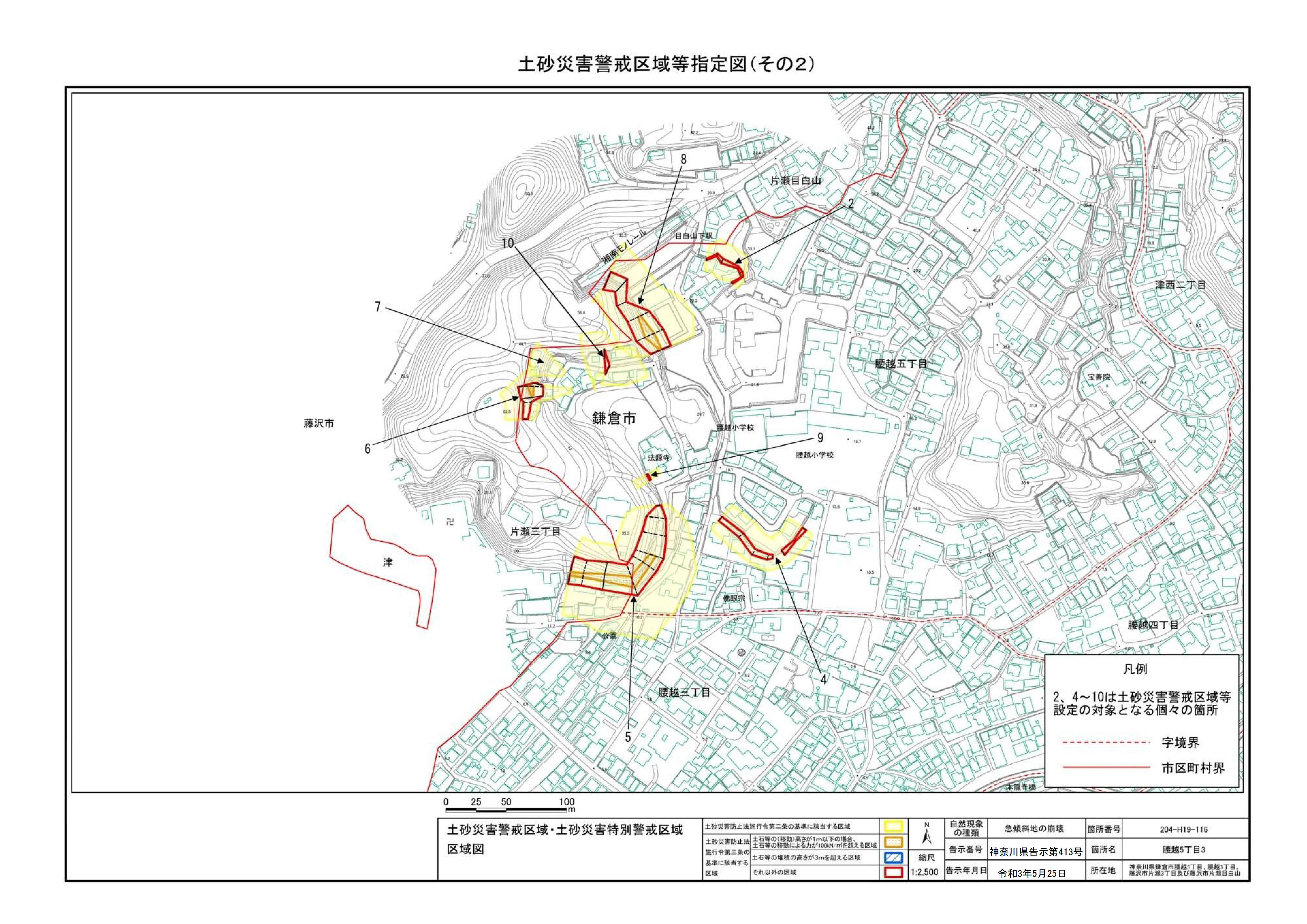 鎌倉市腰越5丁目、腰越3丁目、藤沢市片瀬3丁目及び藤沢市片瀬目白山