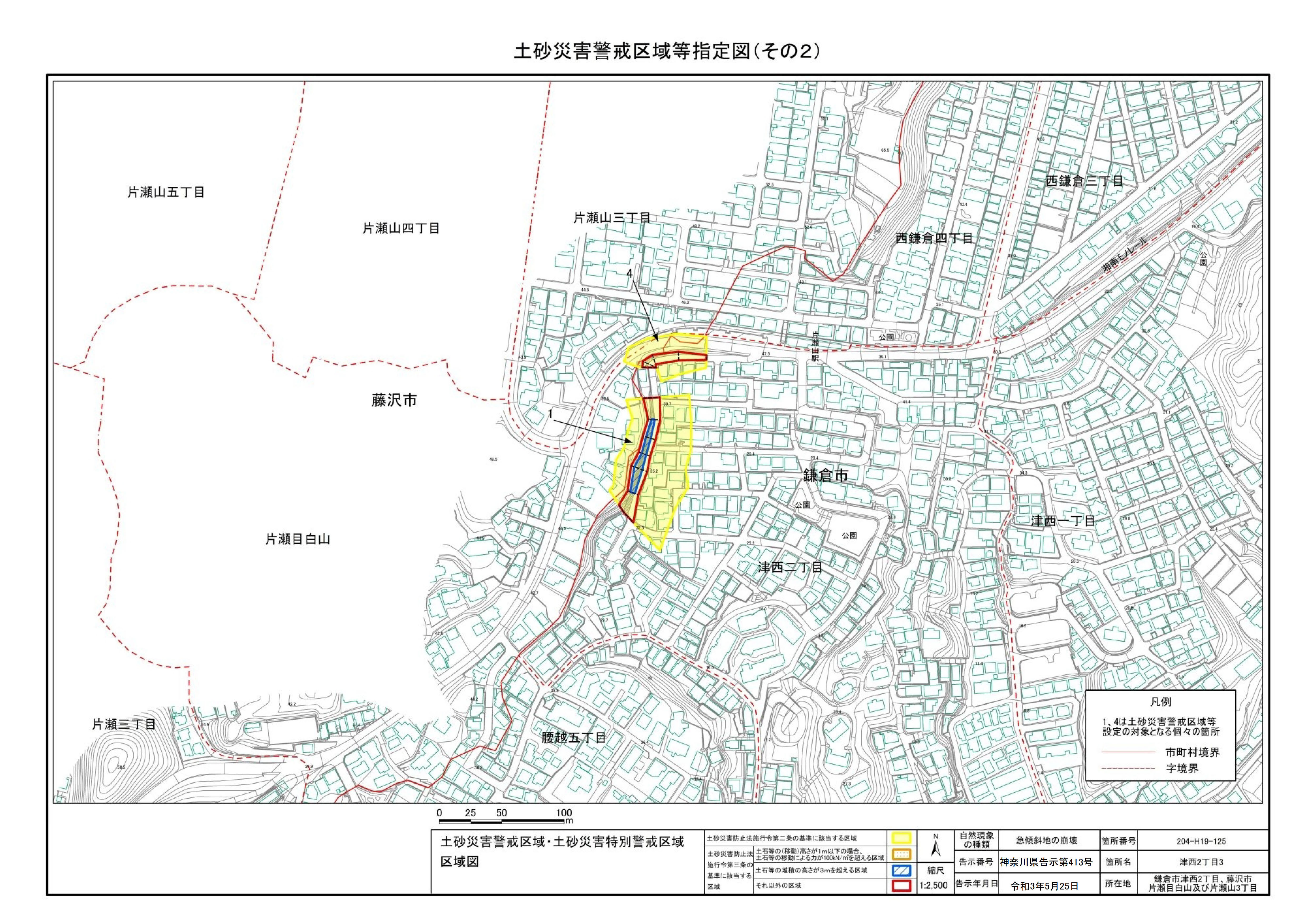 鎌倉市西鎌倉4丁目及び藤沢市片瀬山3丁目