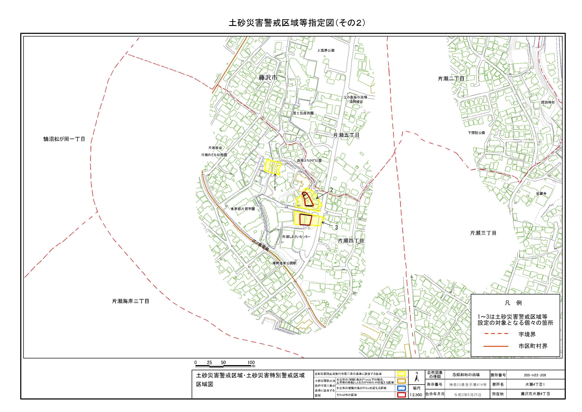 片瀬2丁目、片瀬1丁目、片瀬山1丁目及び片瀬山5丁目