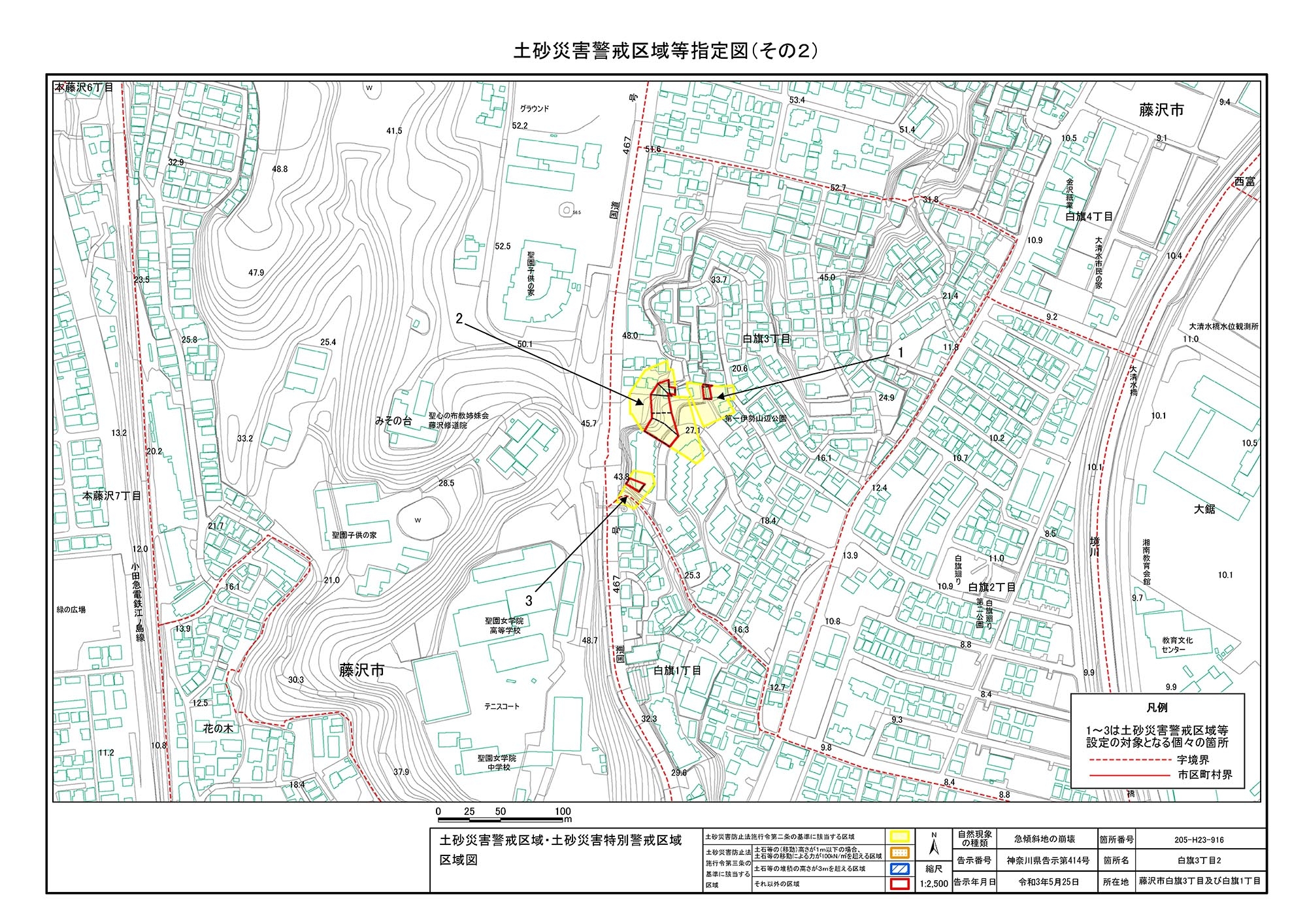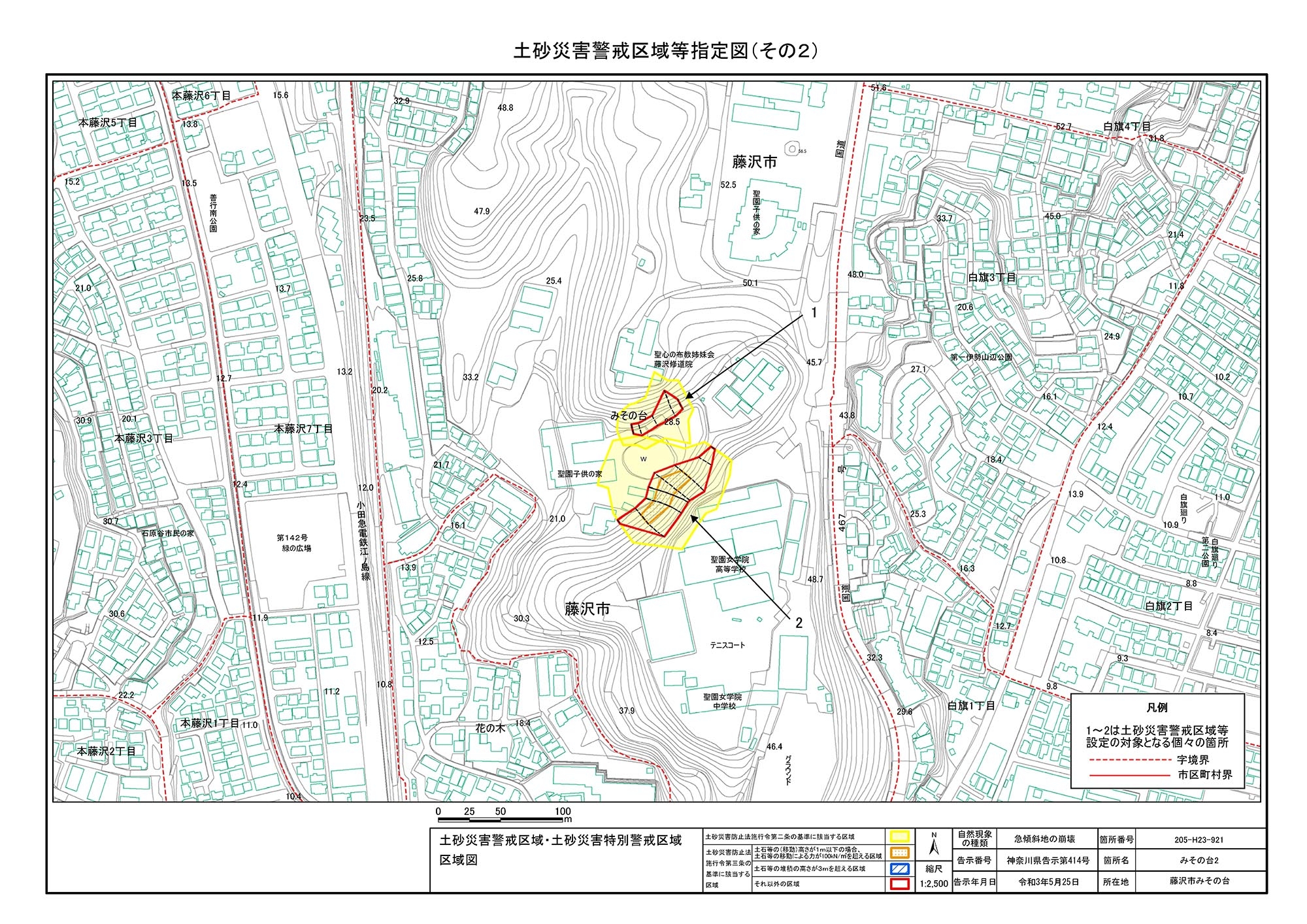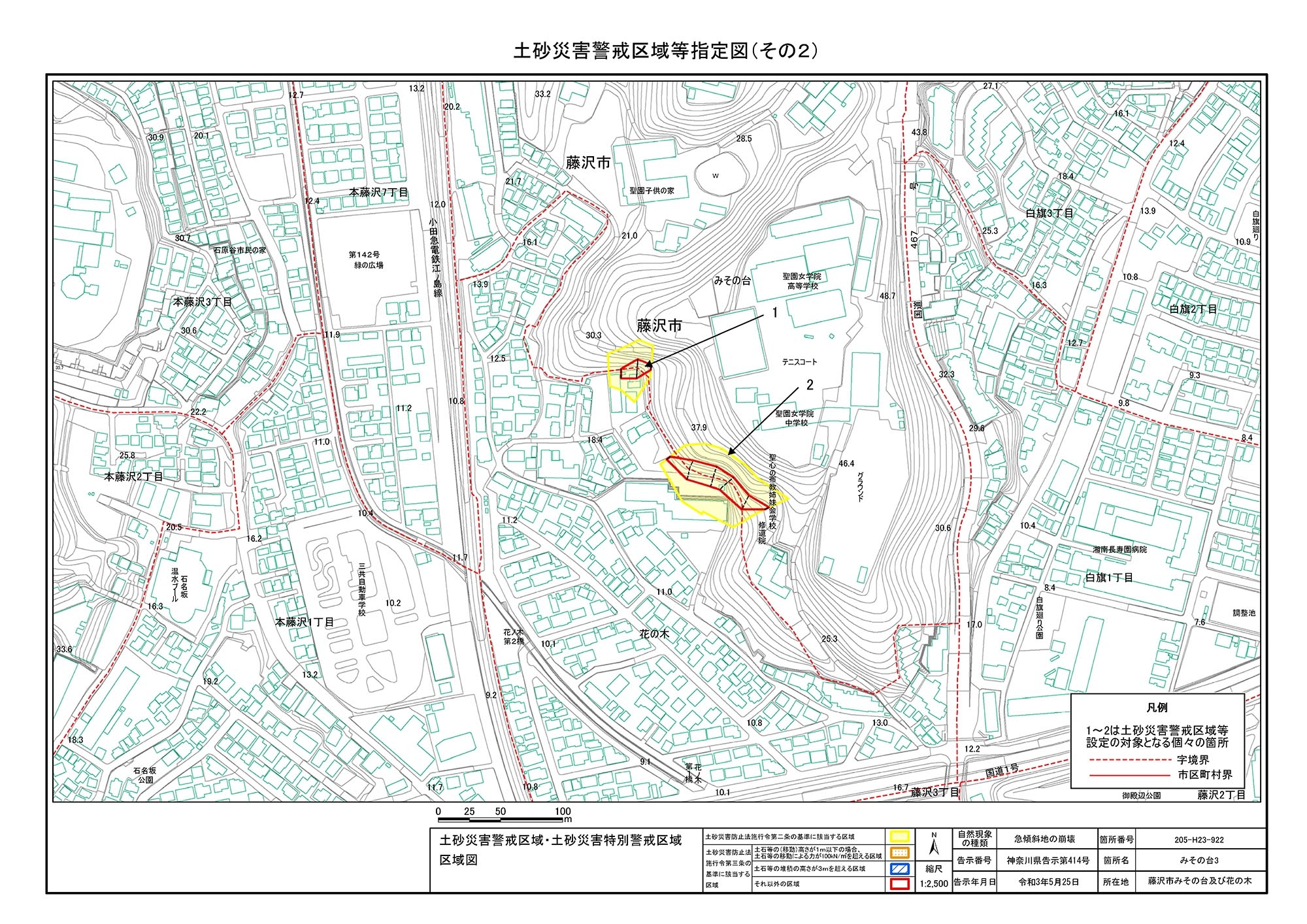 鎌倉市津西2丁目、藤沢市片瀬目白山及び片瀬山3丁目