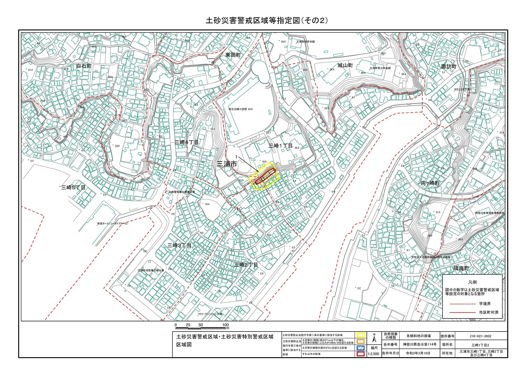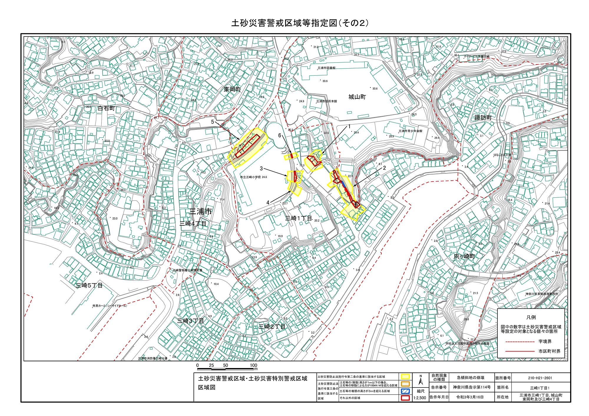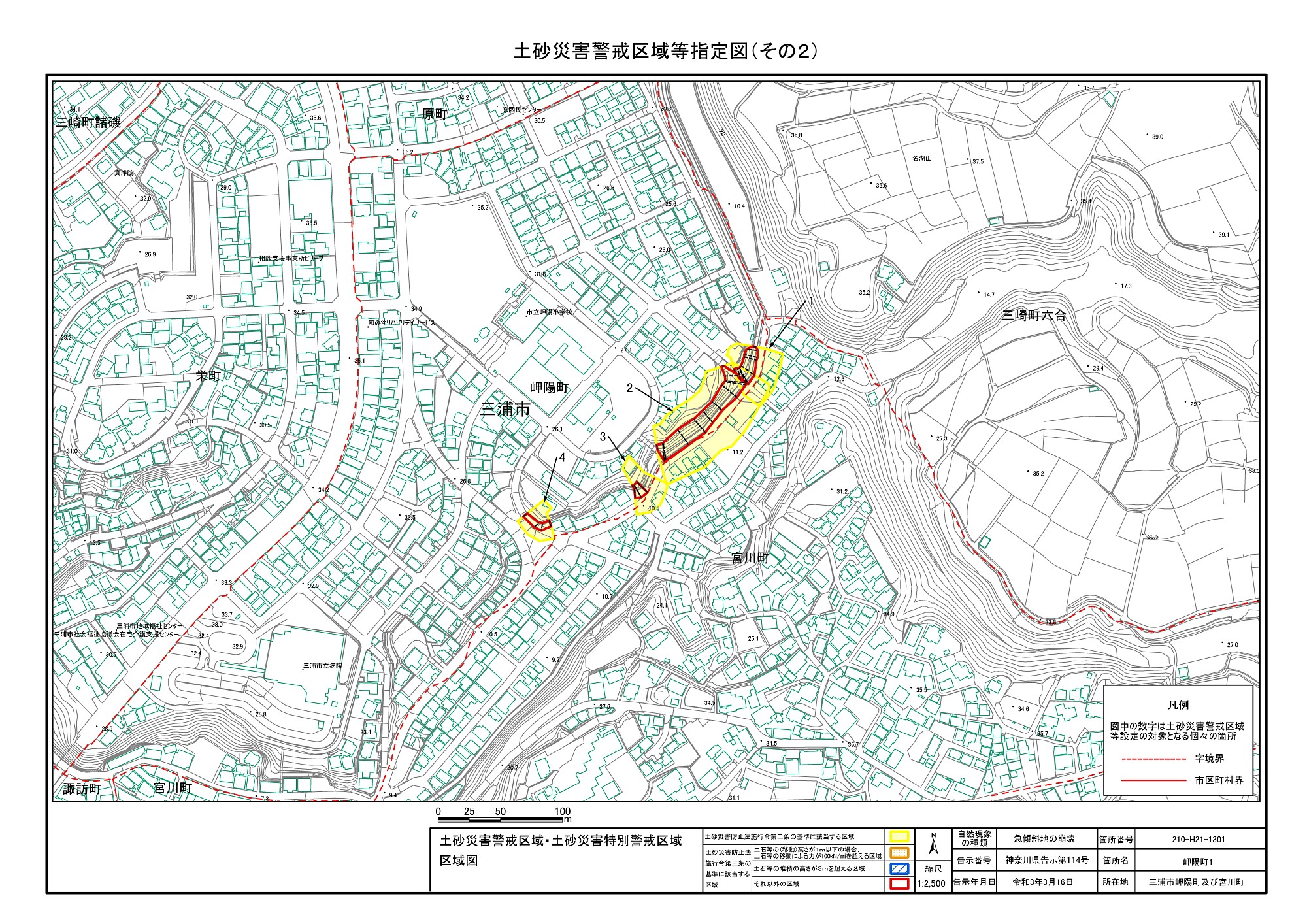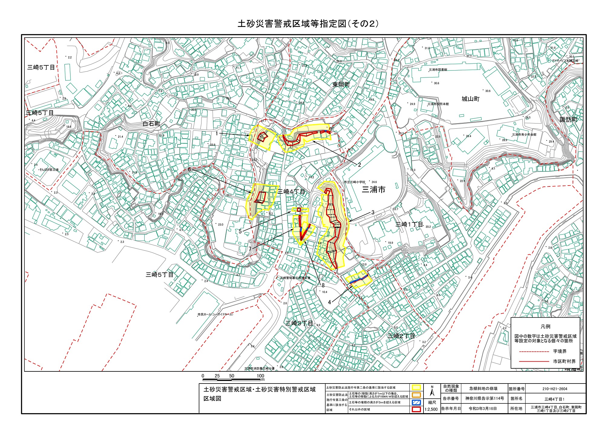 三崎1丁目、城山町、東岡町及び三崎4丁目 |