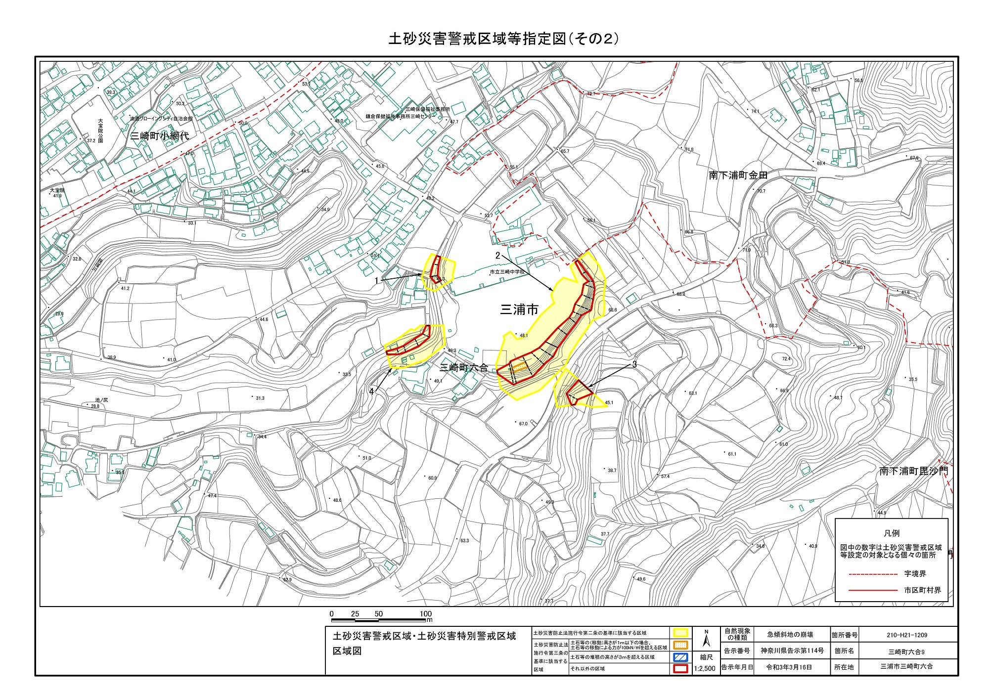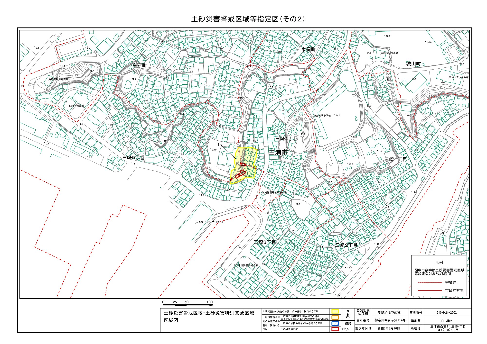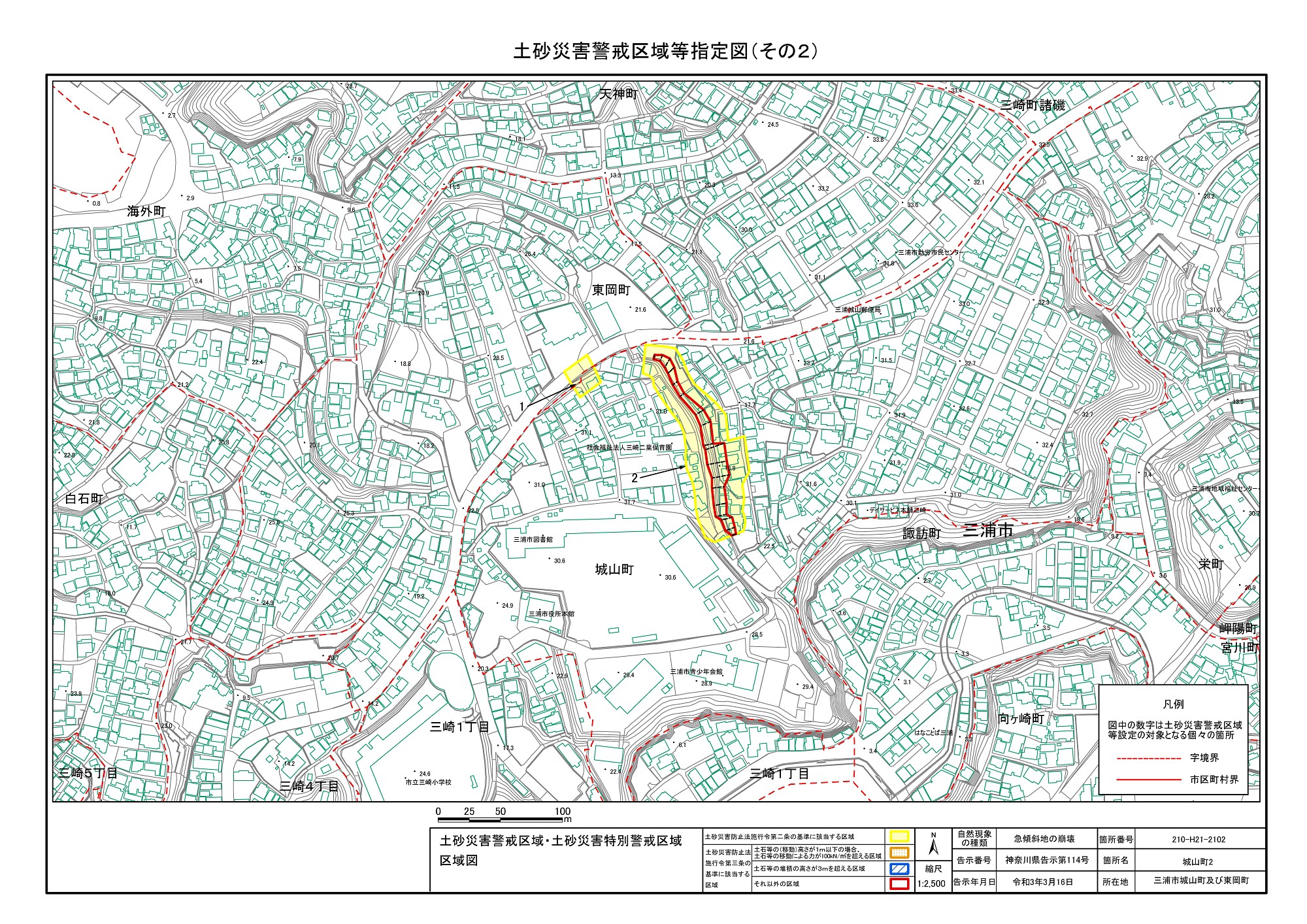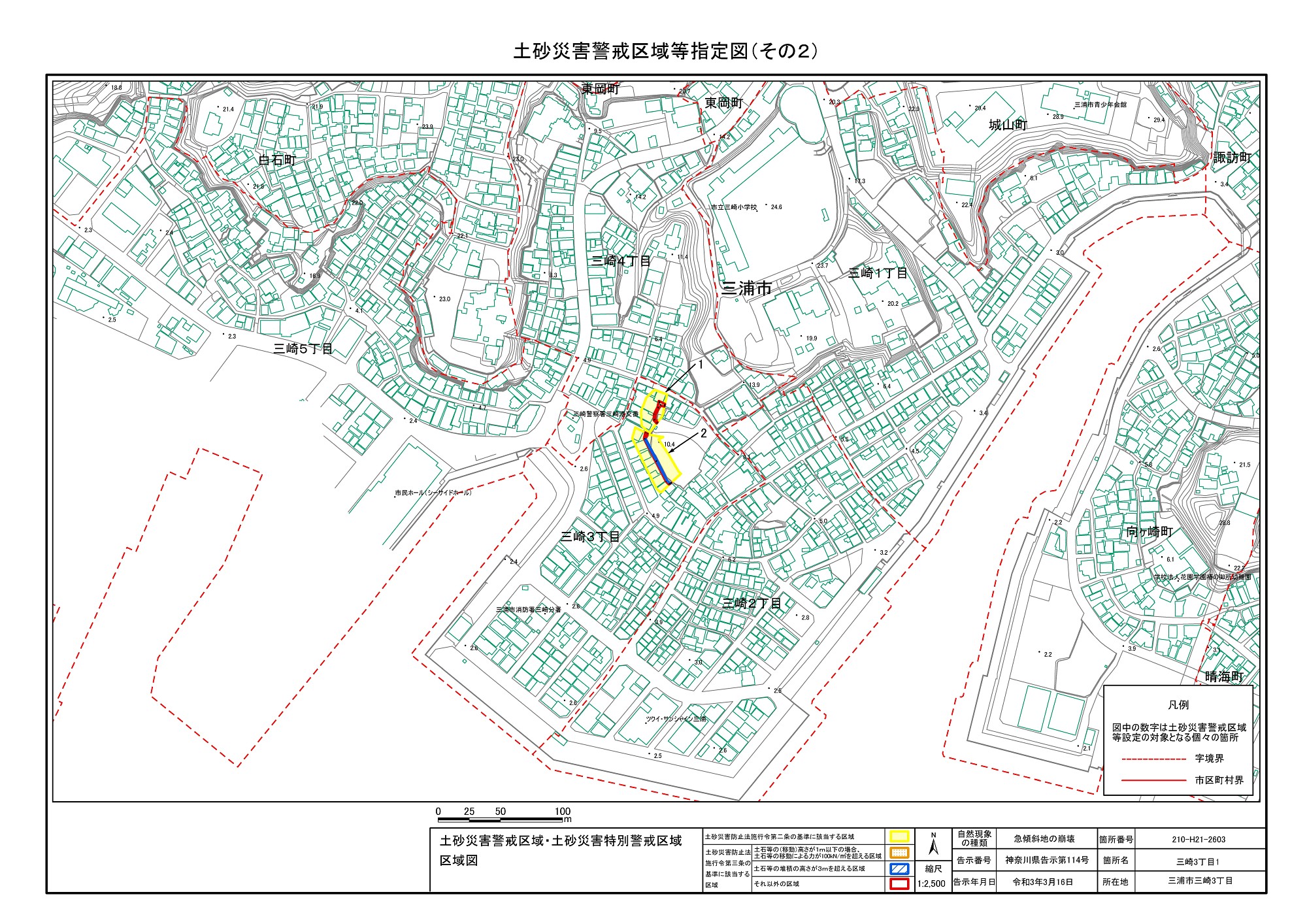 三崎1丁目、城山町、東岡町及び三崎4丁目 |