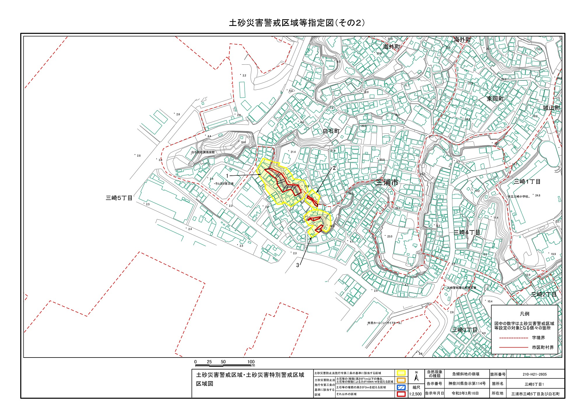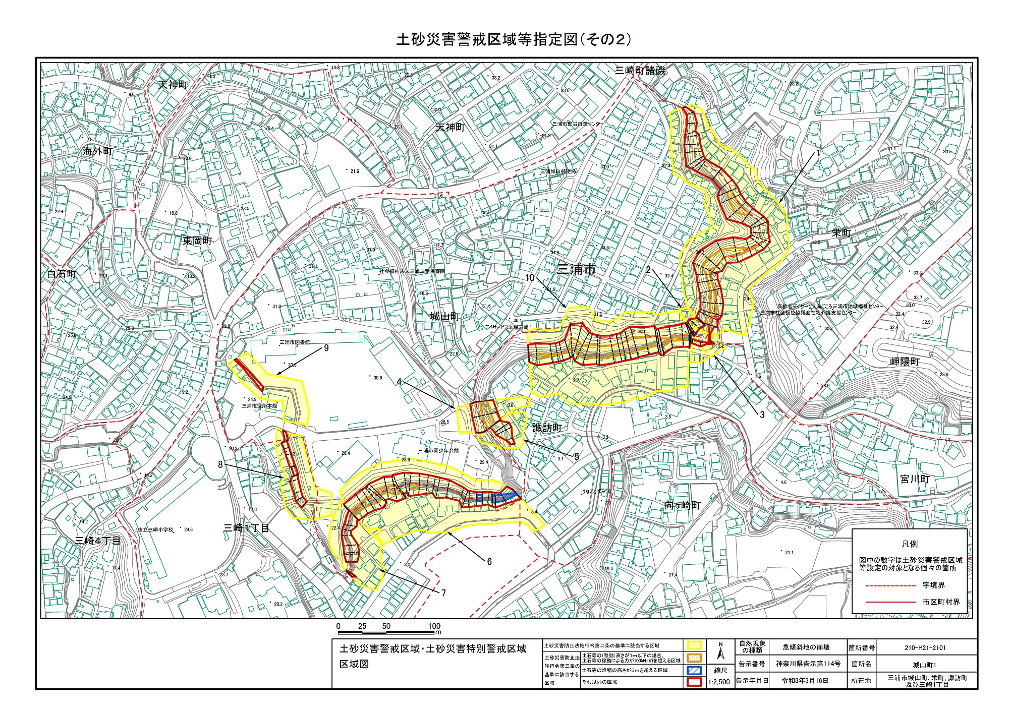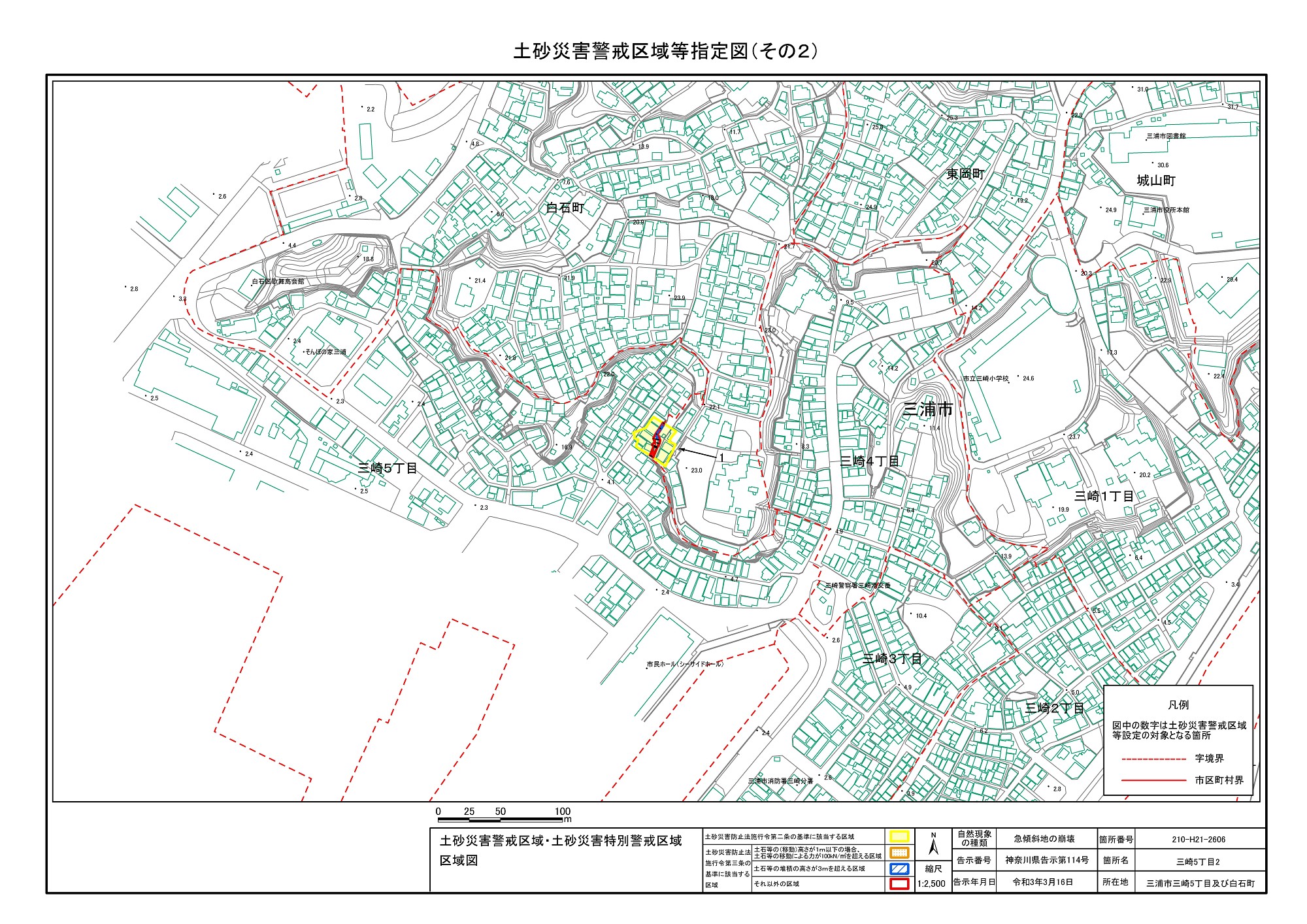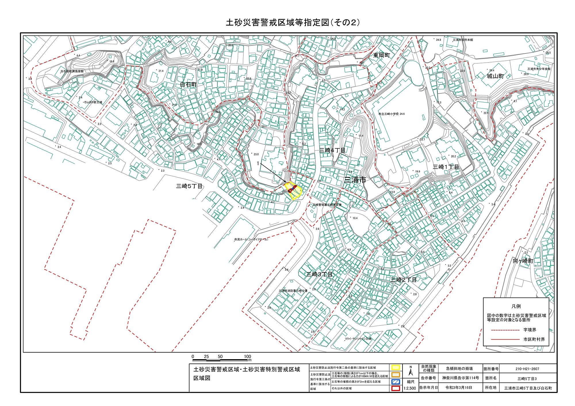 三崎1丁目、城山町、東岡町及び三崎4丁目 |