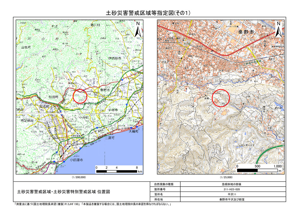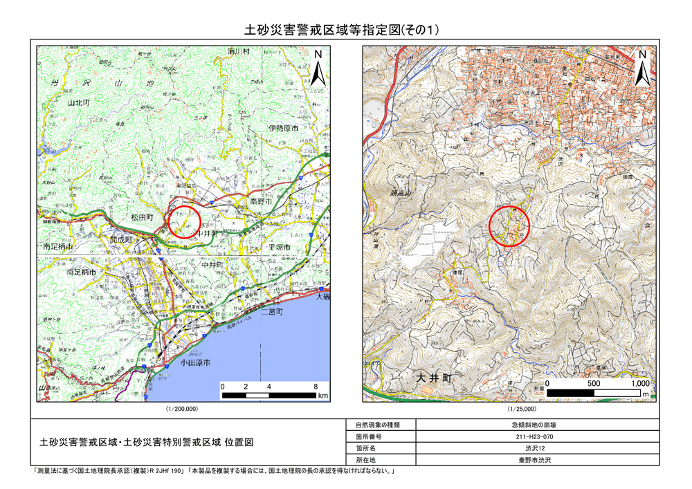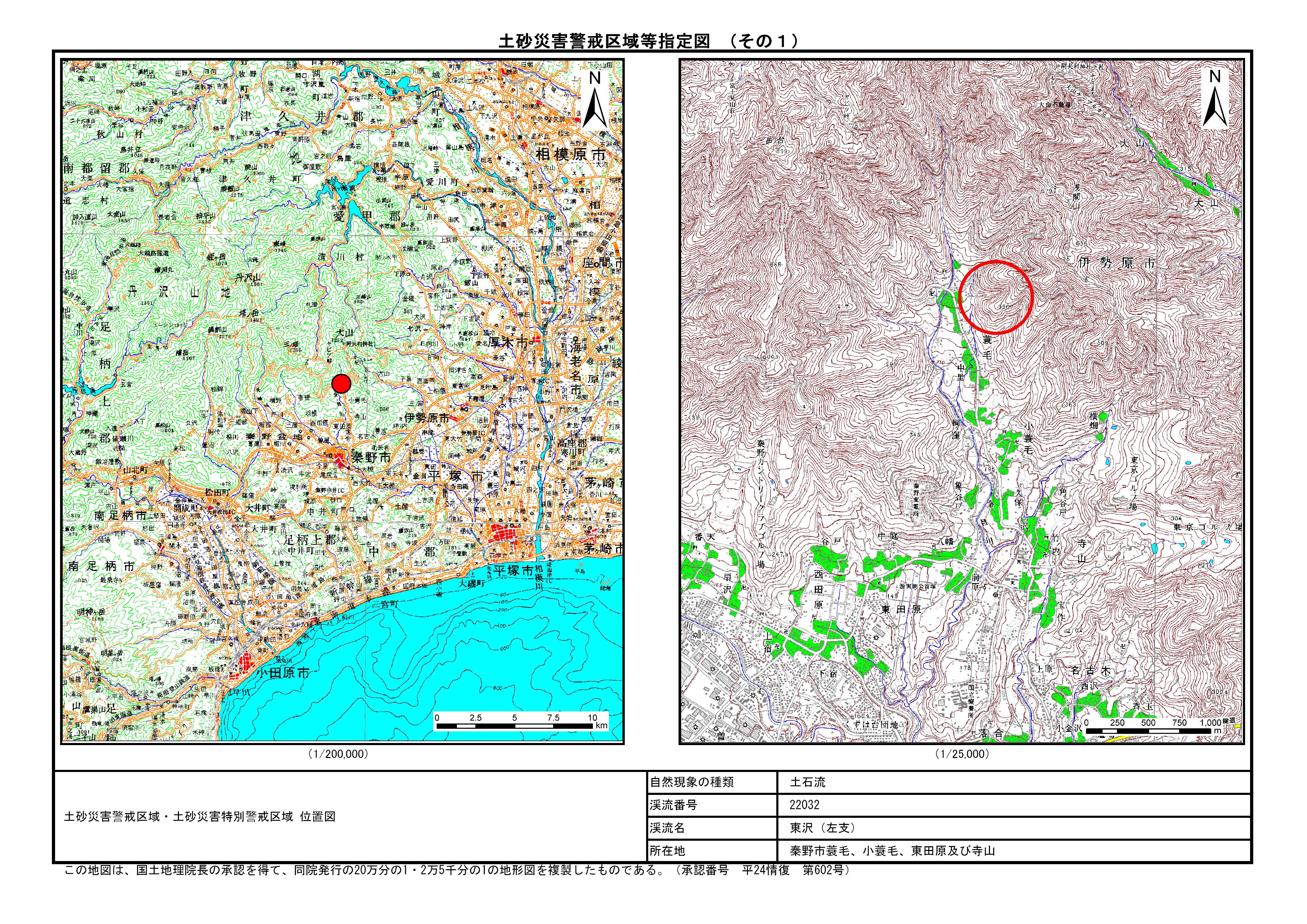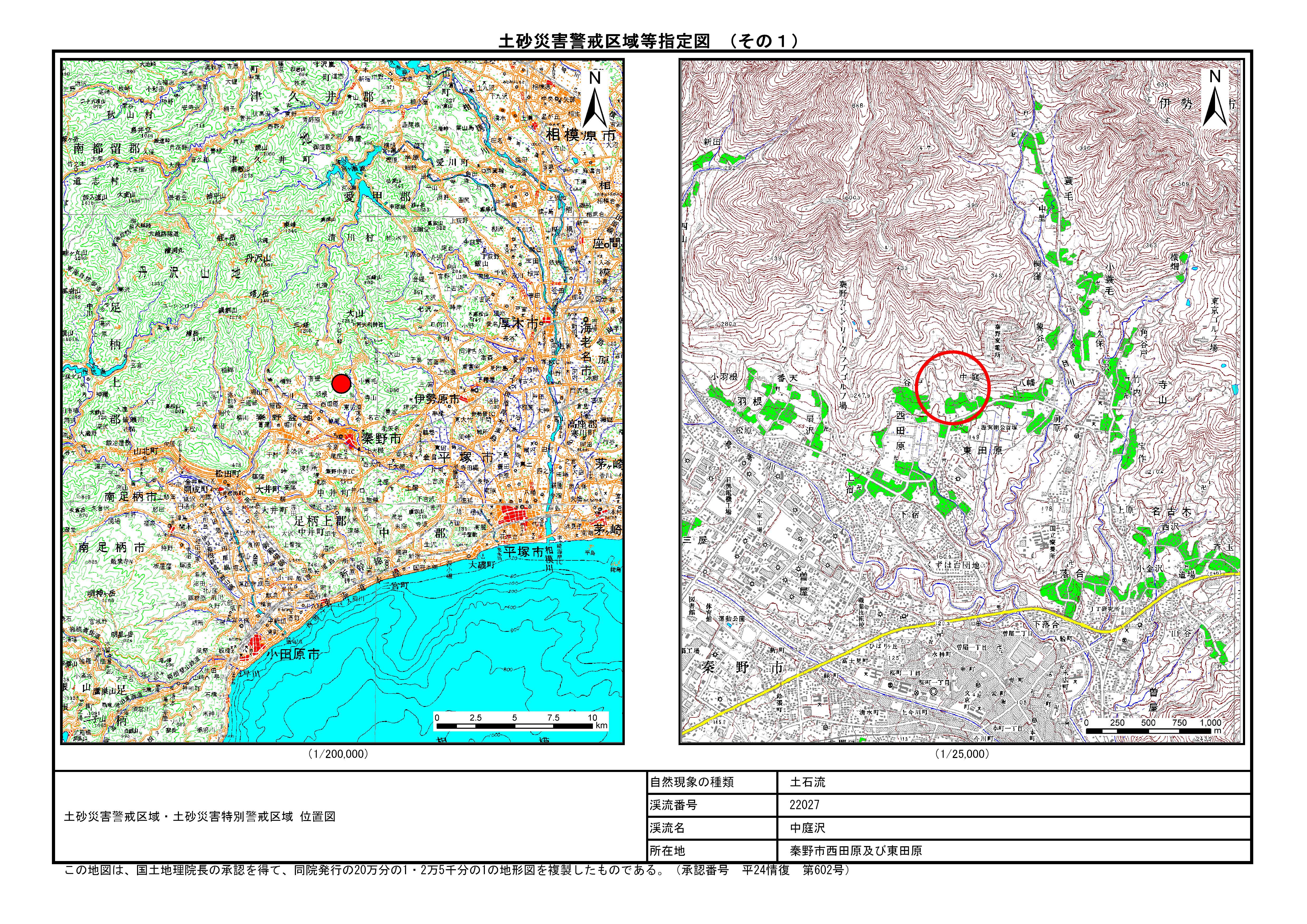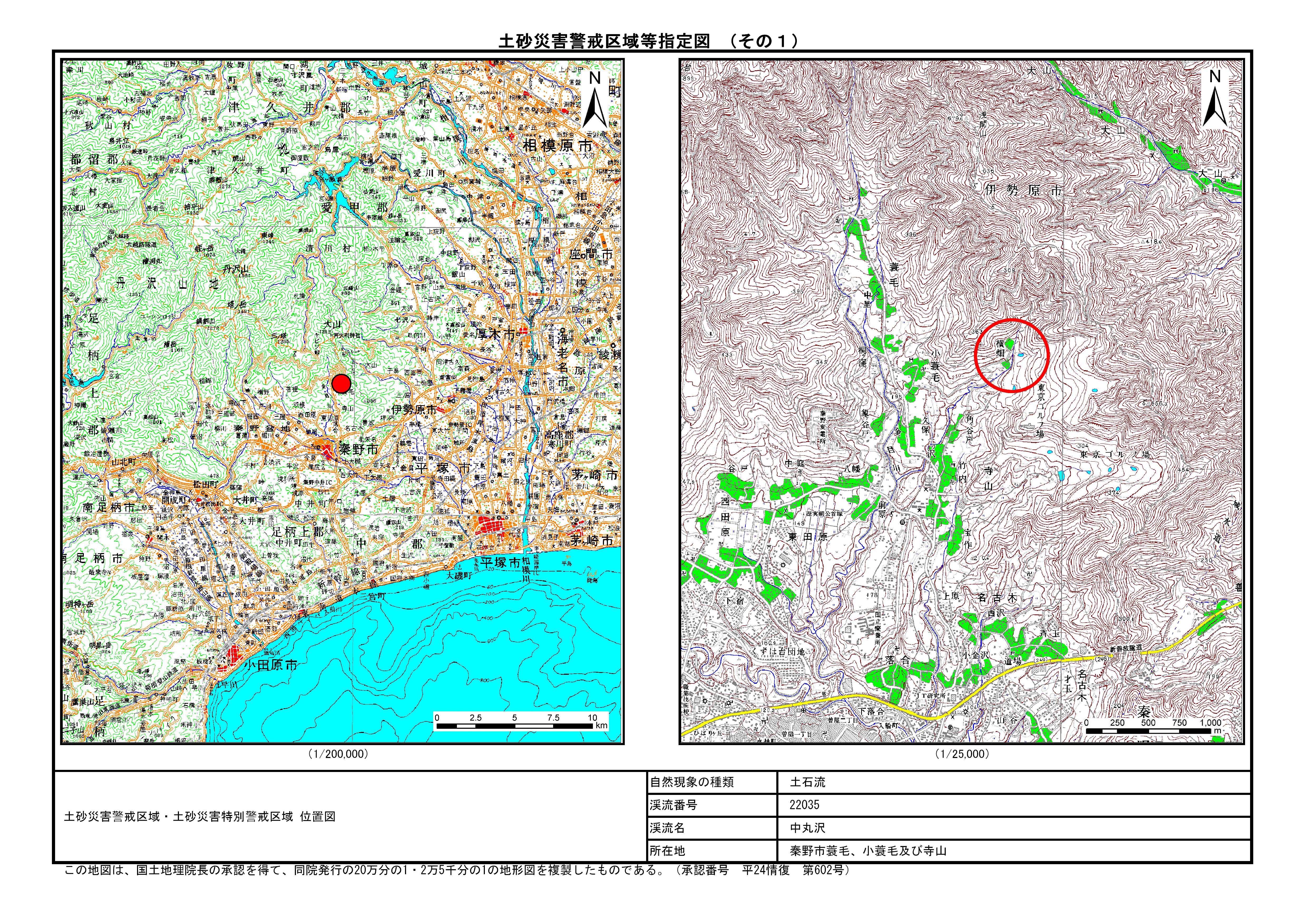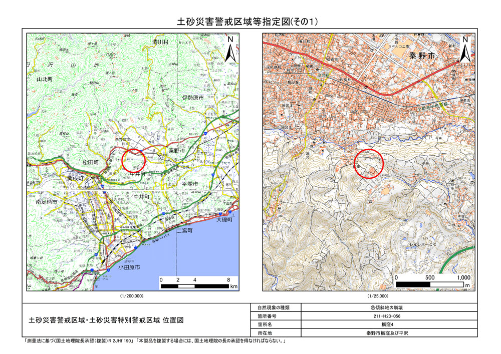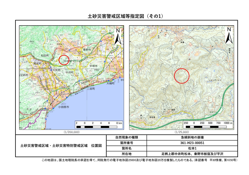 栃窪及び平沢 ※中井町と秦野市に跨るため 両市町に掲載