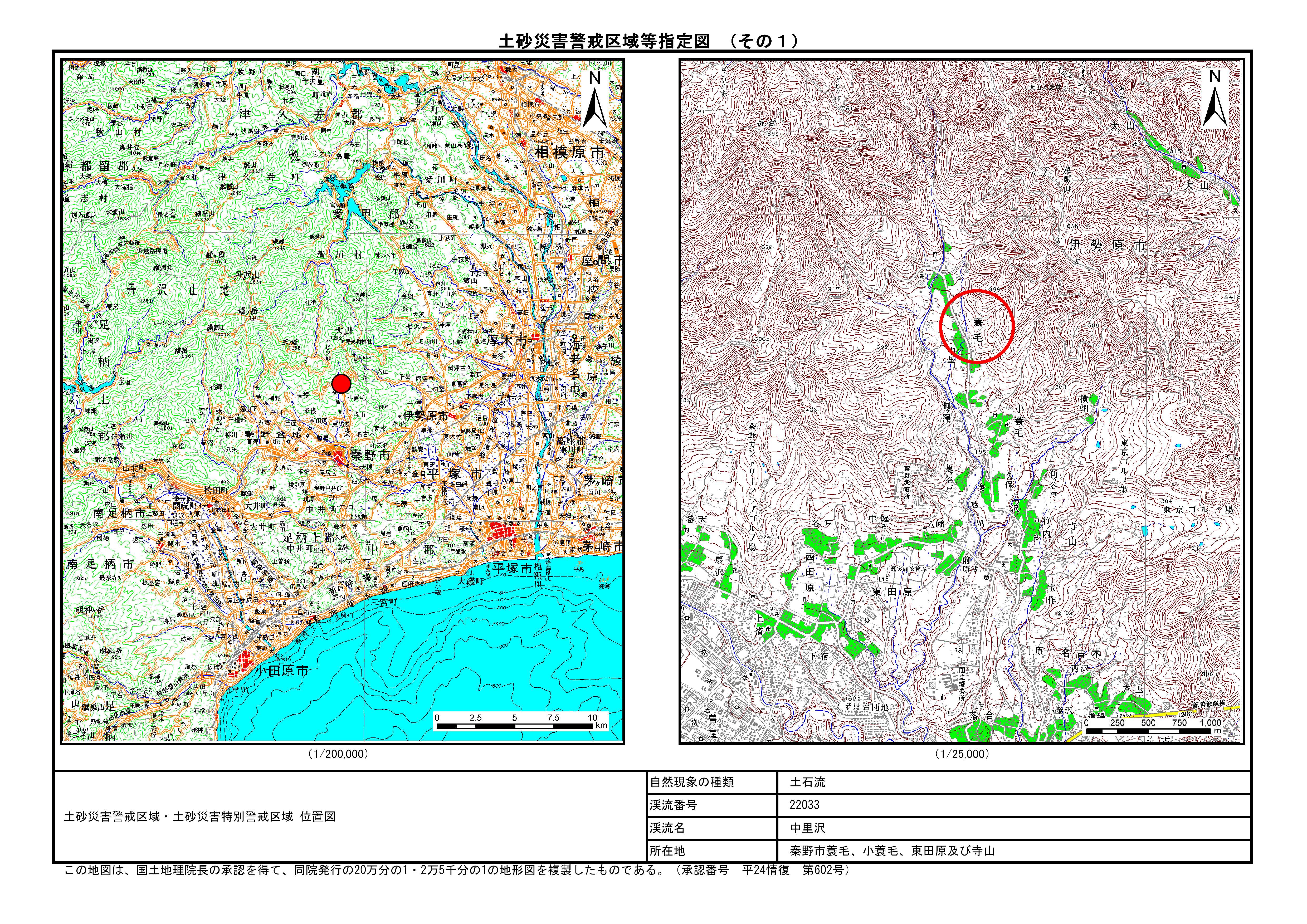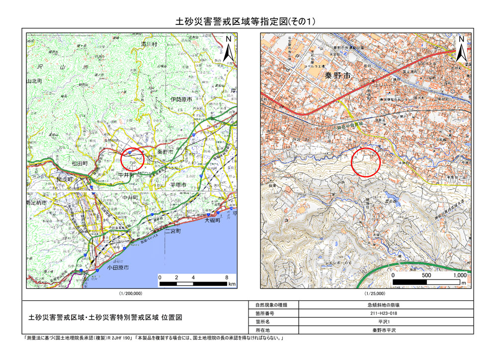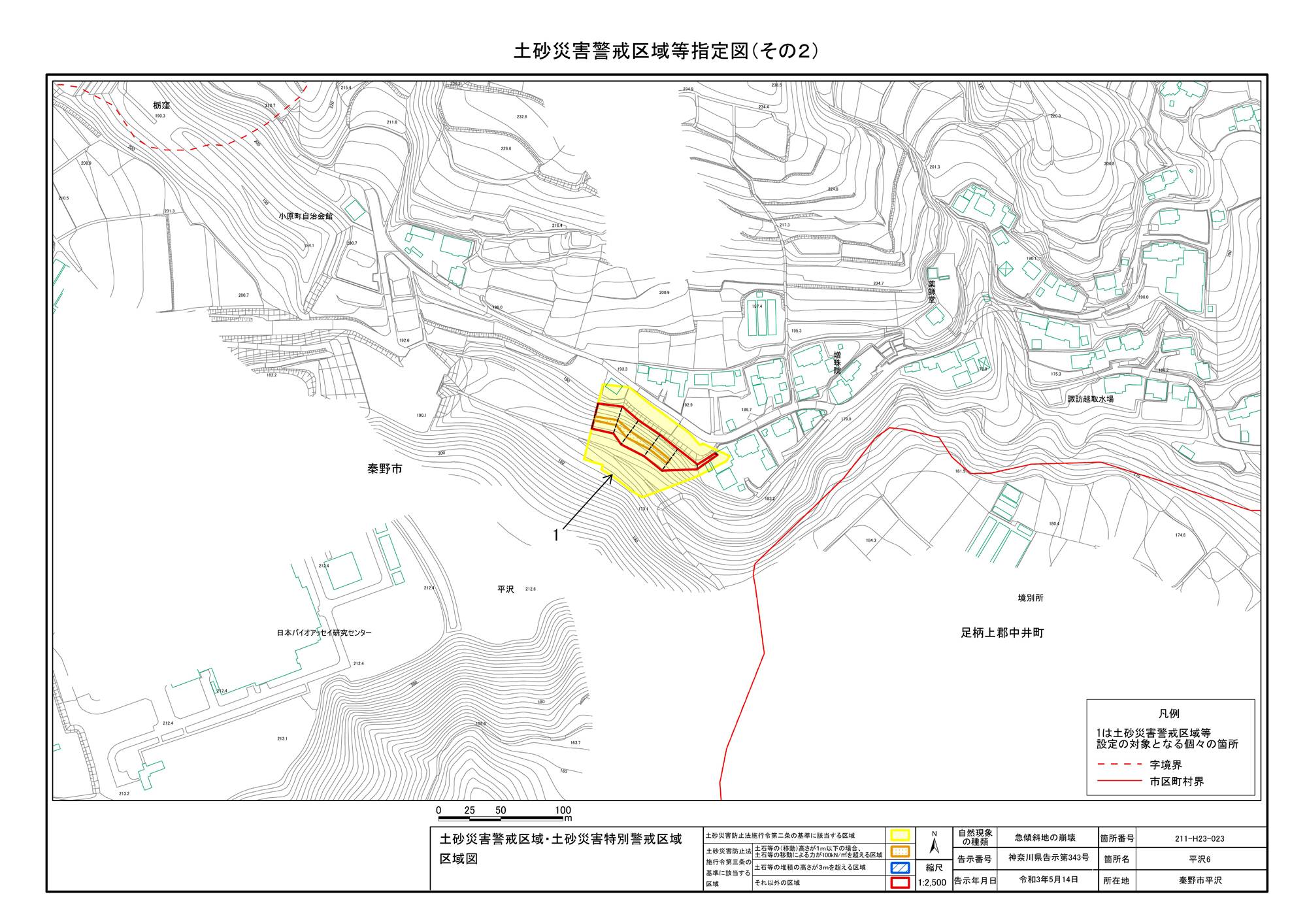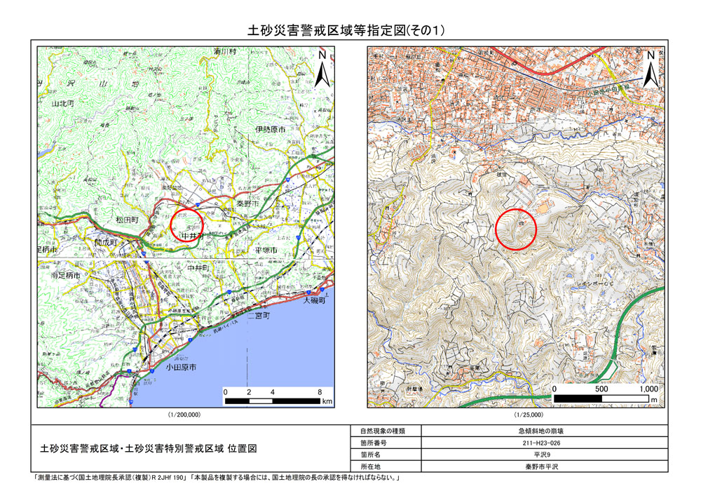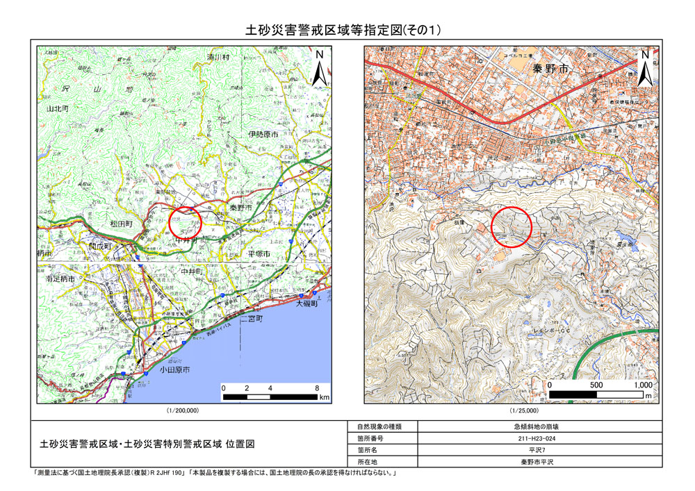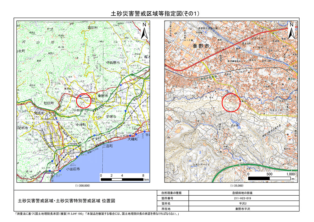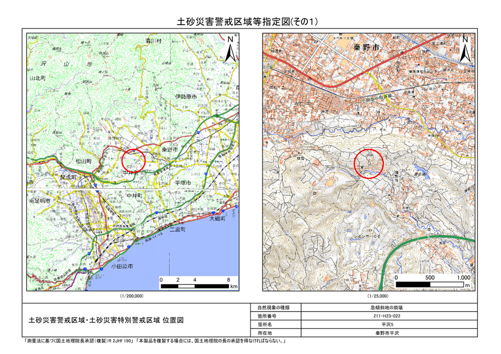 栃窪及び平沢 ※中井町と秦野市に跨るため 両市町に掲載
