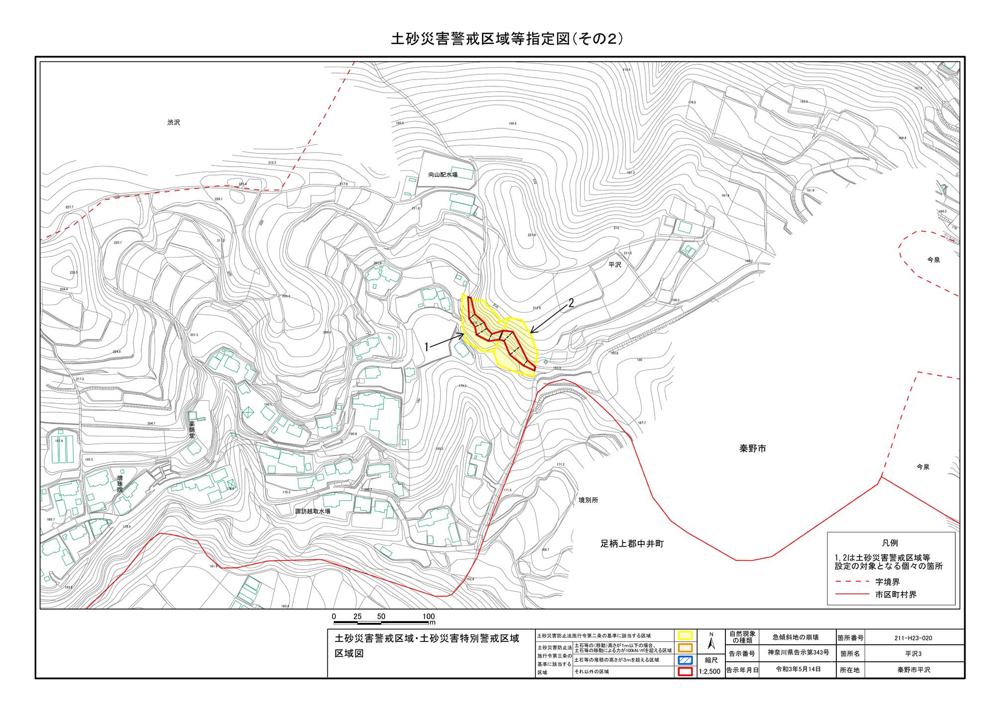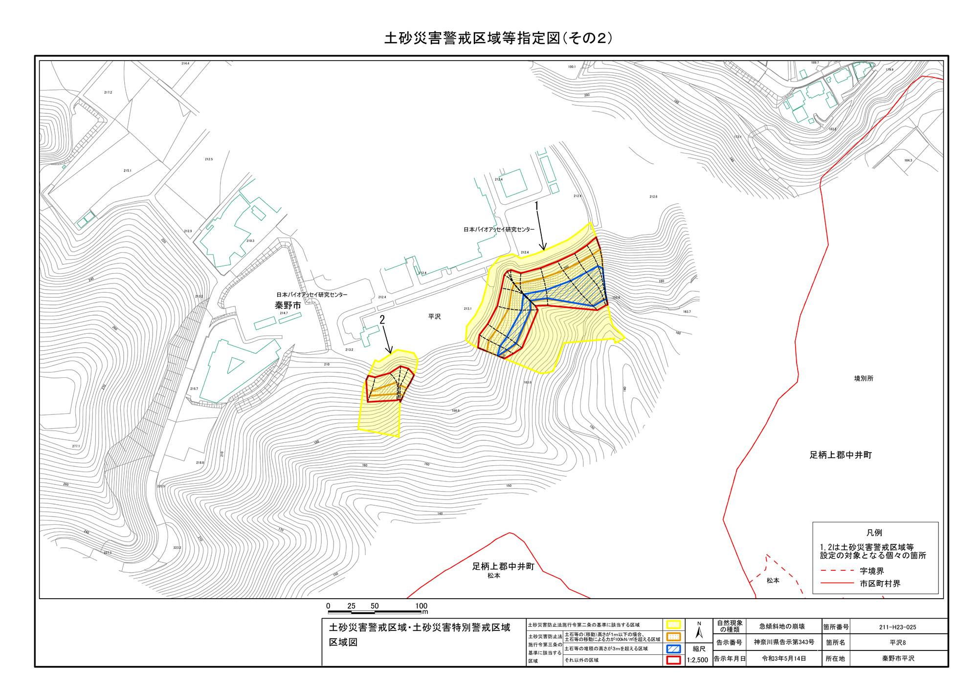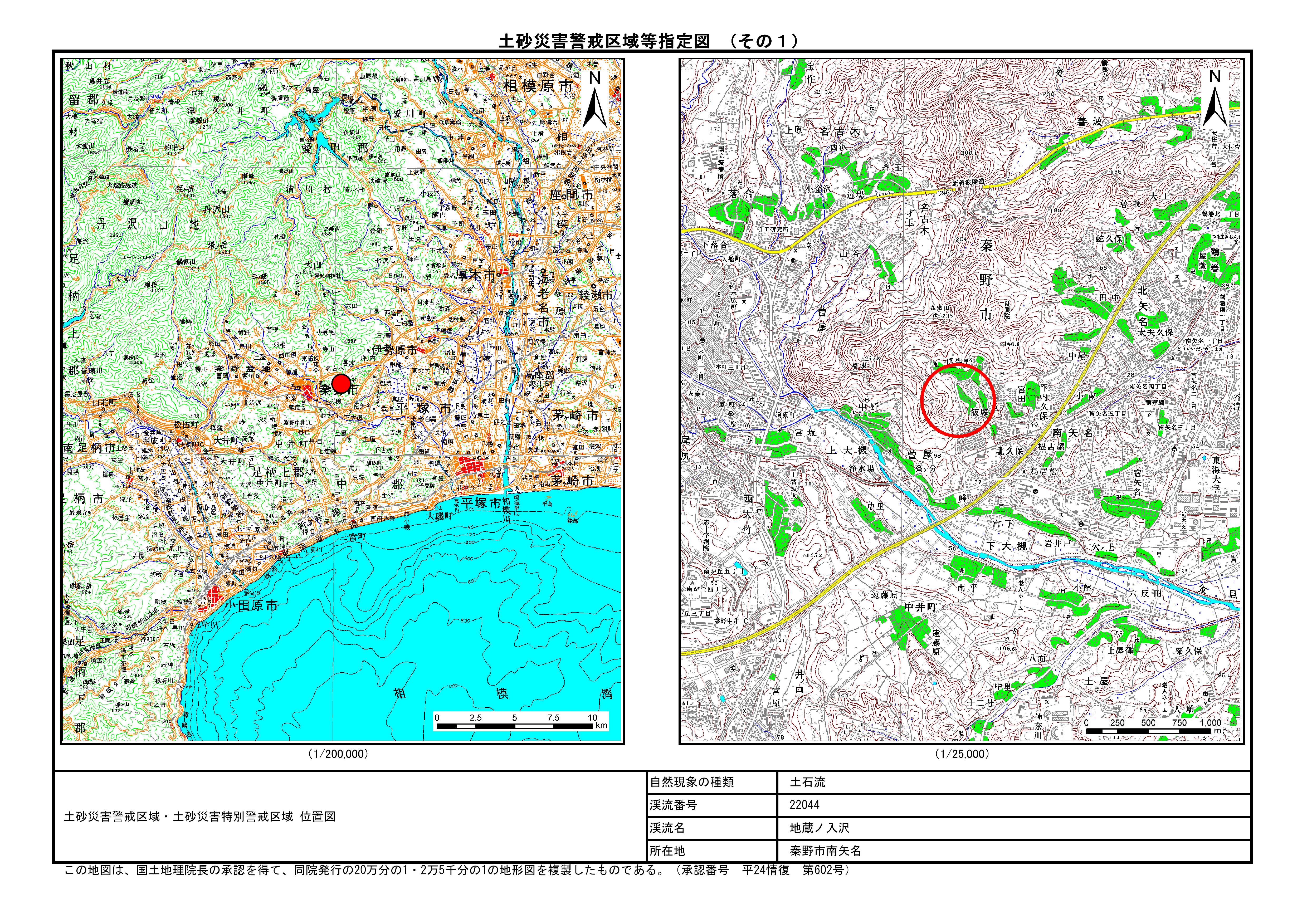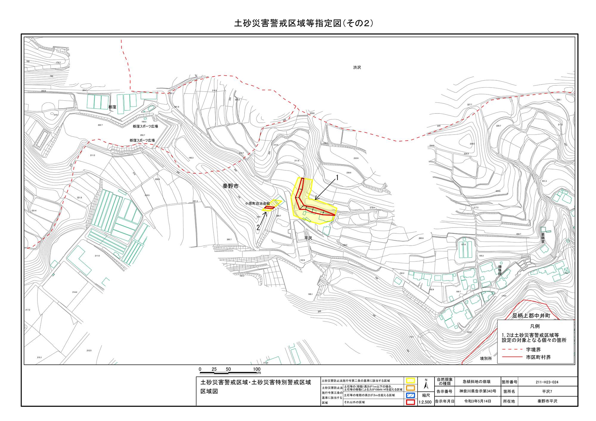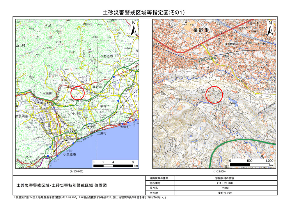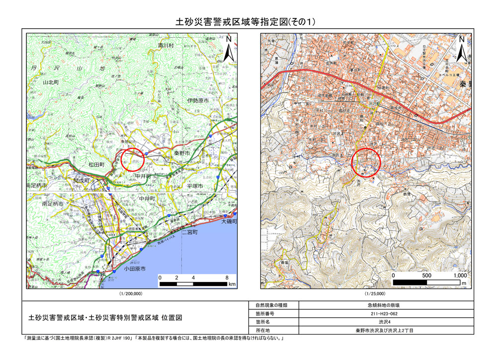 栃窪及び平沢 ※中井町と秦野市に跨るため 両市町に掲載