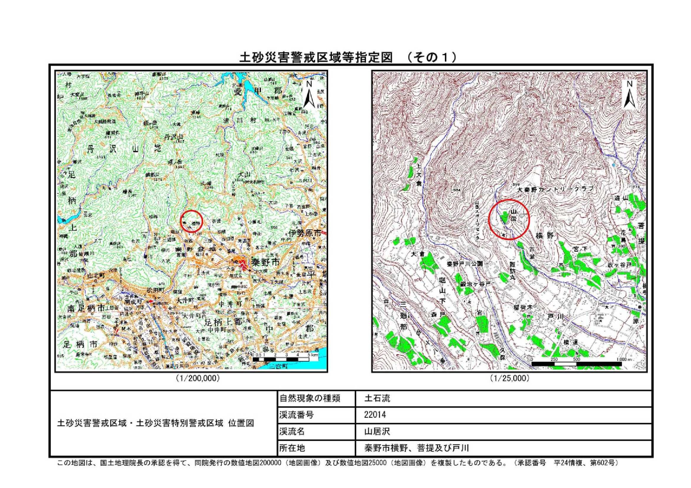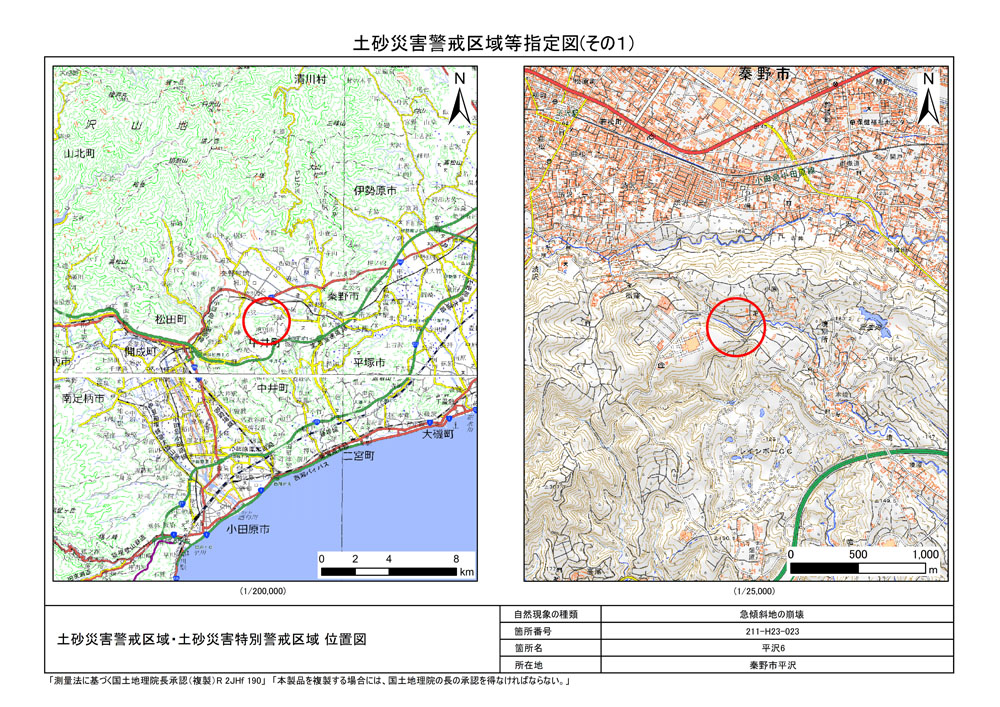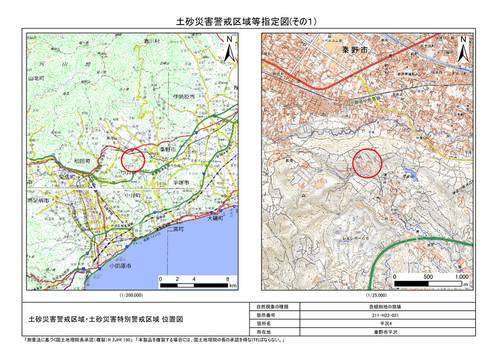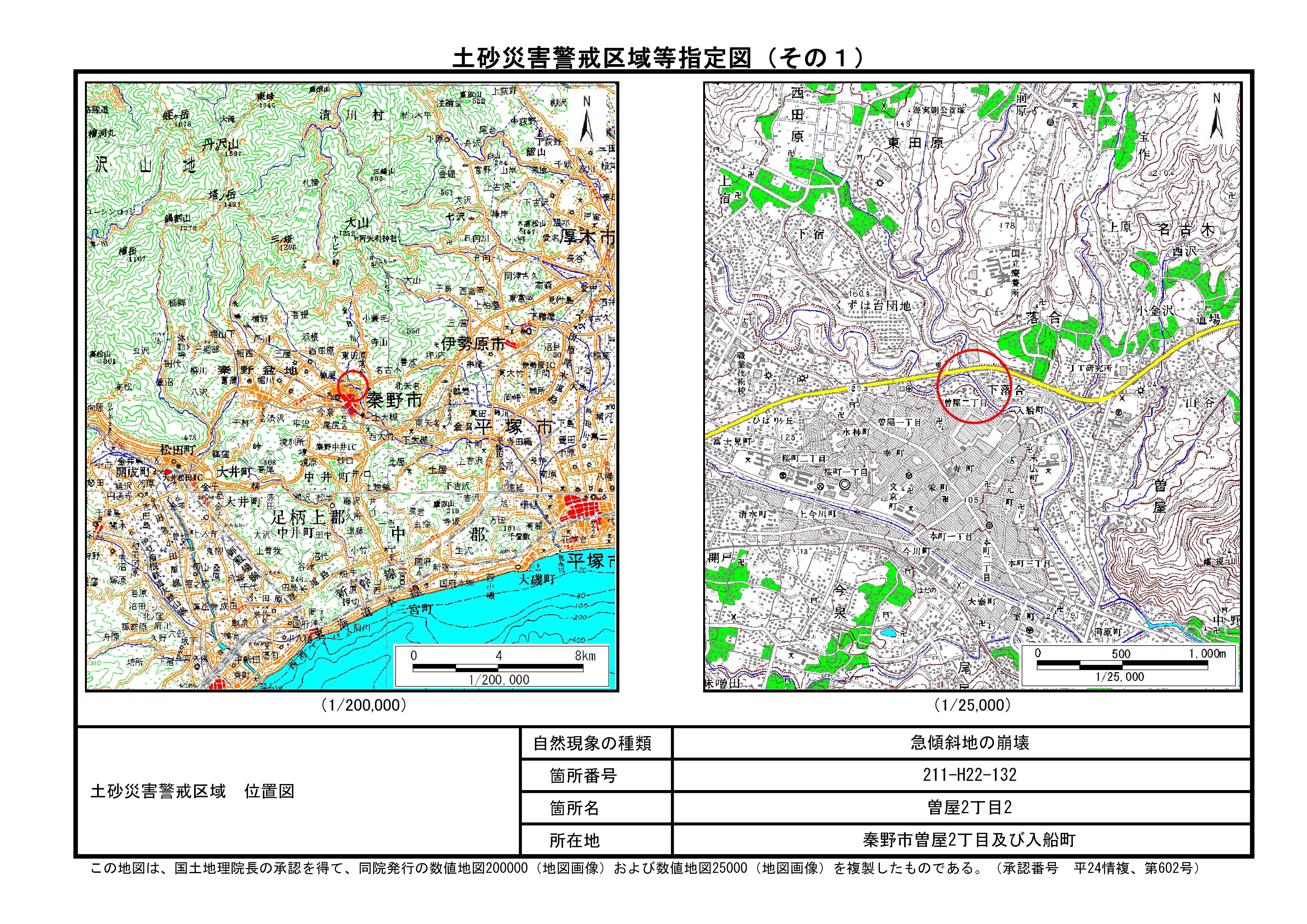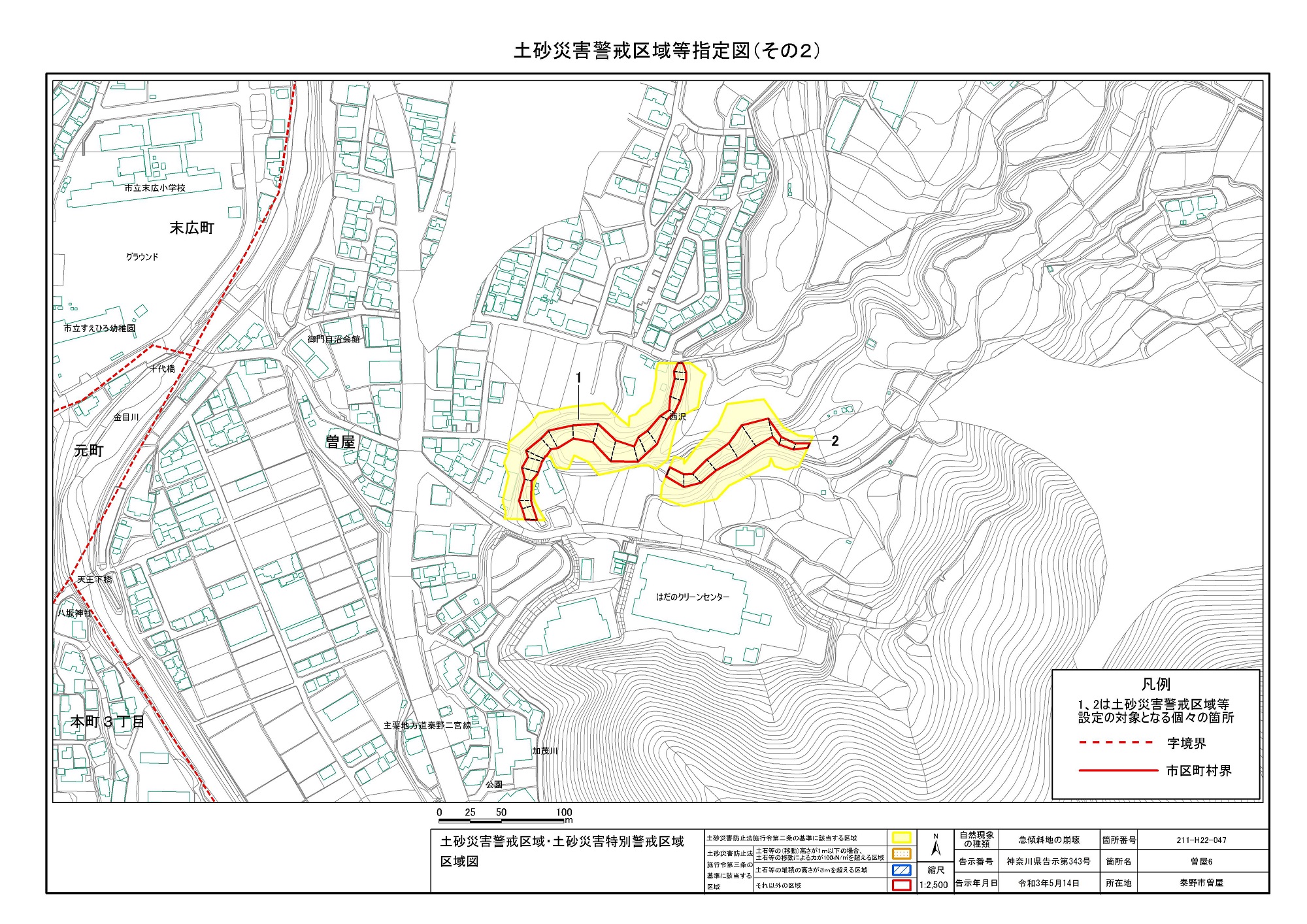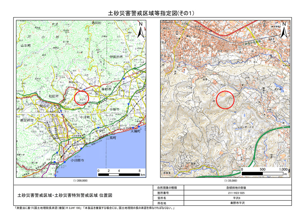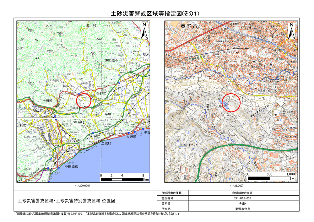 栃窪及び平沢 ※中井町と秦野市に跨るため 両市町に掲載
