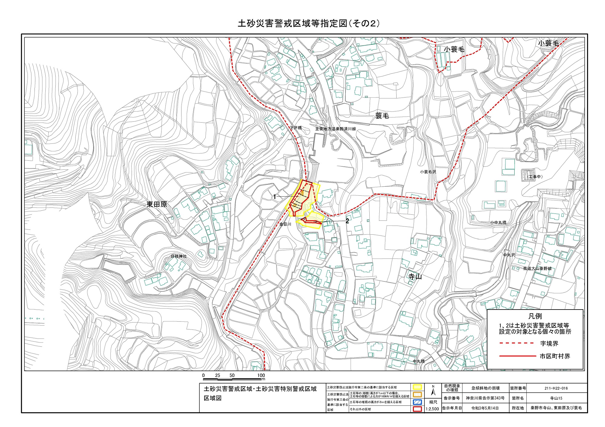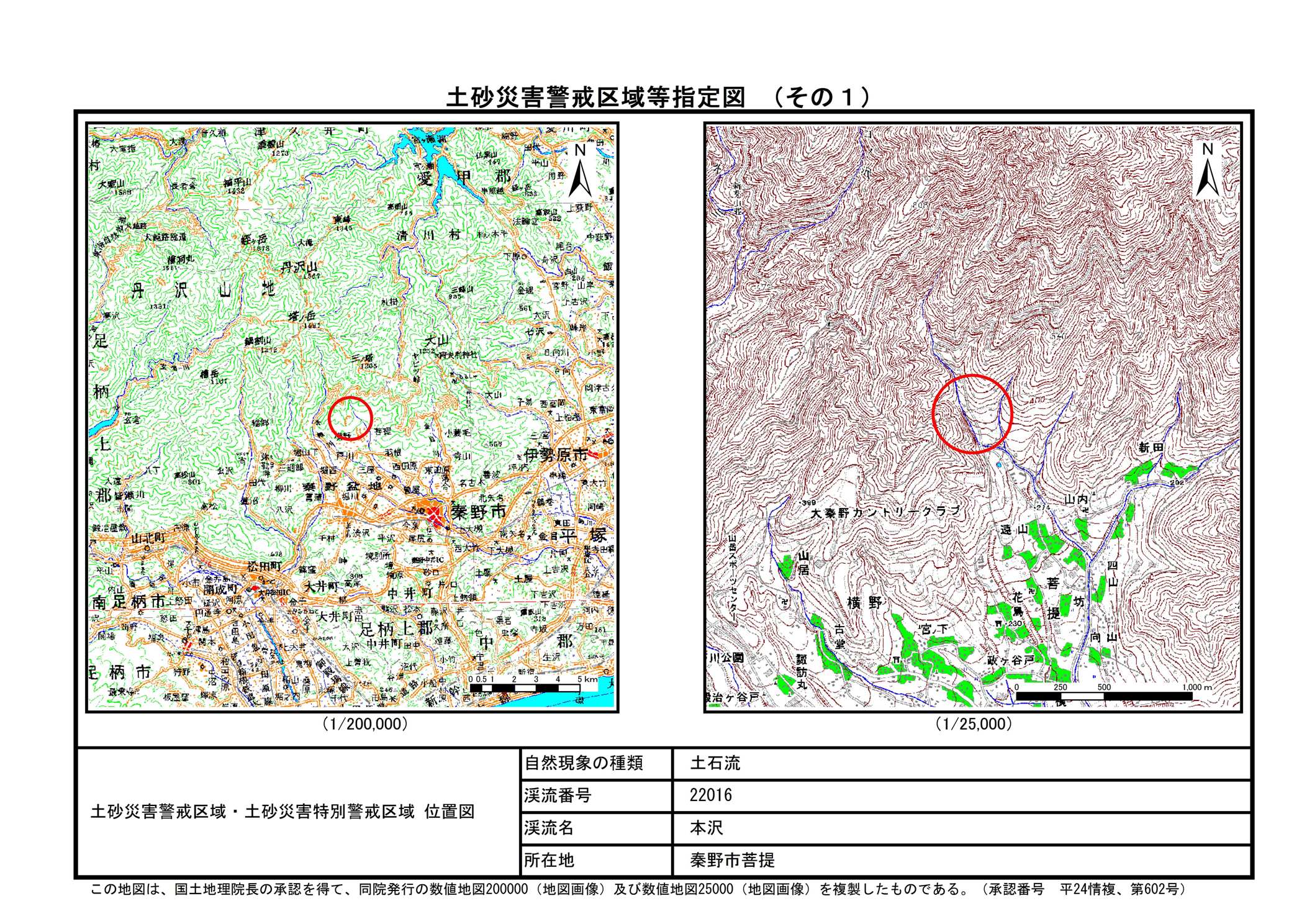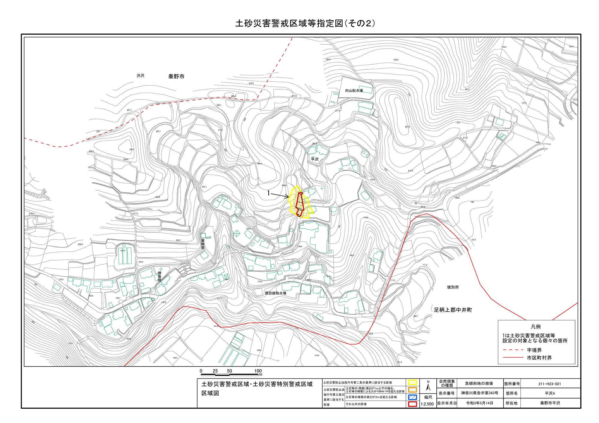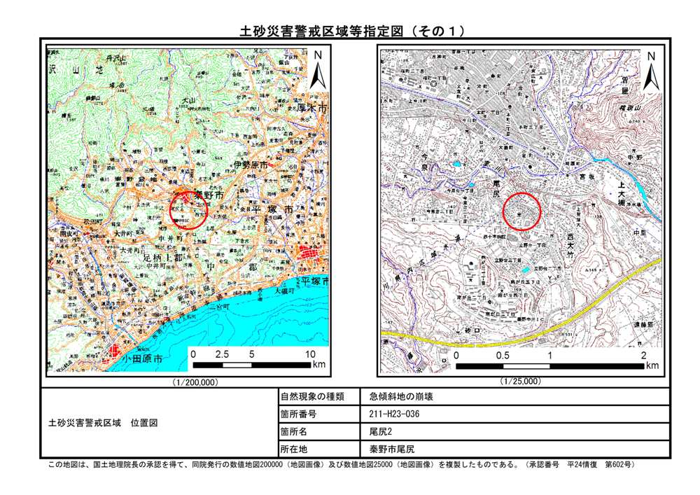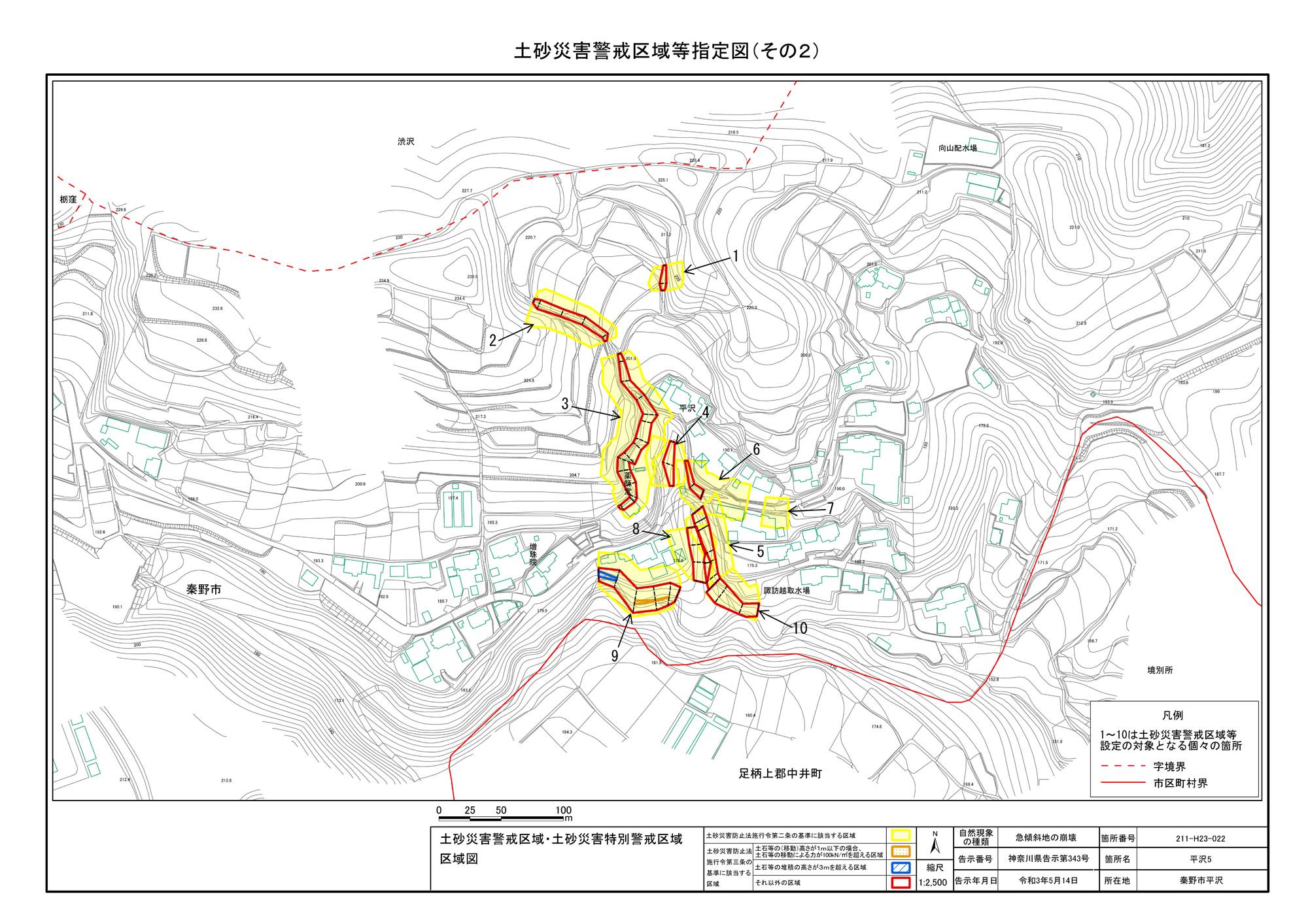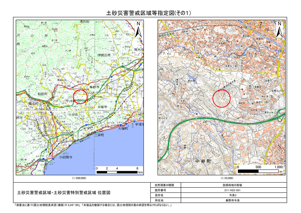 栃窪及び平沢 ※中井町と秦野市に跨るため 両市町に掲載