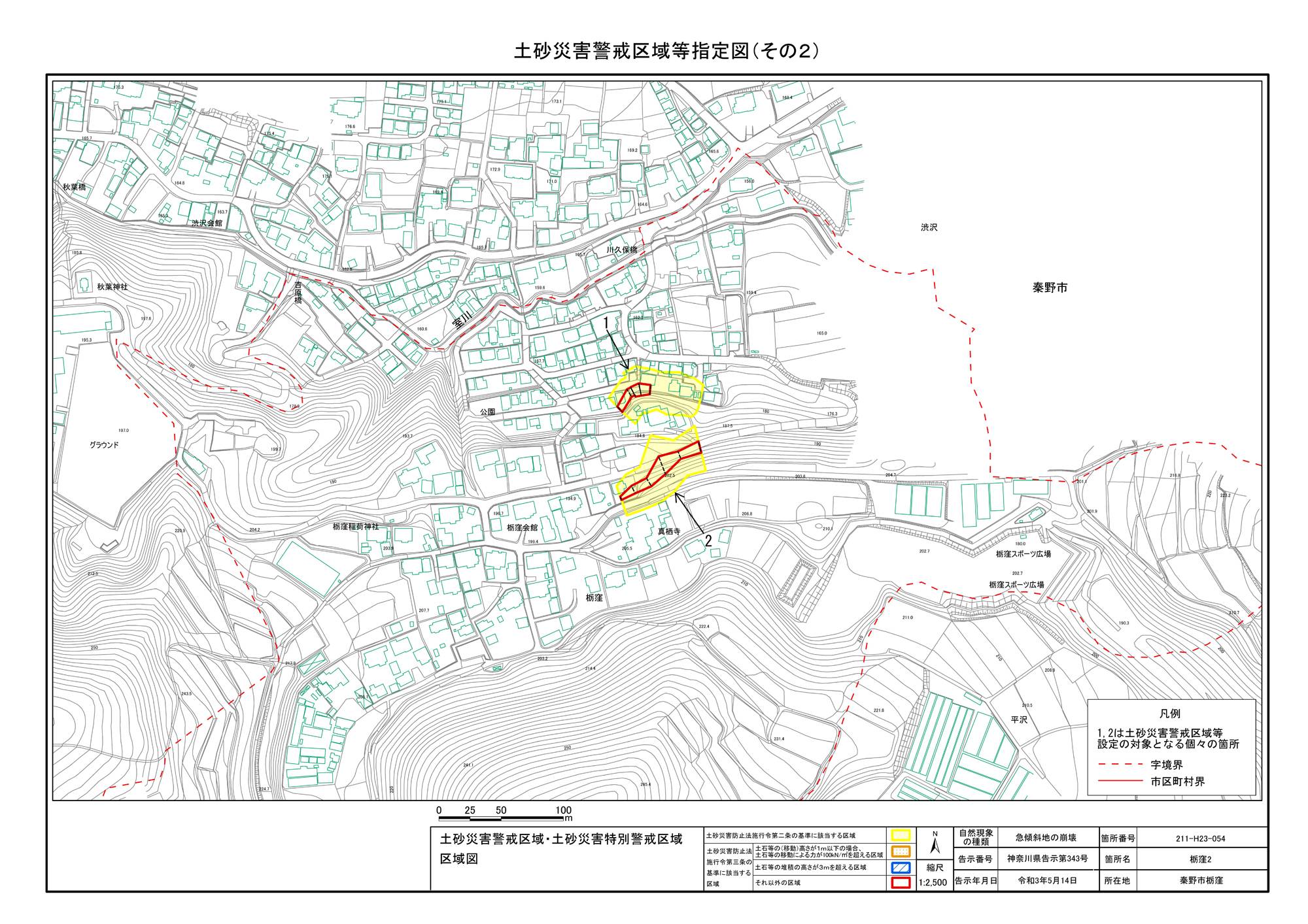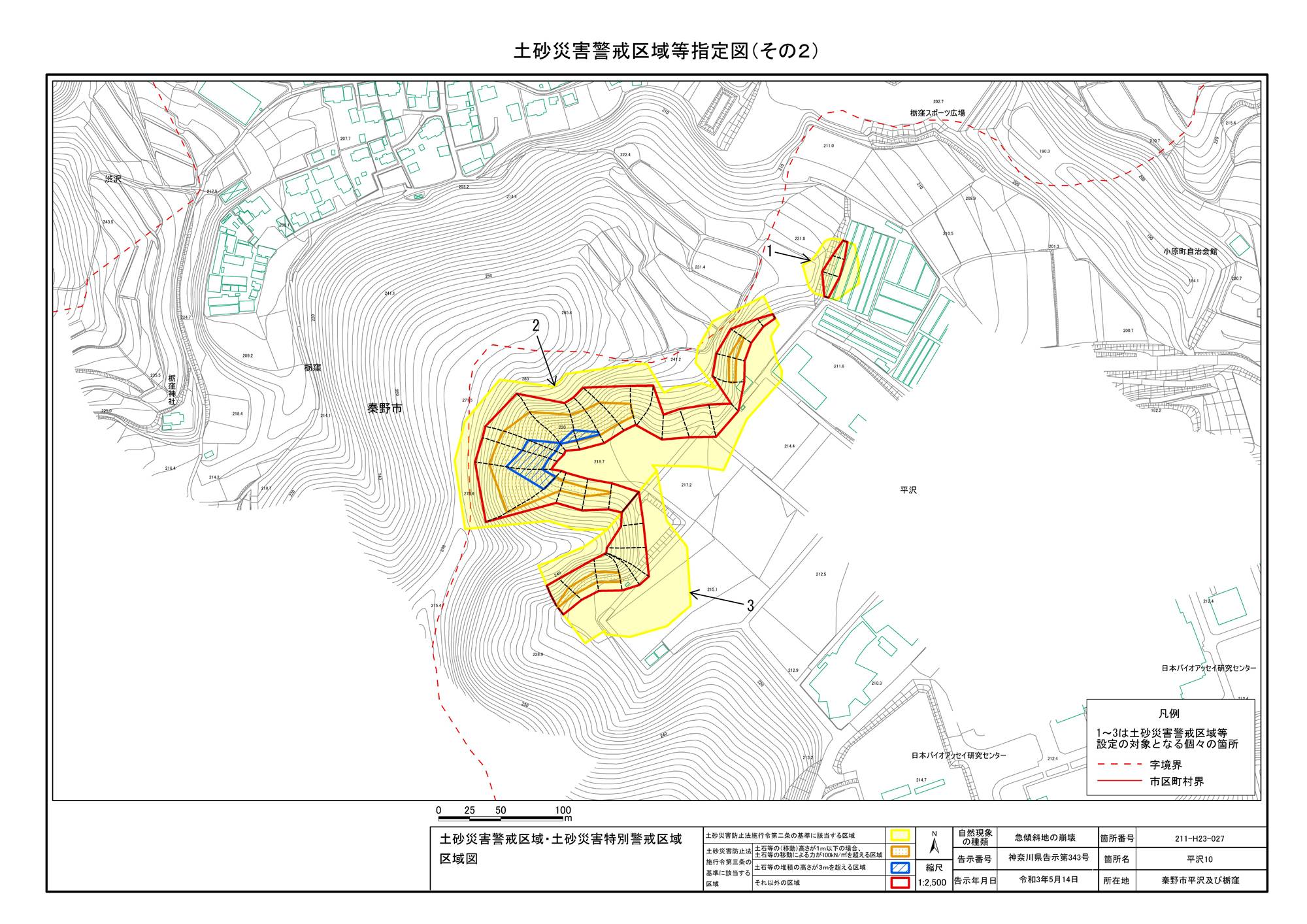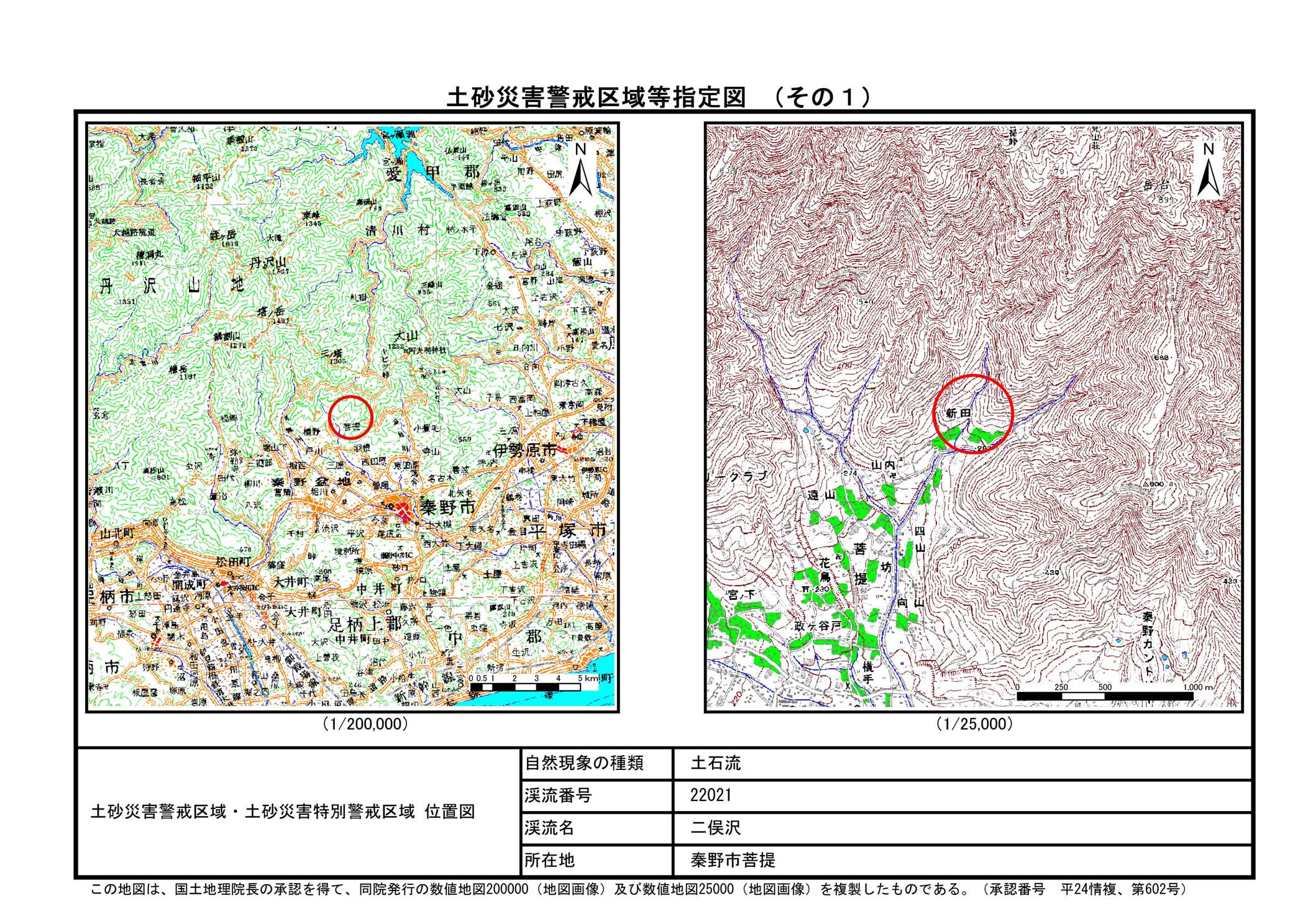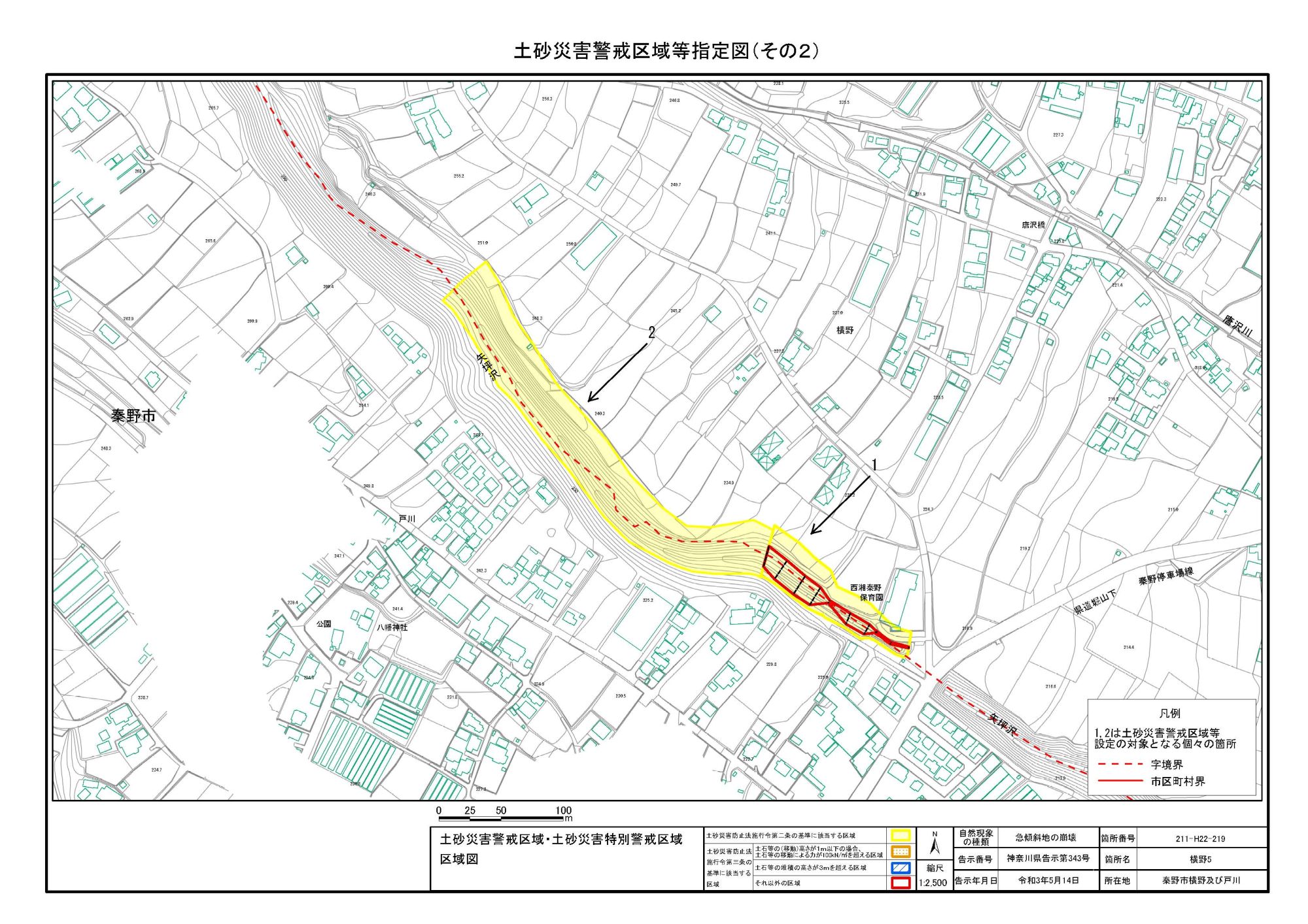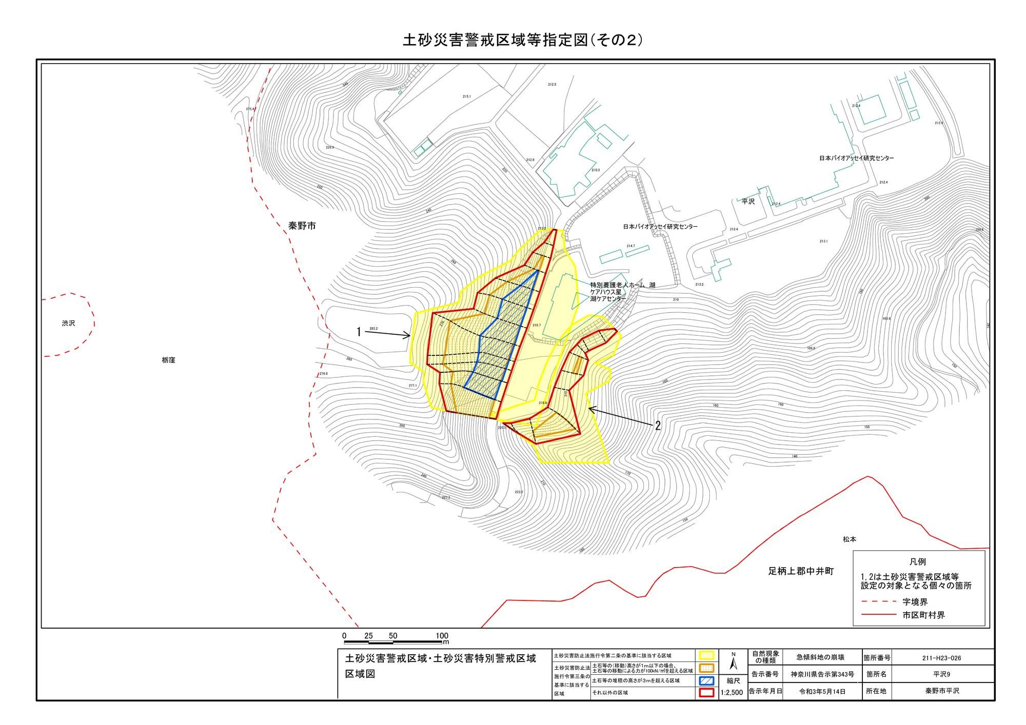 栃窪及び平沢 ※中井町と秦野市に跨るため 両市町に掲載