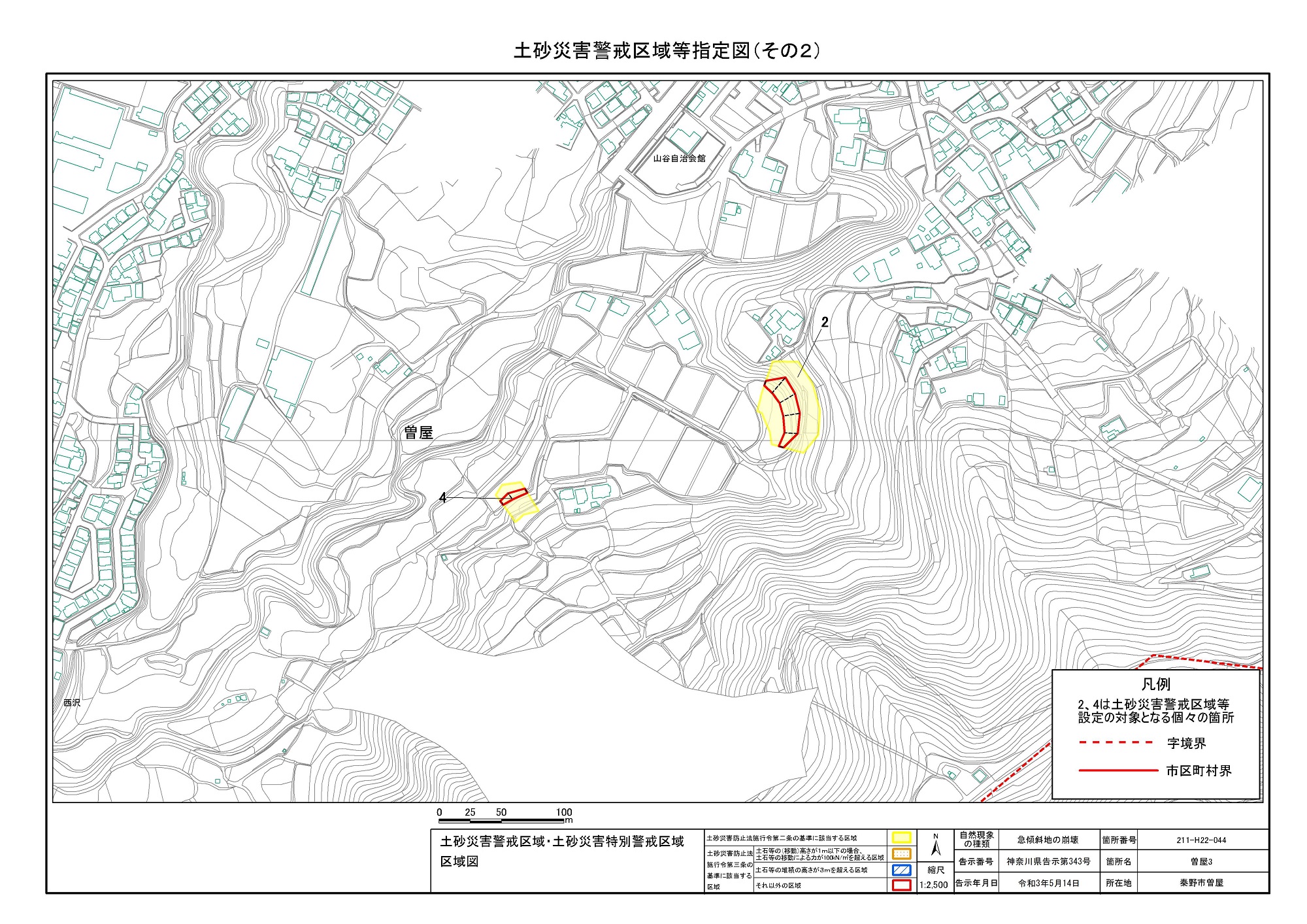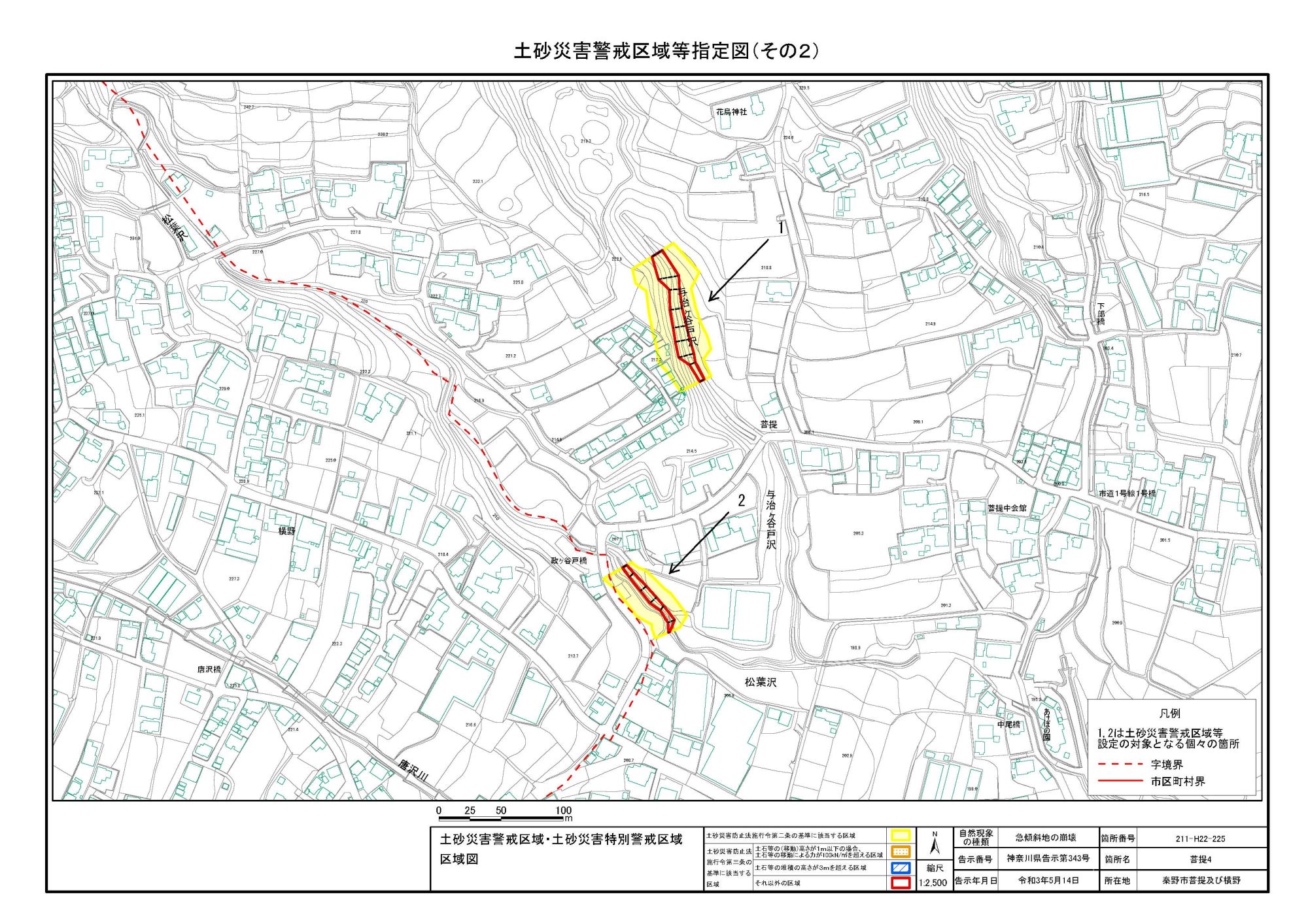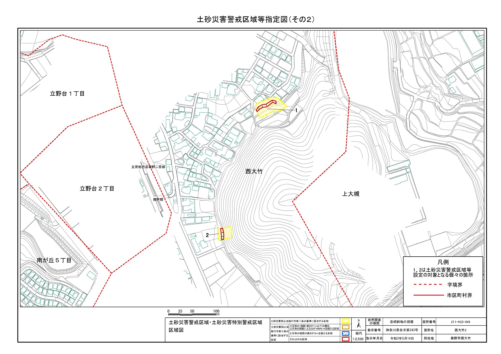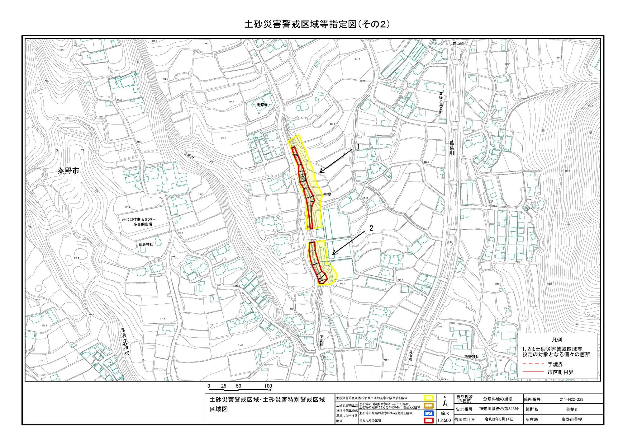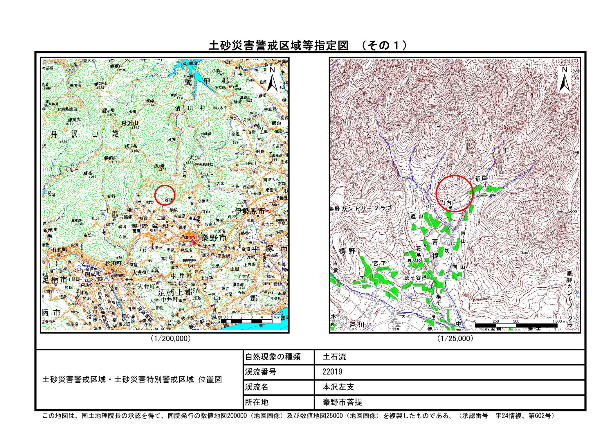 栃窪及び平沢 ※中井町と秦野市に跨るため 両市町に掲載