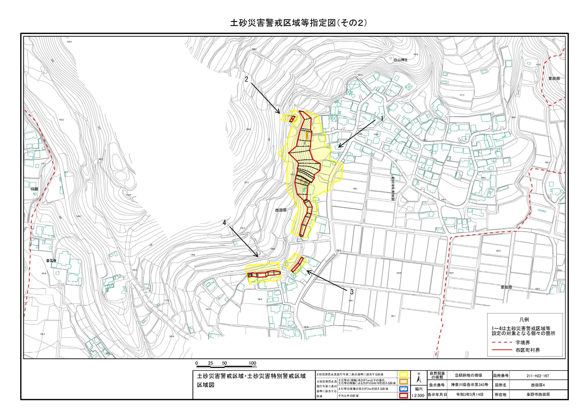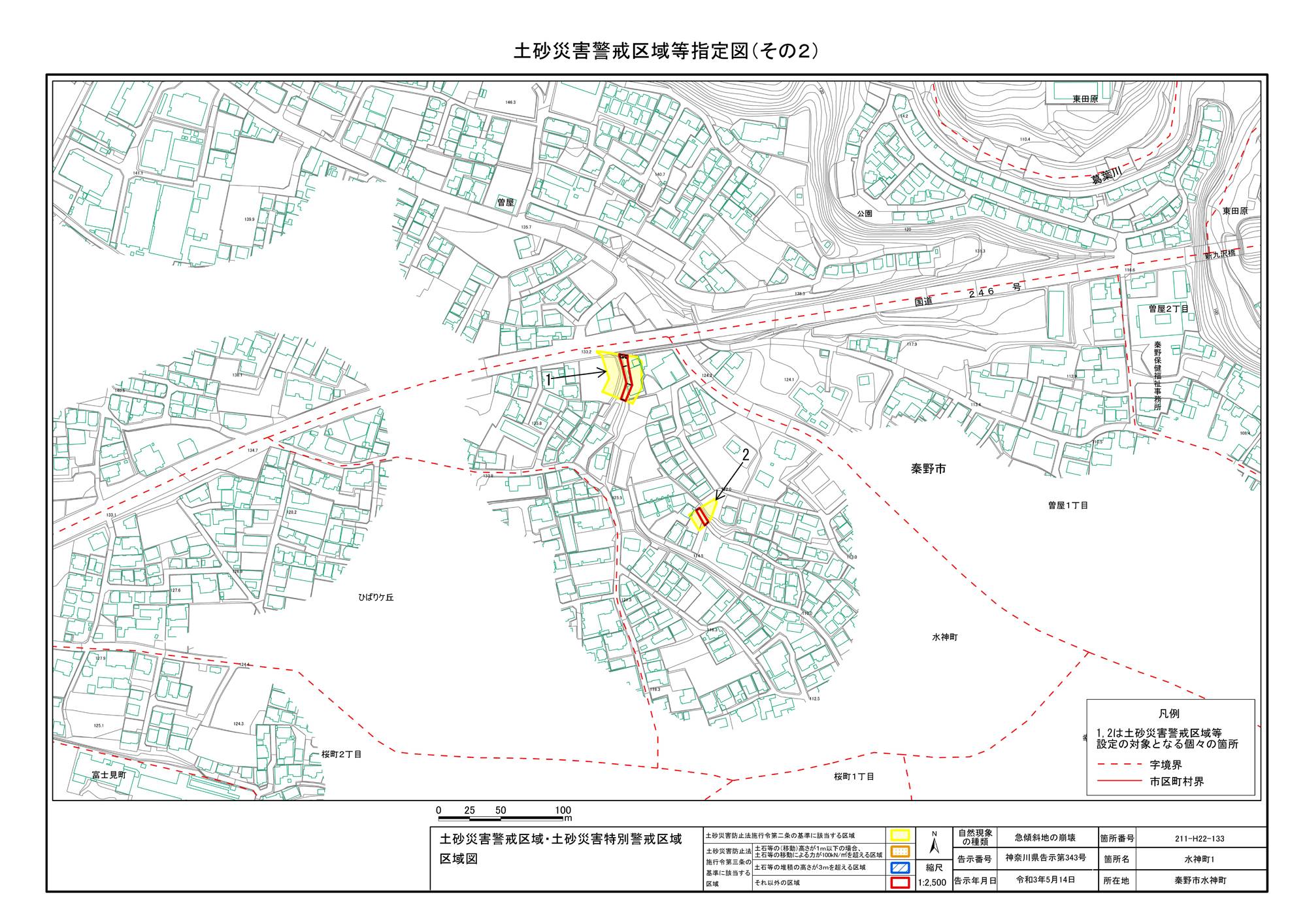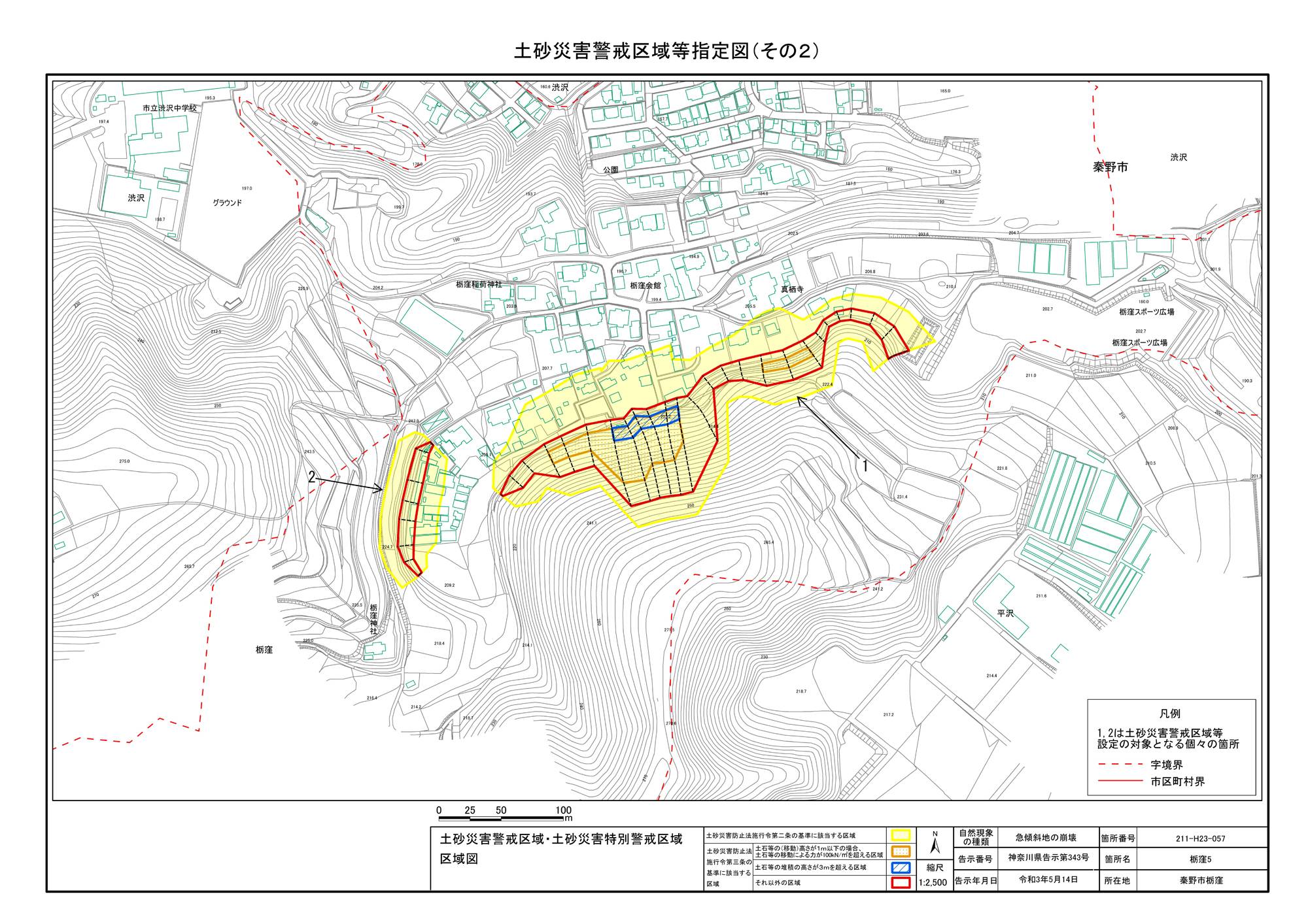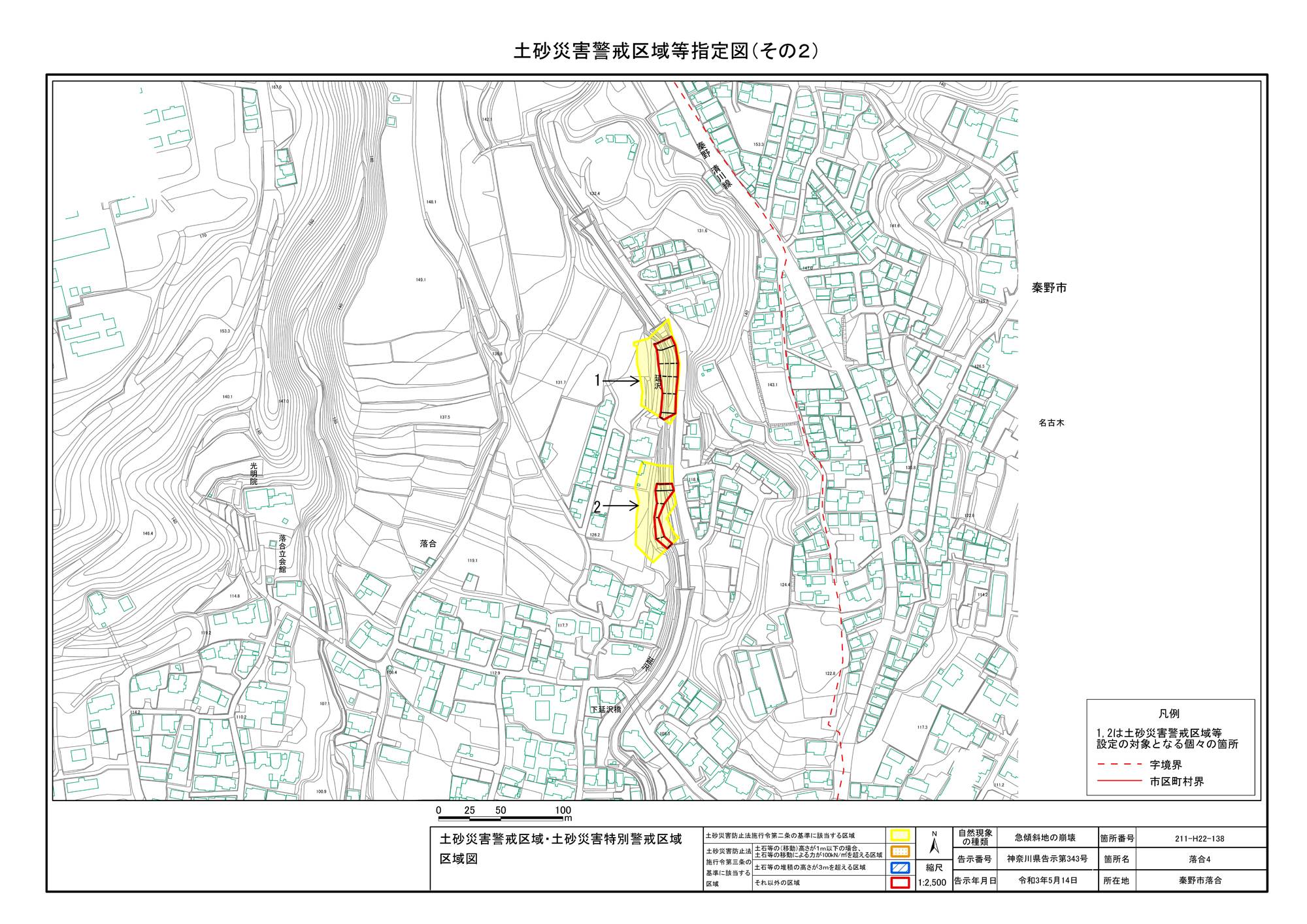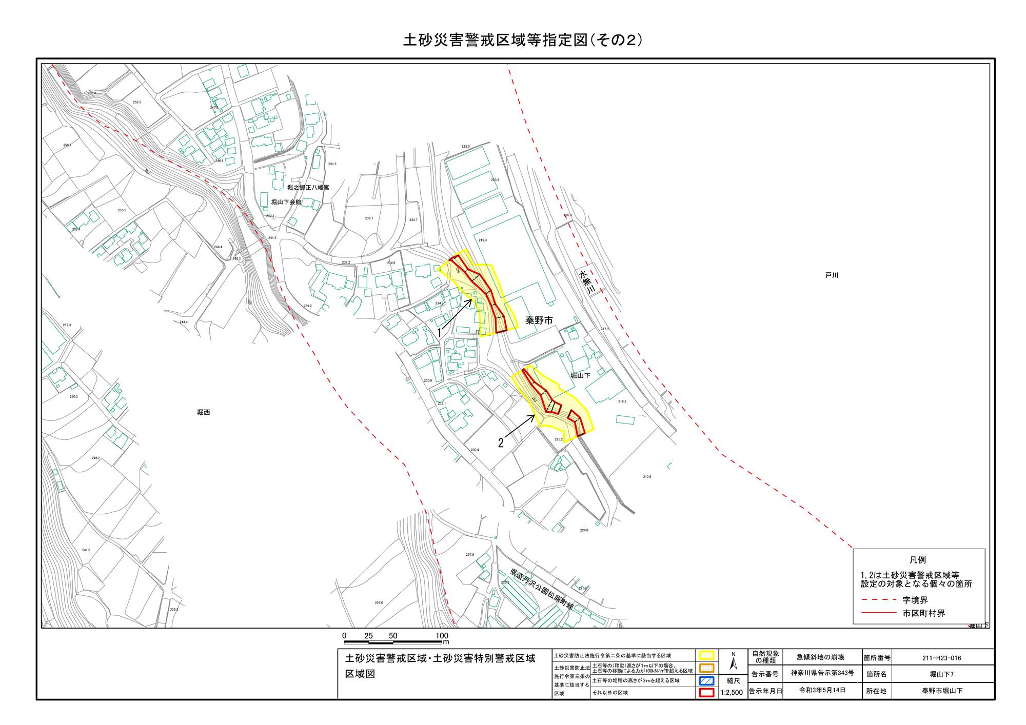 栃窪及び平沢 ※中井町と秦野市に跨るため 両市町に掲載