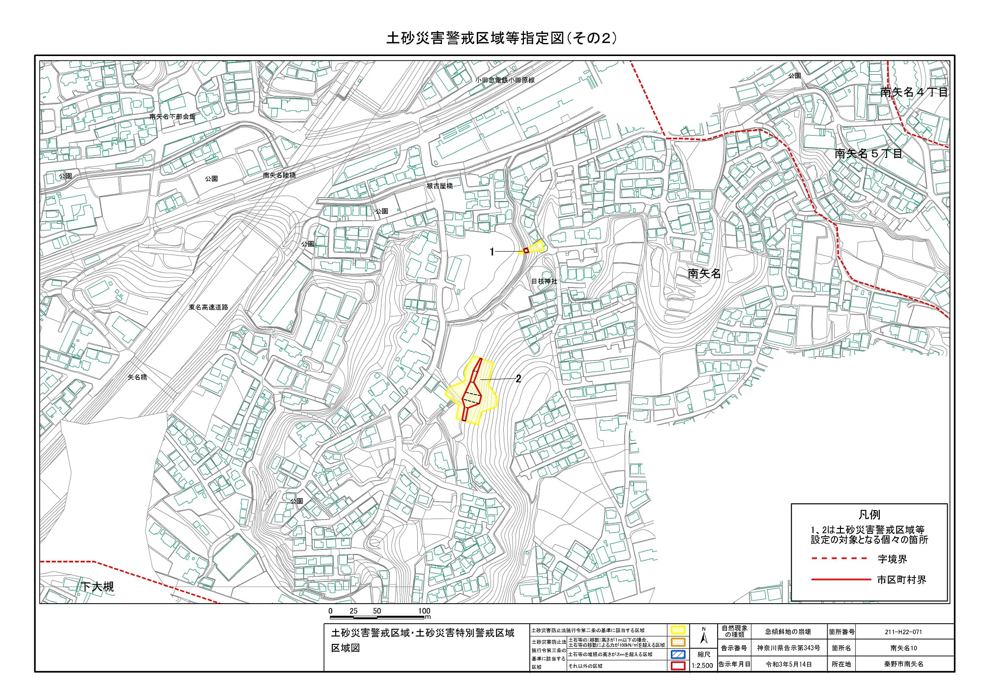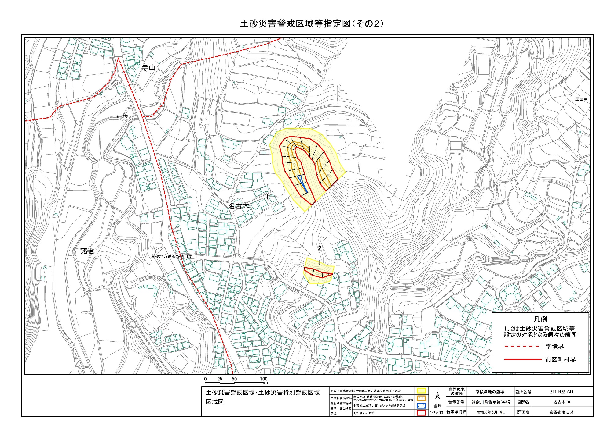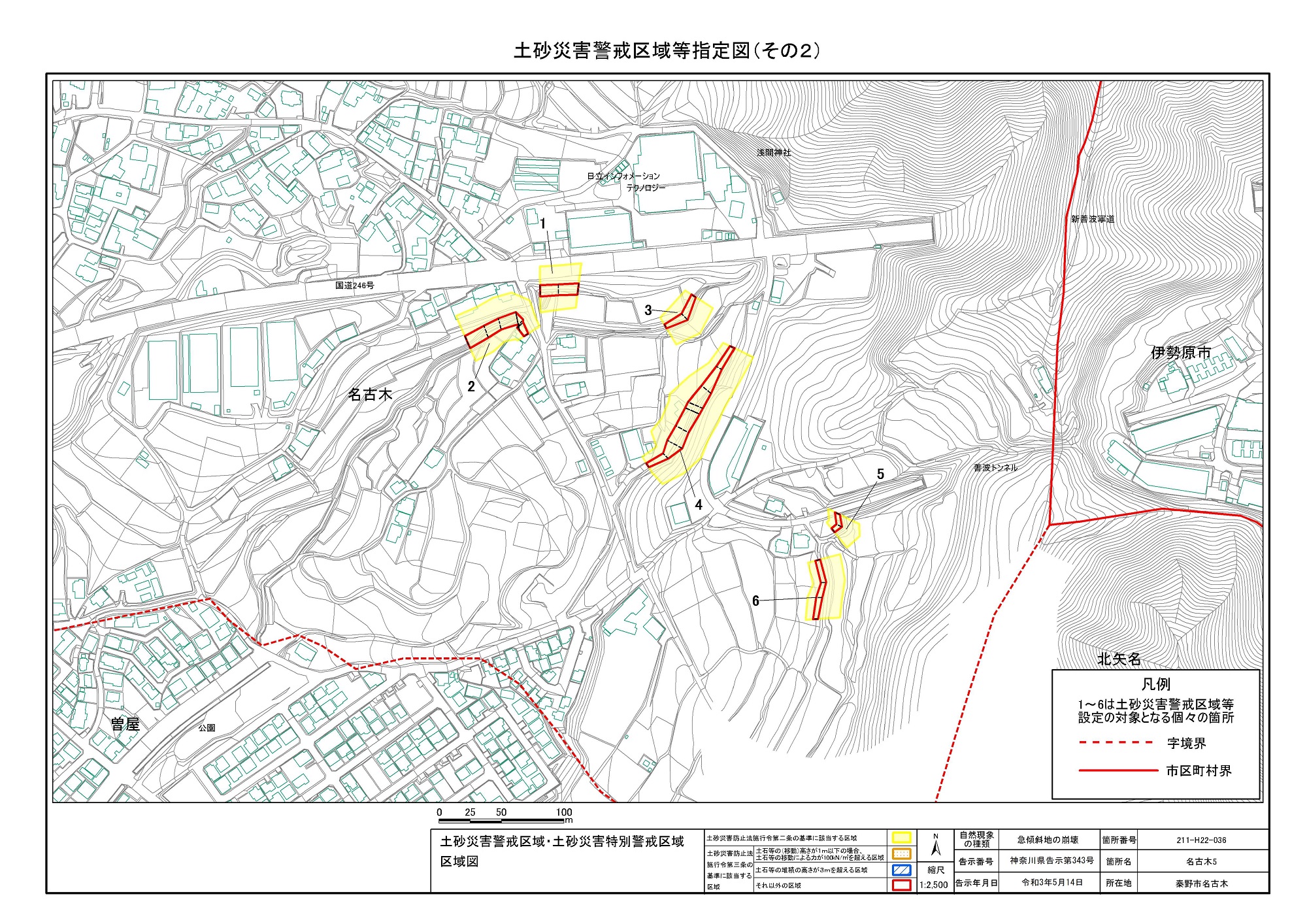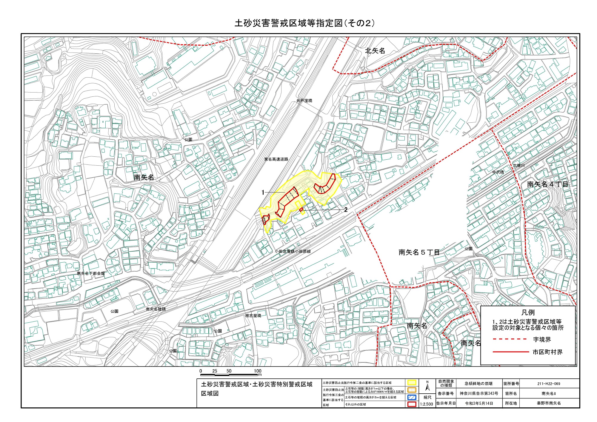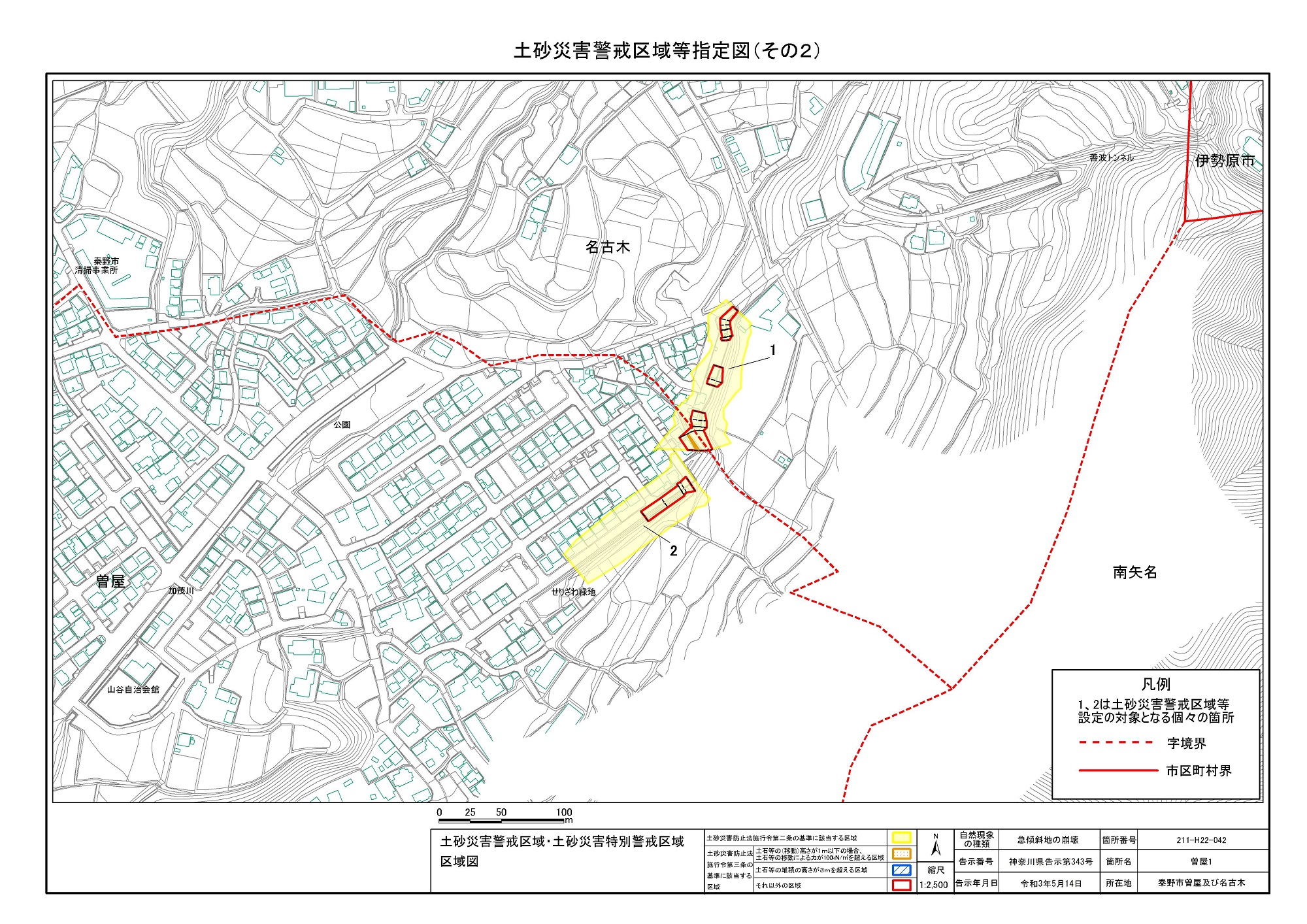 名古木及び南矢名 ※伊勢原市と秦野市に跨るため 両市町に掲載