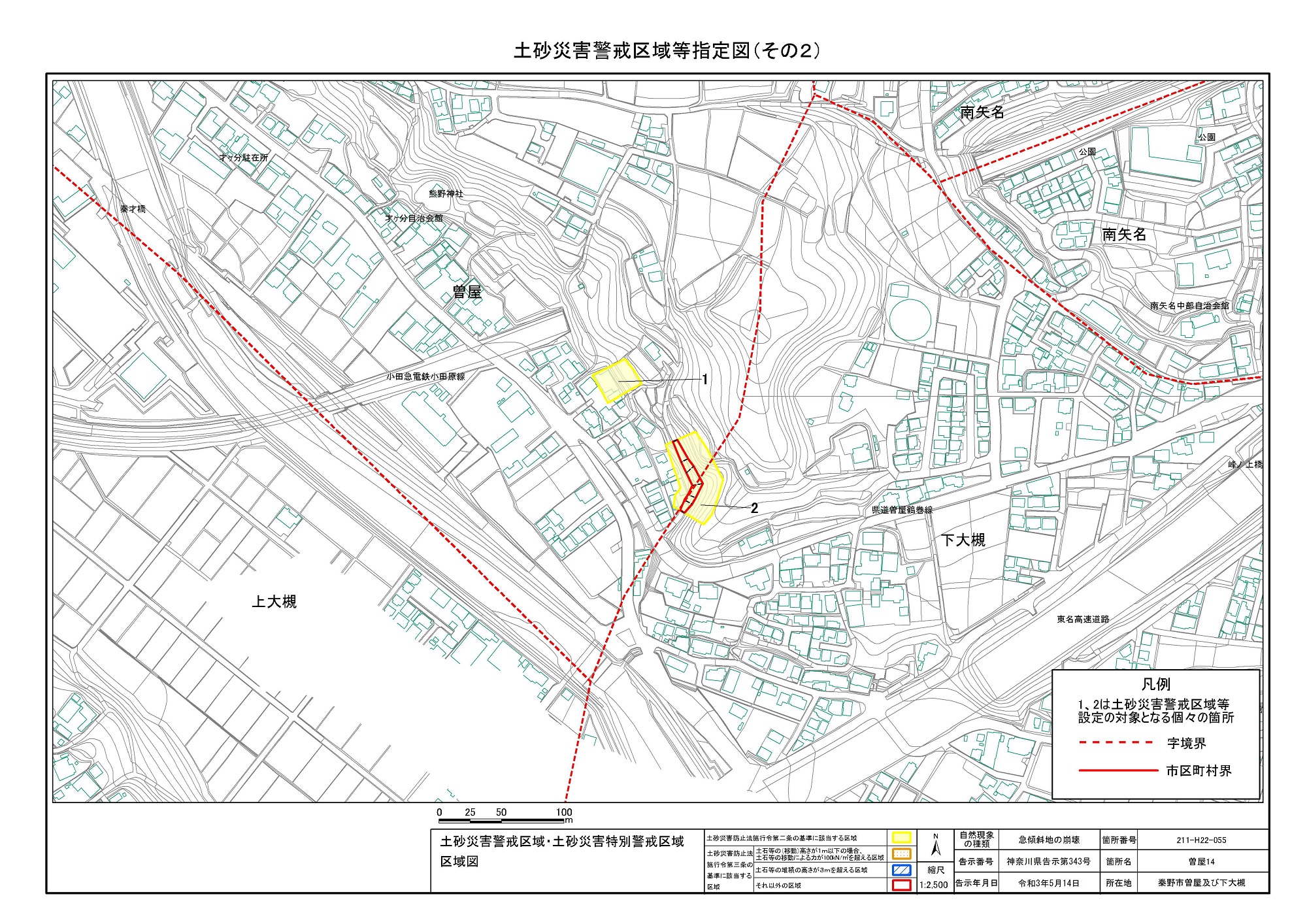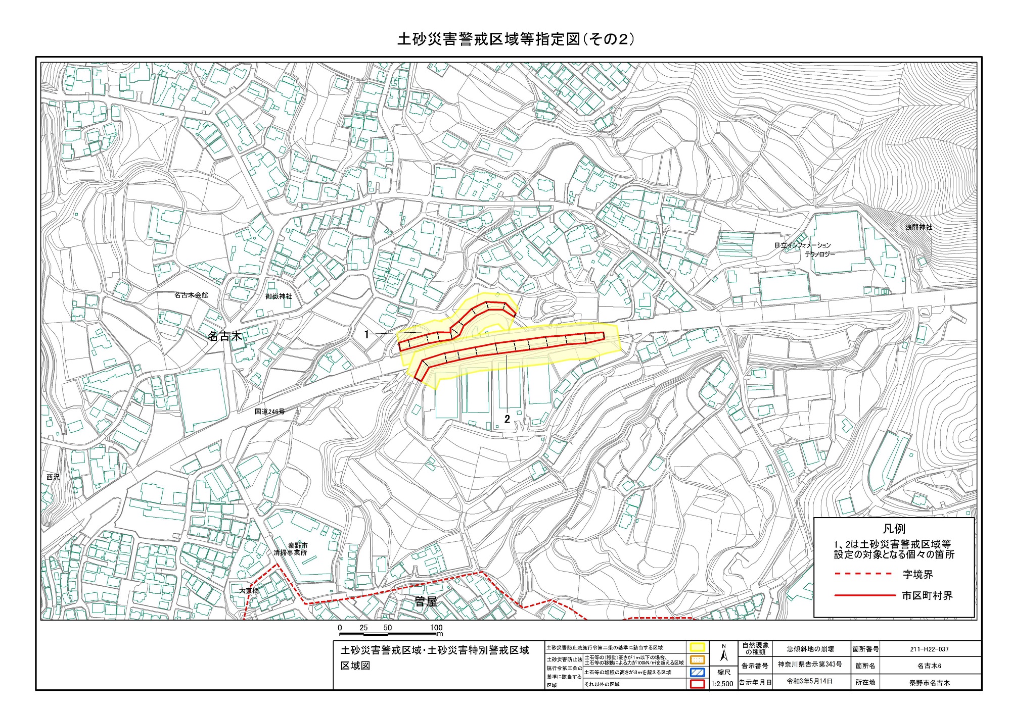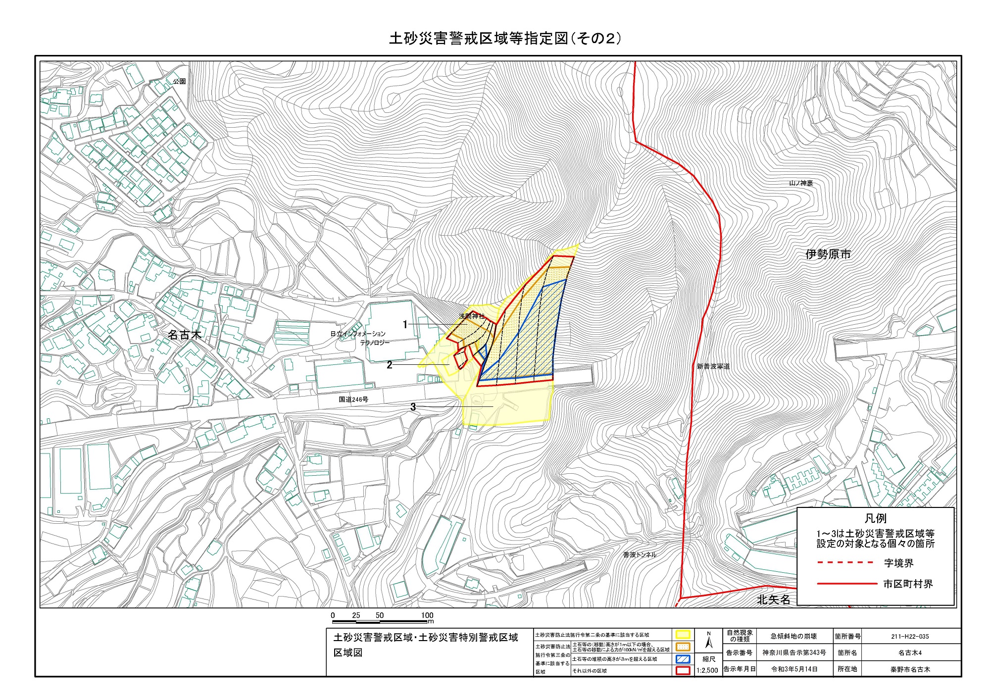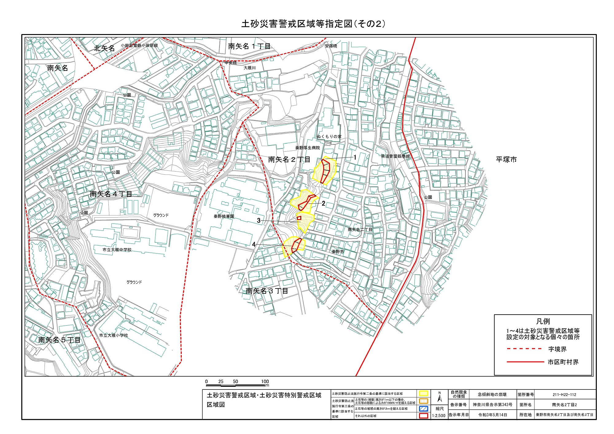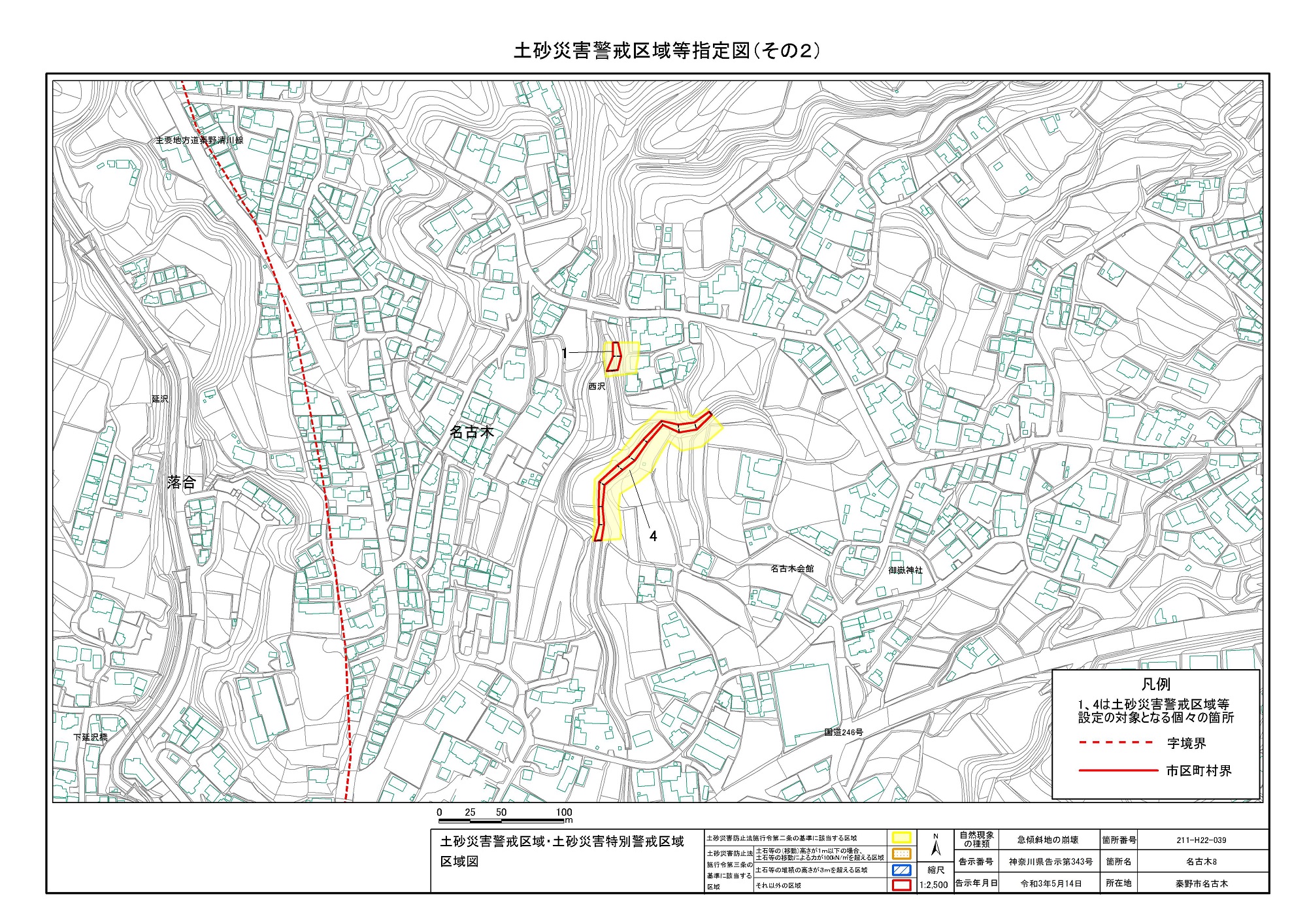 名古木及び南矢名 ※伊勢原市と秦野市に跨るため 両市町に掲載
