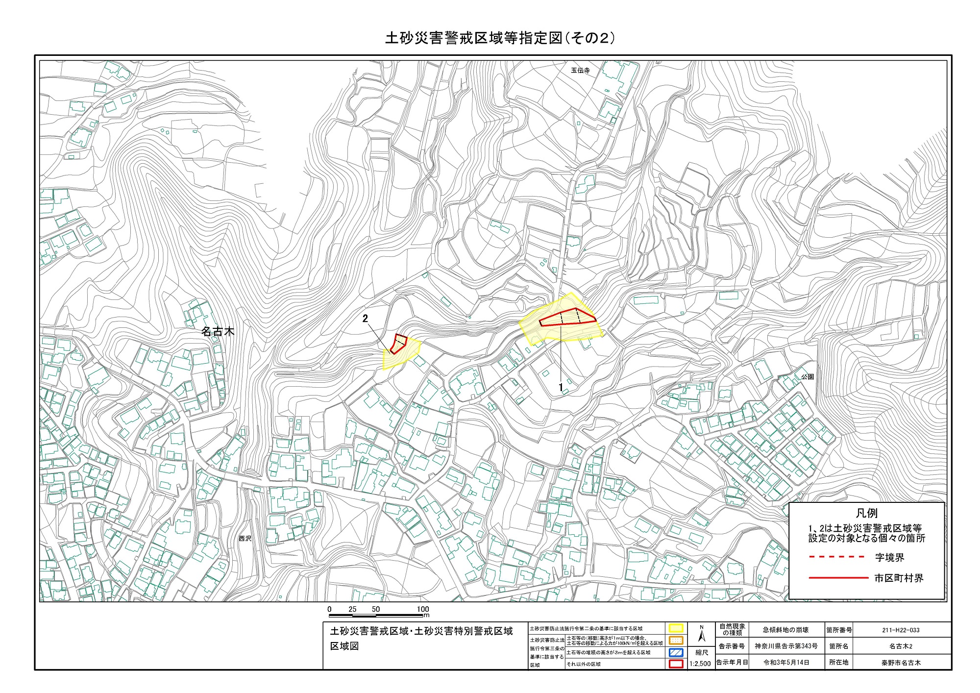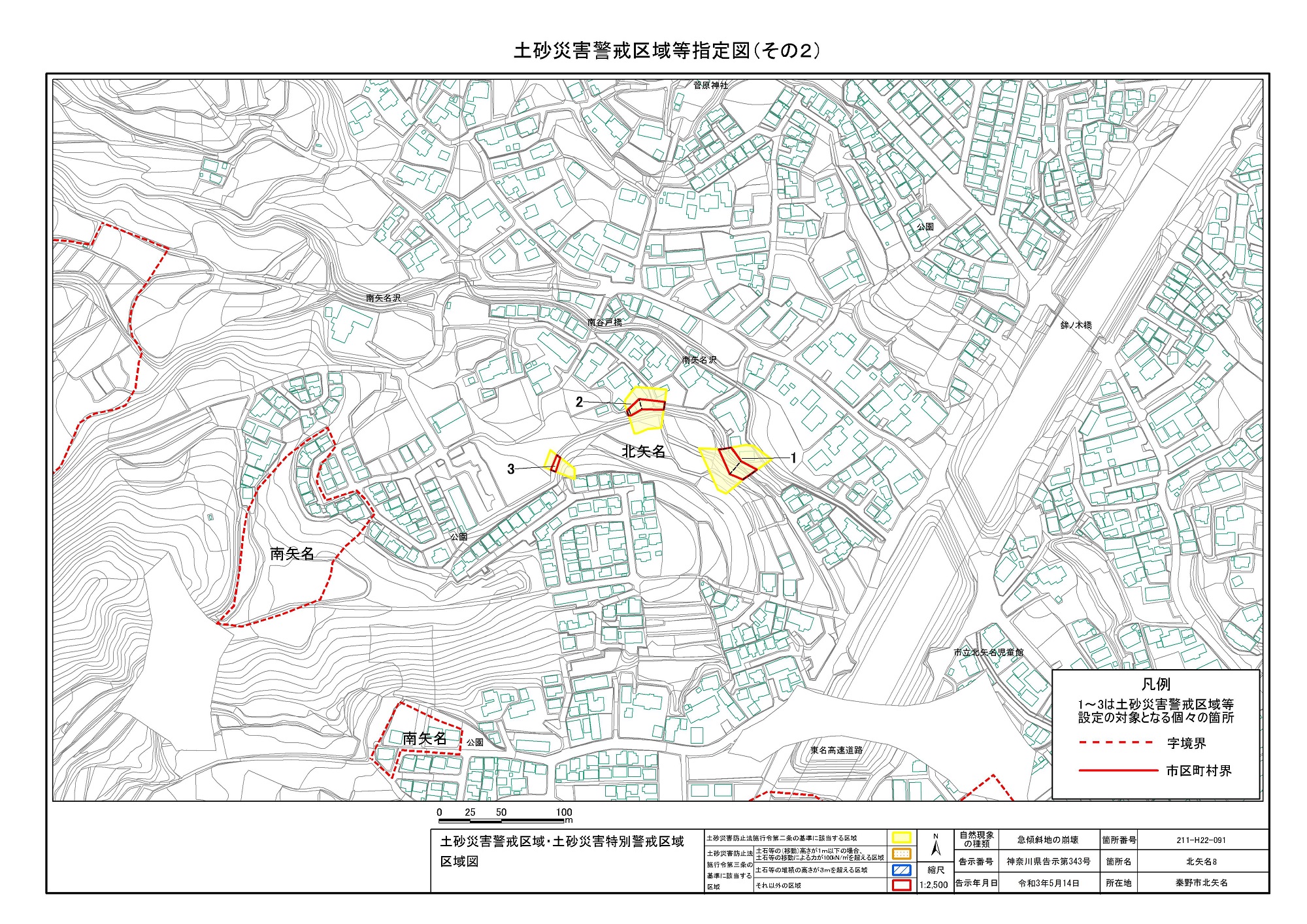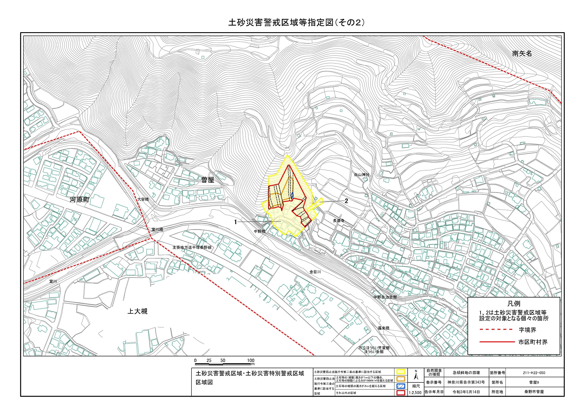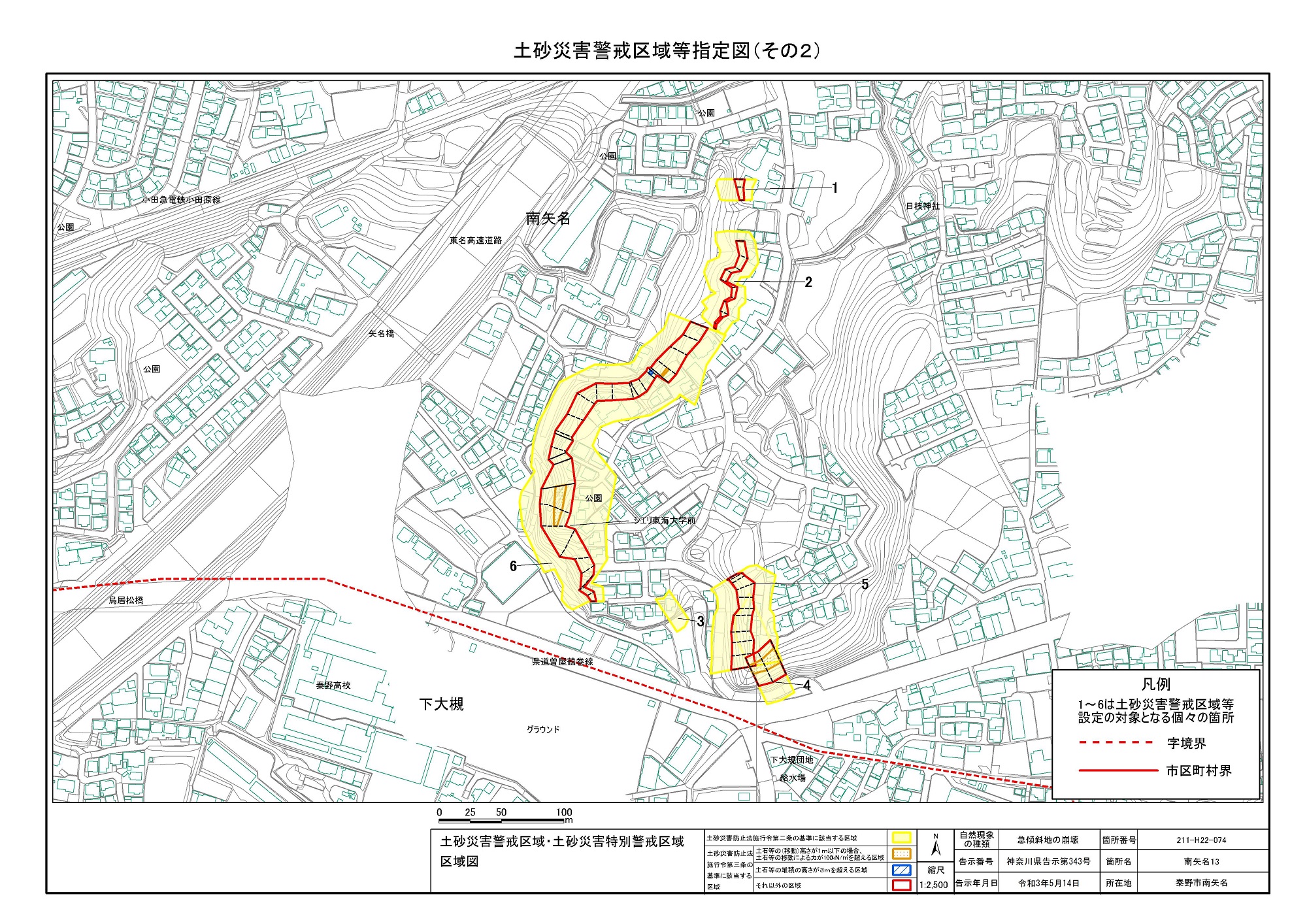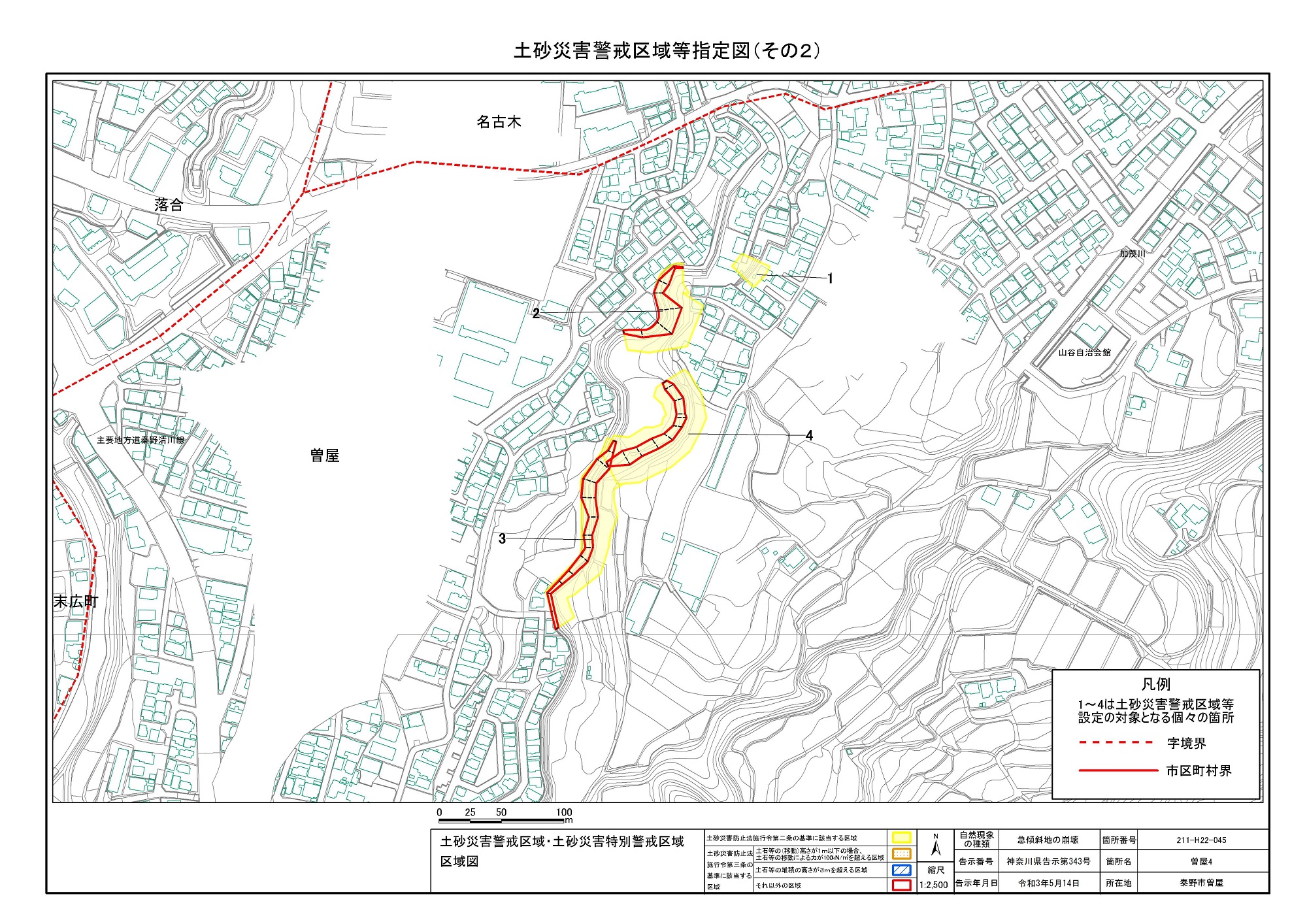 名古木及び南矢名 ※伊勢原市と秦野市に跨るため 両市町に掲載