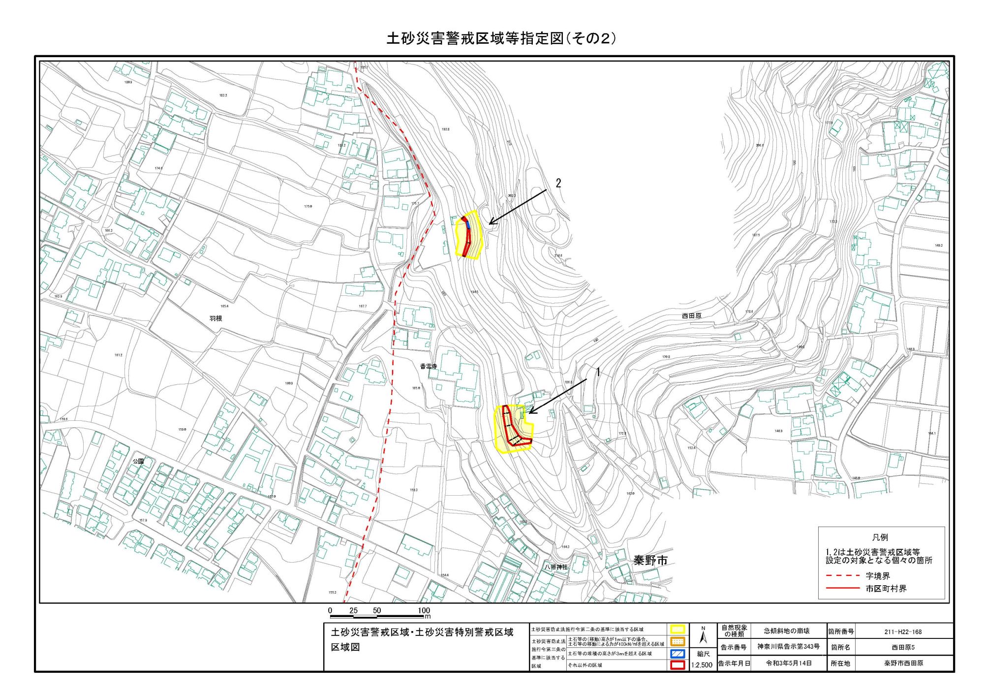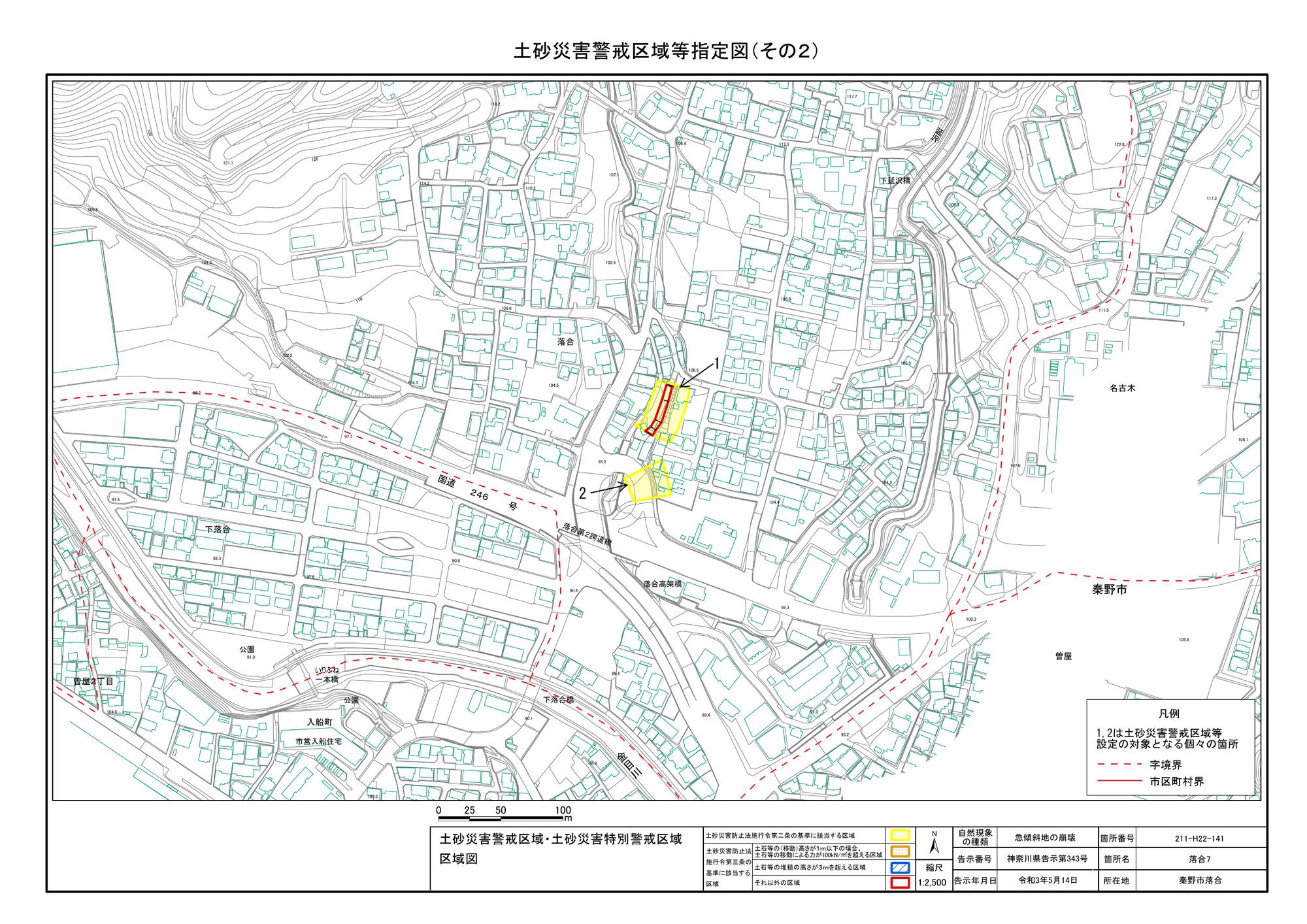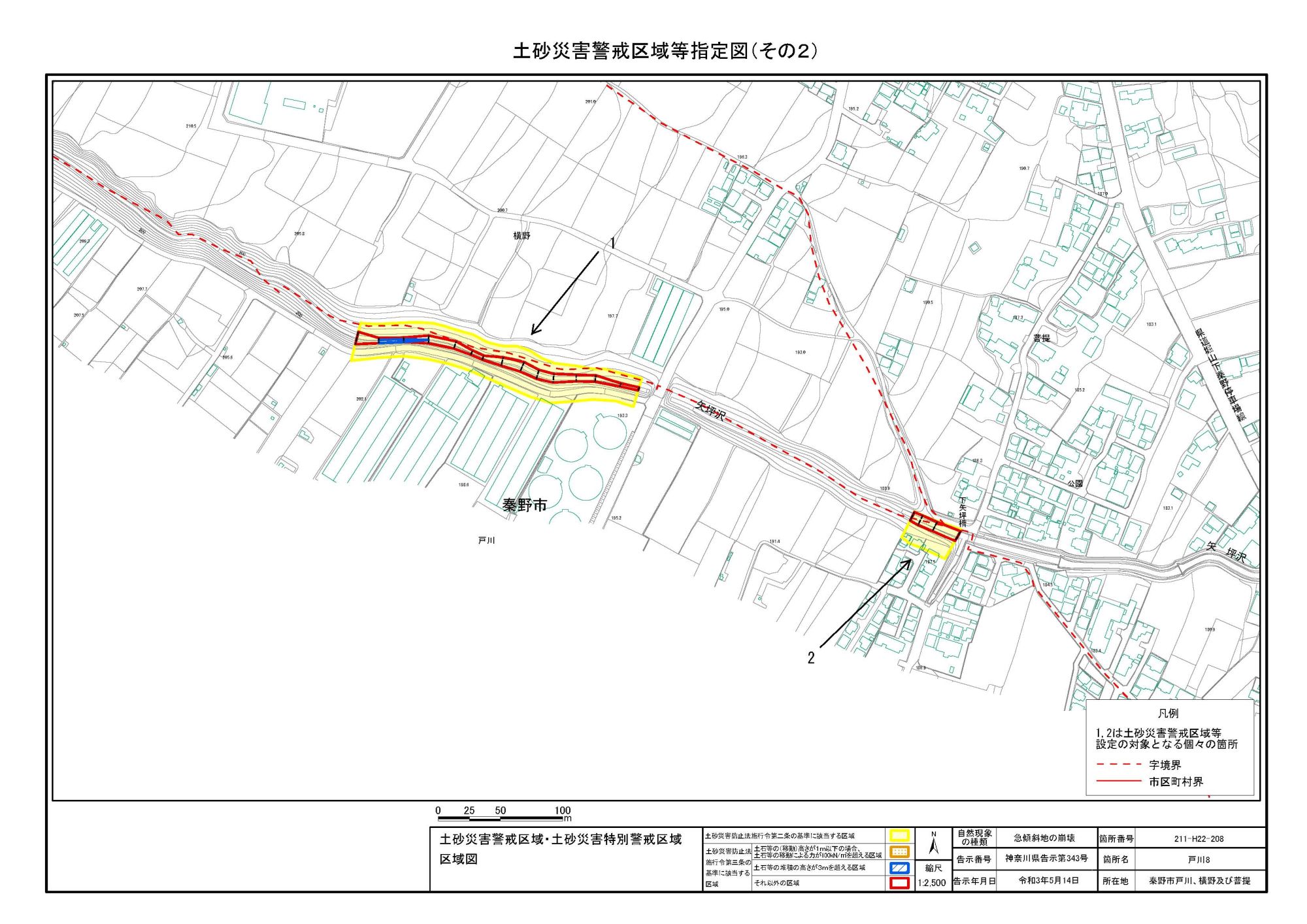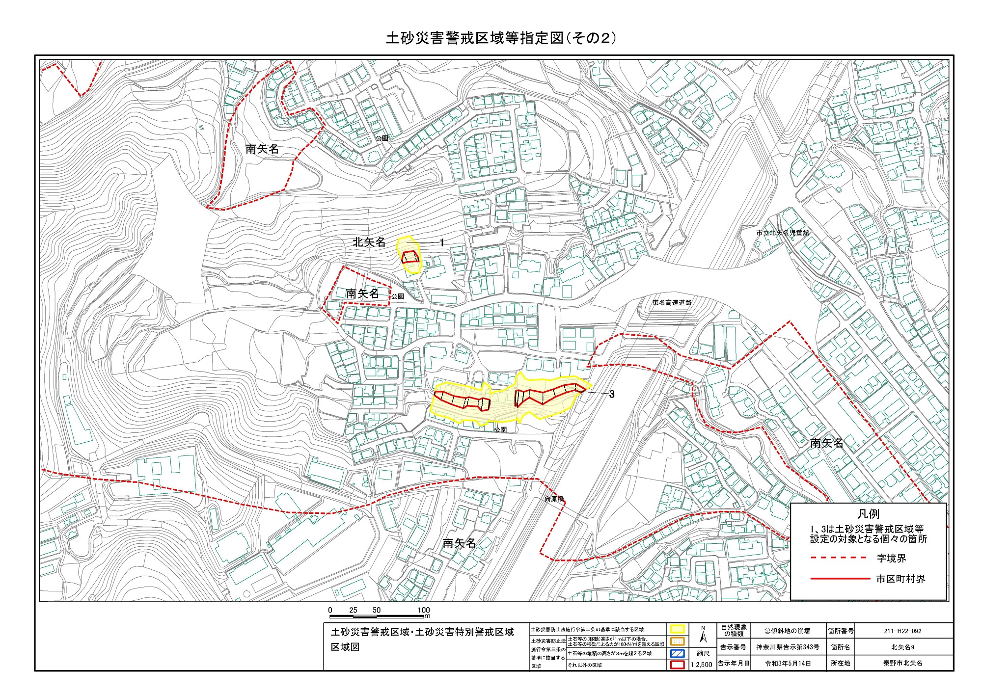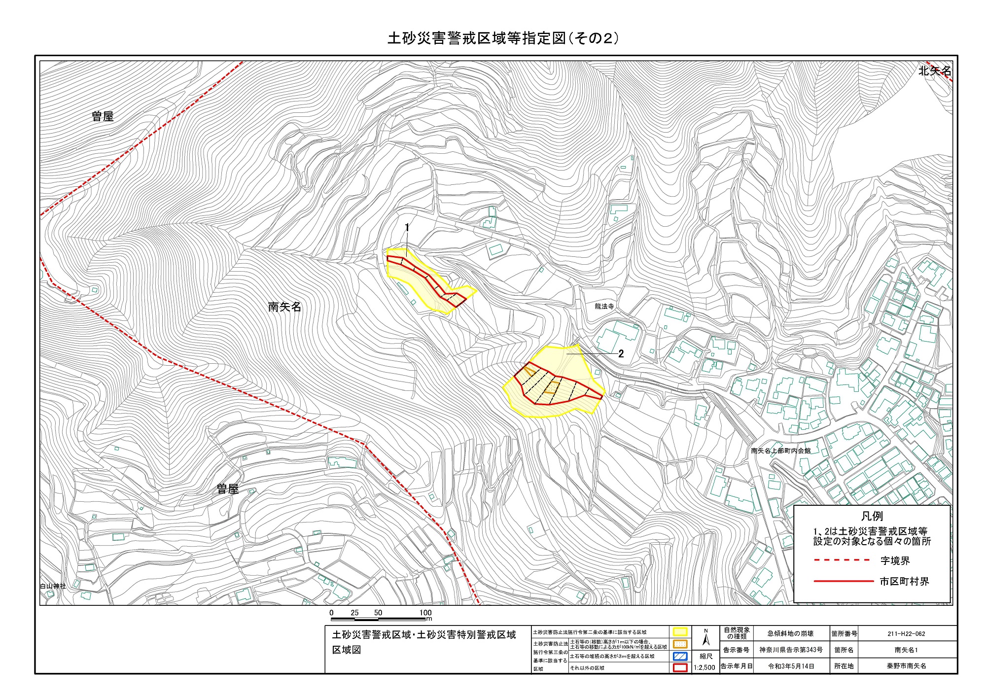 名古木及び南矢名 ※伊勢原市と秦野市に跨るため 両市町に掲載