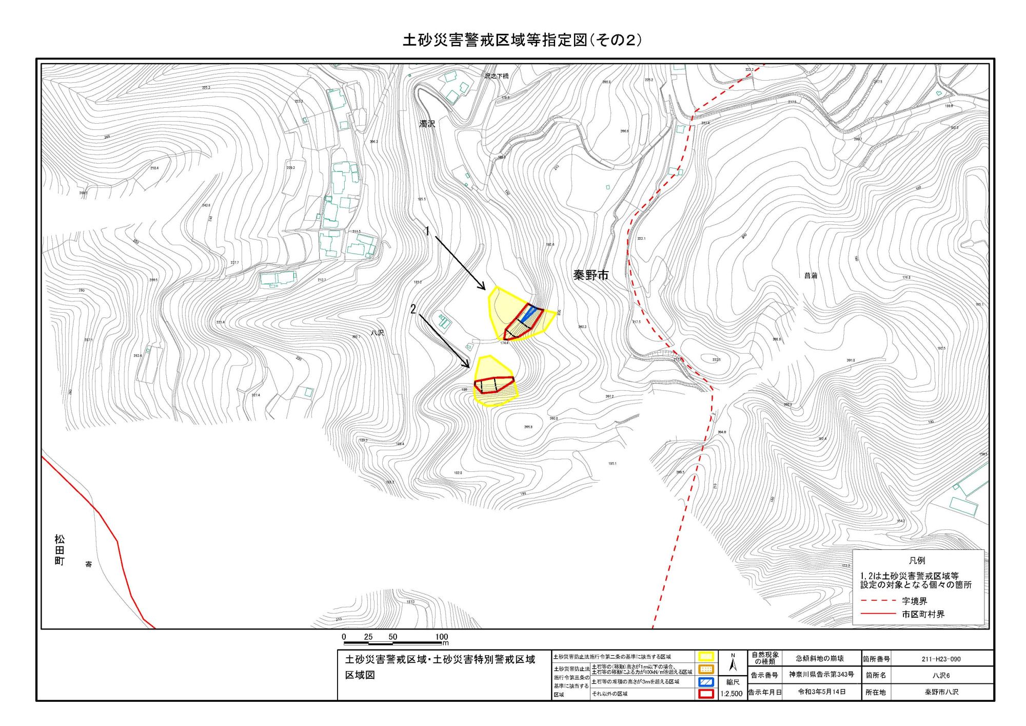 八沢 ※松田町と秦野市に跨るため 両市町に掲載