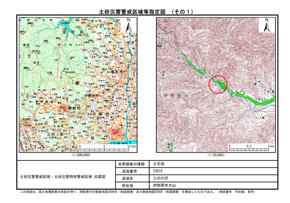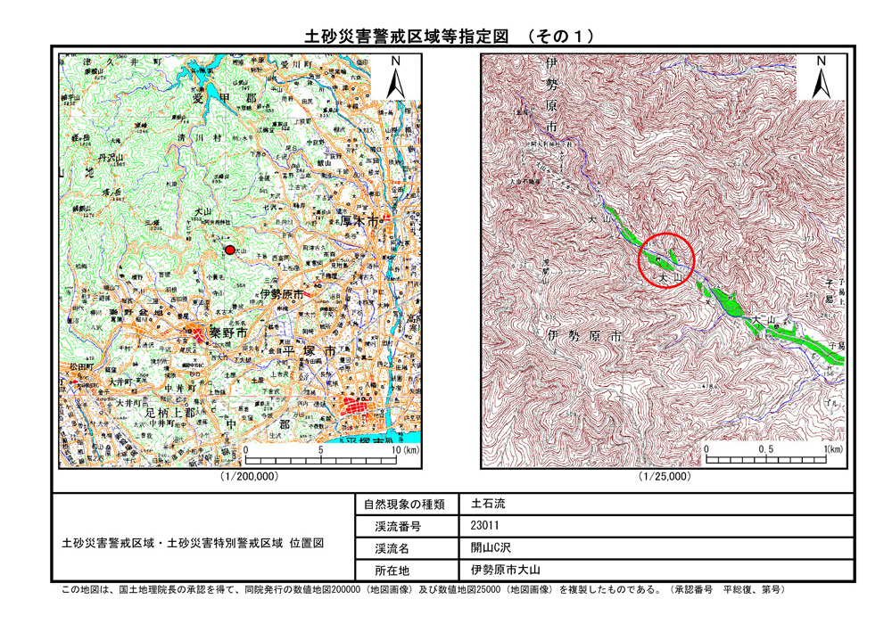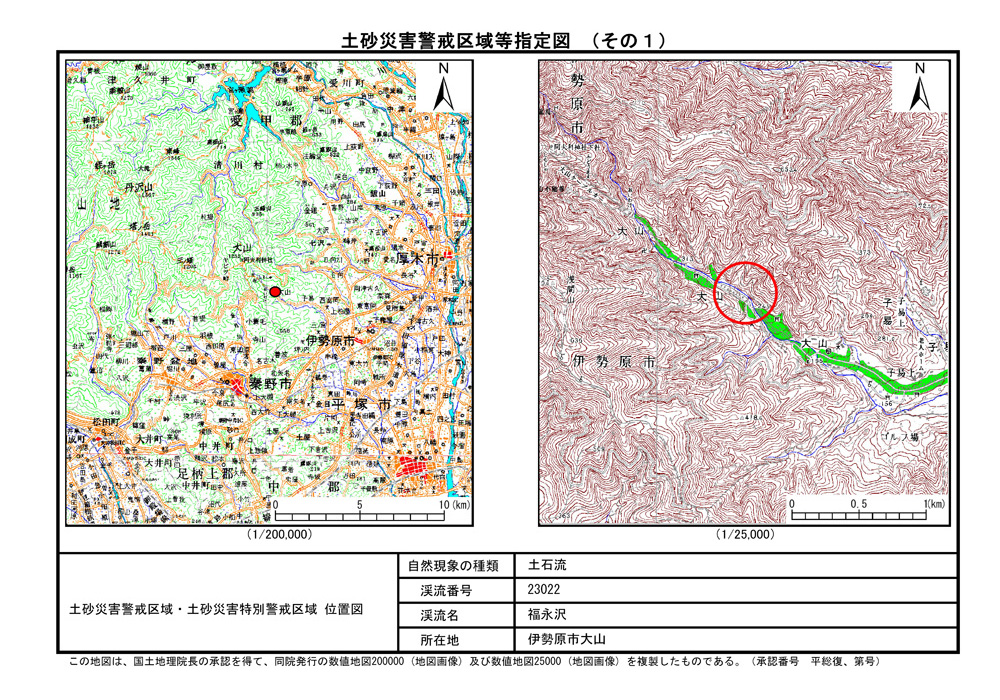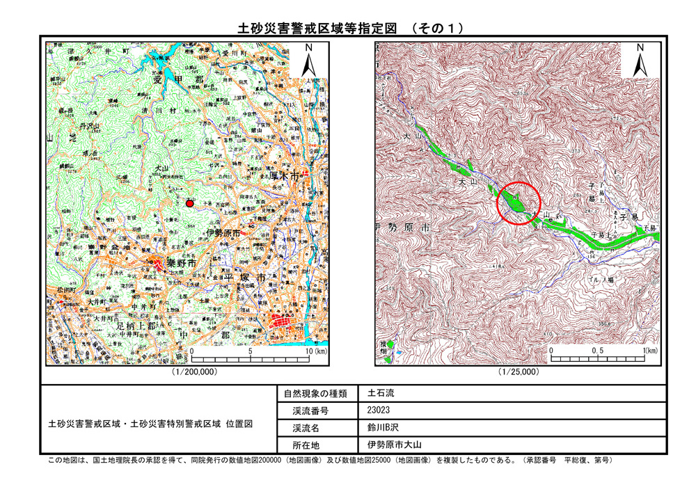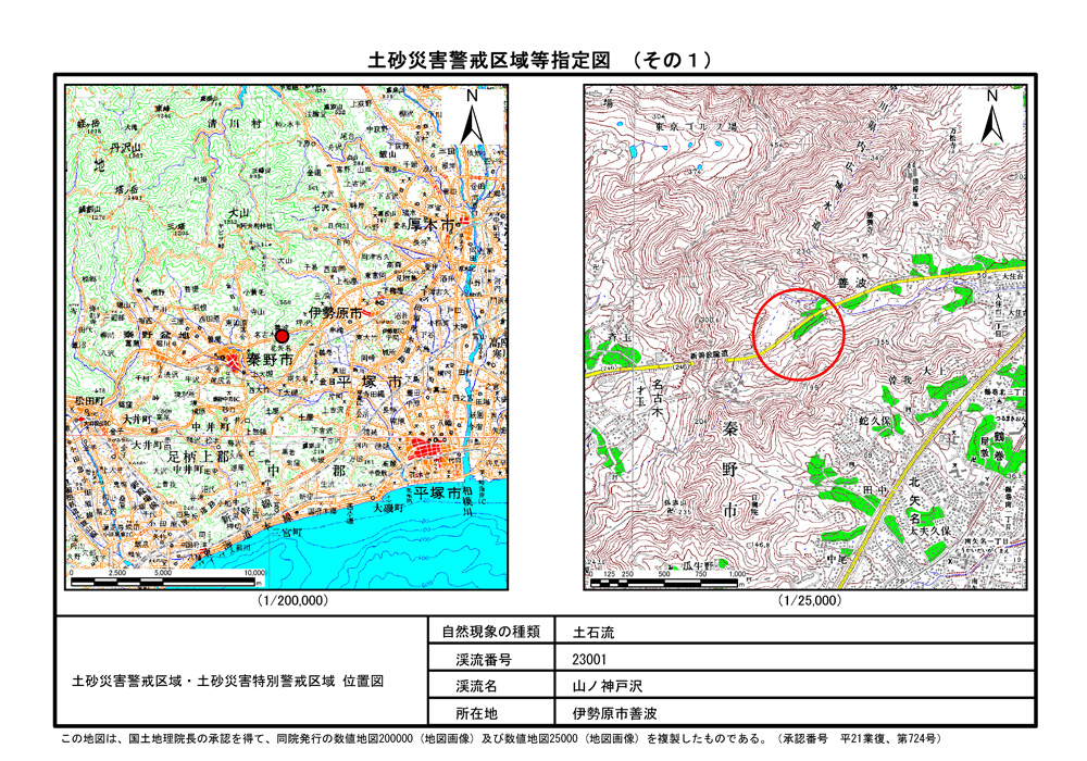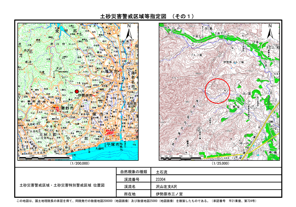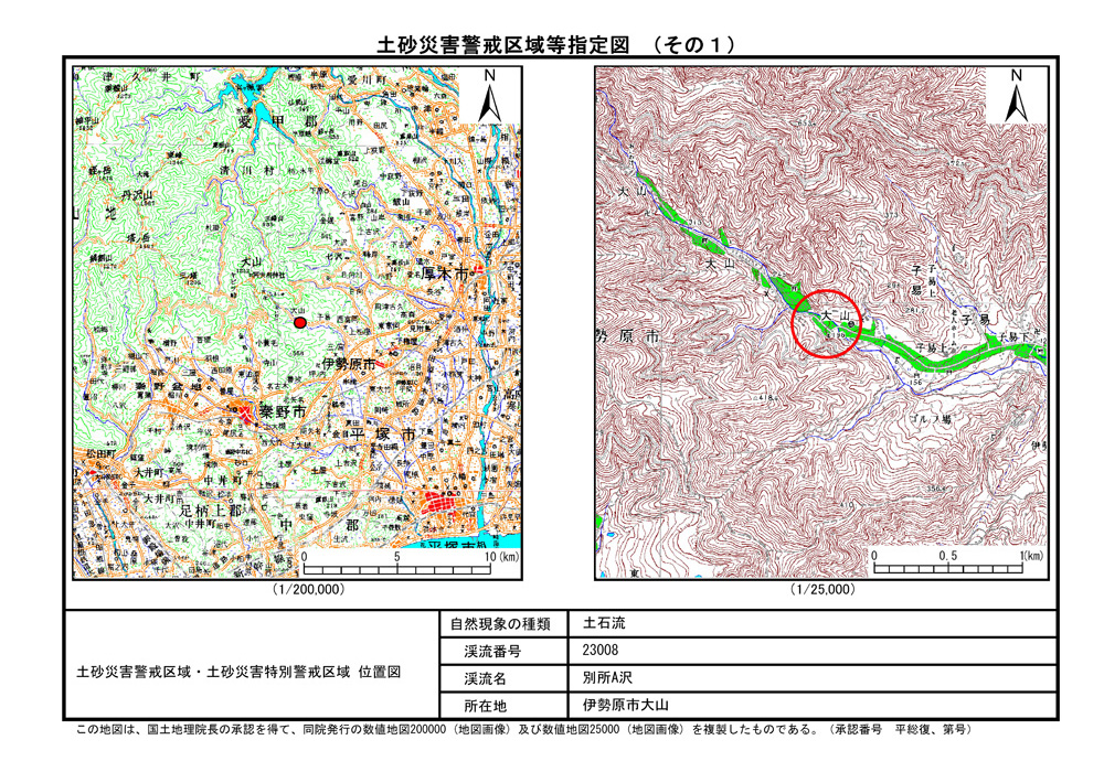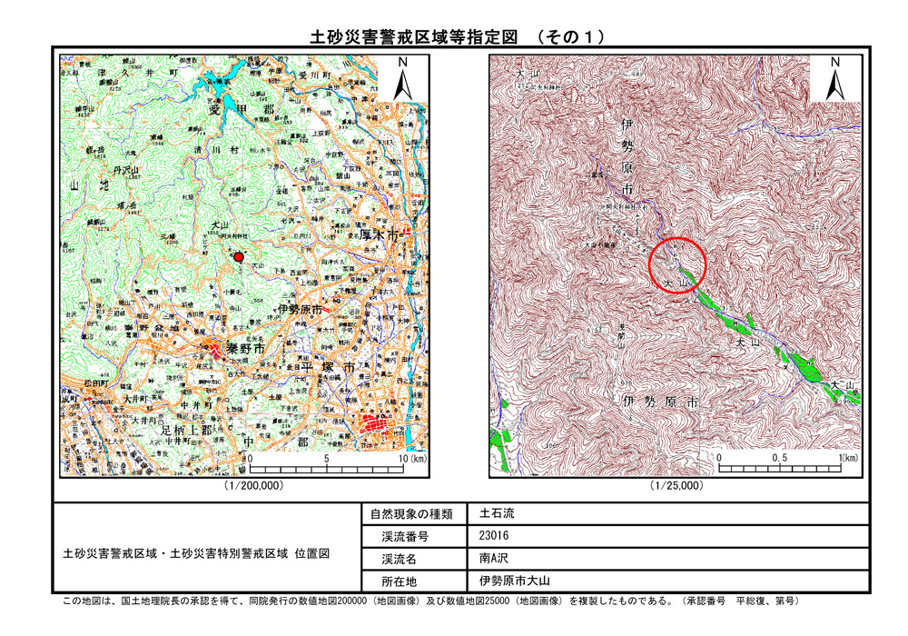 土砂災害警戒区域及び土砂災害特別警戒区域 告示図書