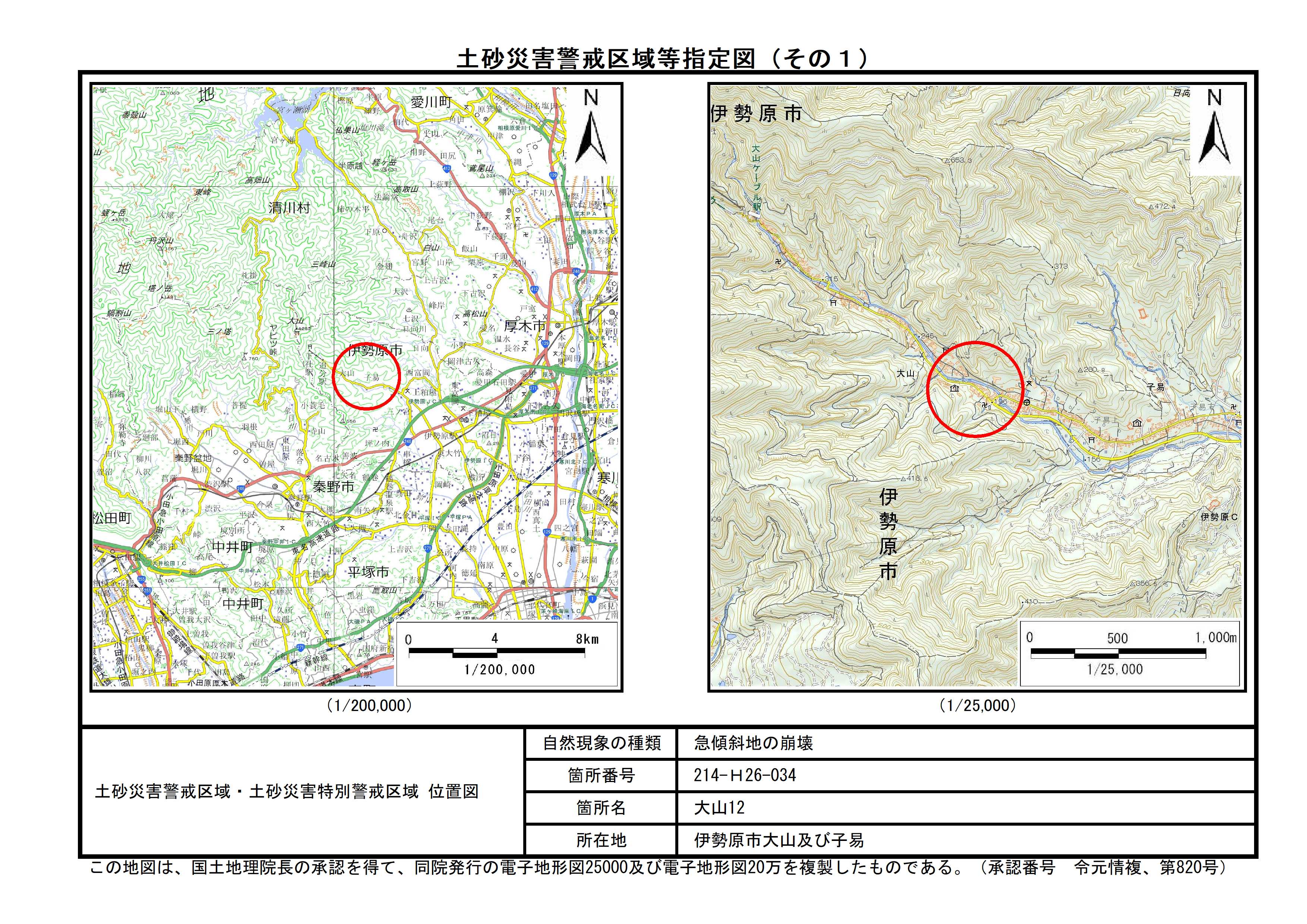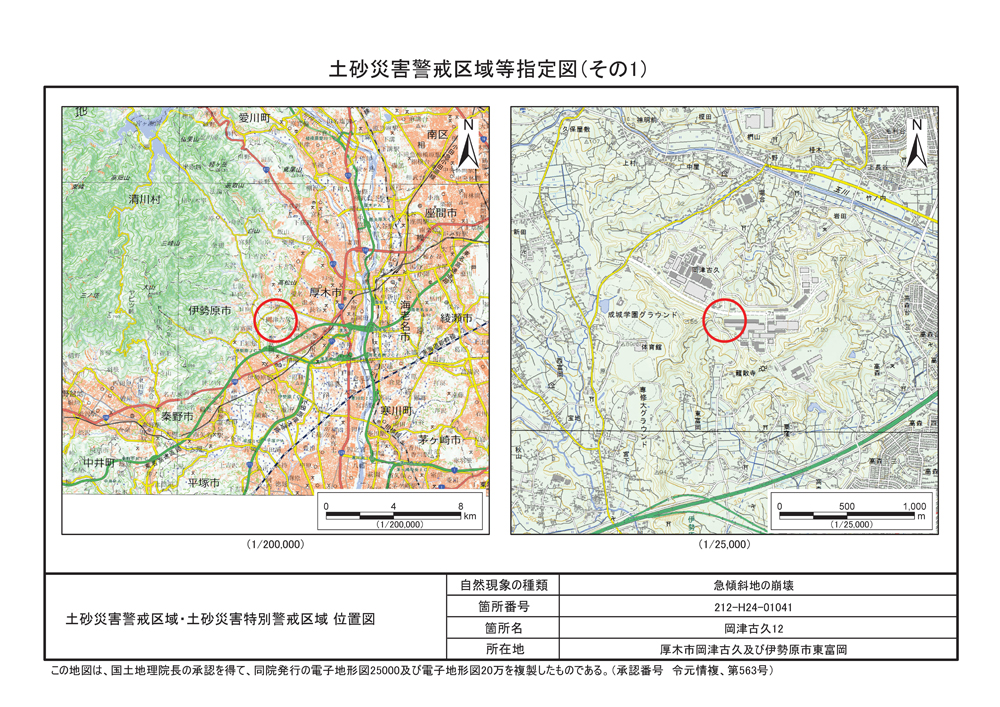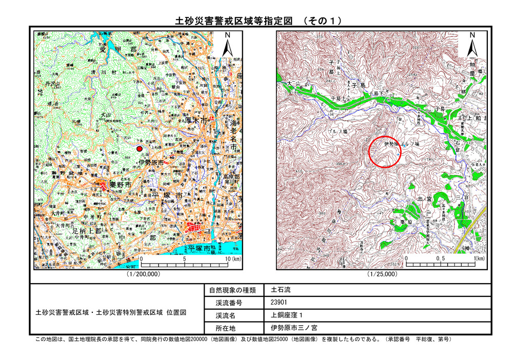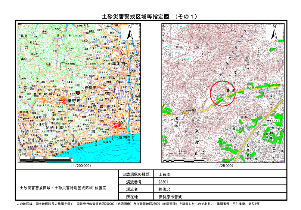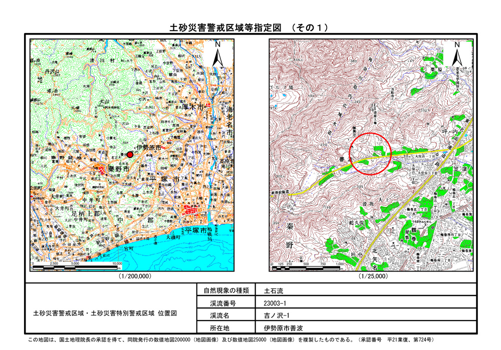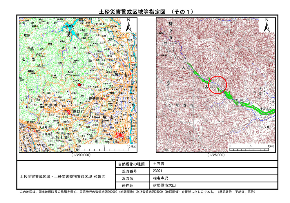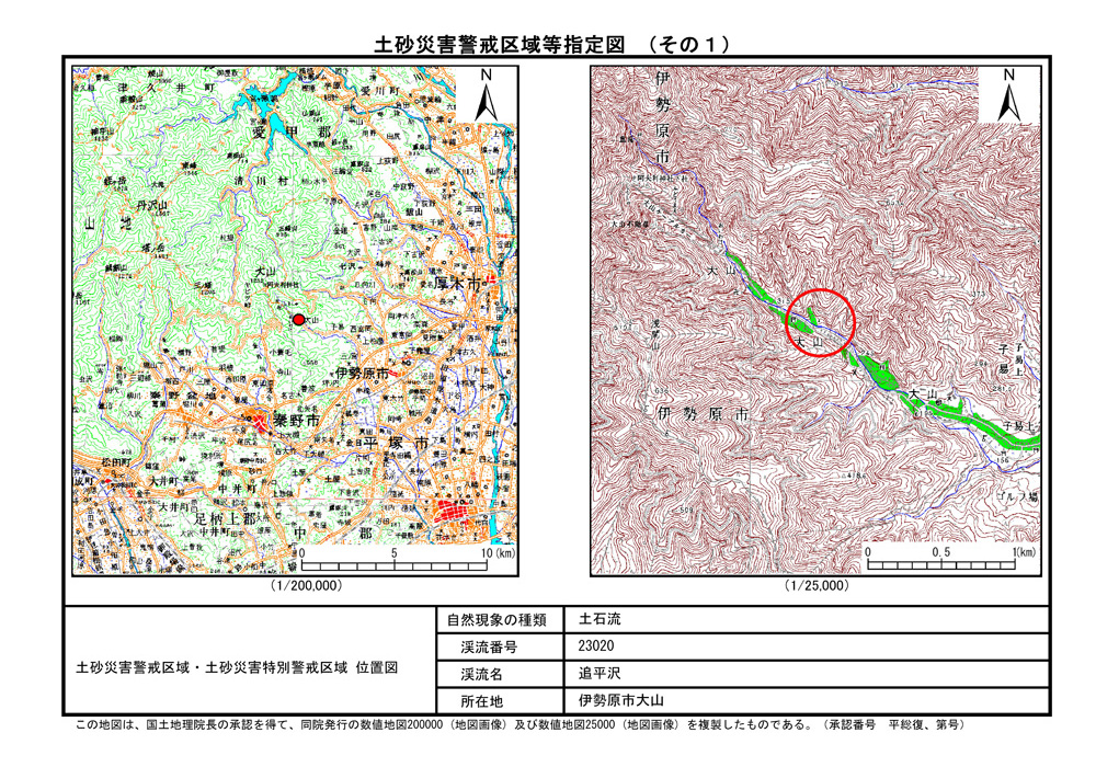 土砂災害警戒区域及び土砂災害特別警戒区域 告示図書