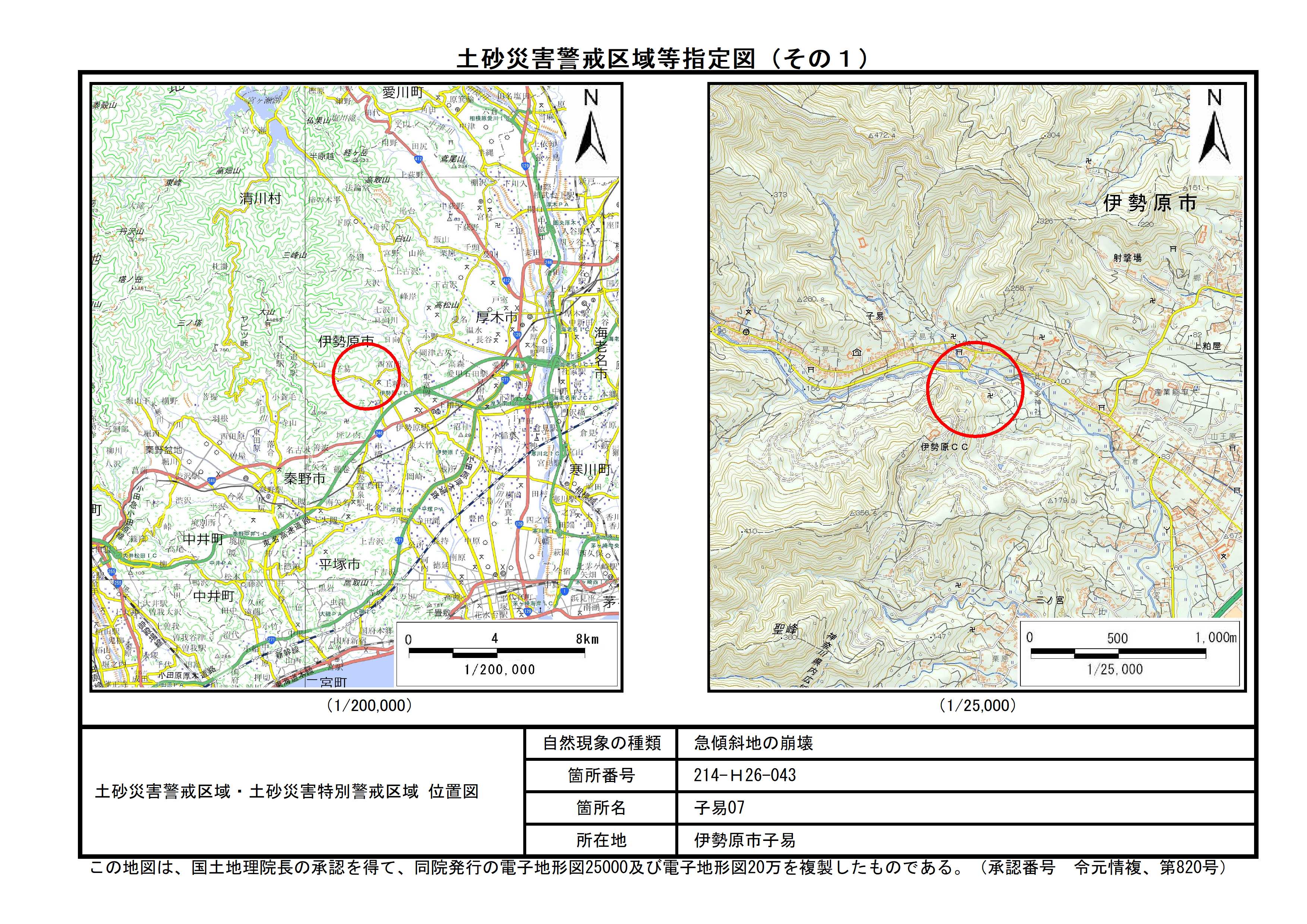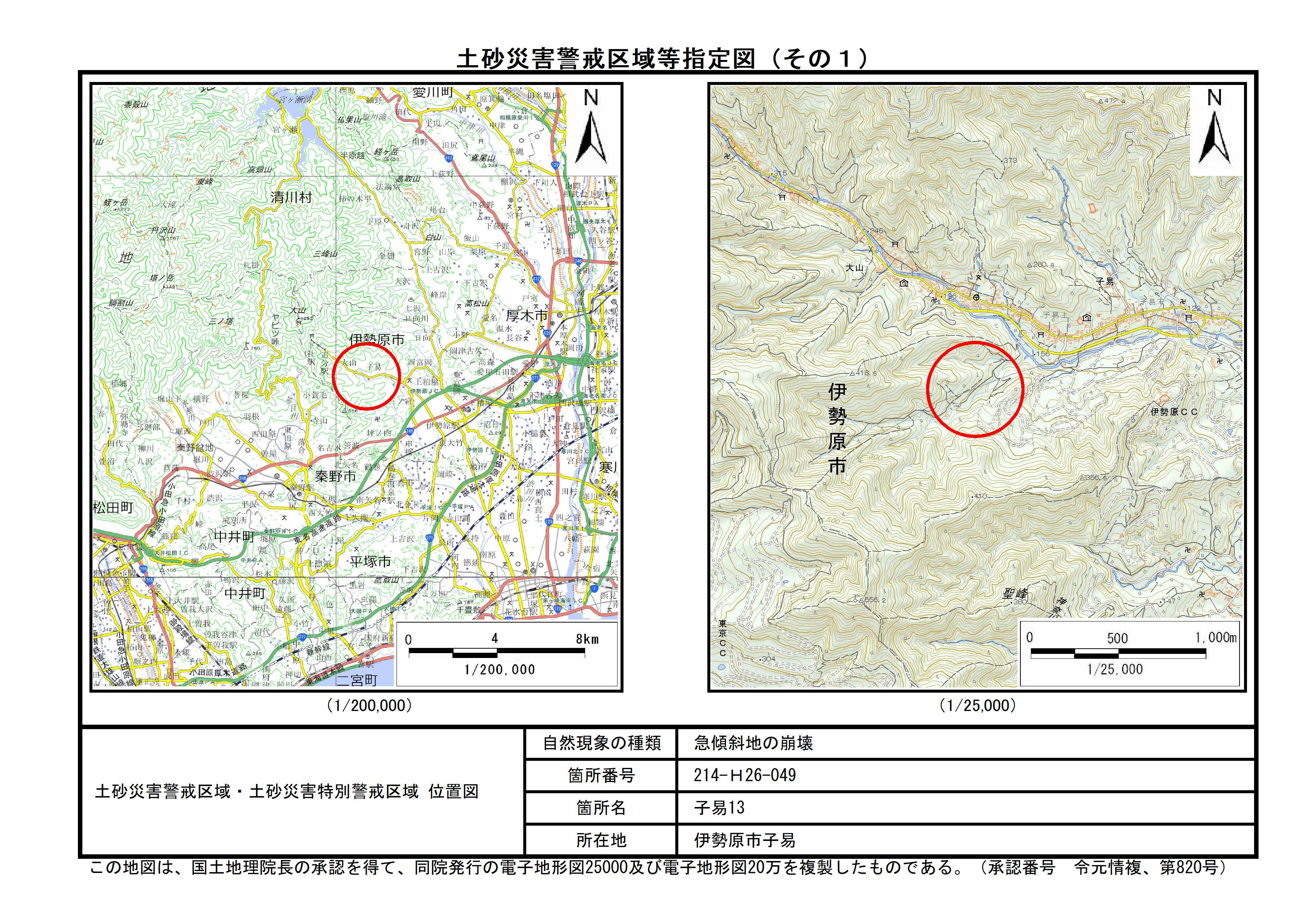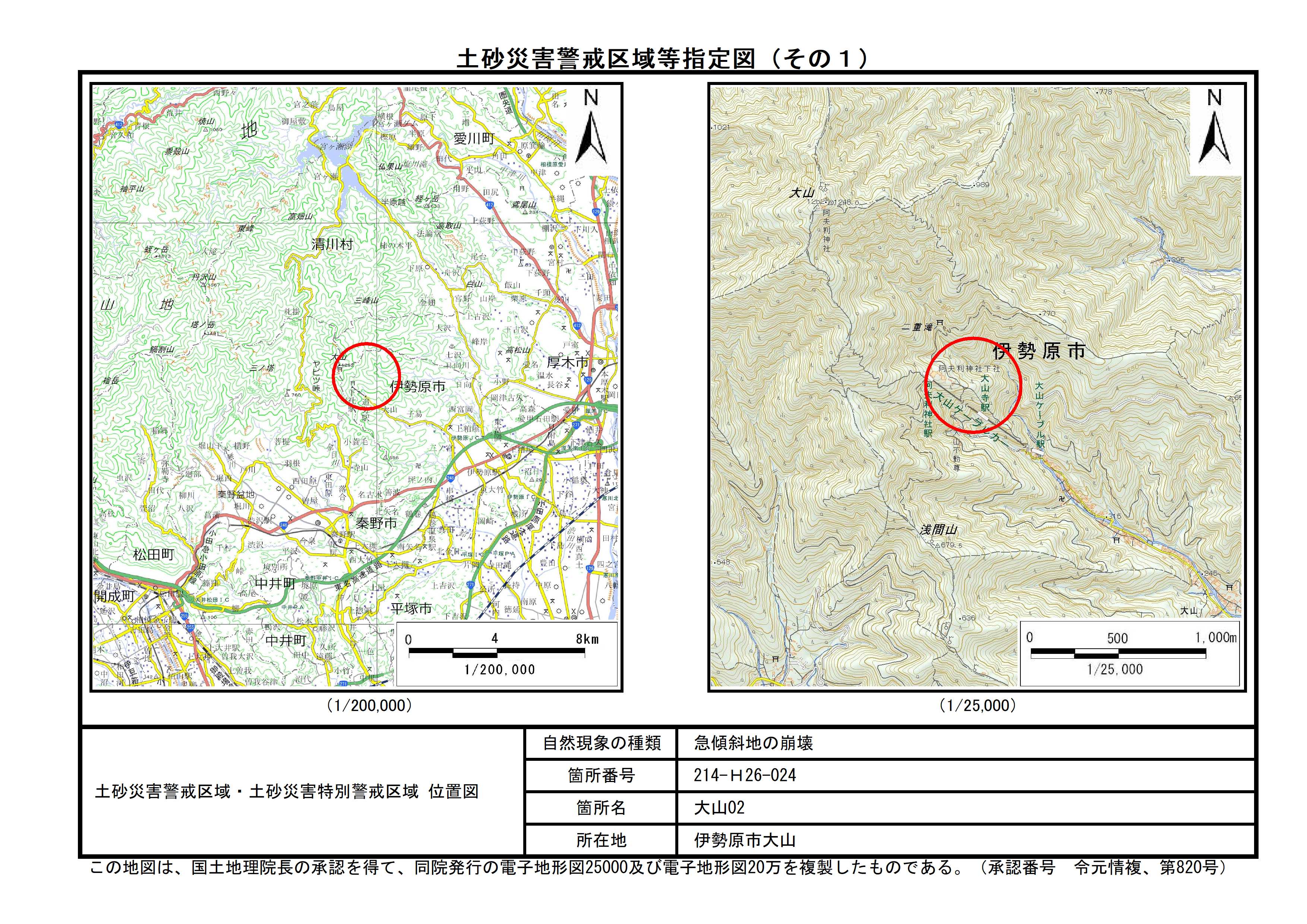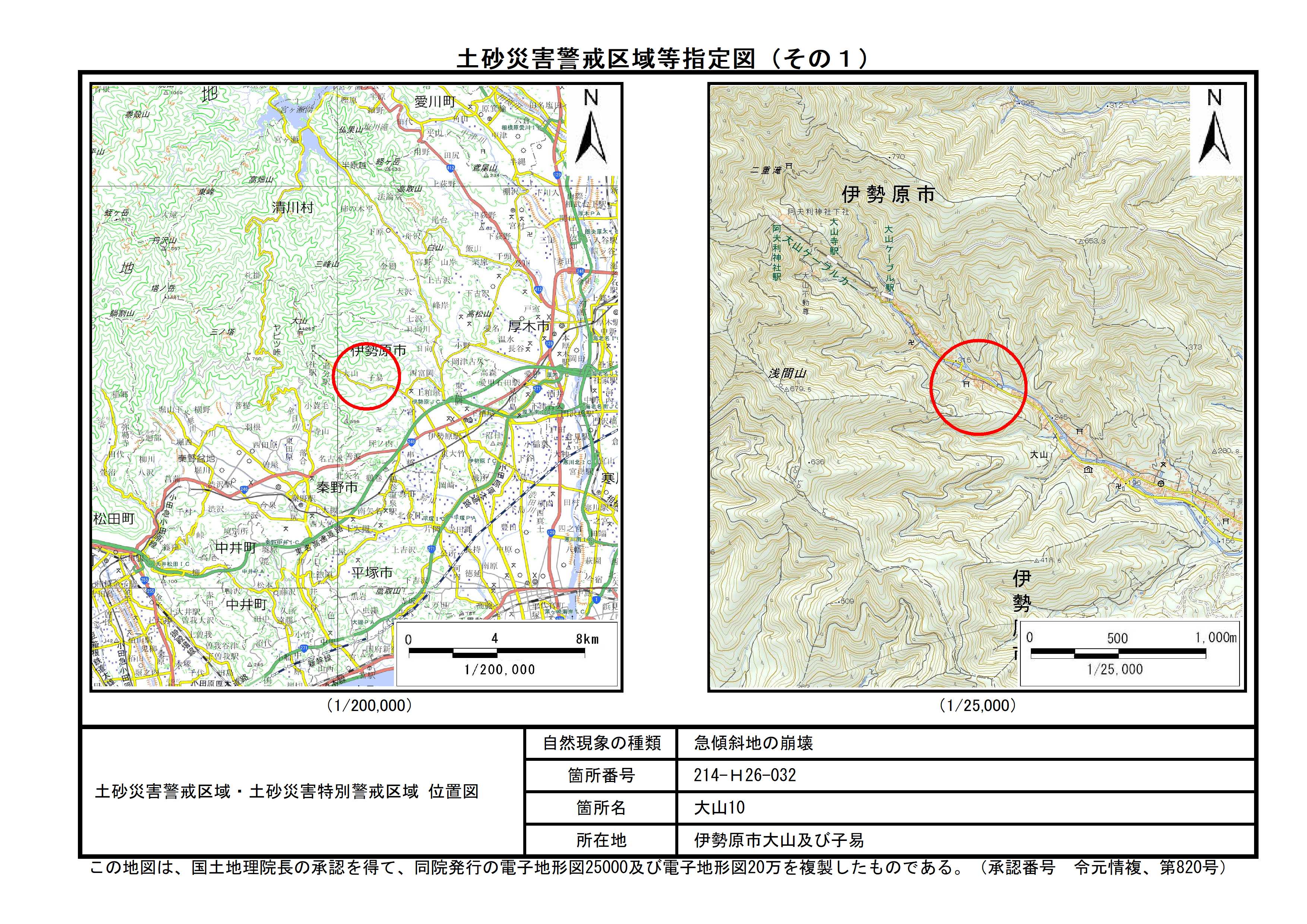 土砂災害警戒区域及び土砂災害特別警戒区域 告示図書