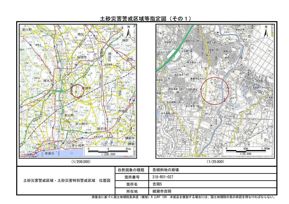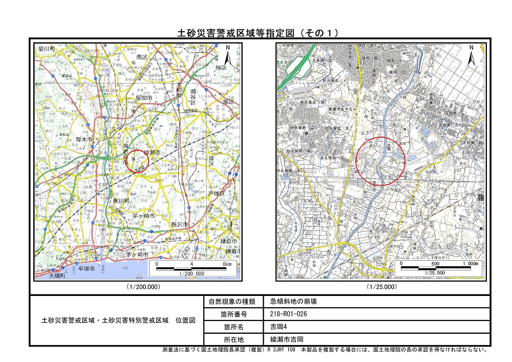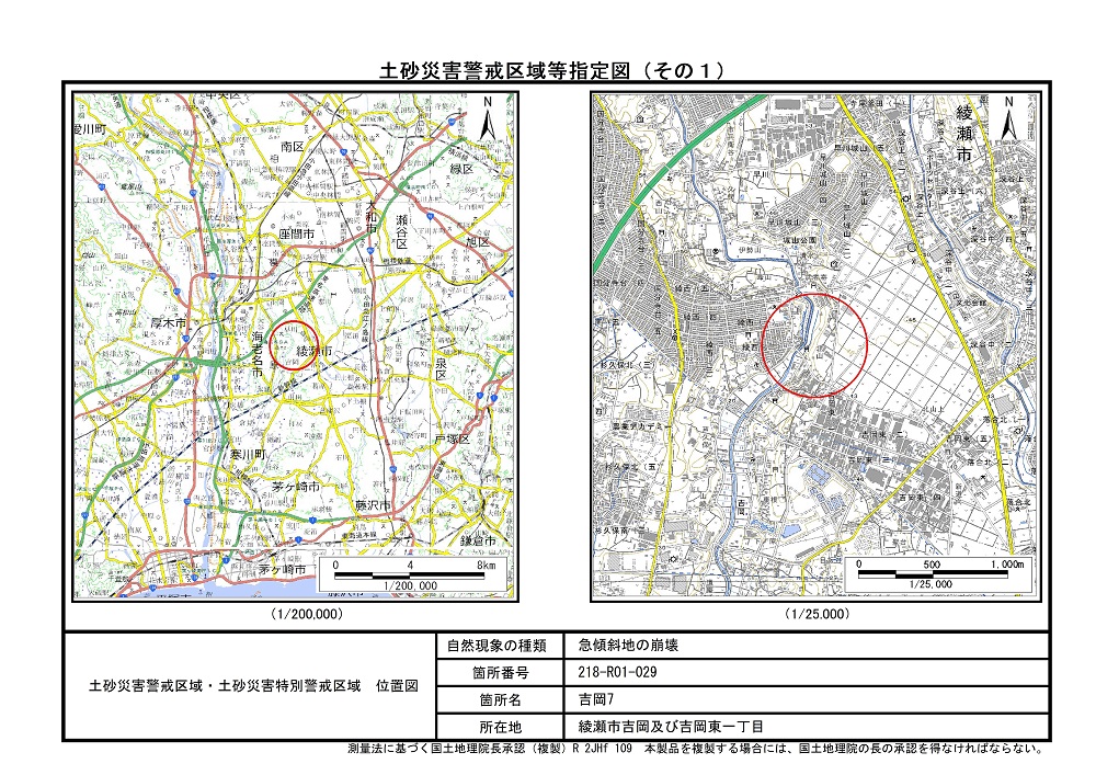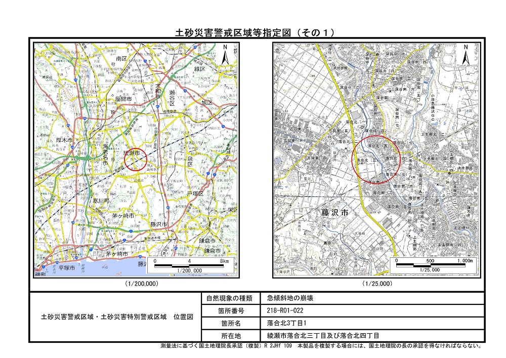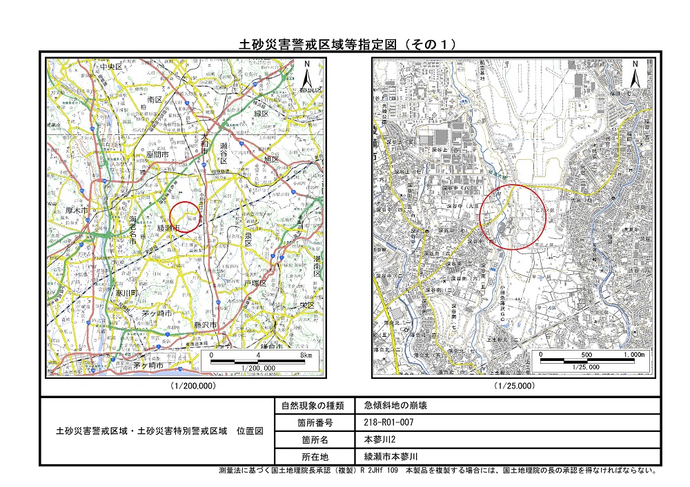 土砂災害警戒区域及び土砂災害特別警戒区域 告示図書