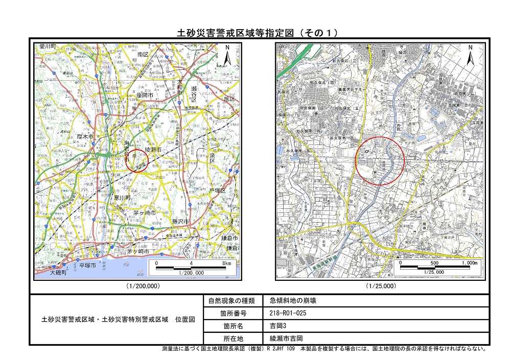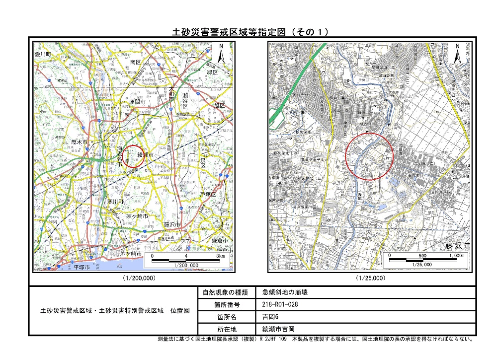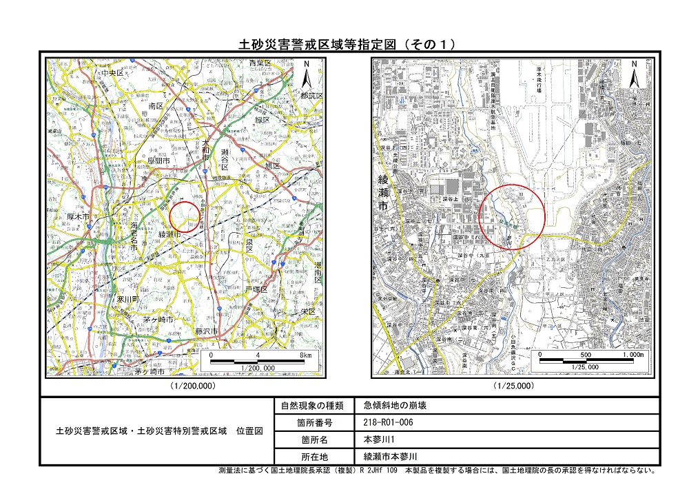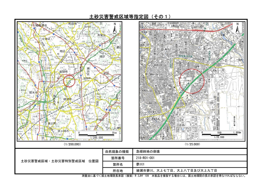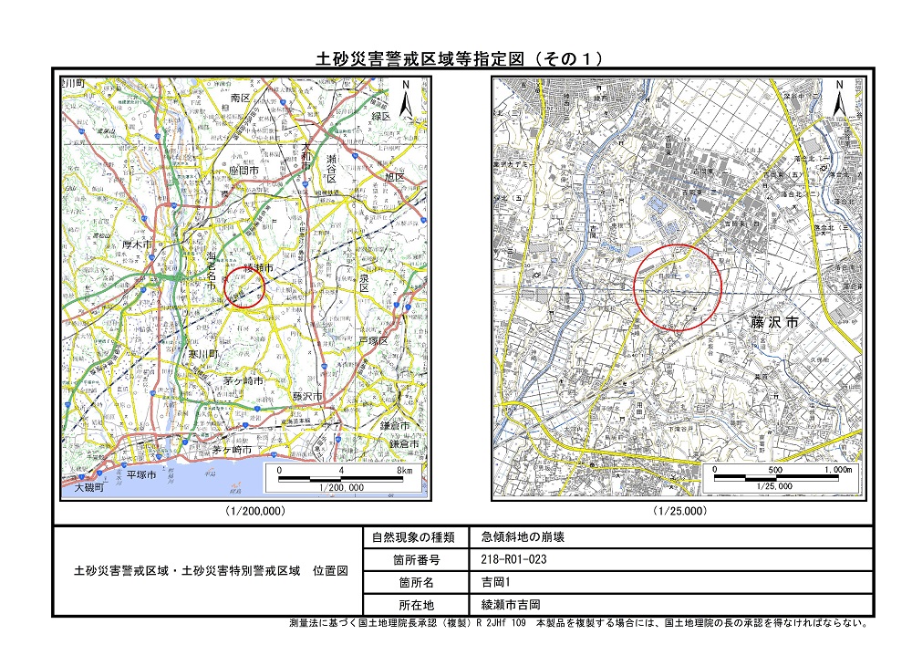 土砂災害警戒区域及び土砂災害特別警戒区域 告示図書