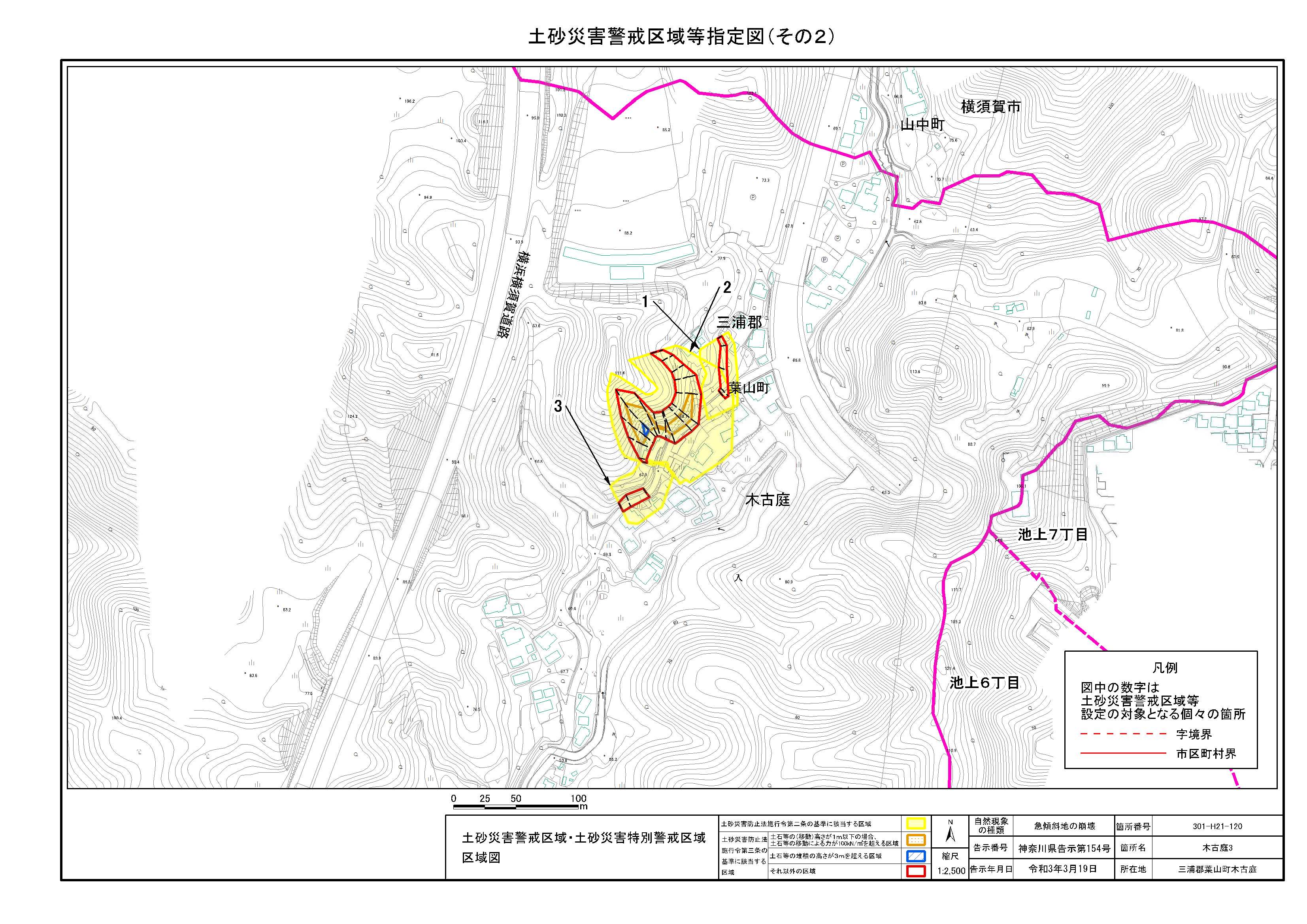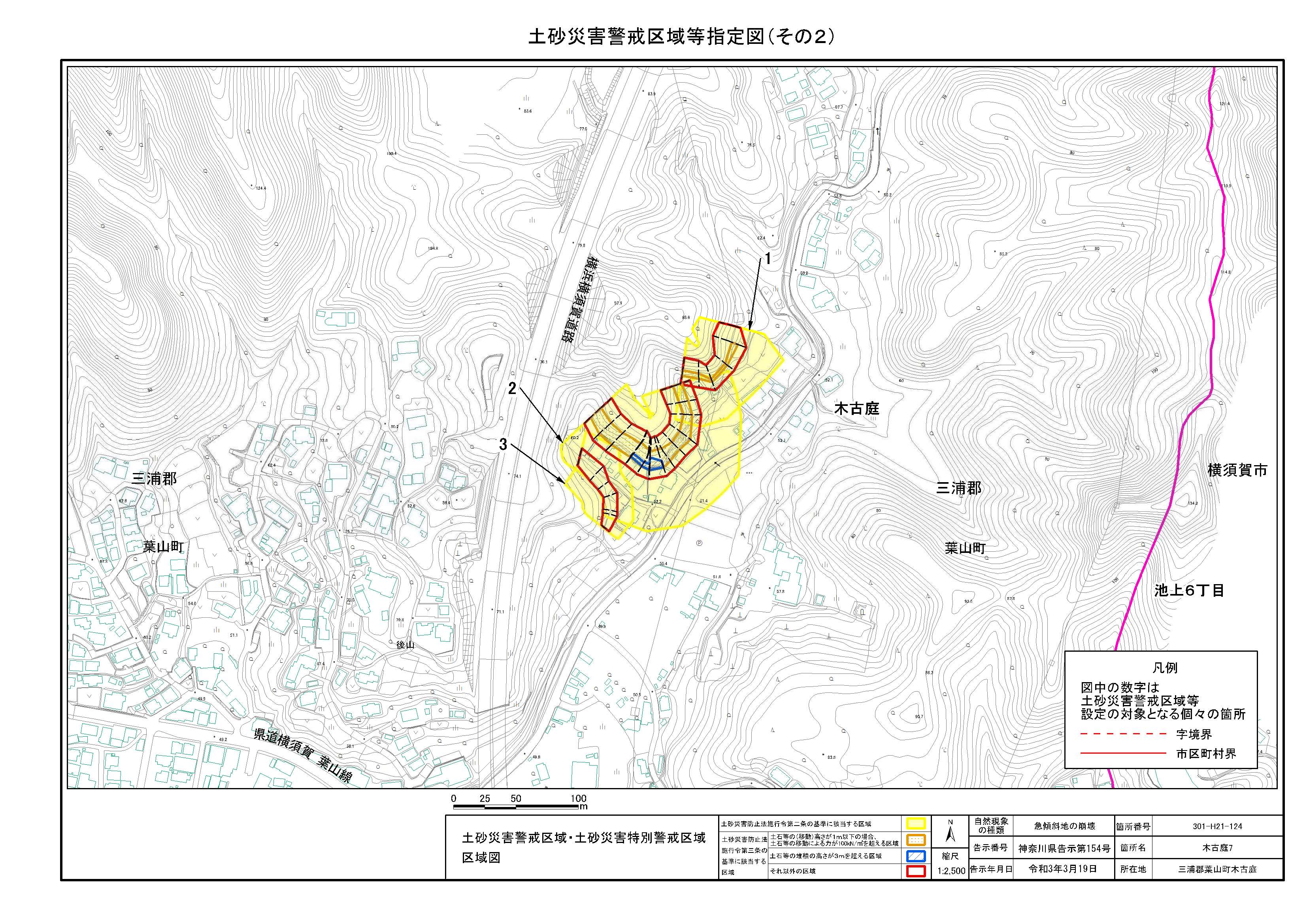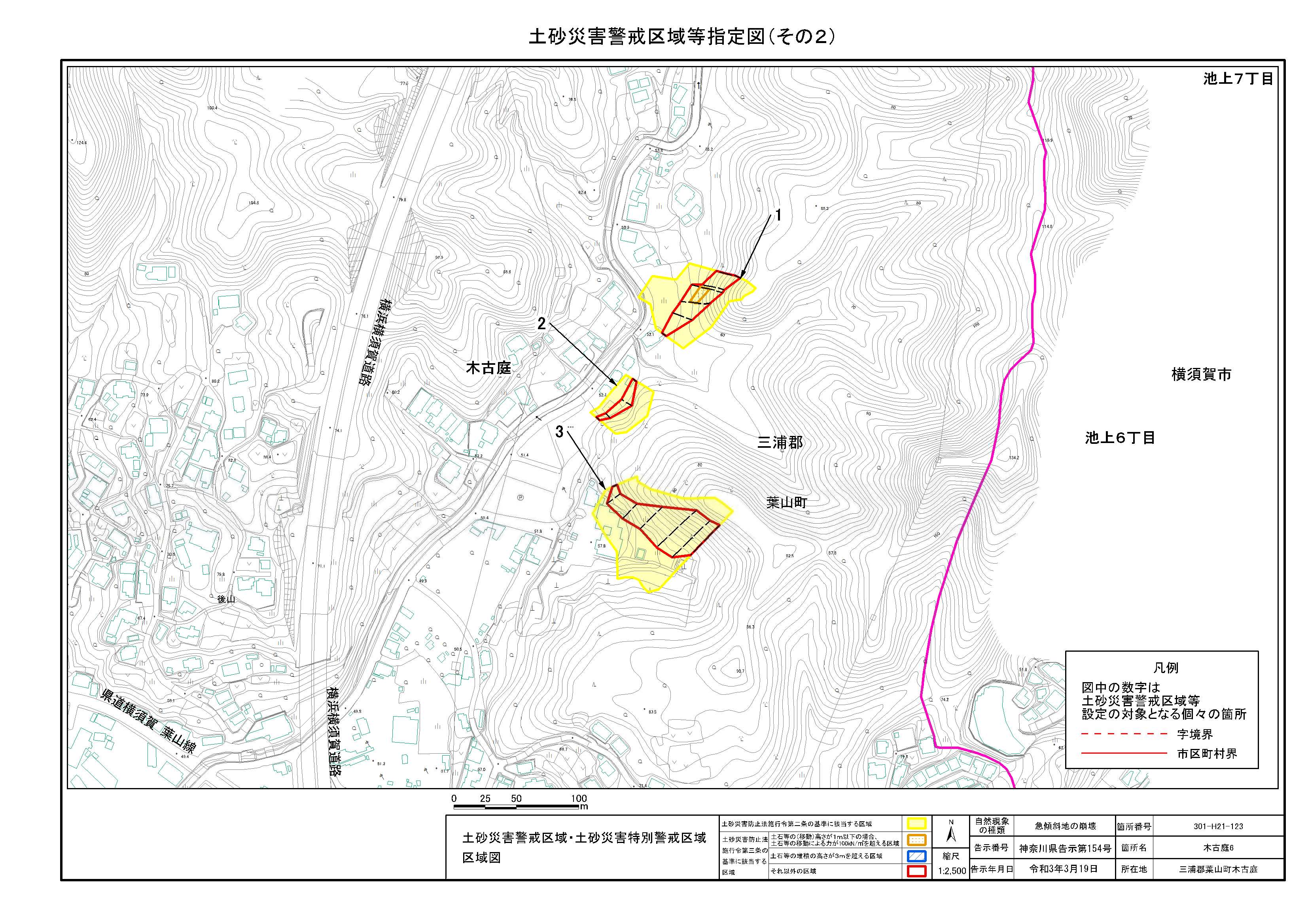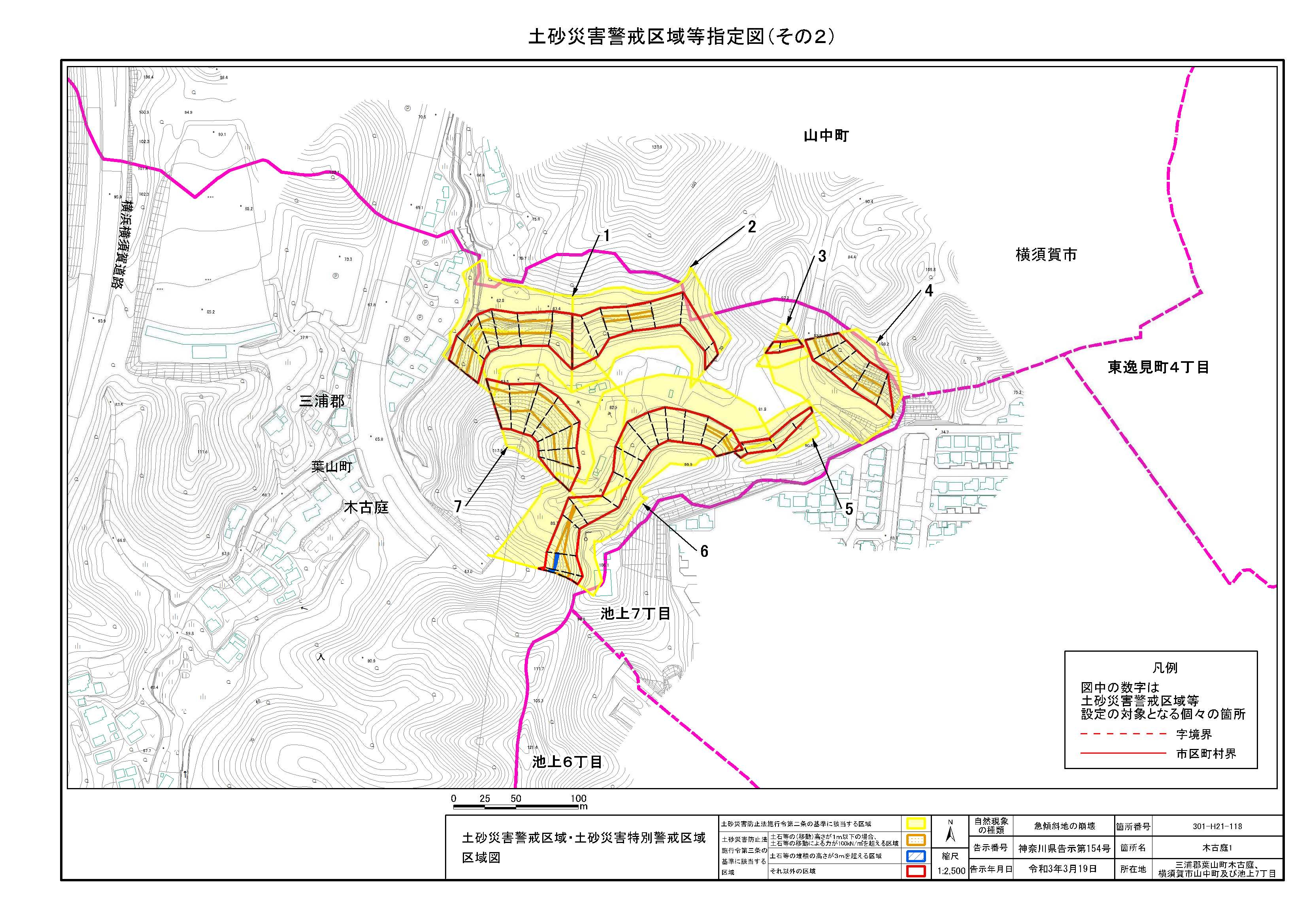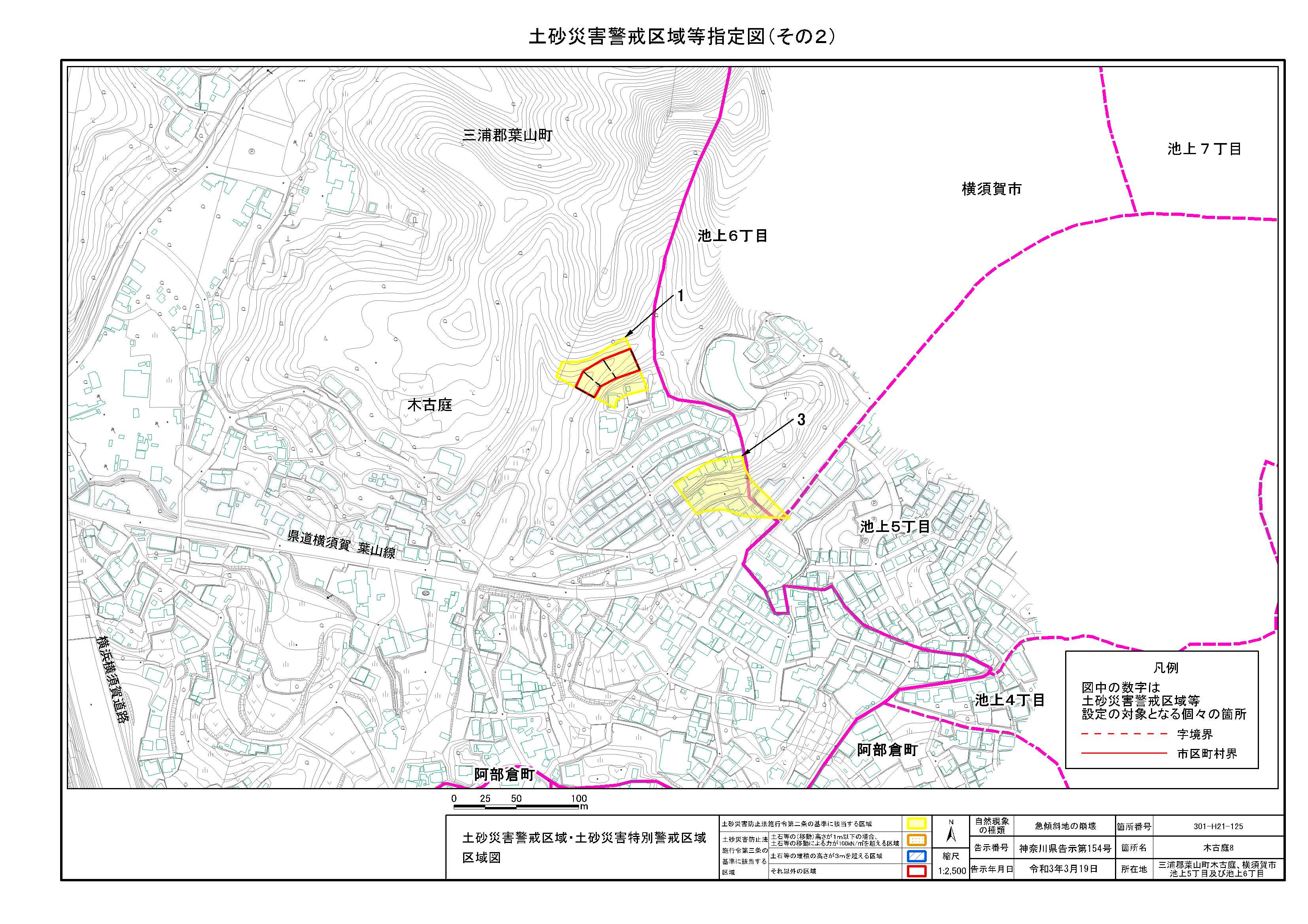 三浦郡葉山町木古庭、横須賀市山中町及び池上7丁目 |