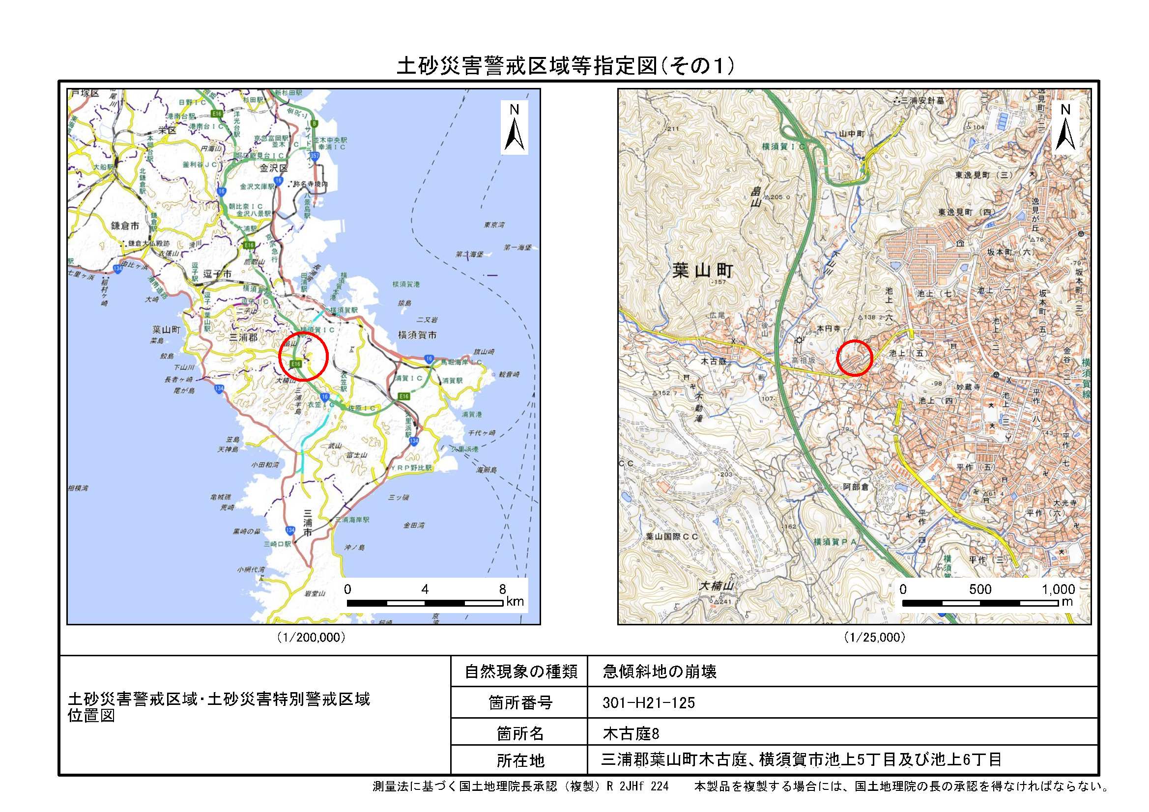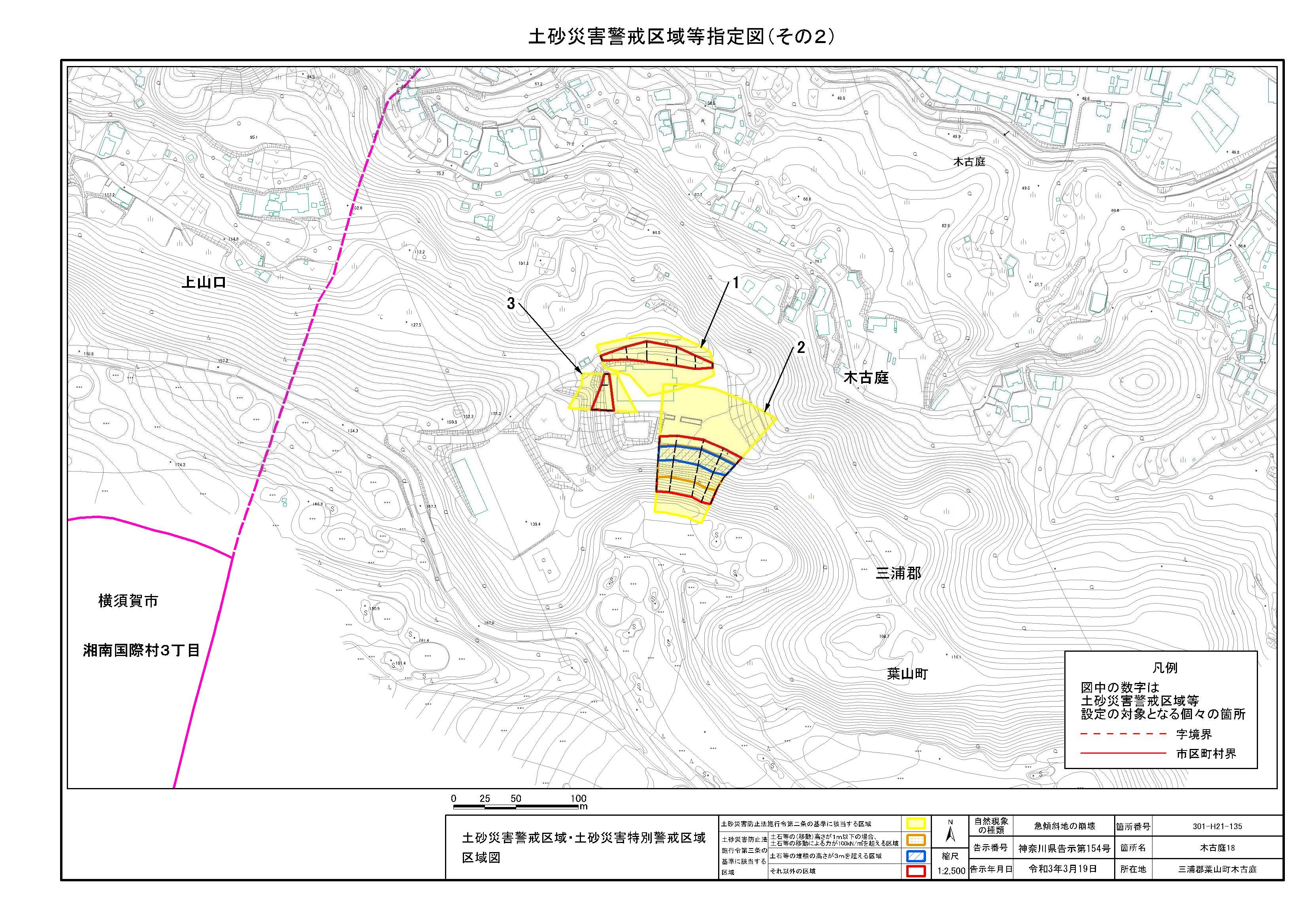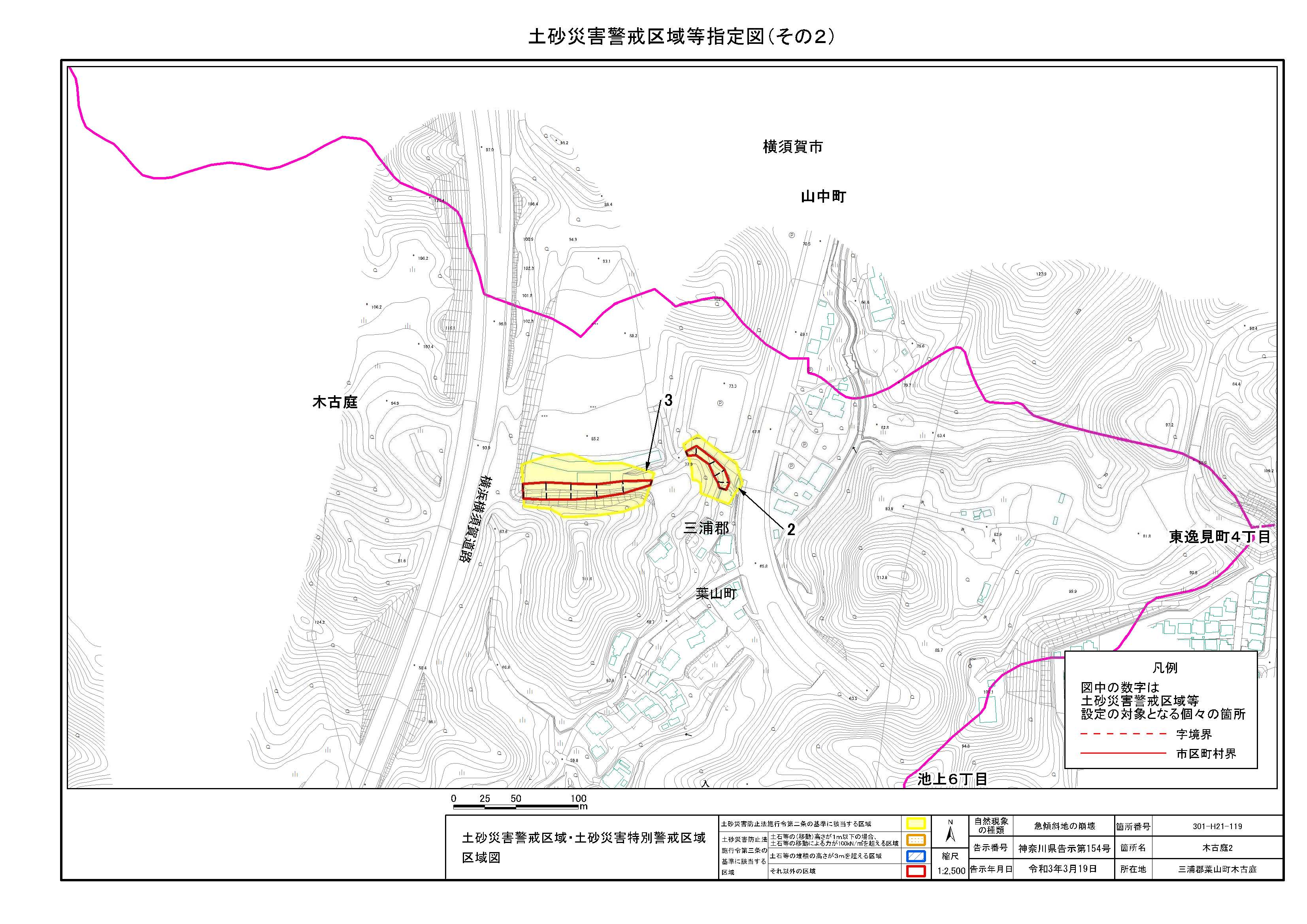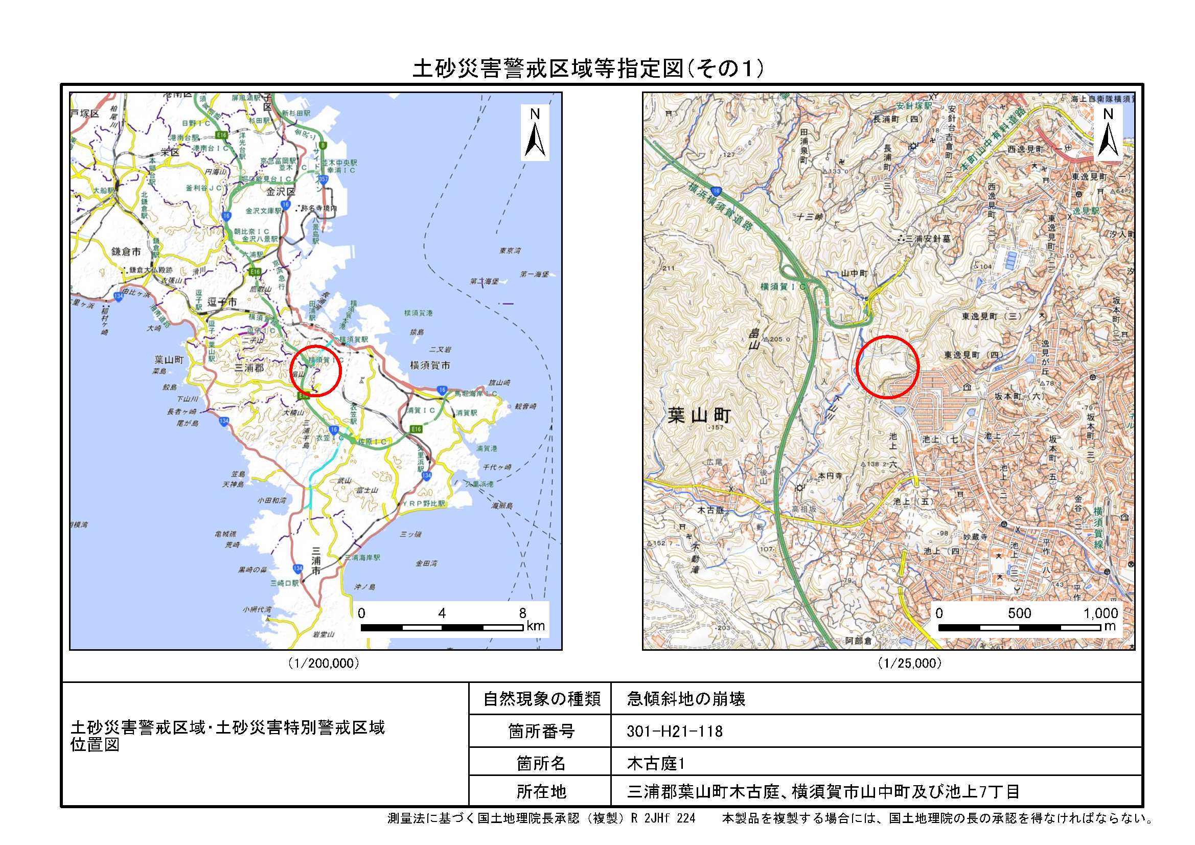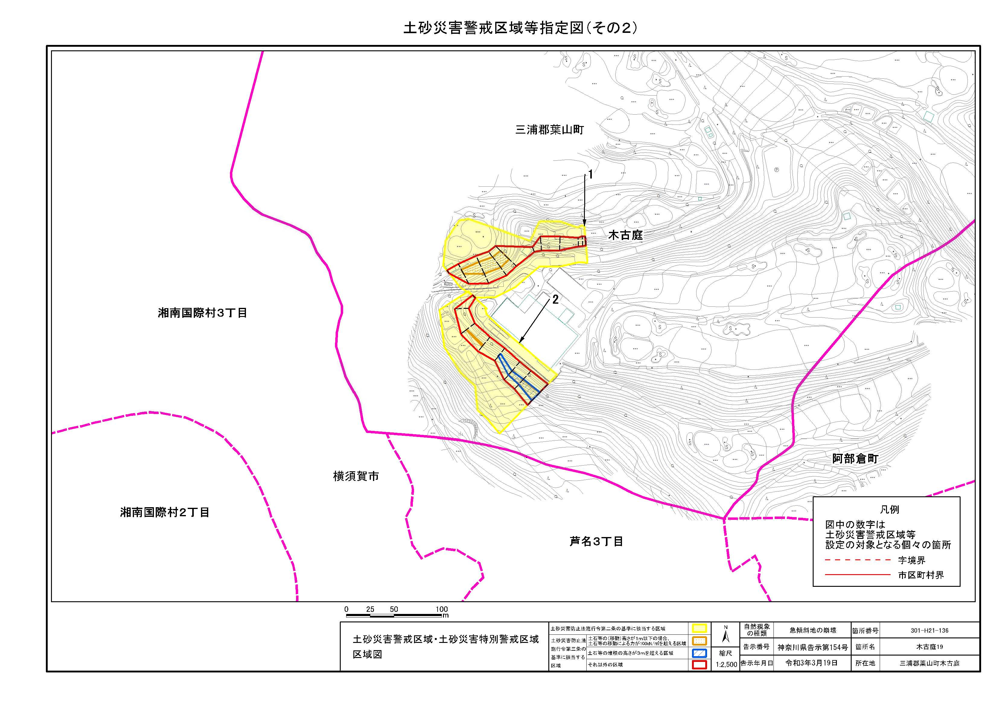 三浦郡葉山町木古庭、横須賀市山中町及び池上7丁目 |