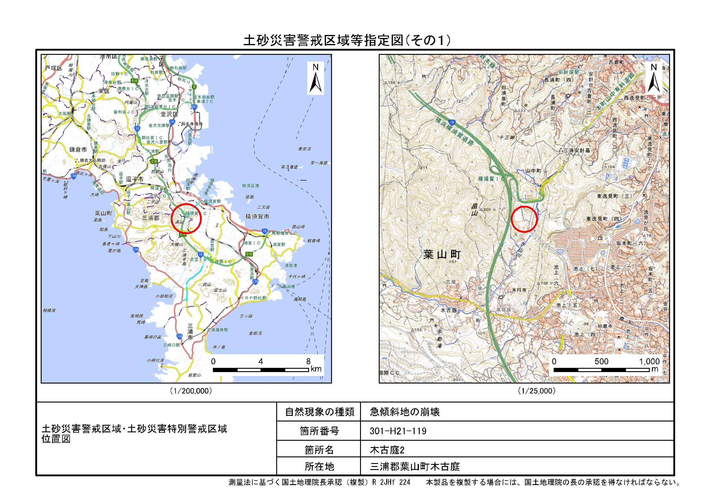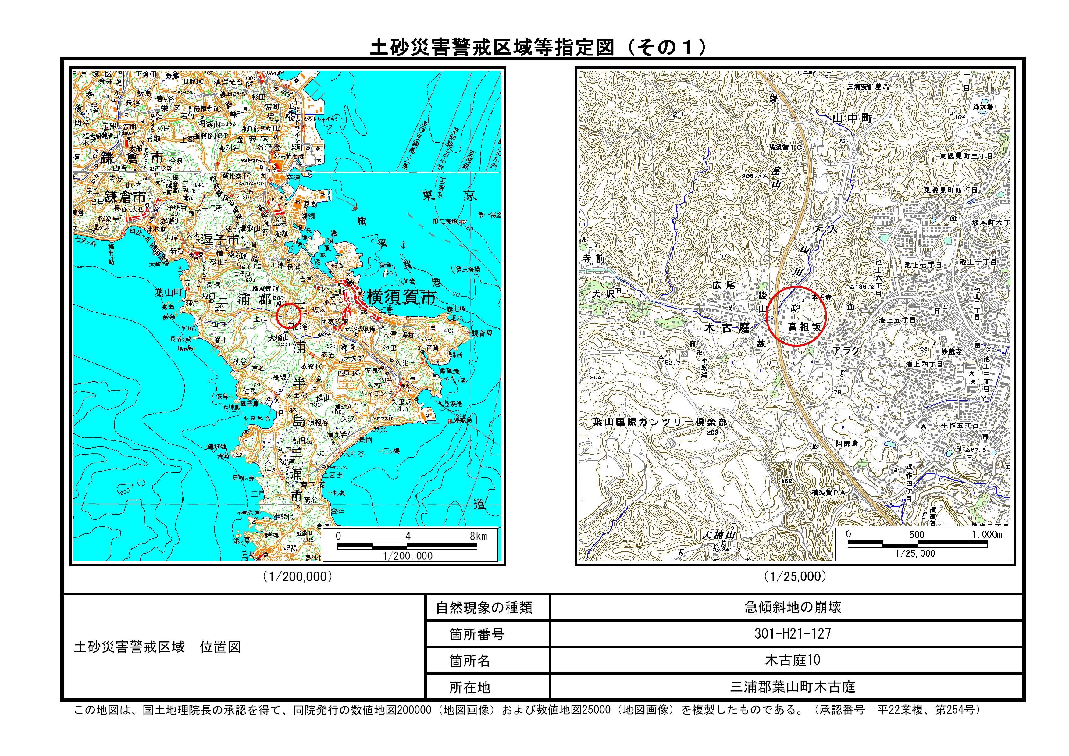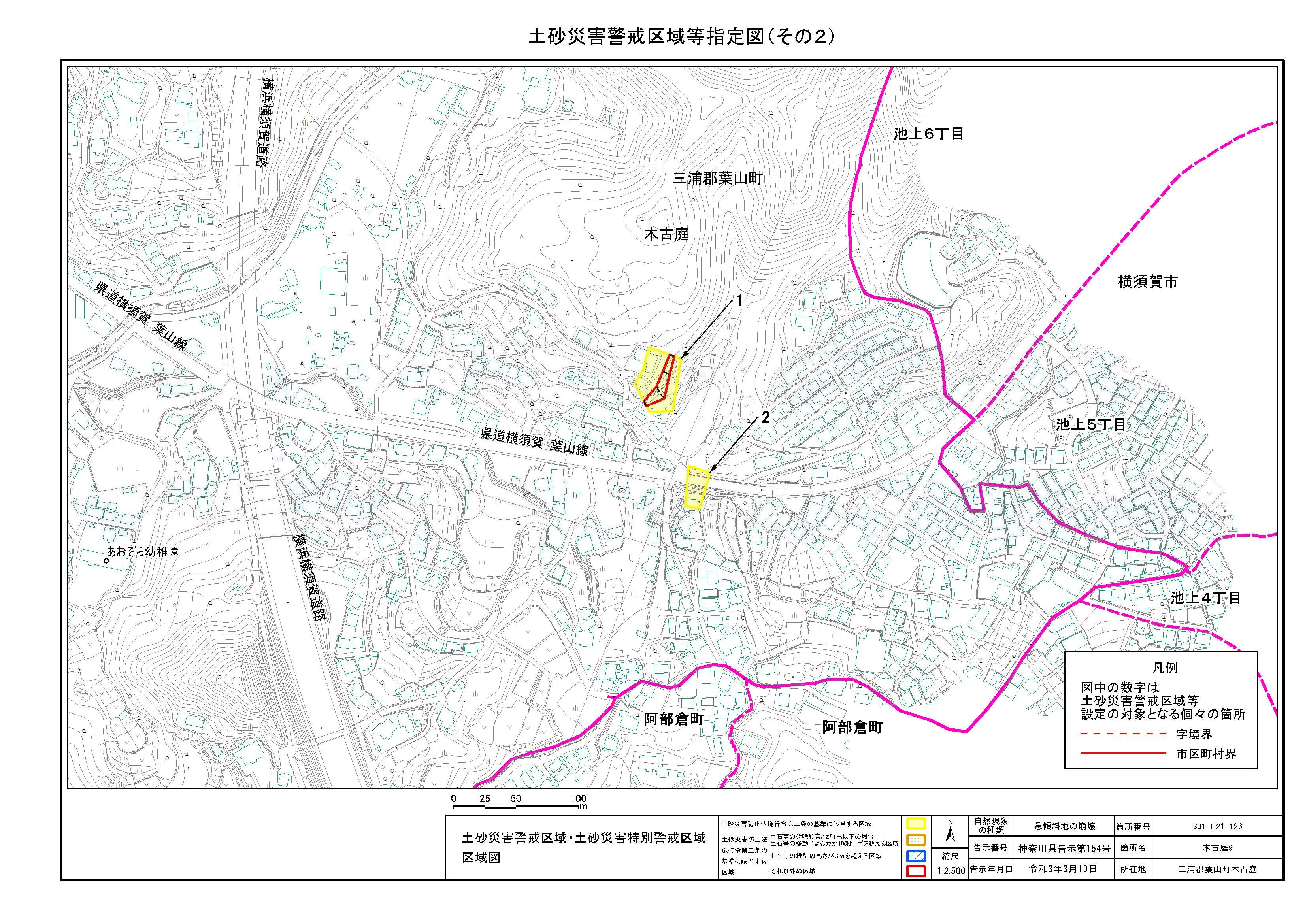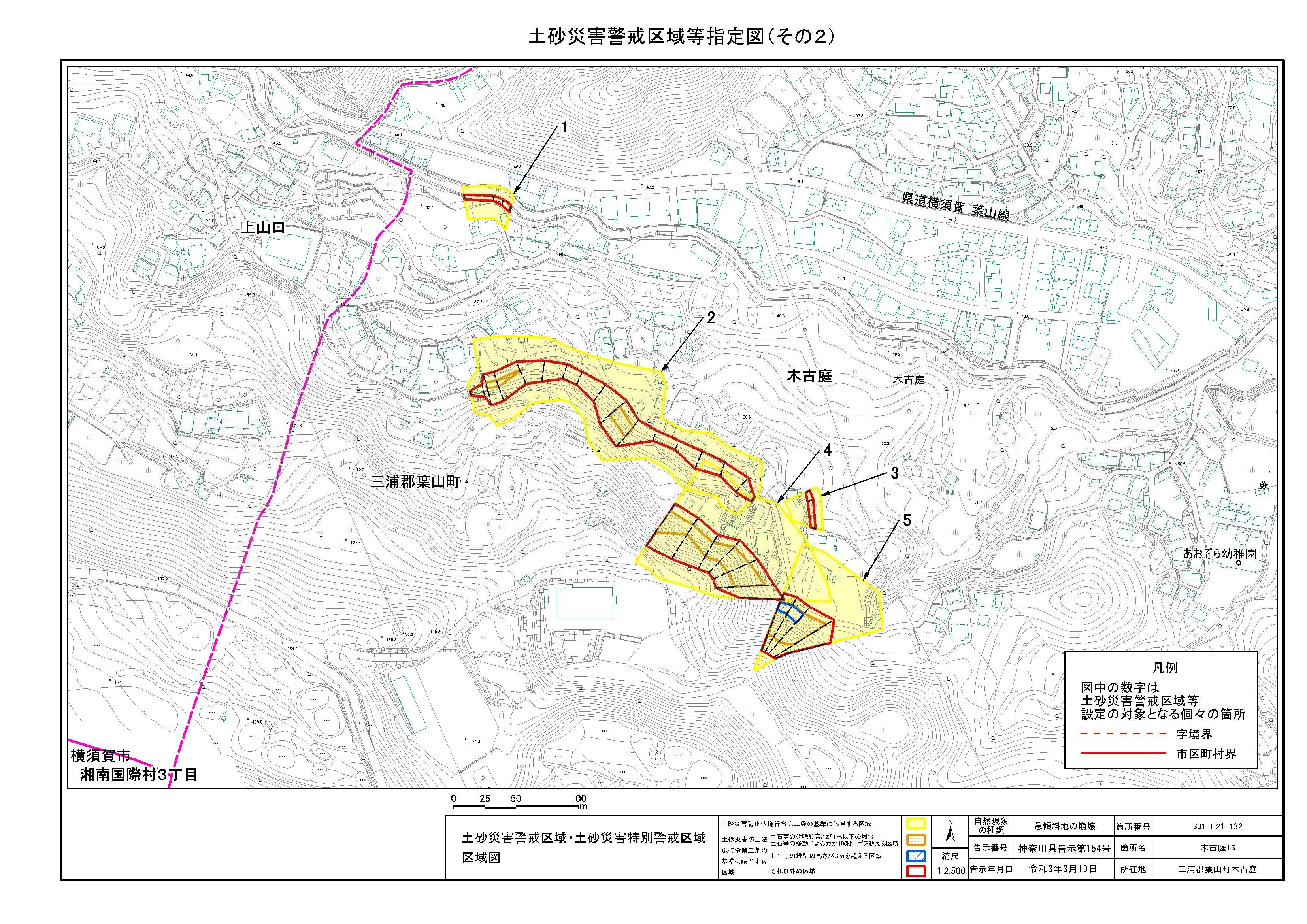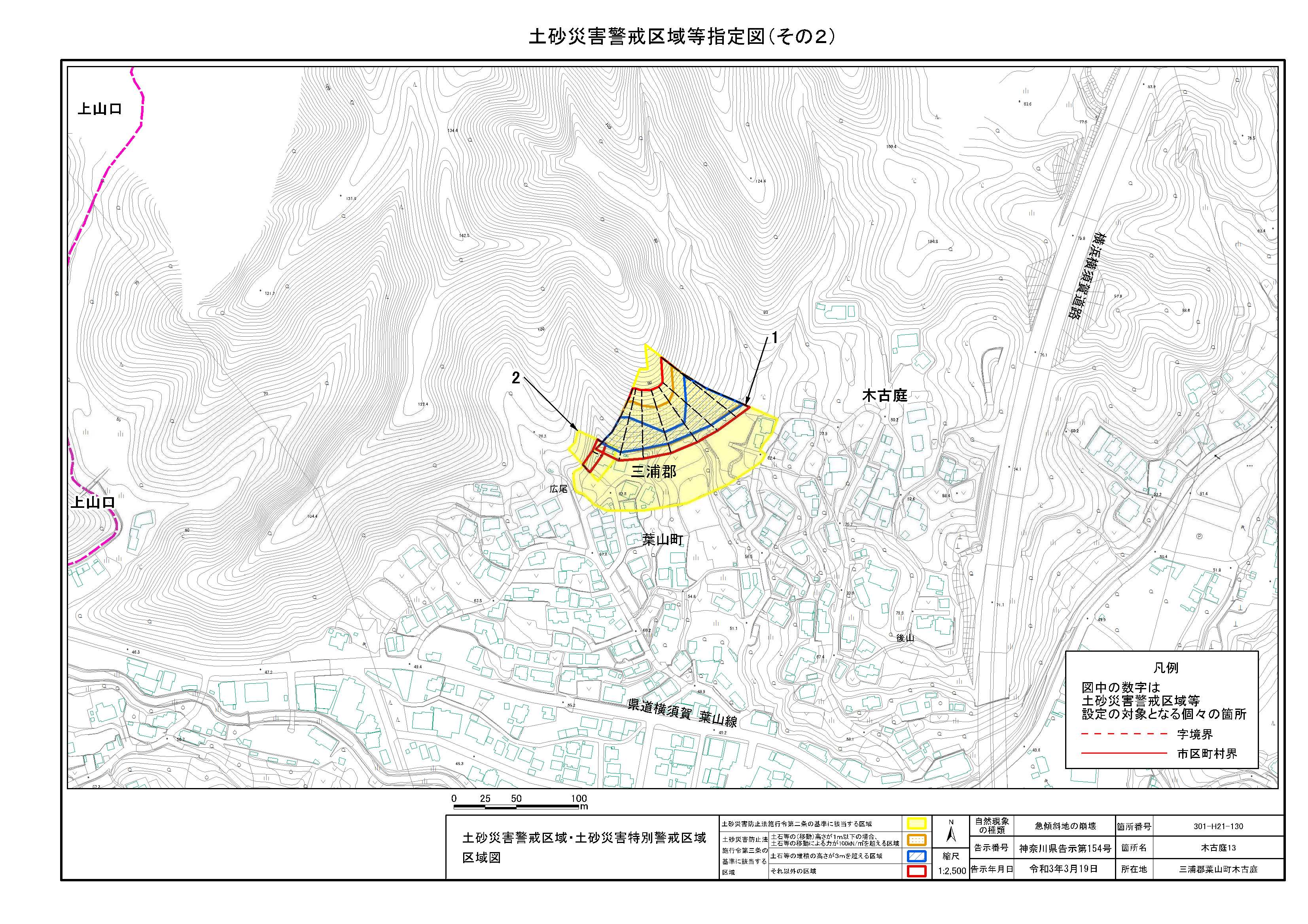 三浦郡葉山町木古庭、横須賀市山中町及び池上7丁目 |