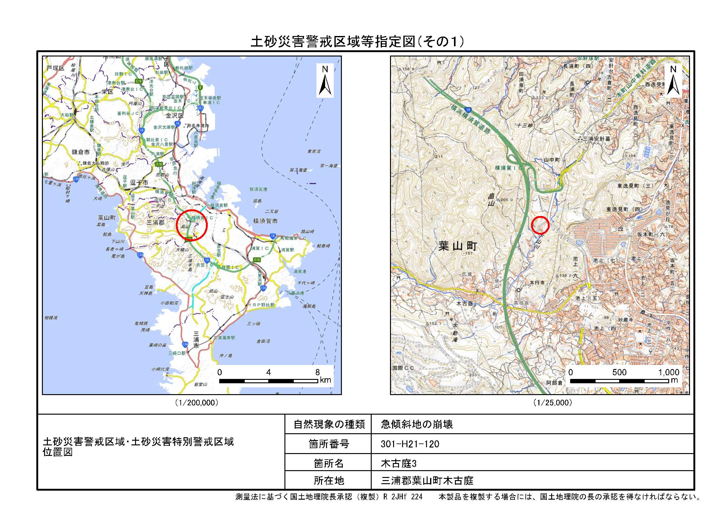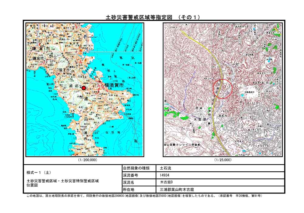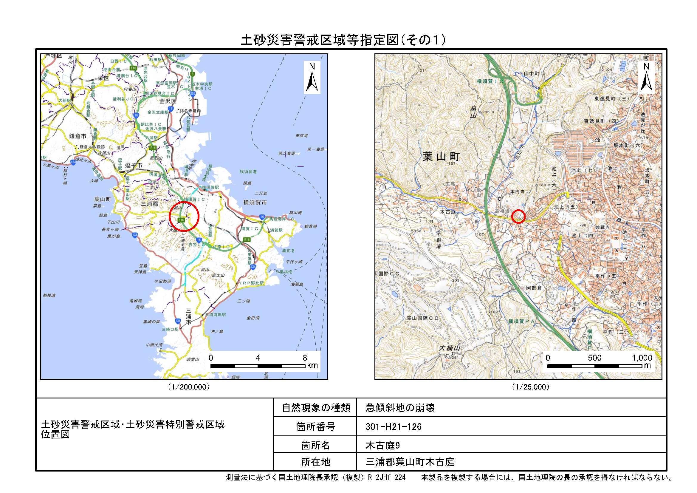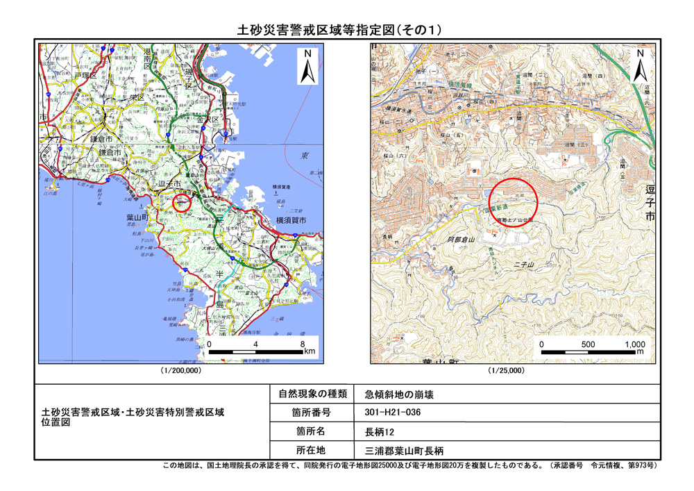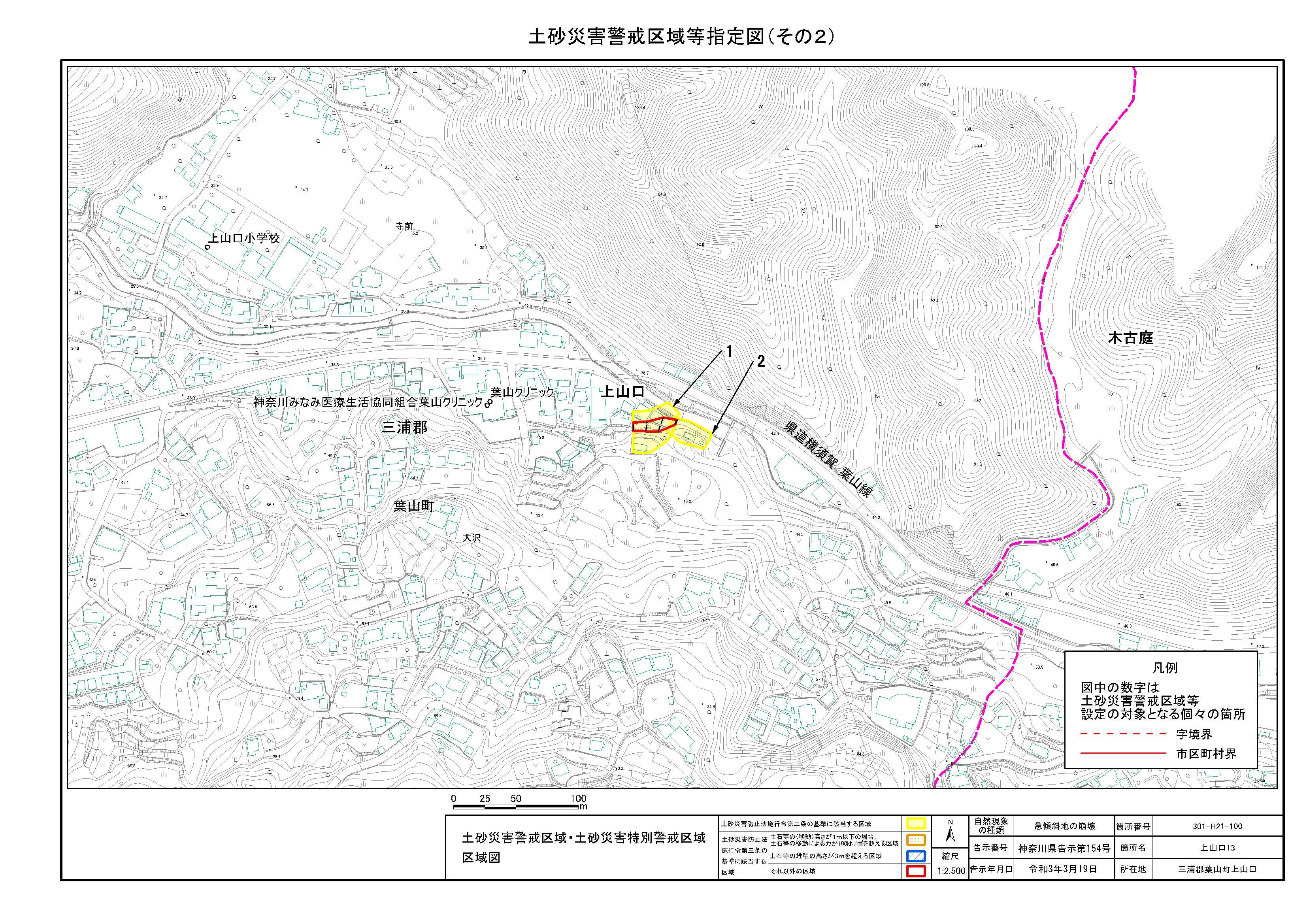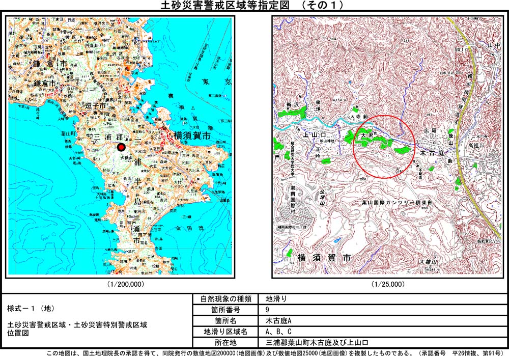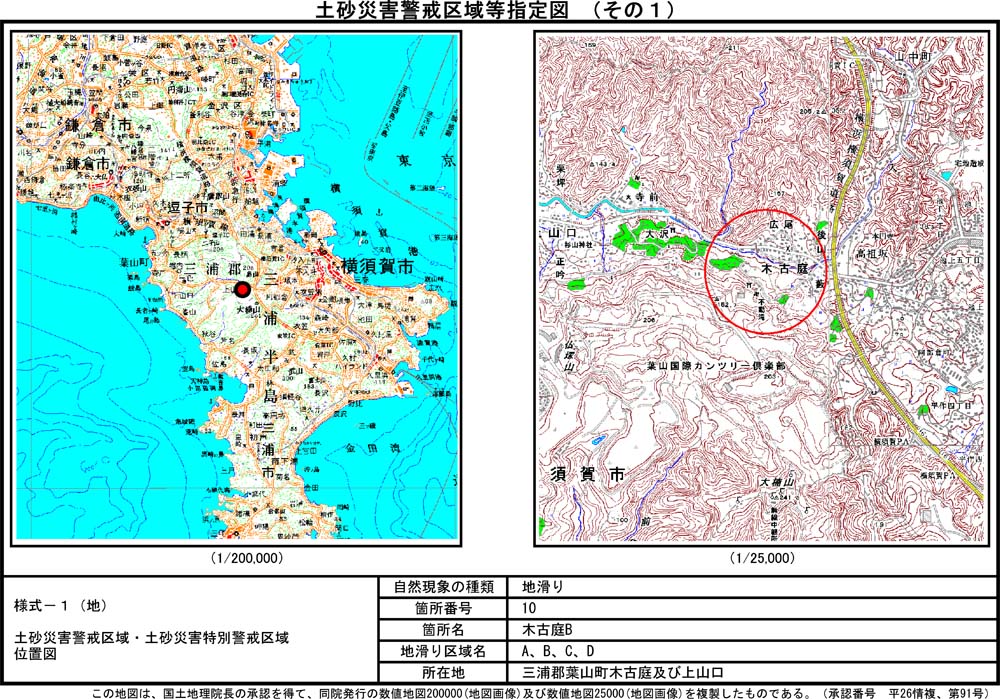 三浦郡葉山町木古庭、横須賀市山中町及び池上7丁目 |