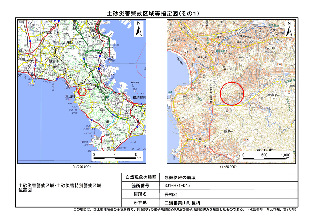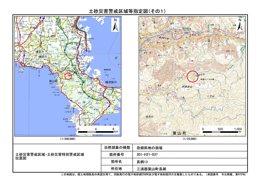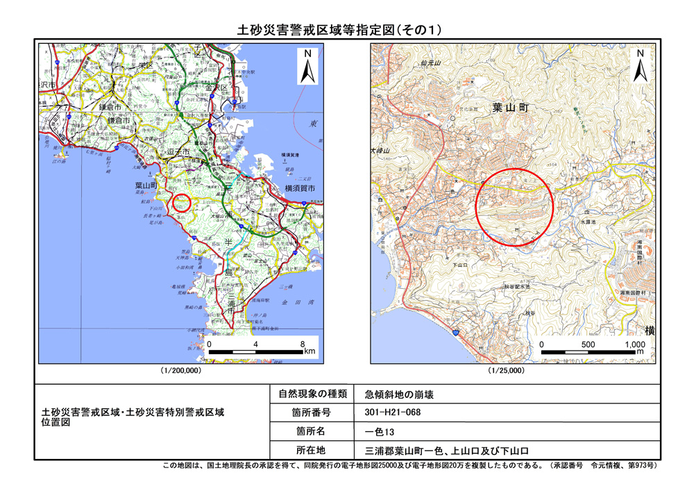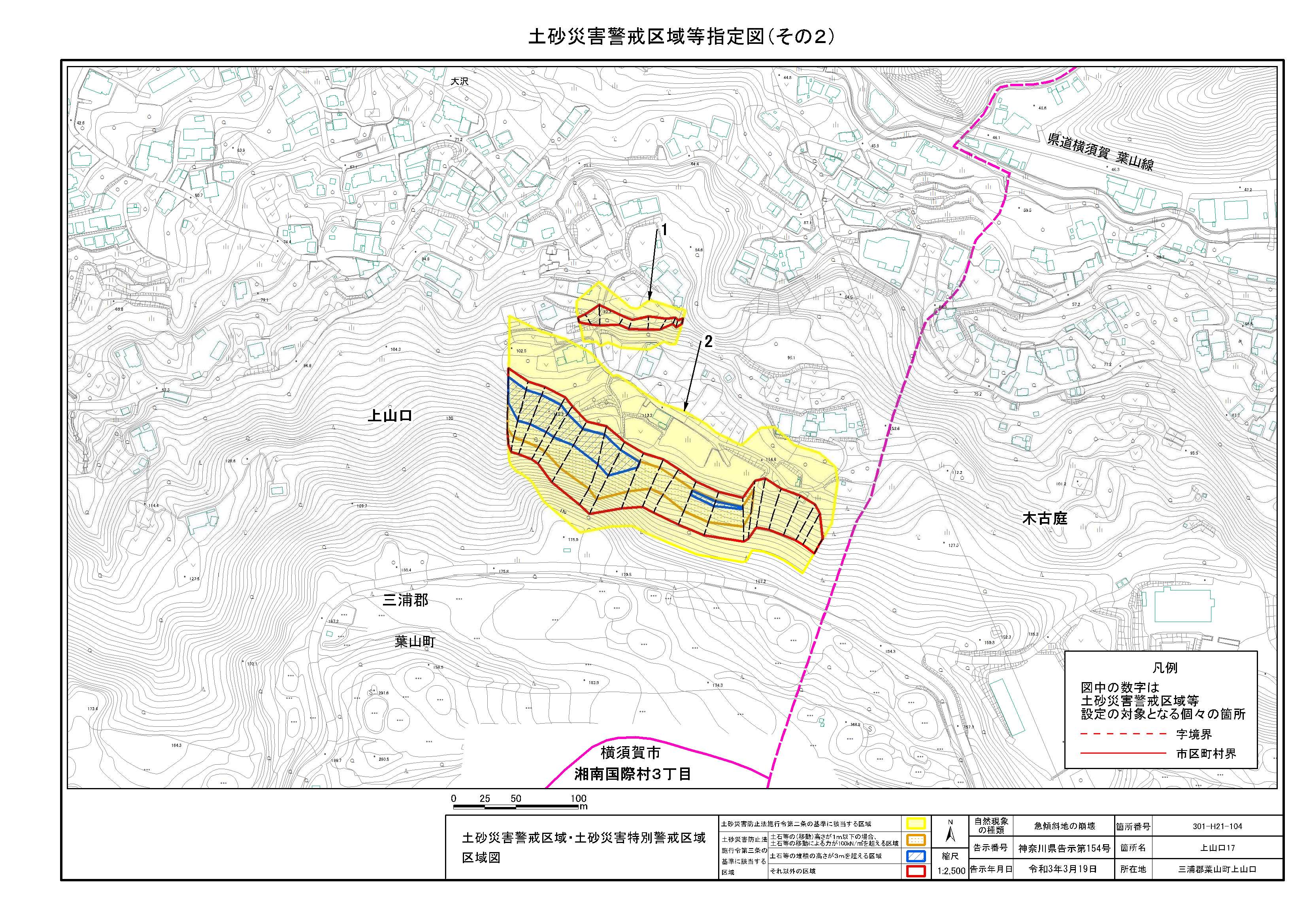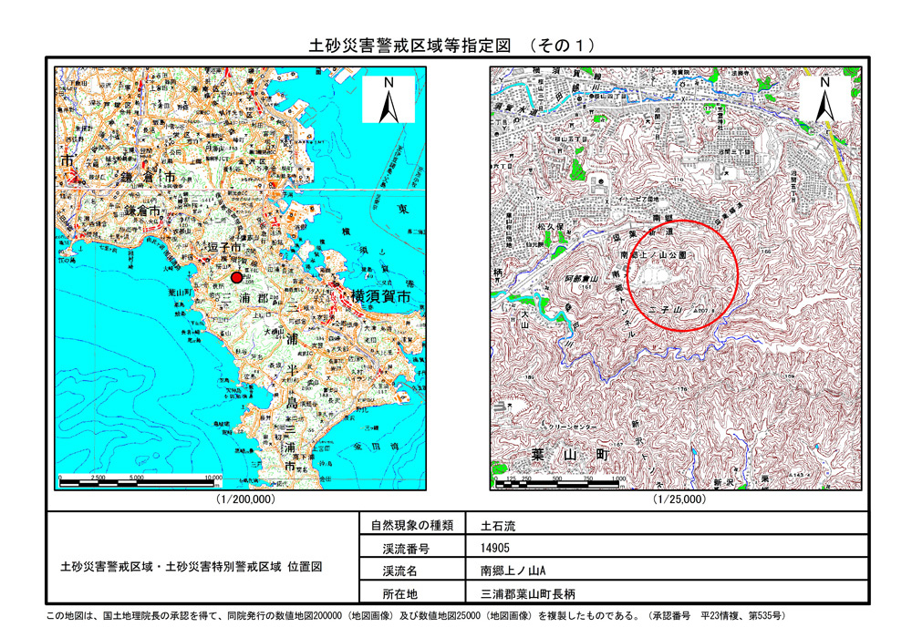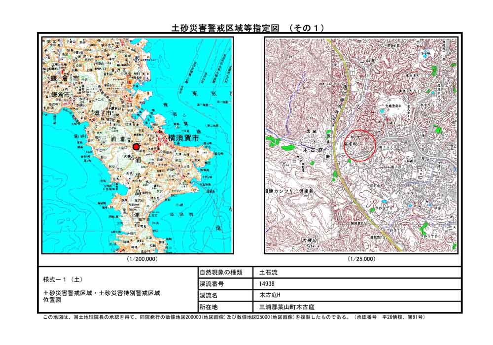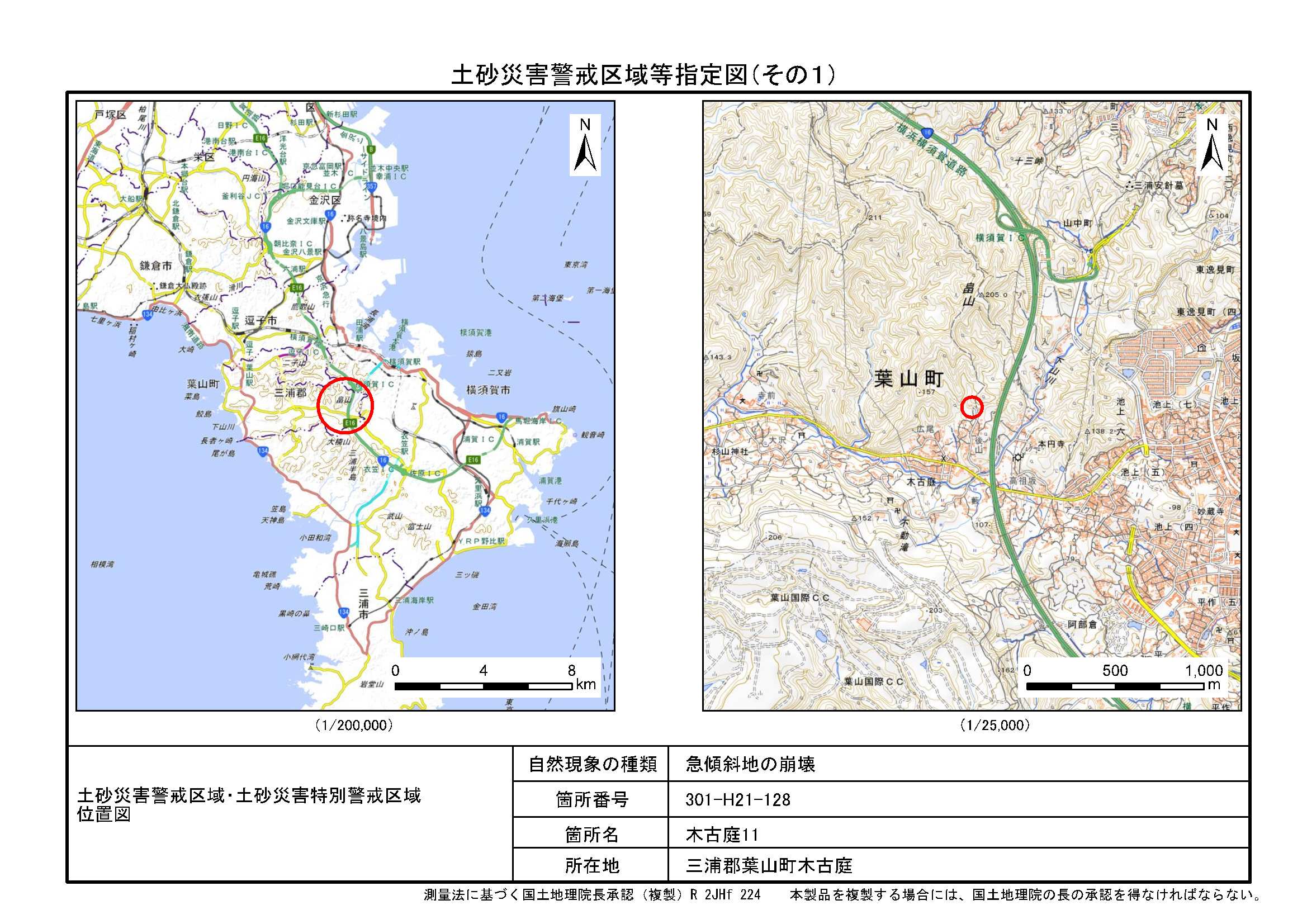 三浦郡葉山町木古庭、横須賀市山中町及び池上7丁目 |