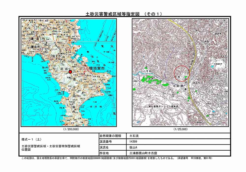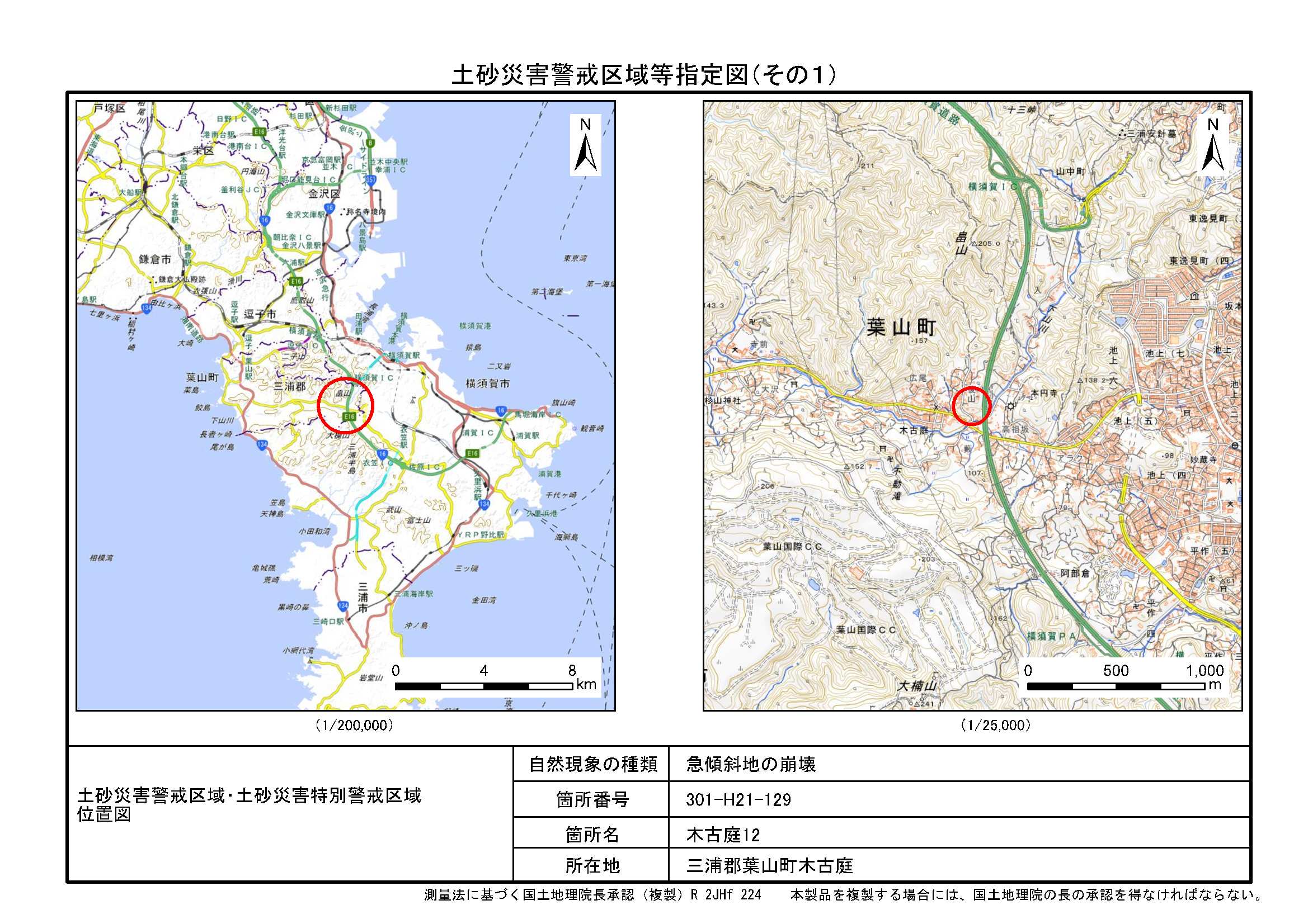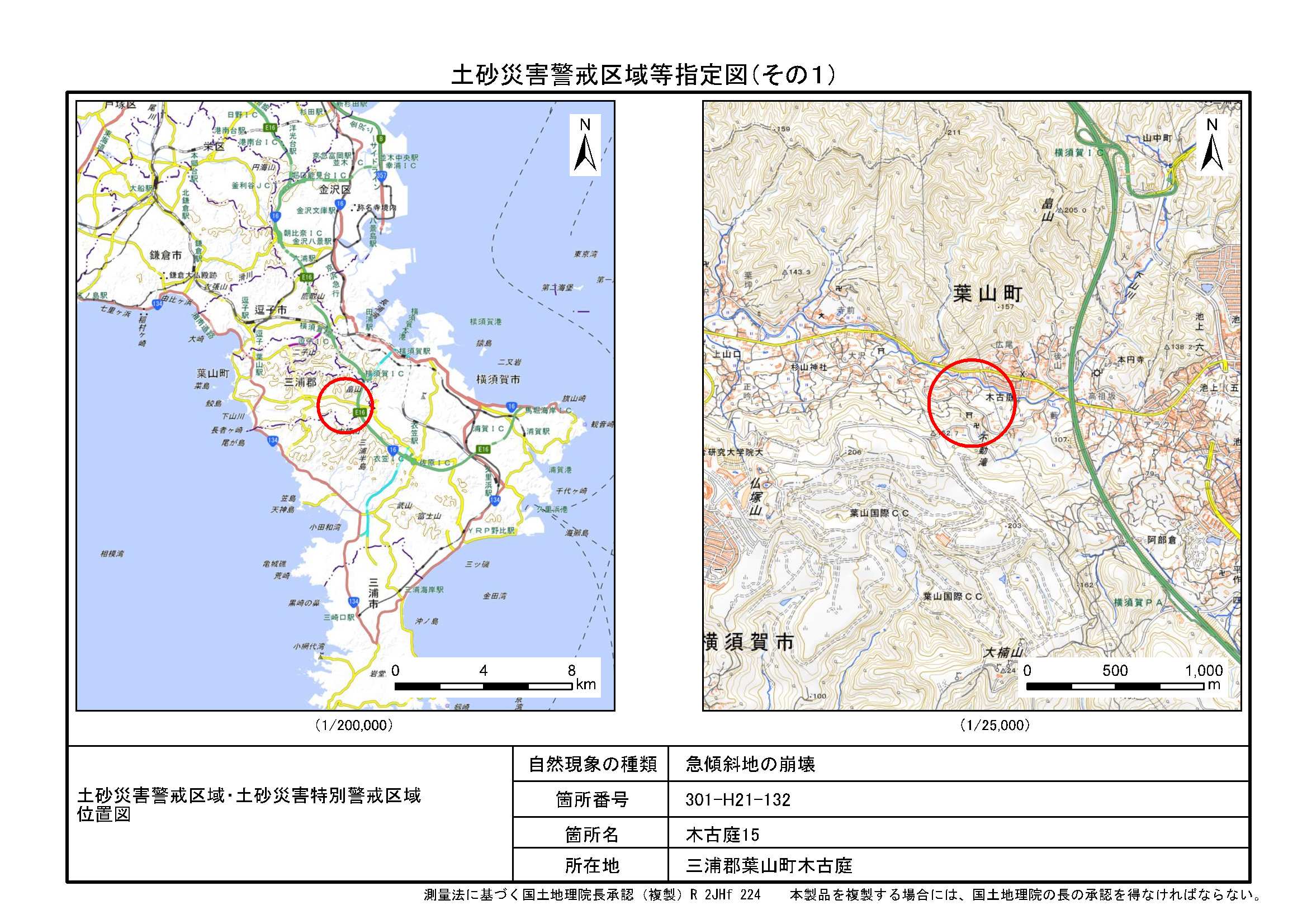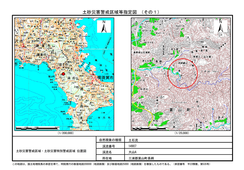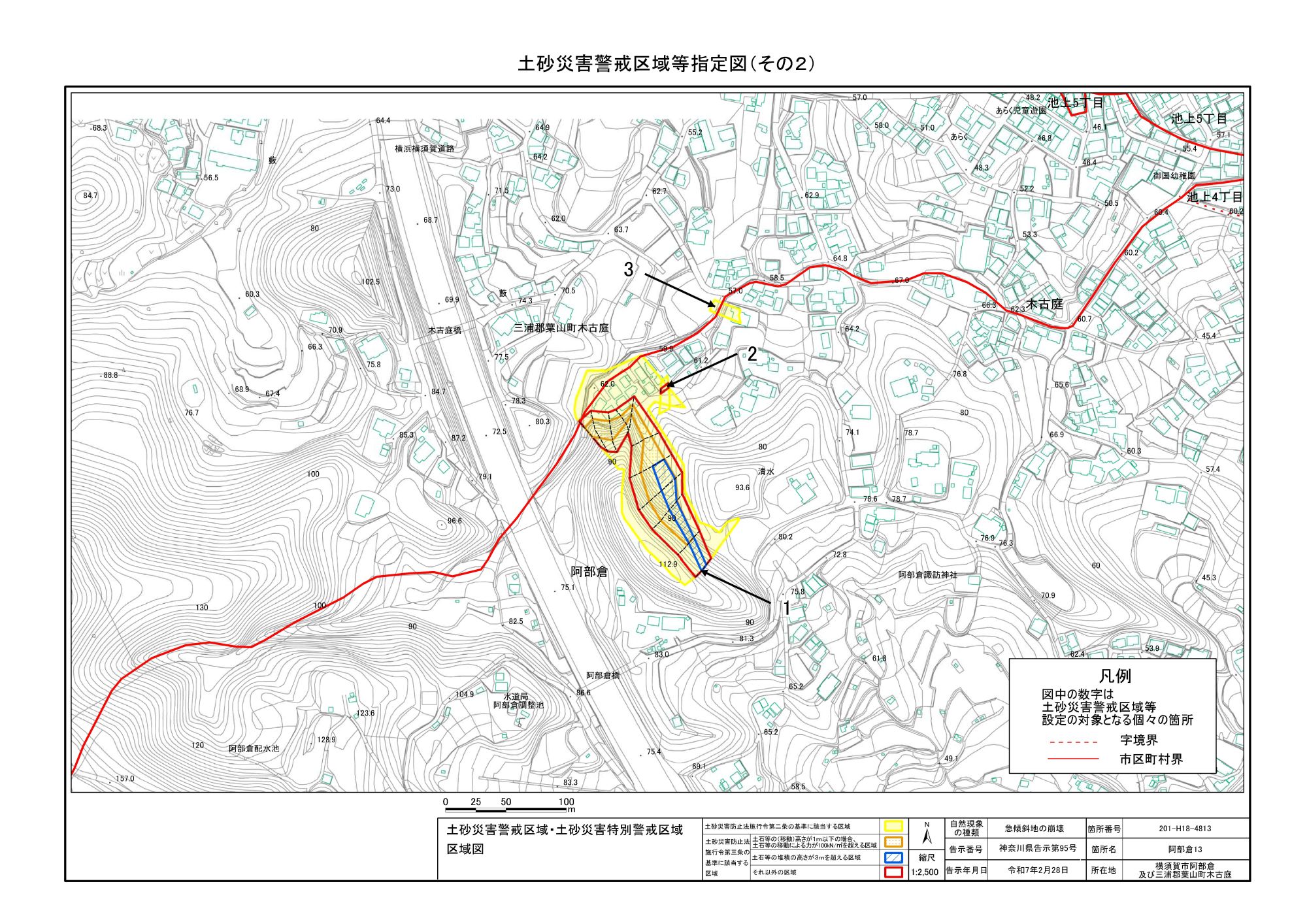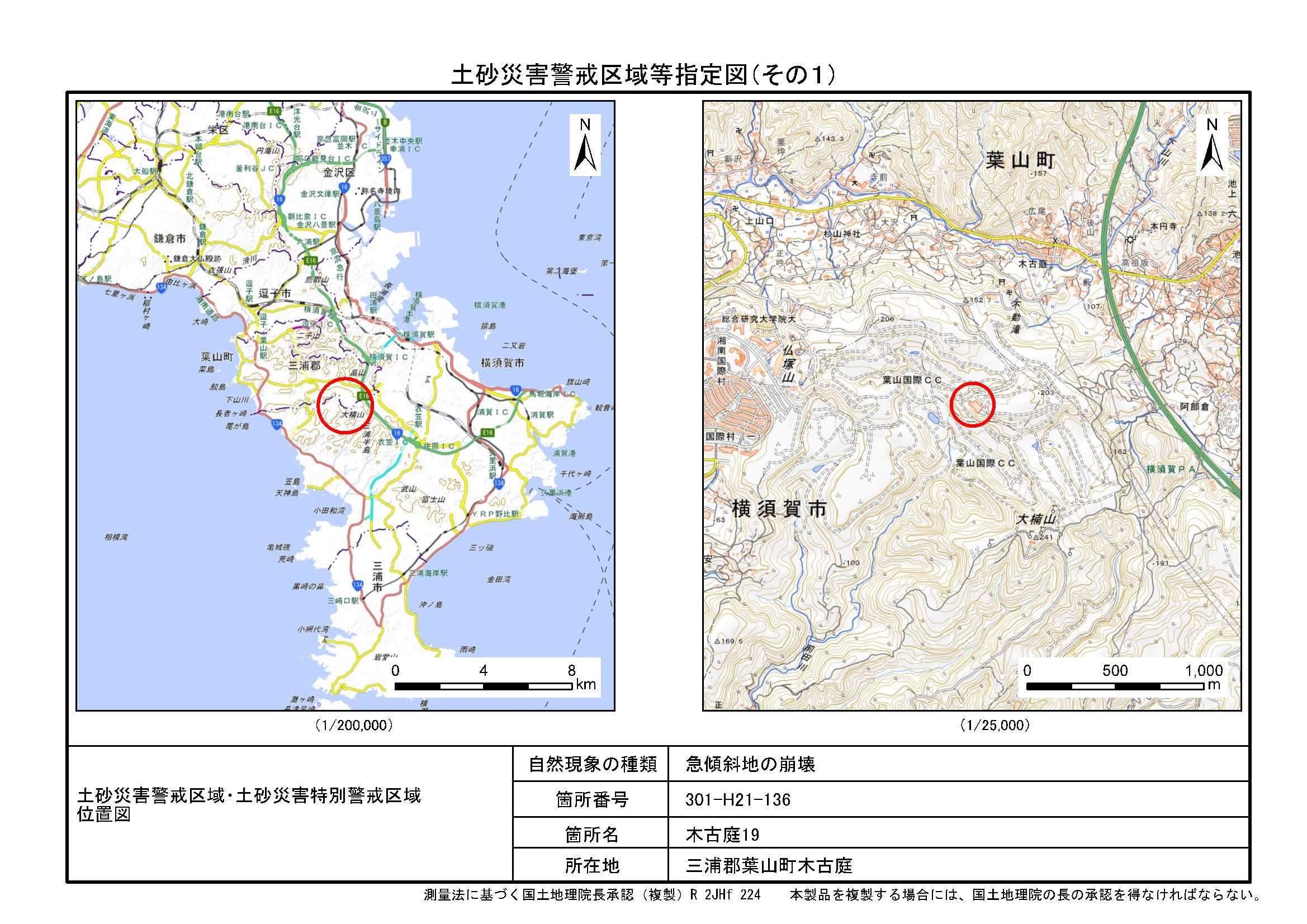 三浦郡葉山町木古庭、横須賀市山中町及び池上7丁目 |