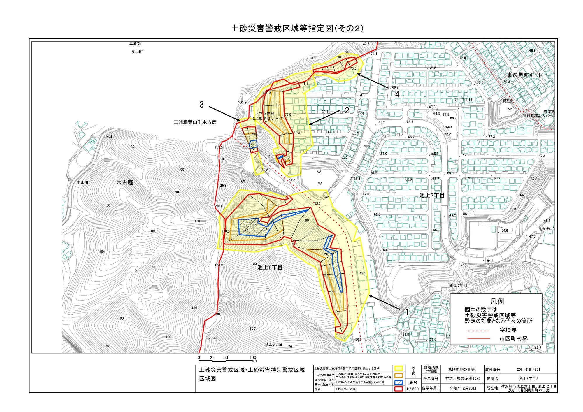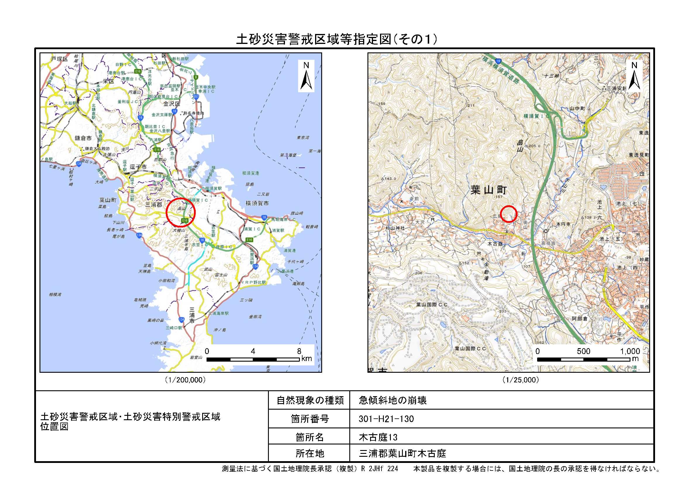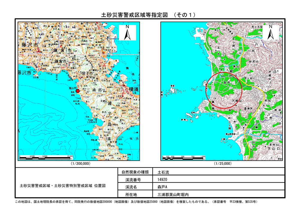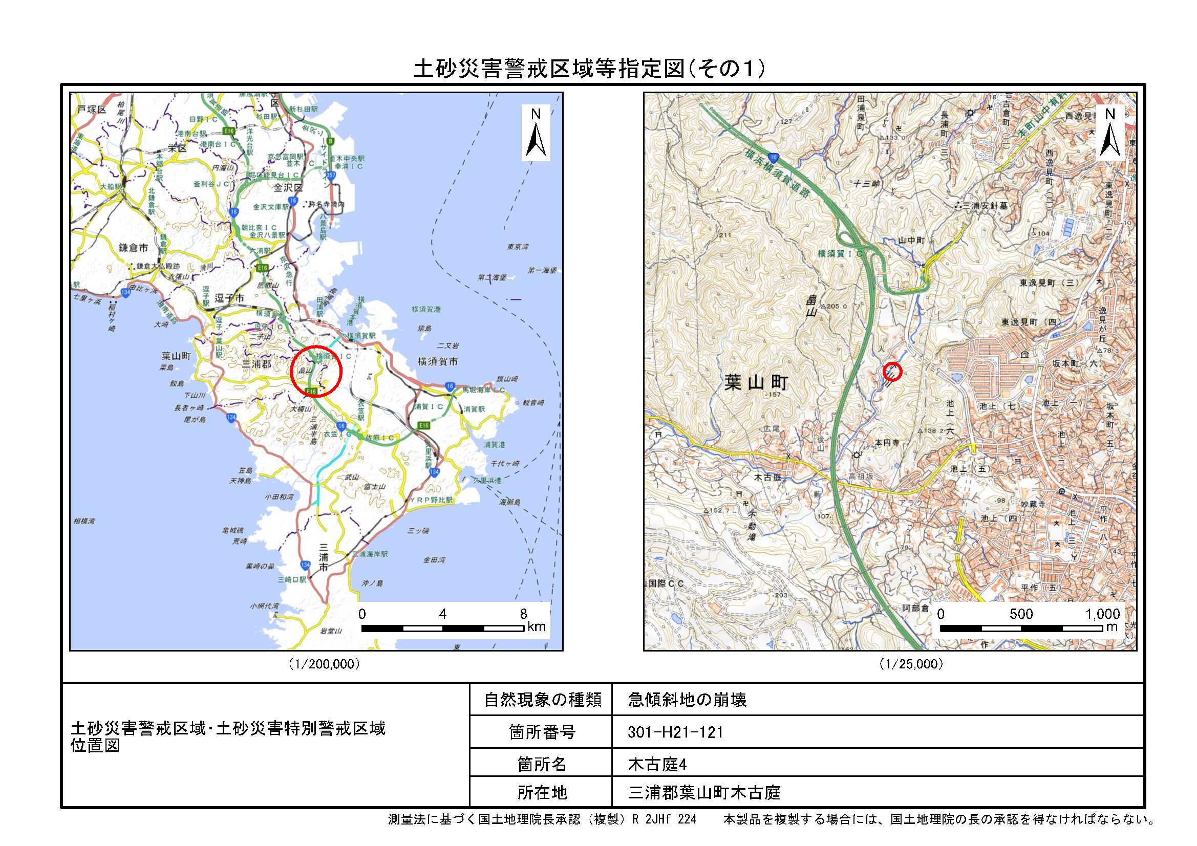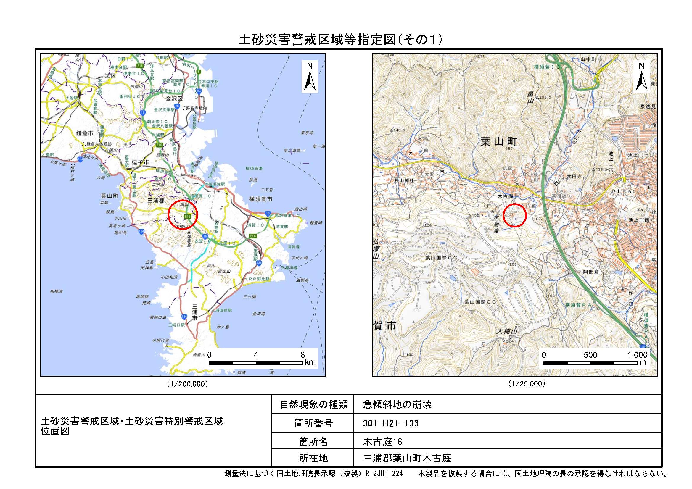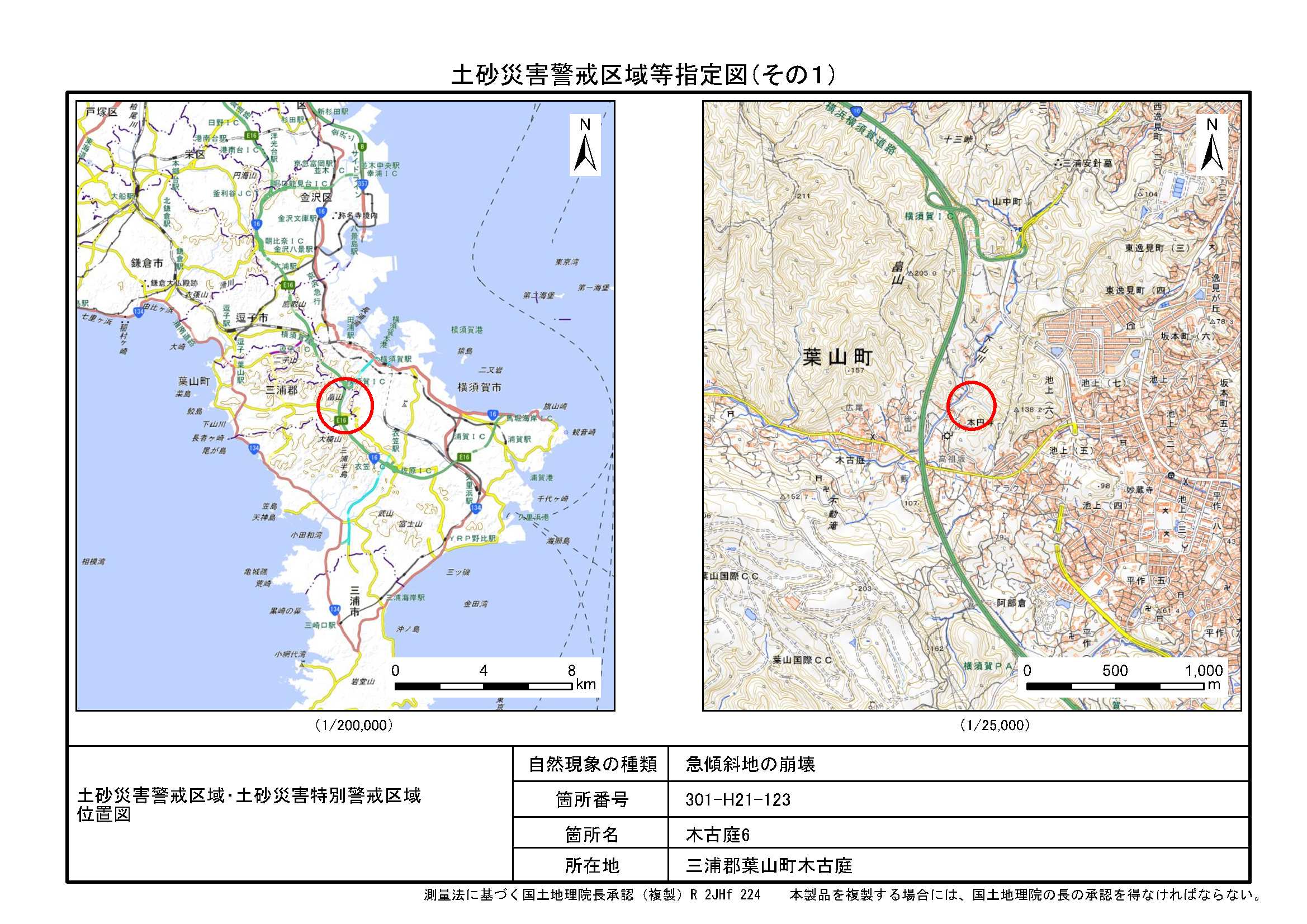 三浦郡葉山町木古庭、横須賀市山中町及び池上7丁目 |