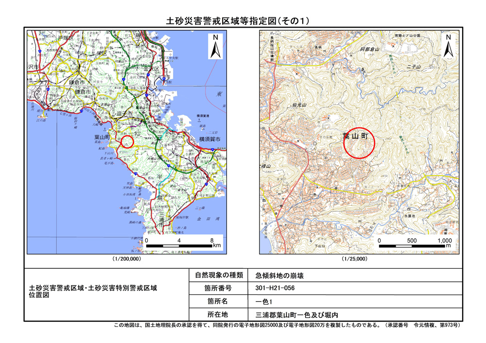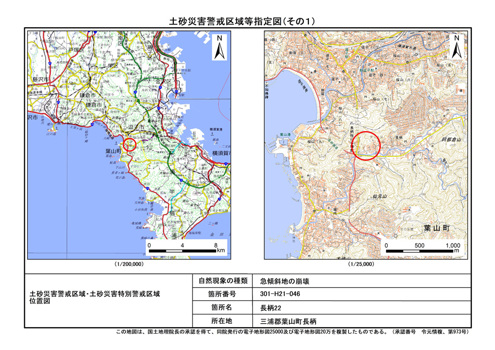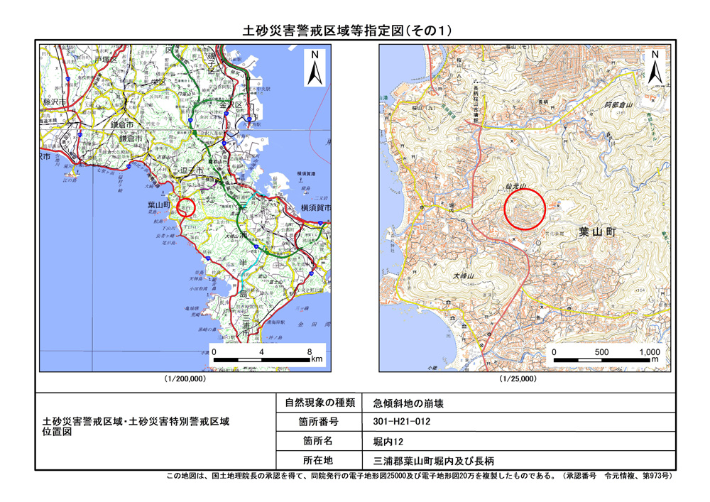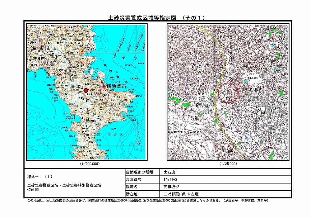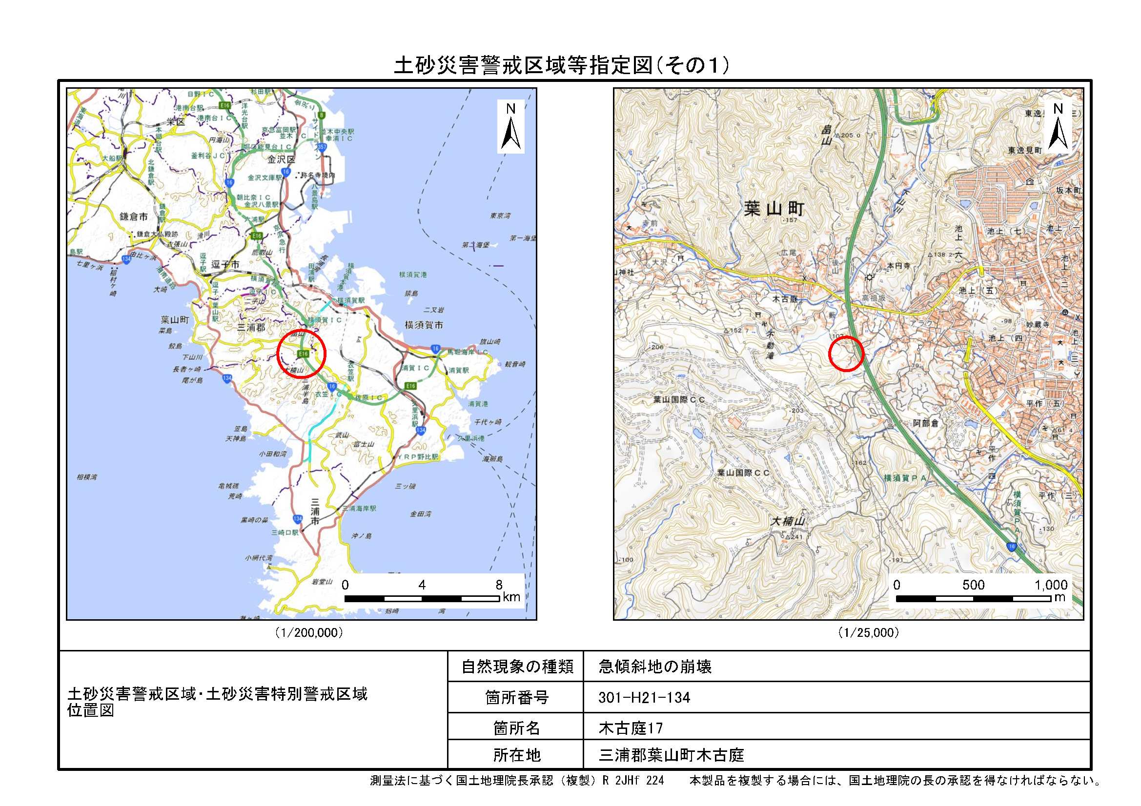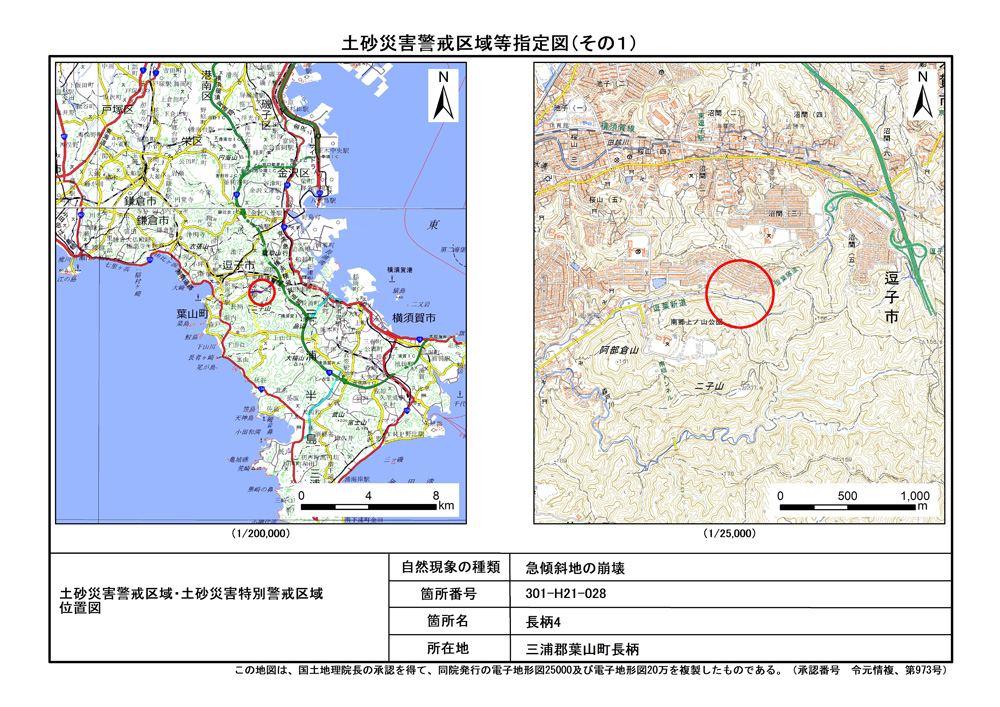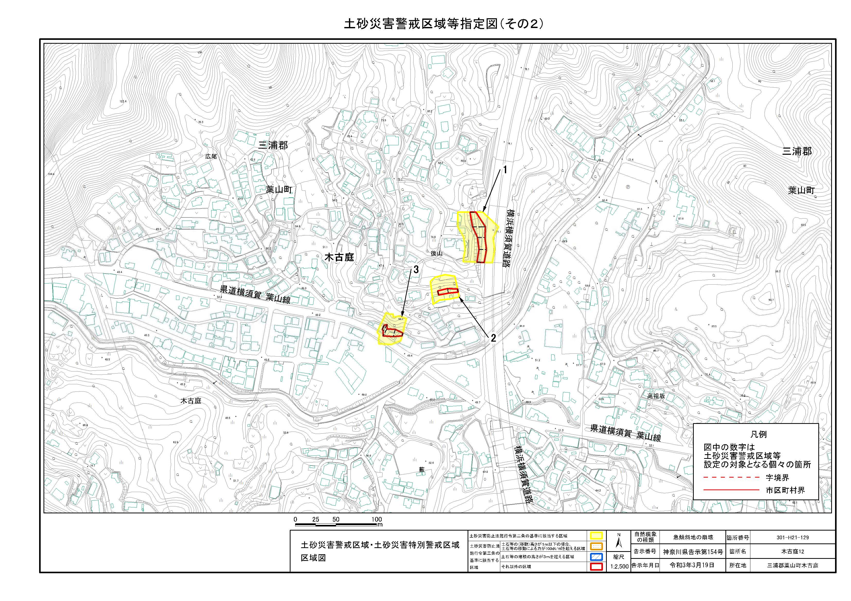 三浦郡葉山町木古庭、横須賀市山中町及び池上7丁目 |