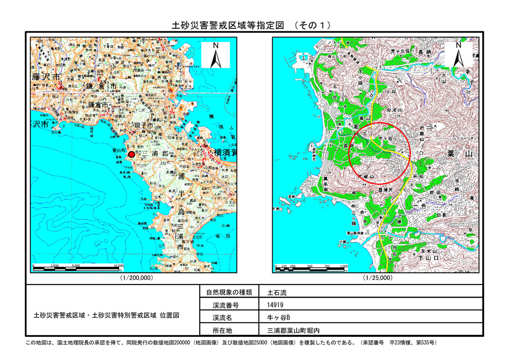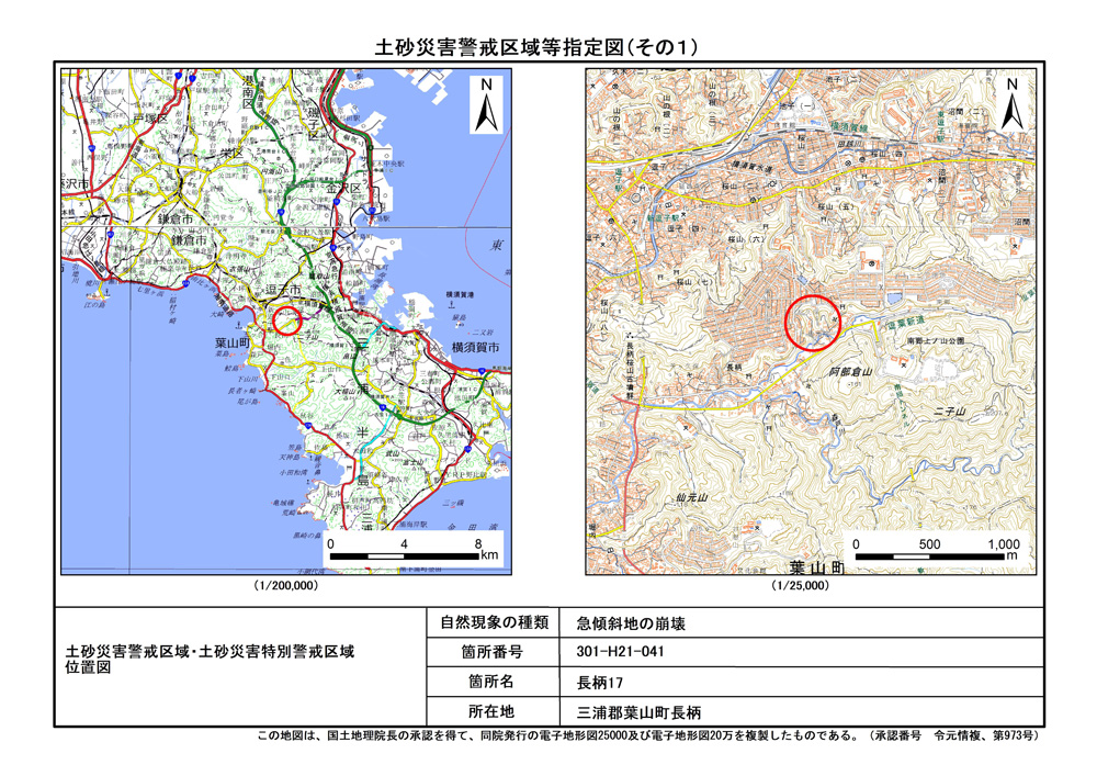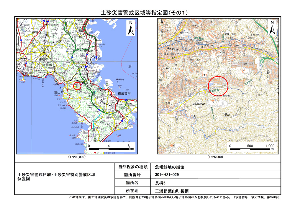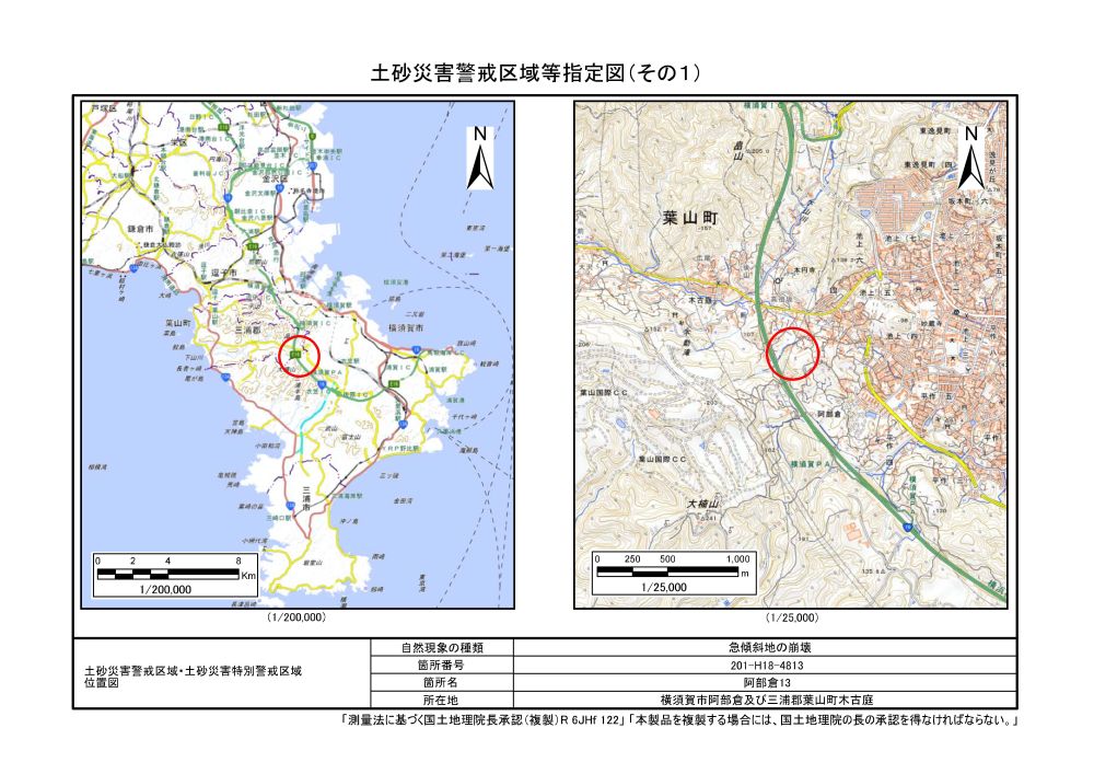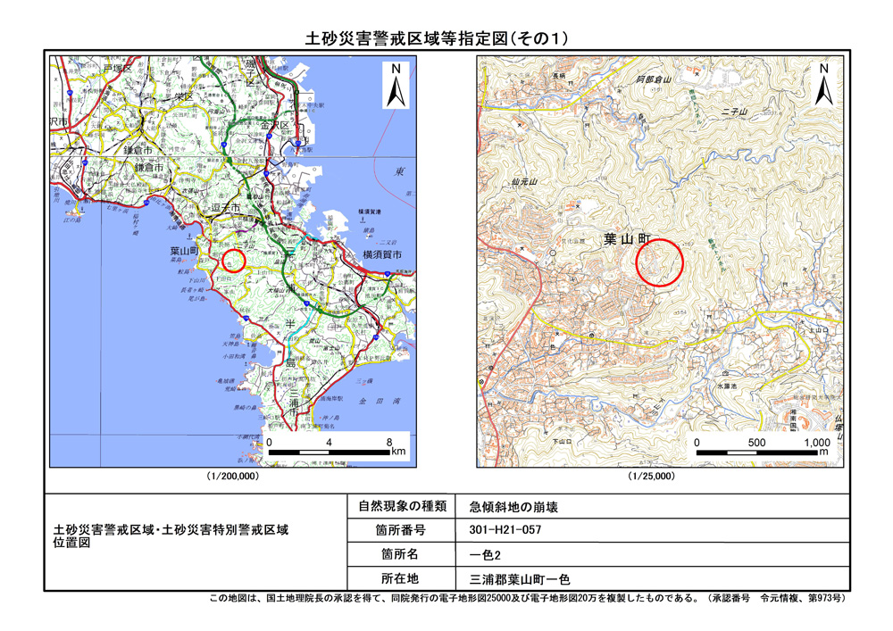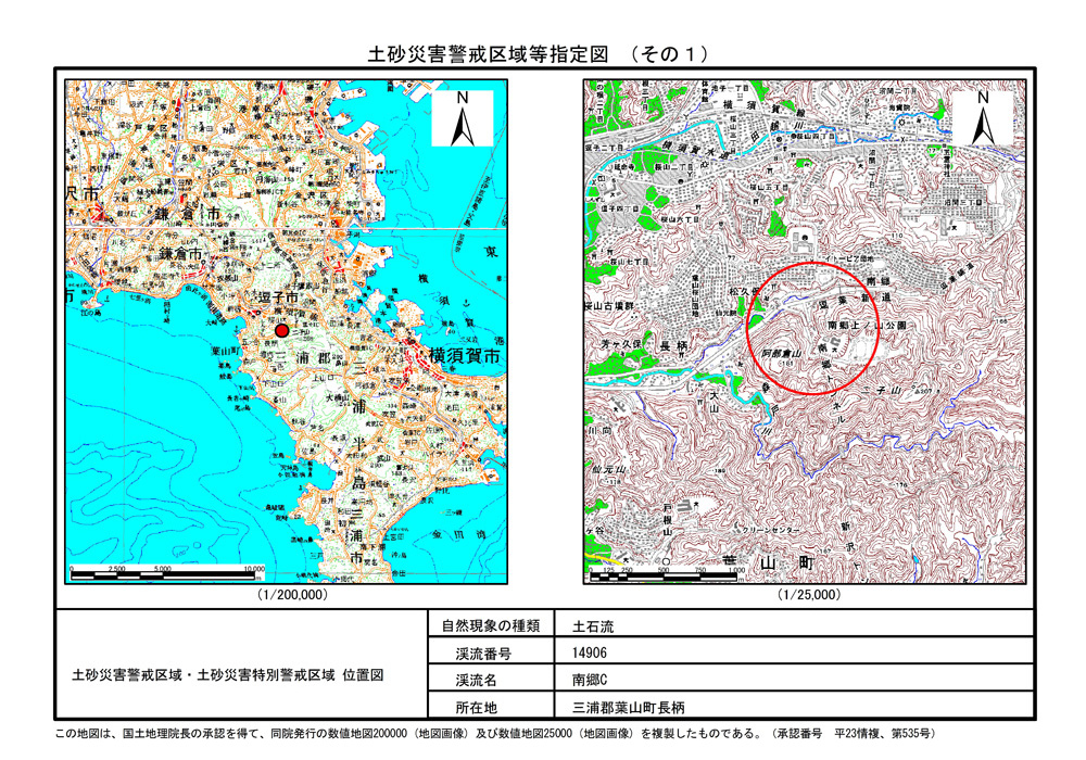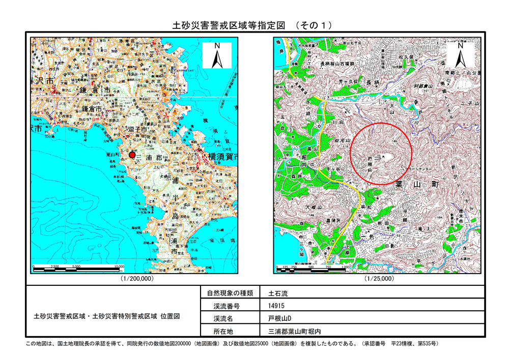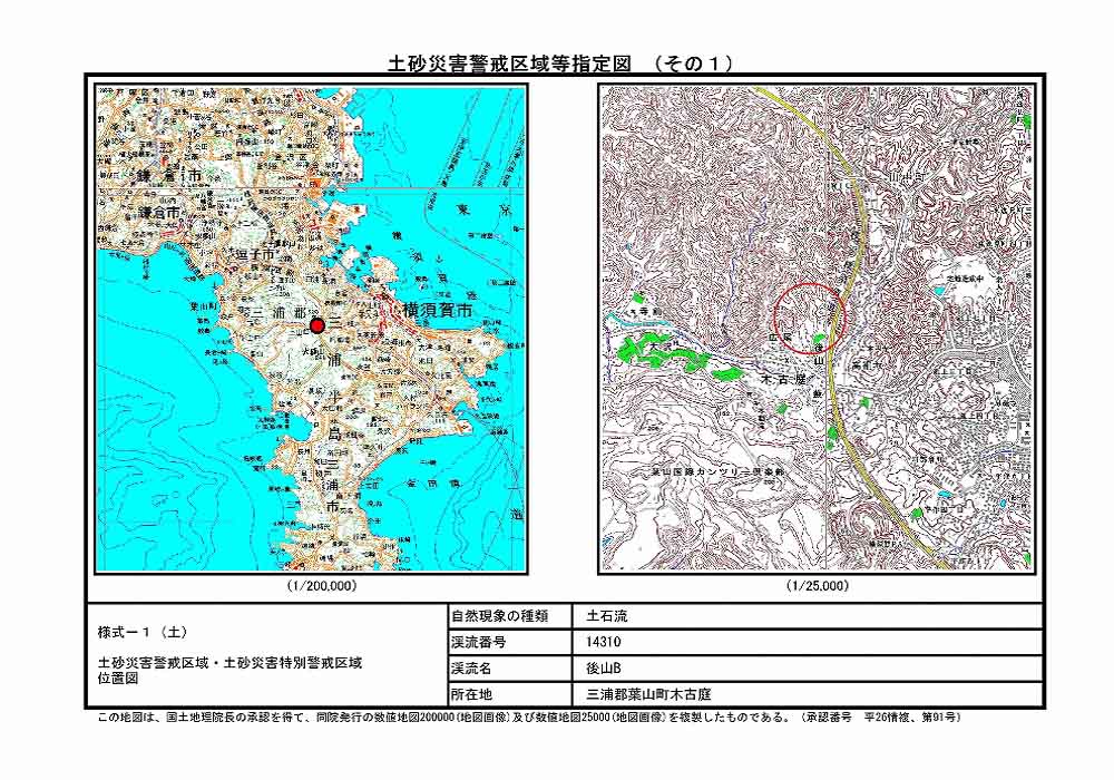 三浦郡葉山町木古庭、横須賀市山中町及び池上7丁目 |