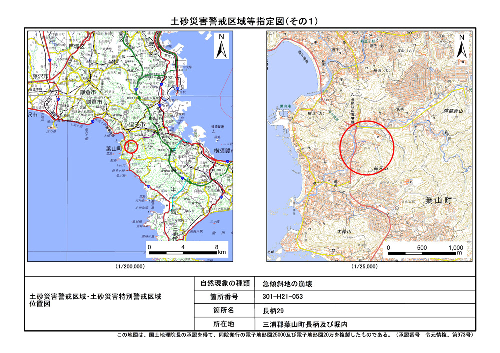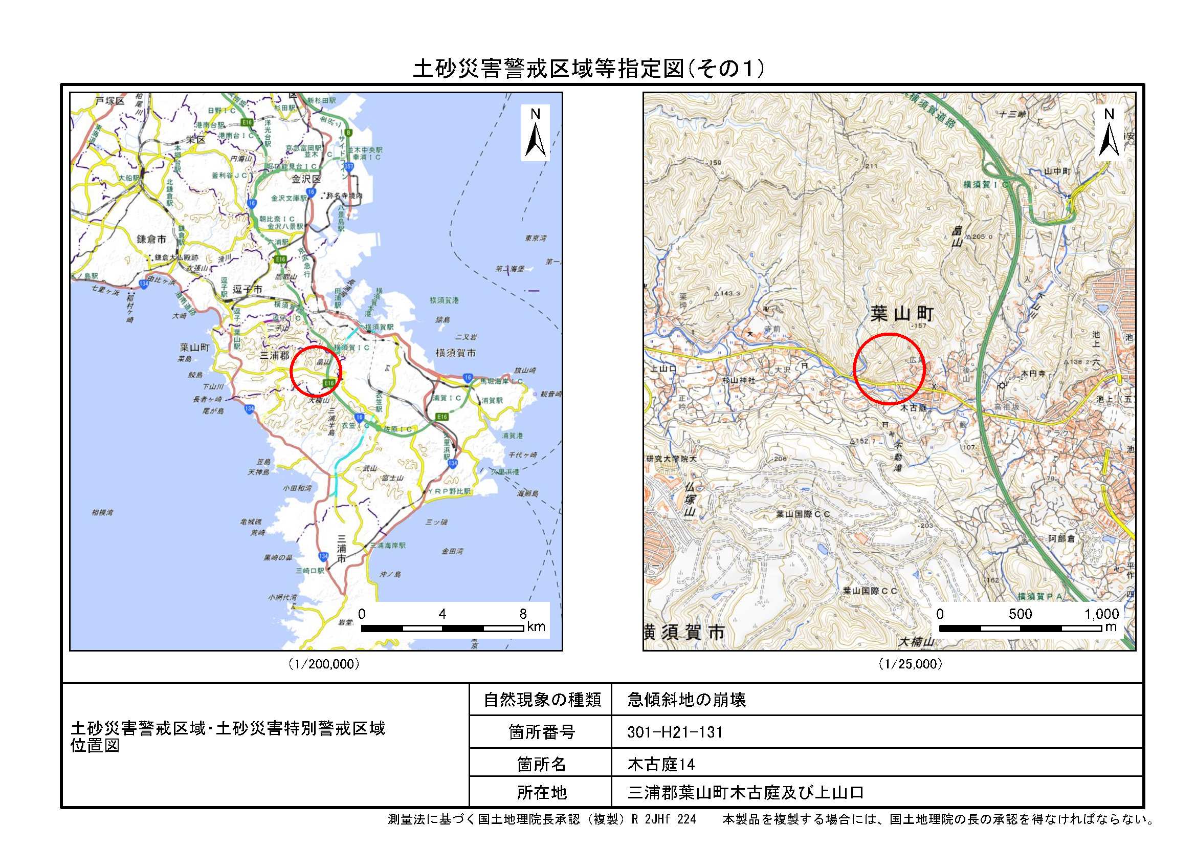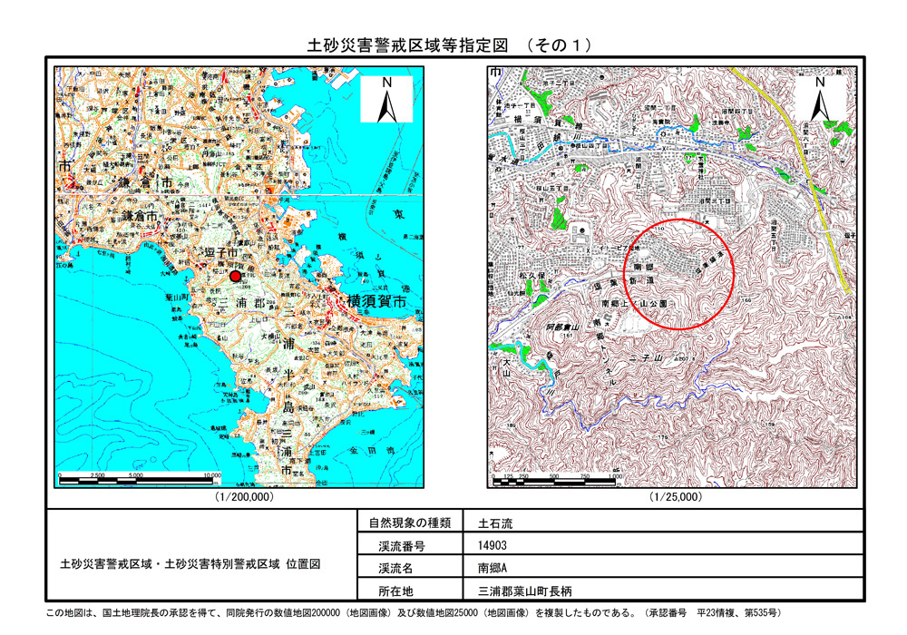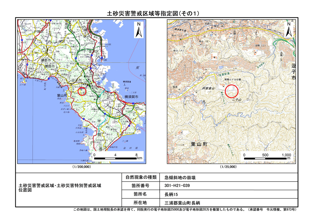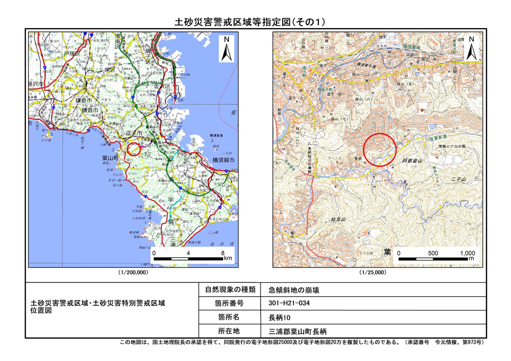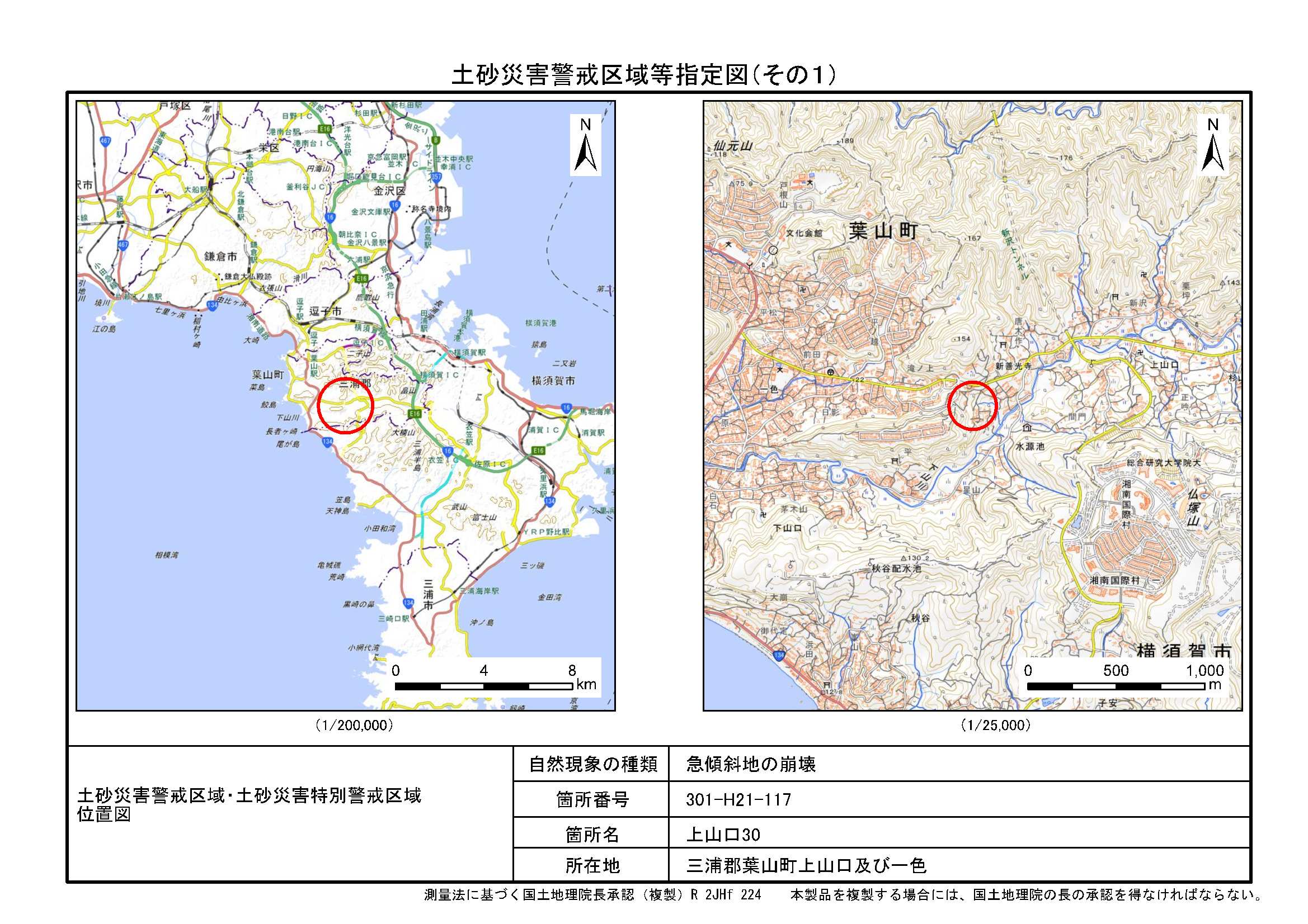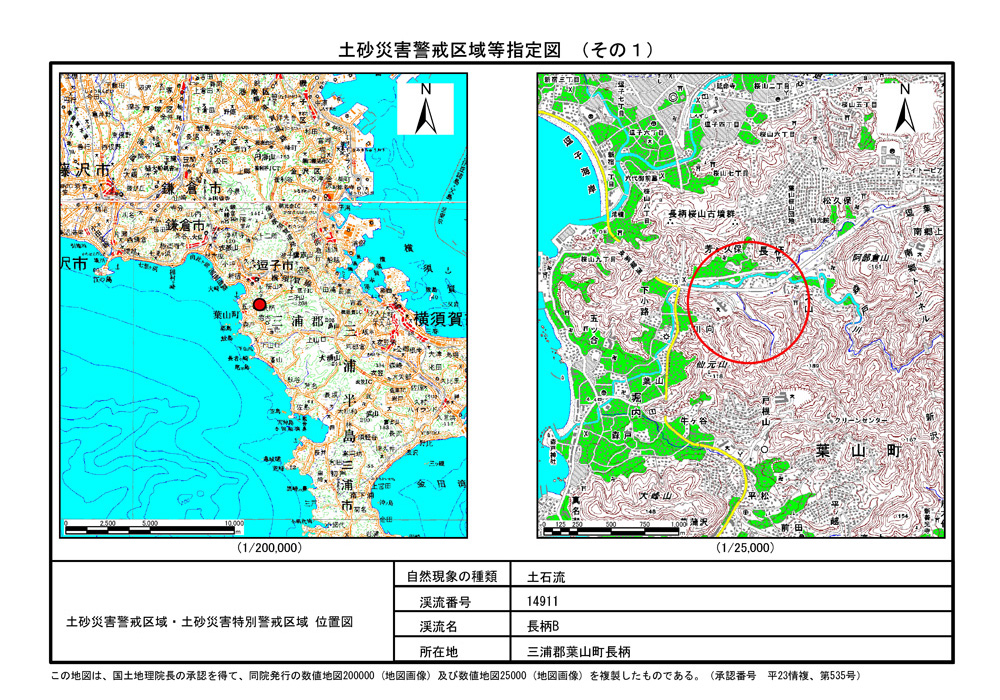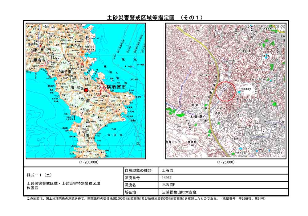 三浦郡葉山町木古庭、横須賀市山中町及び池上7丁目 |