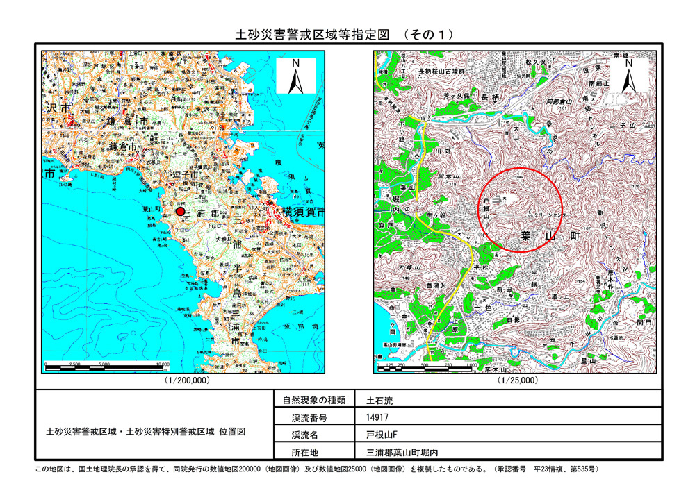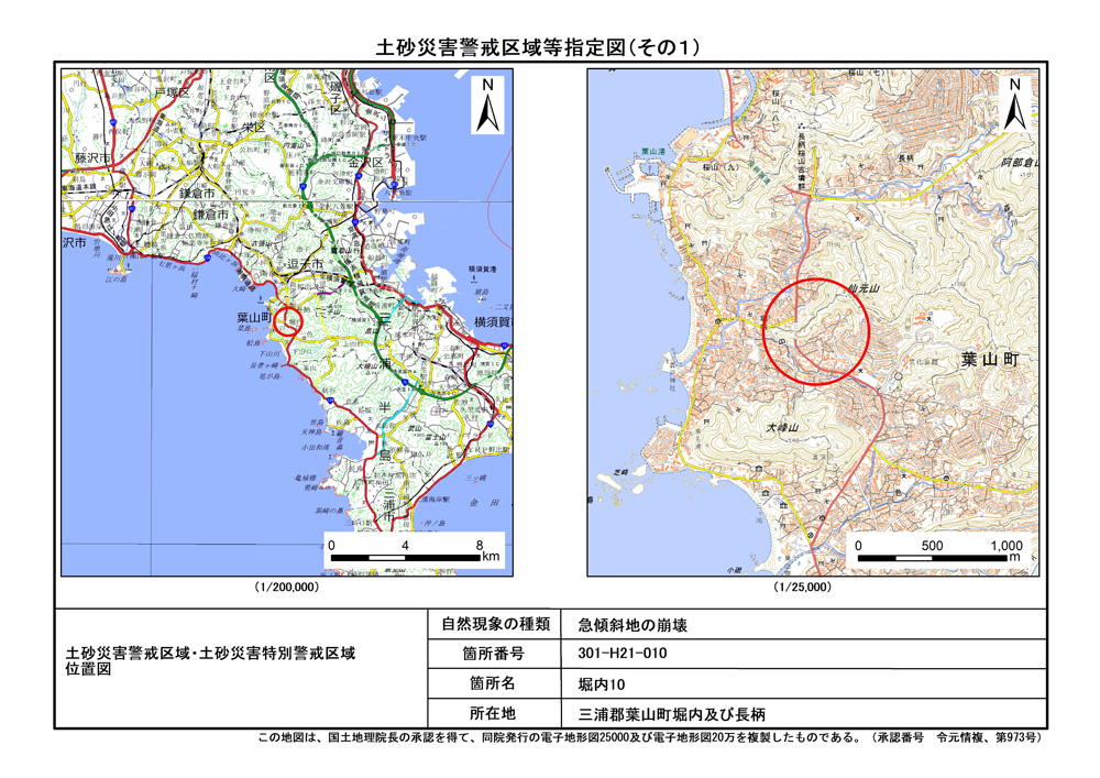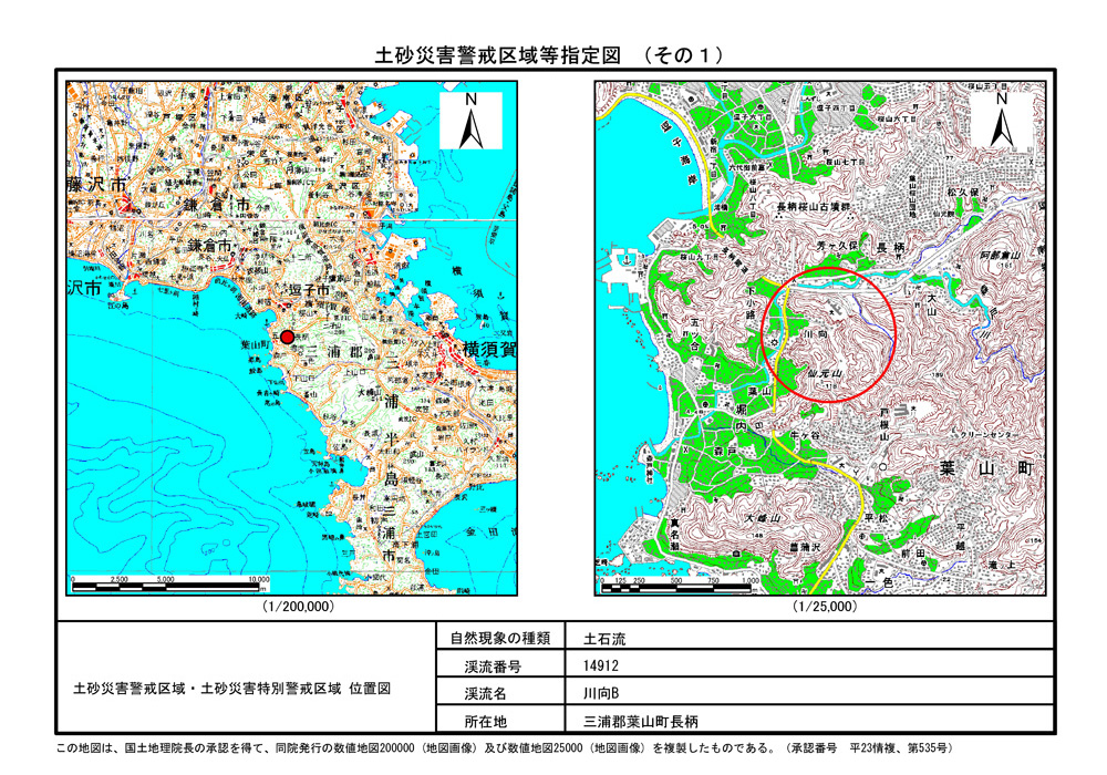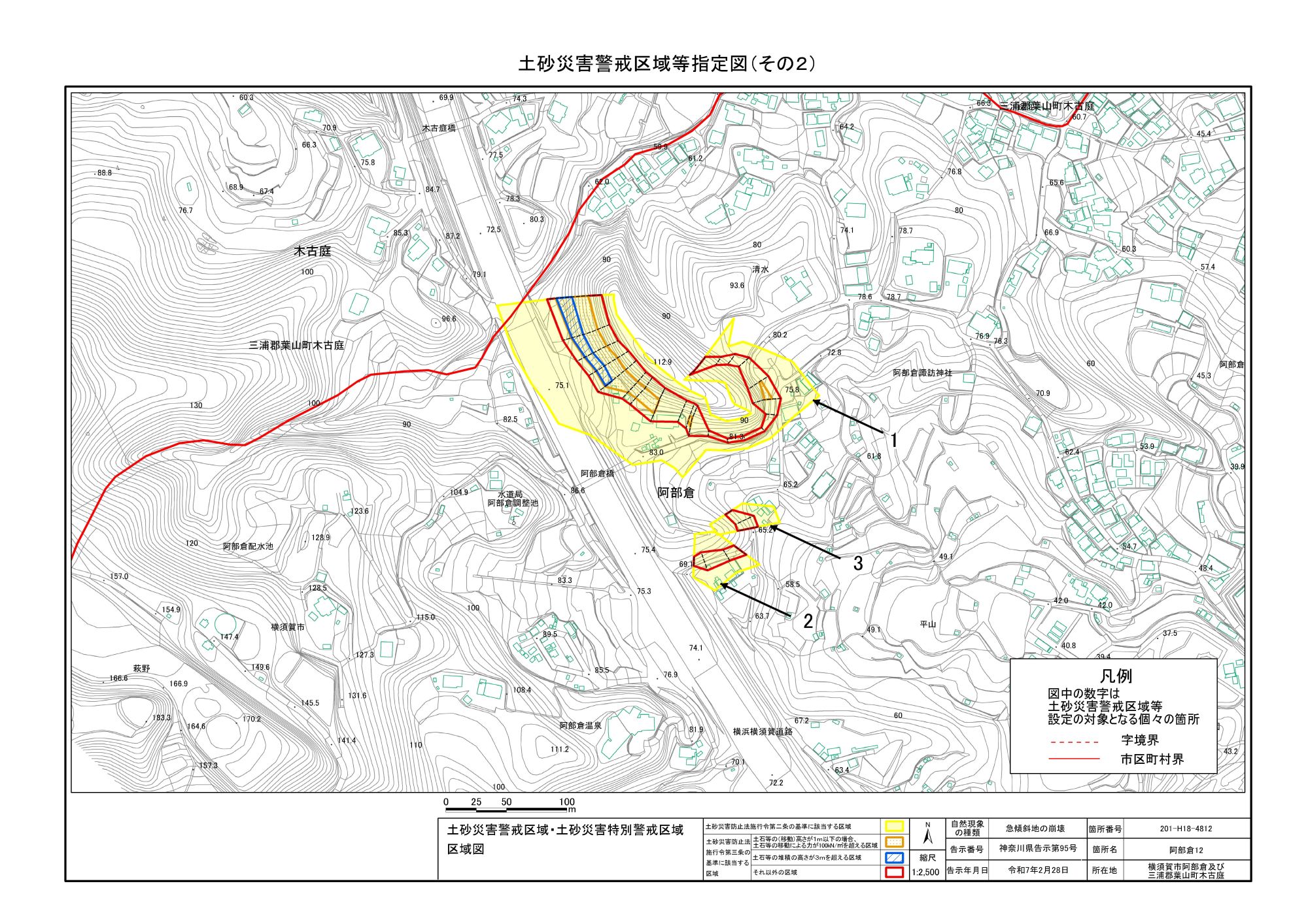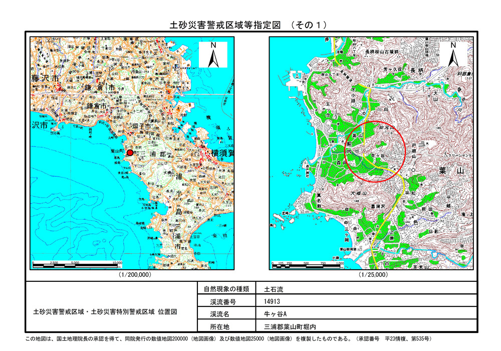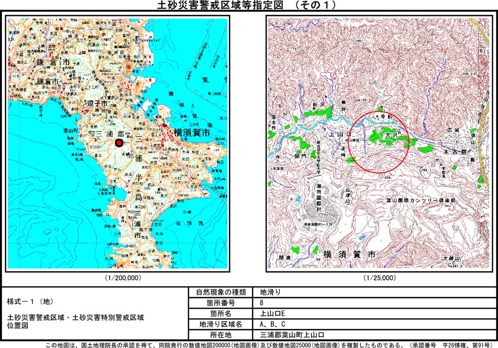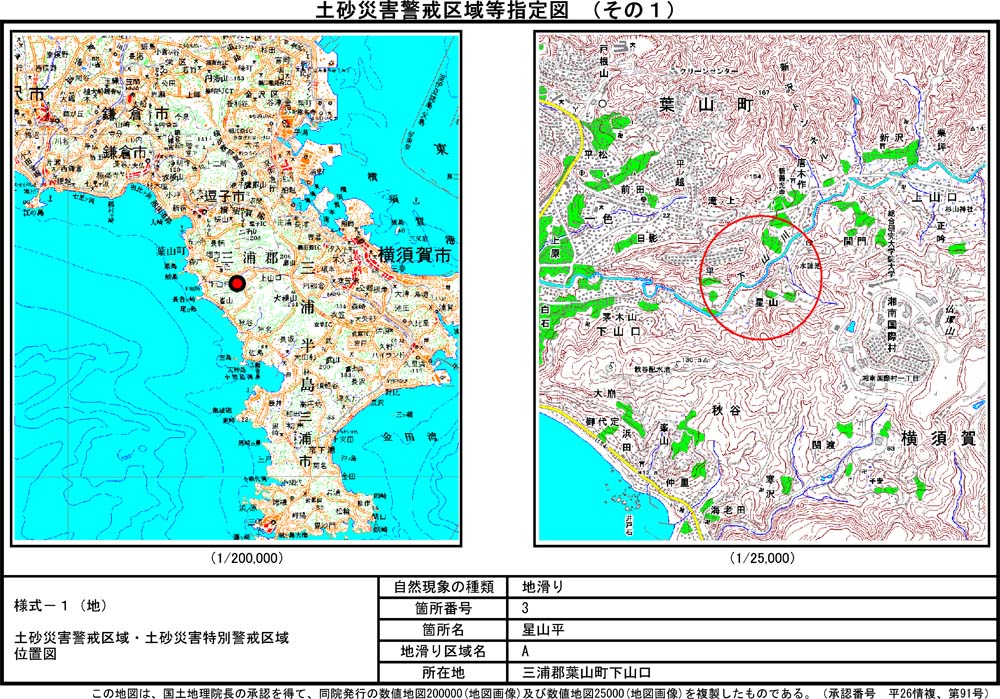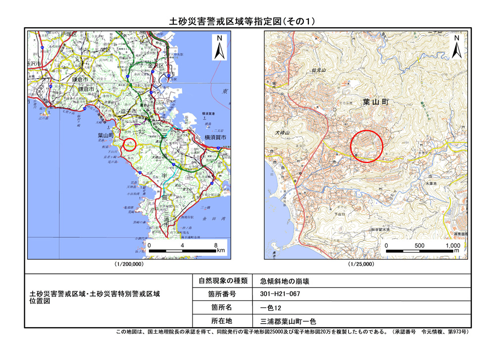 三浦郡葉山町木古庭、横須賀市山中町及び池上7丁目 |