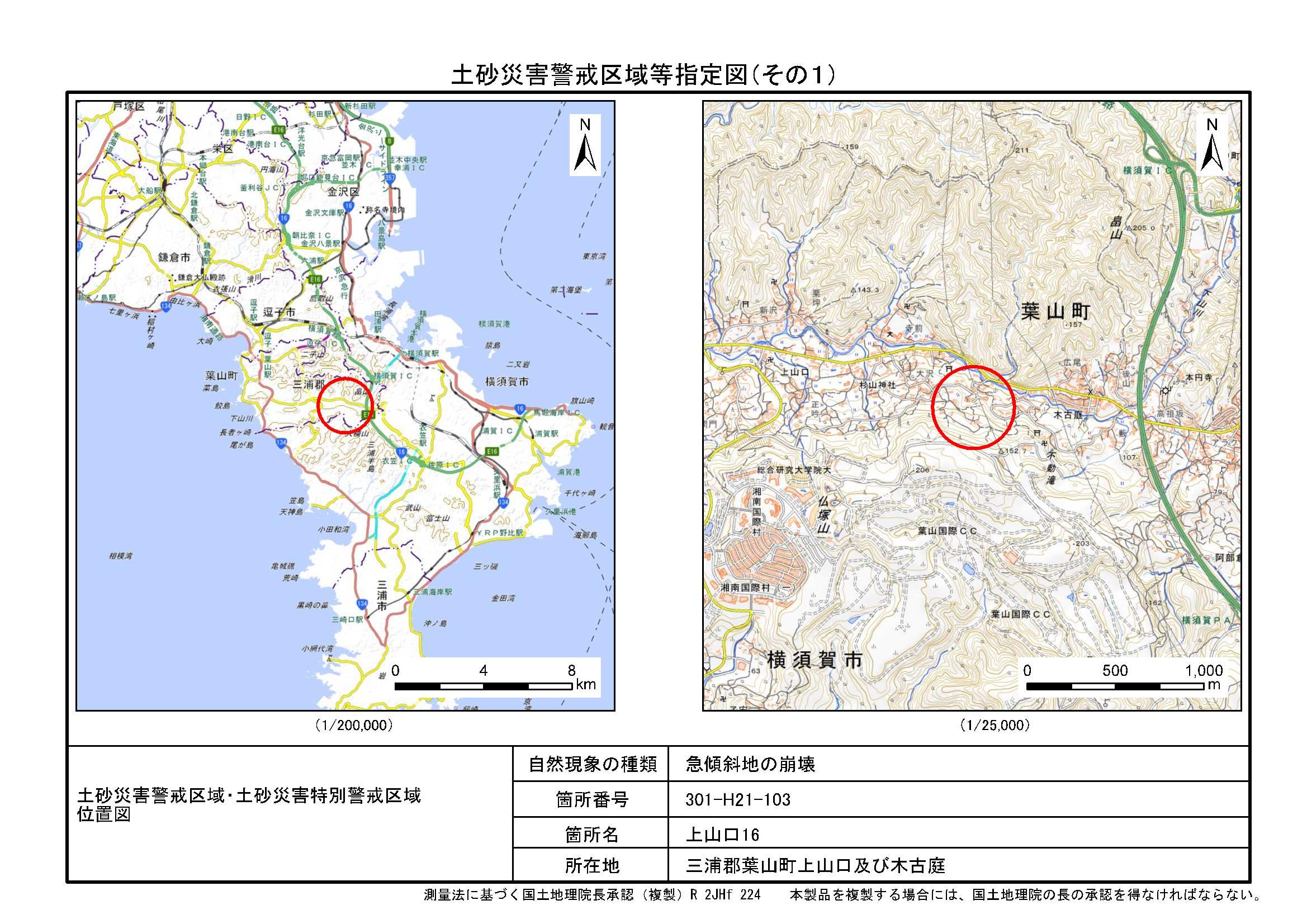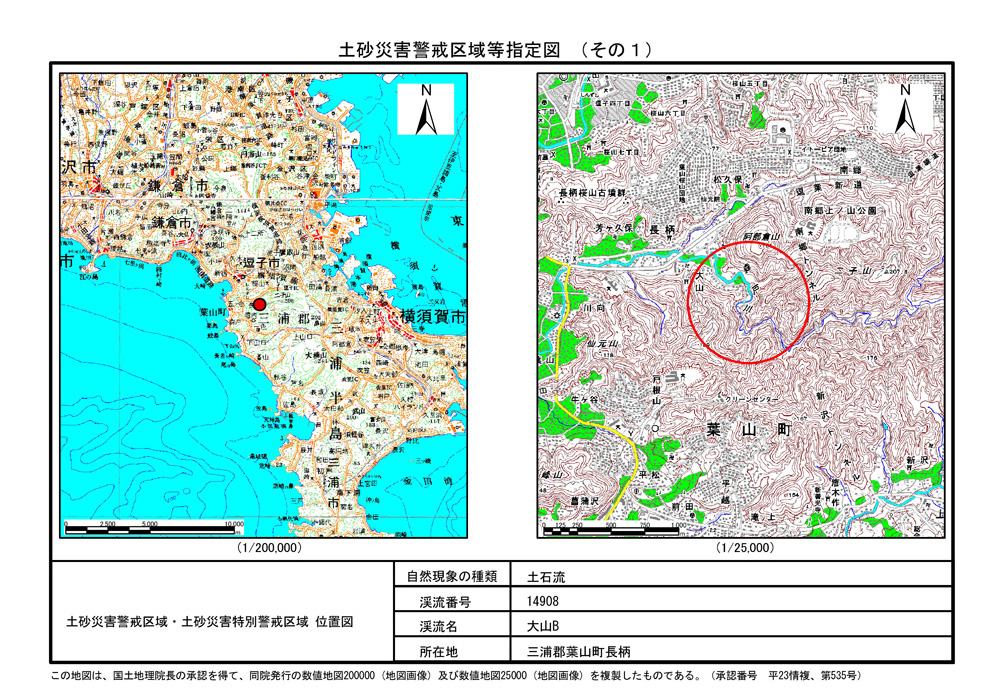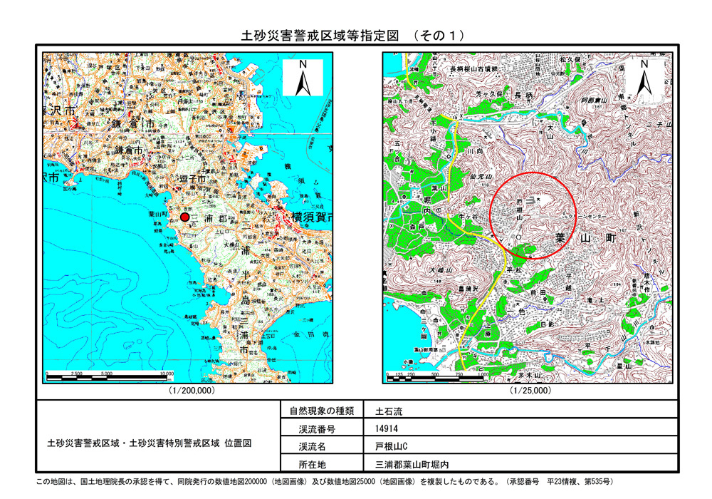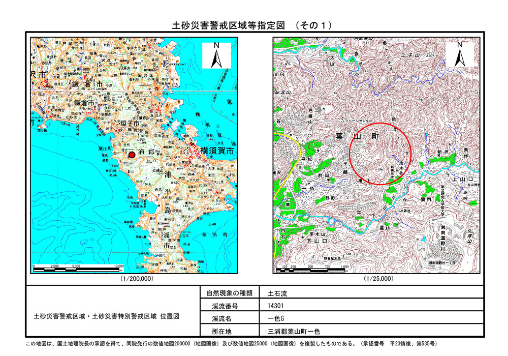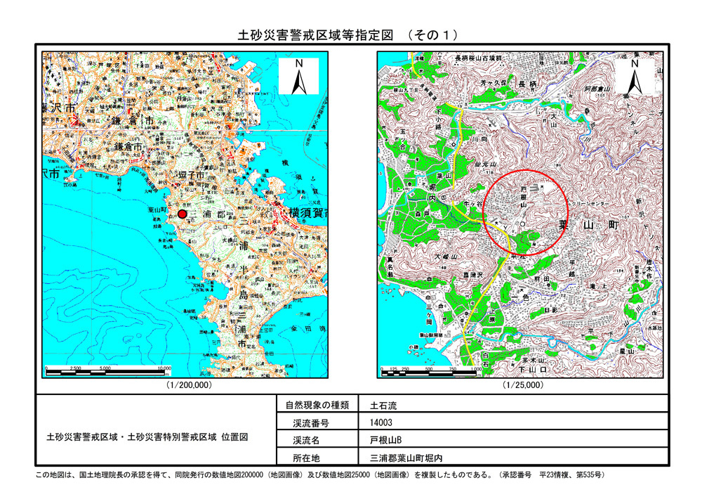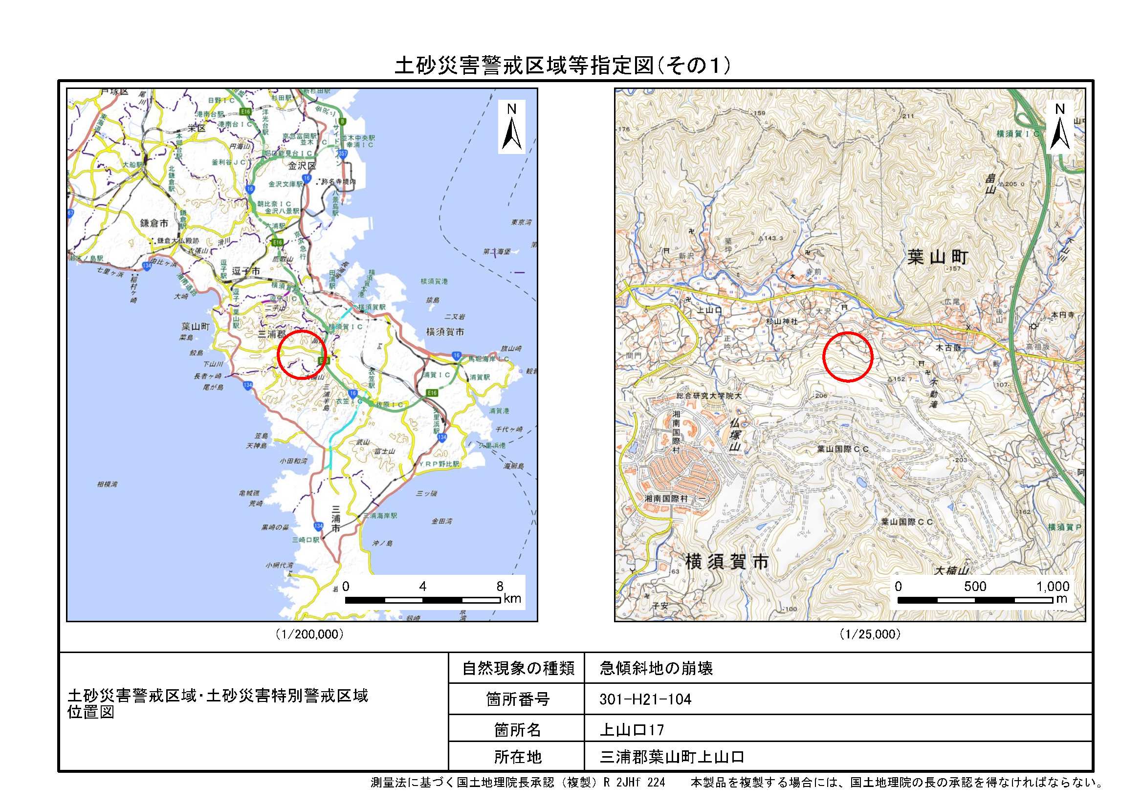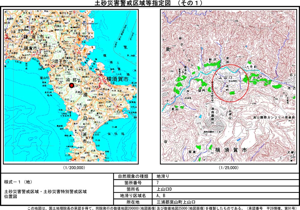三浦郡葉山町木古庭、横須賀市山中町及び池上7丁目 |