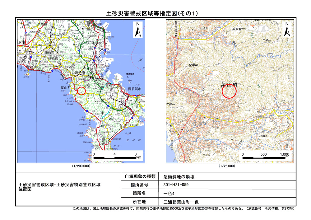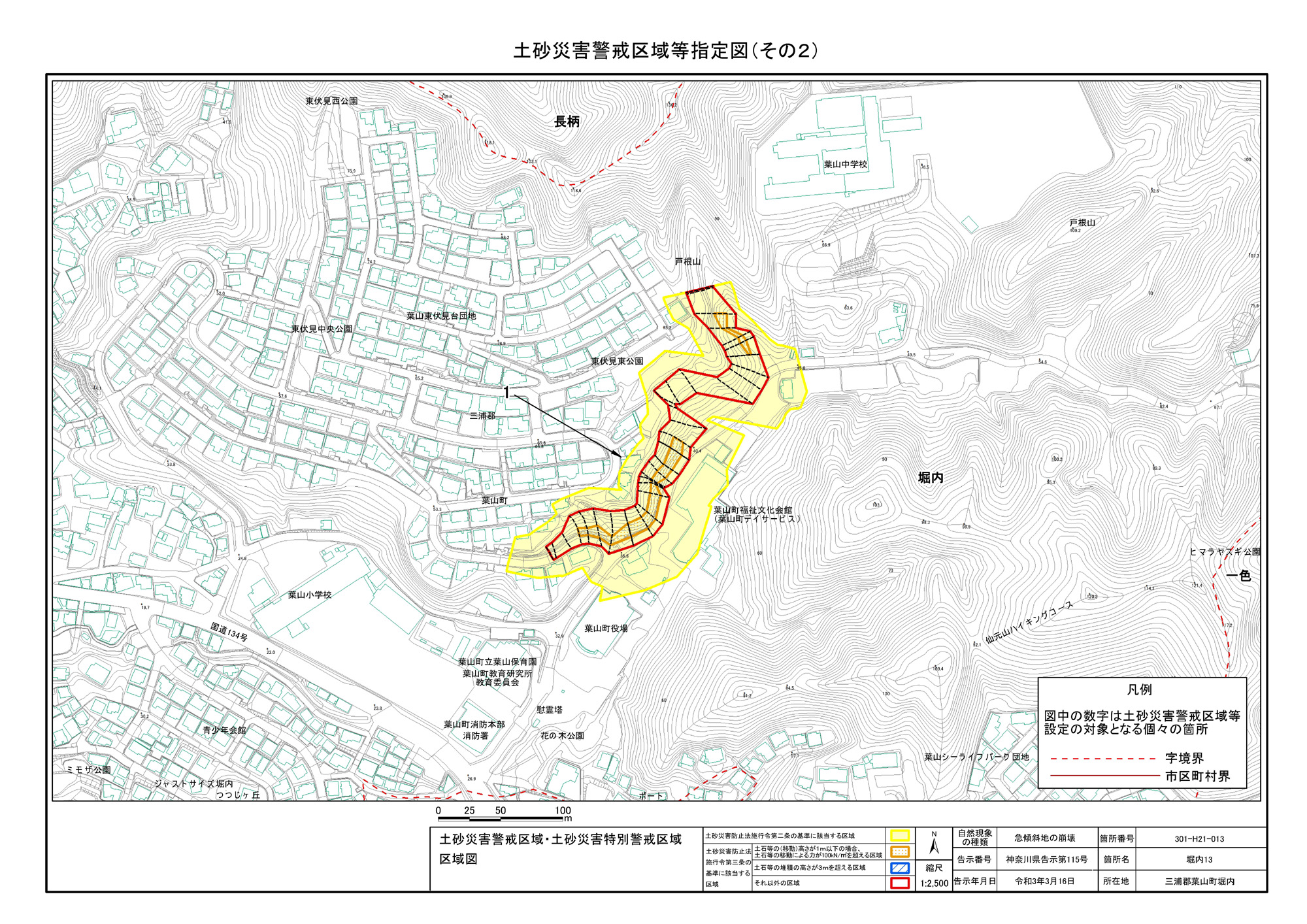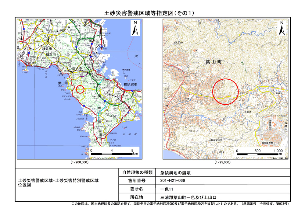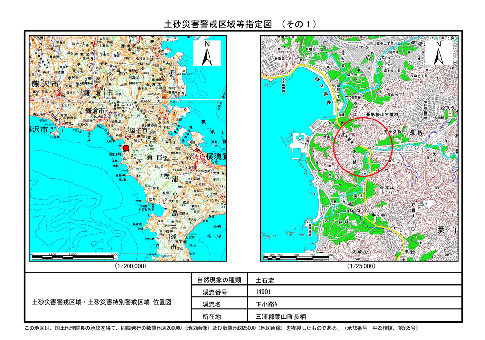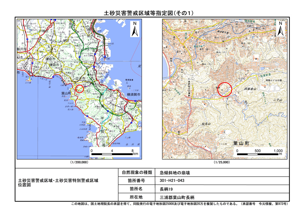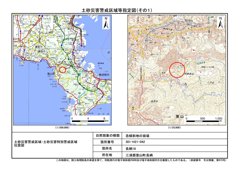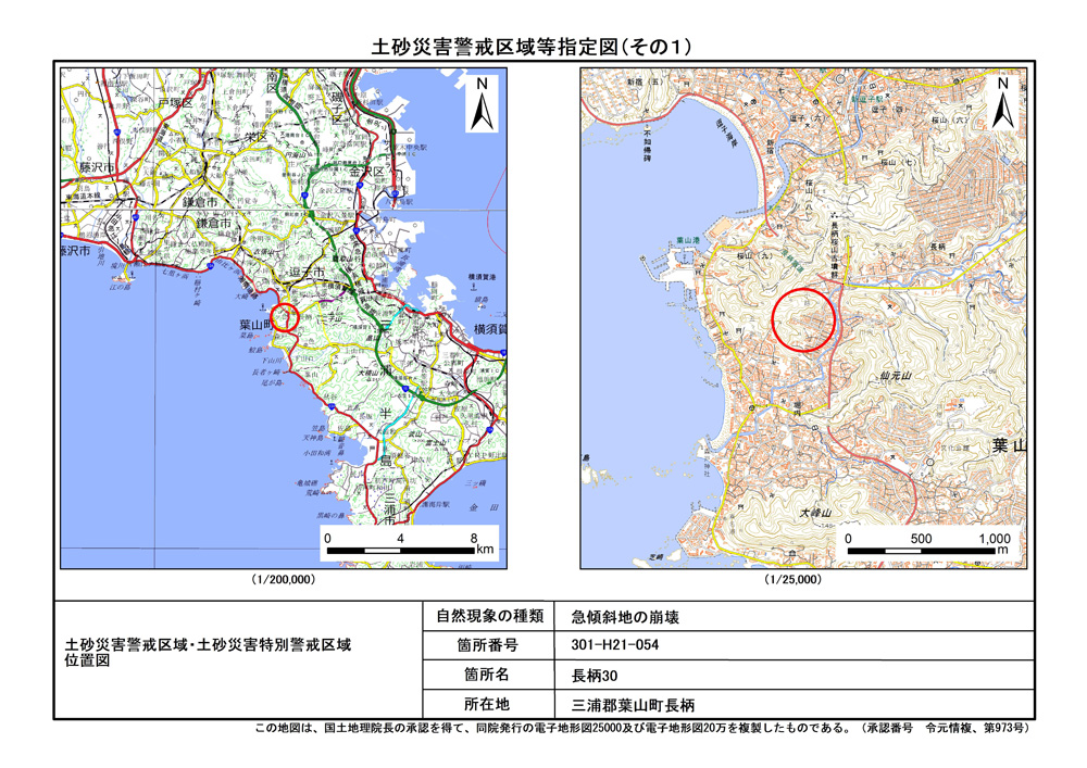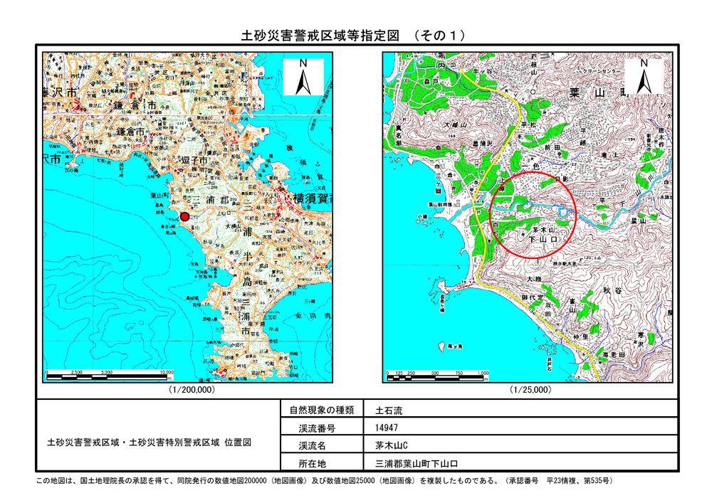 三浦郡葉山町木古庭、横須賀市山中町及び池上7丁目 |