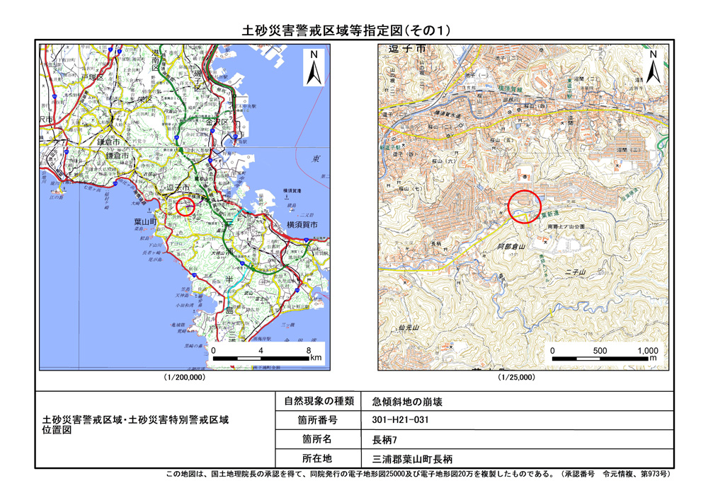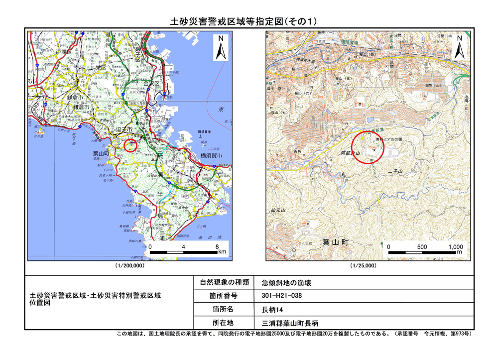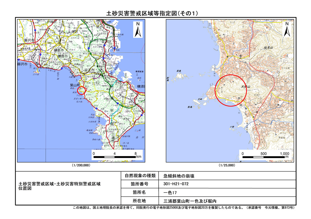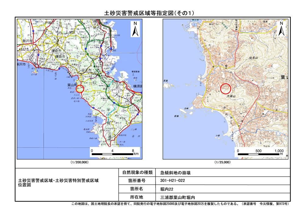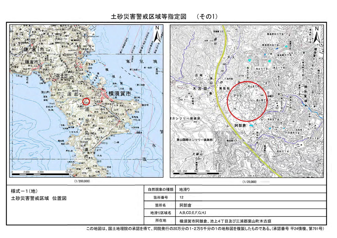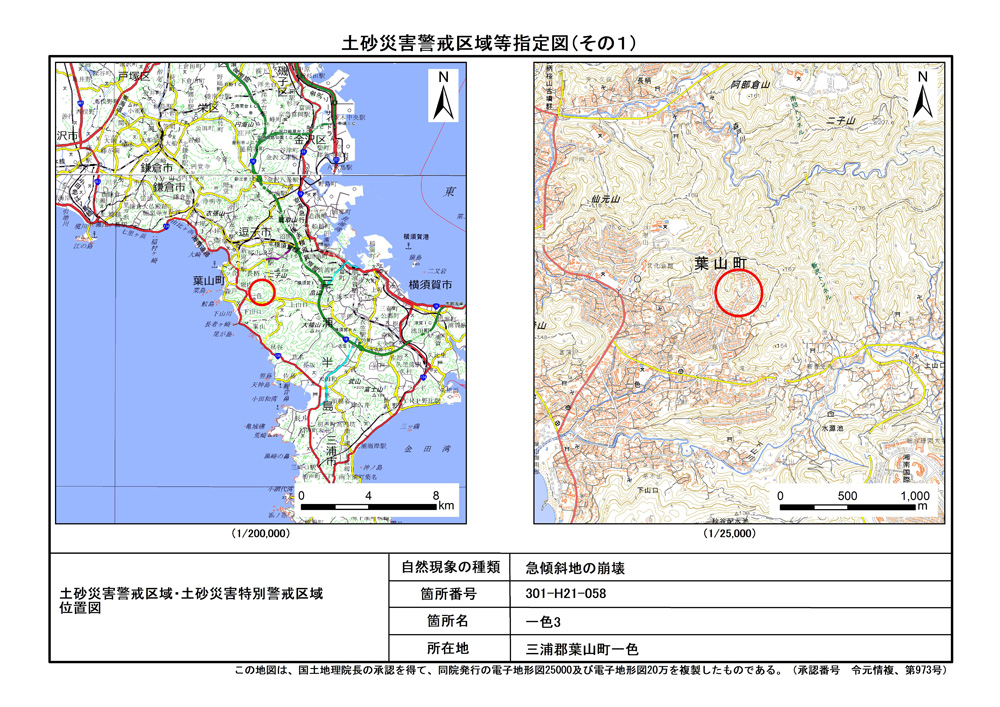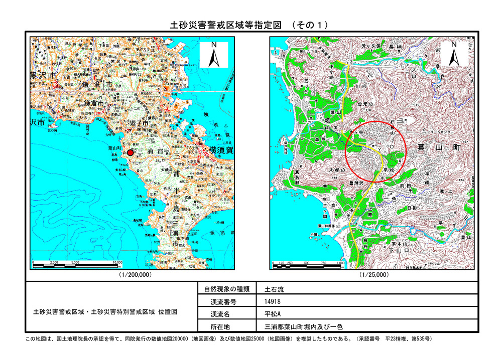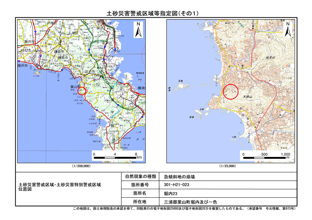 三浦郡葉山町木古庭、横須賀市山中町及び池上7丁目 |