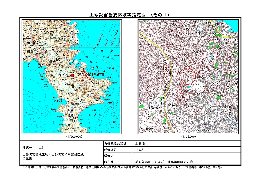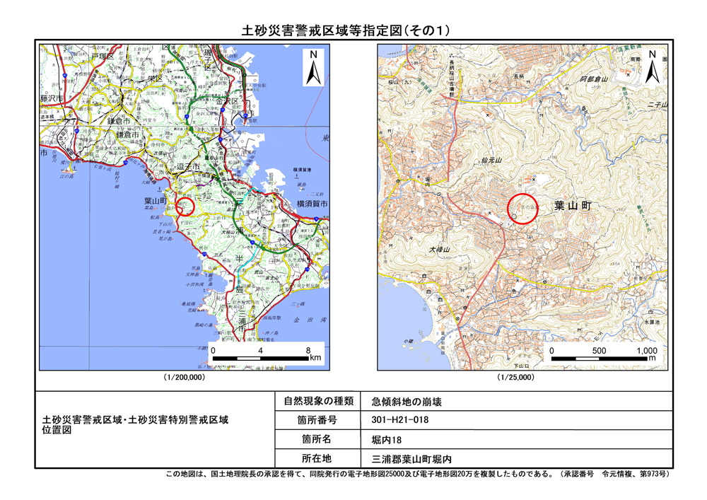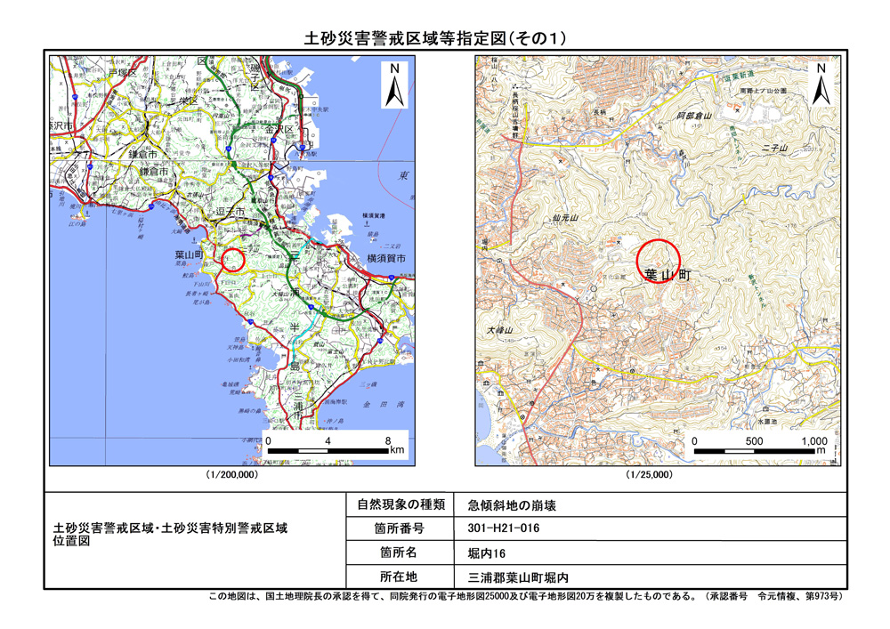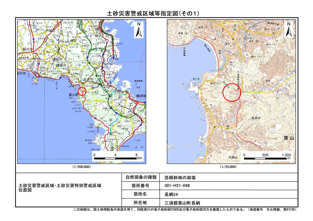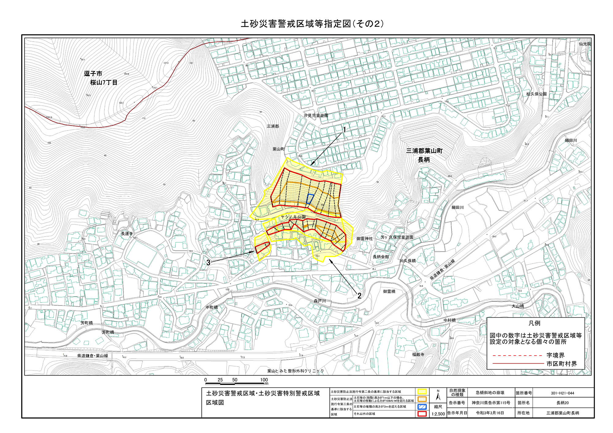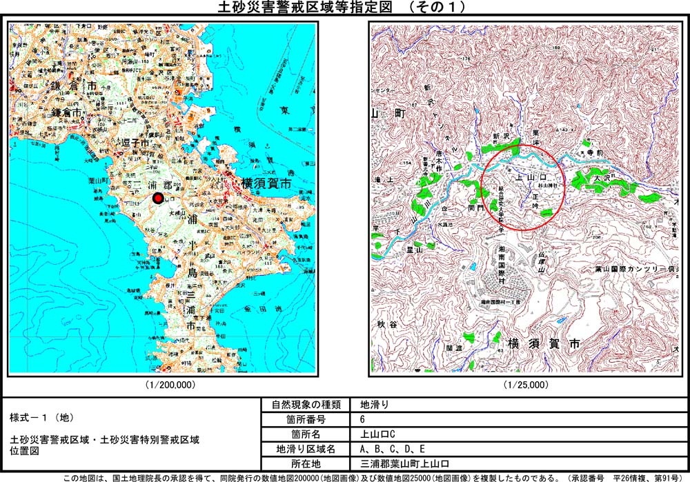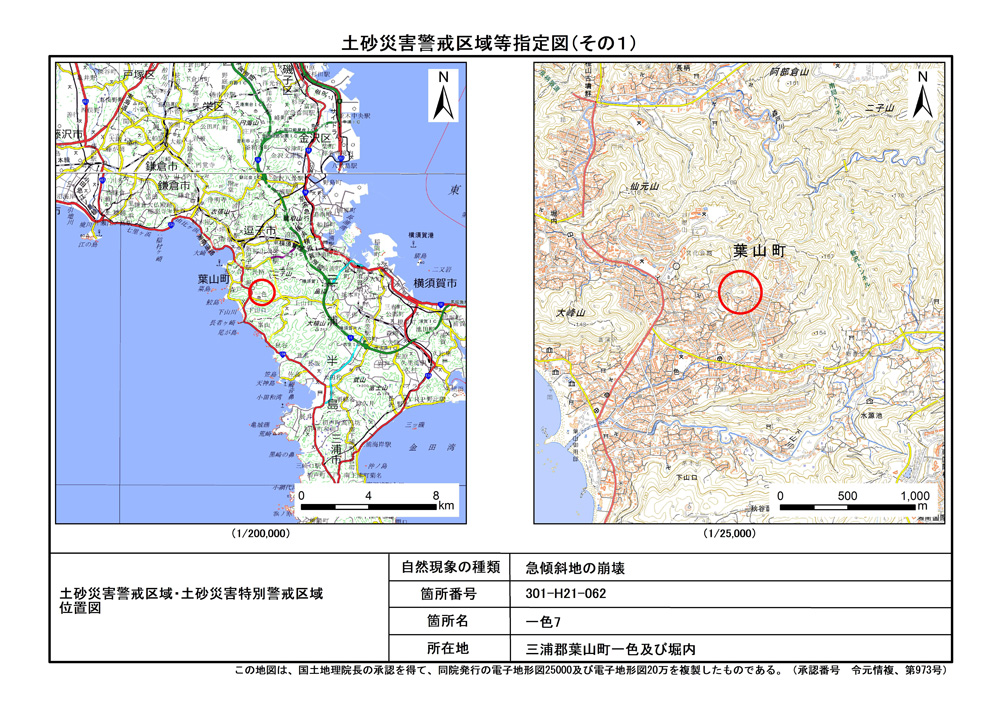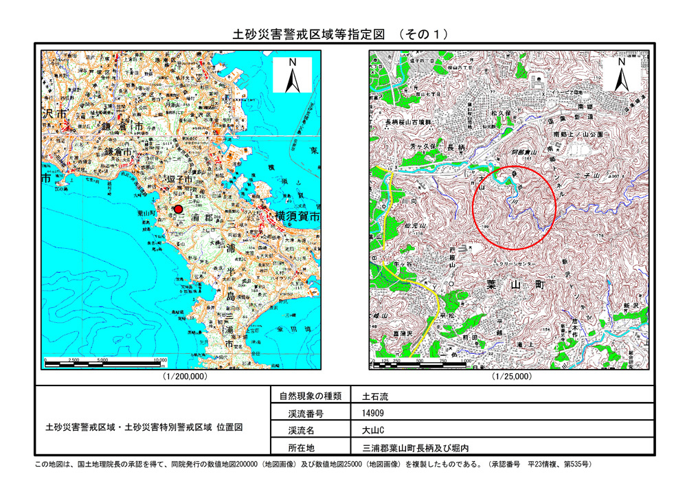 三浦郡葉山町木古庭、横須賀市山中町及び池上7丁目 |