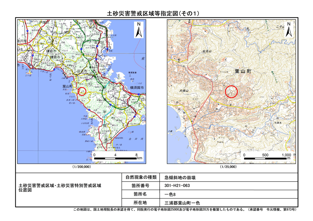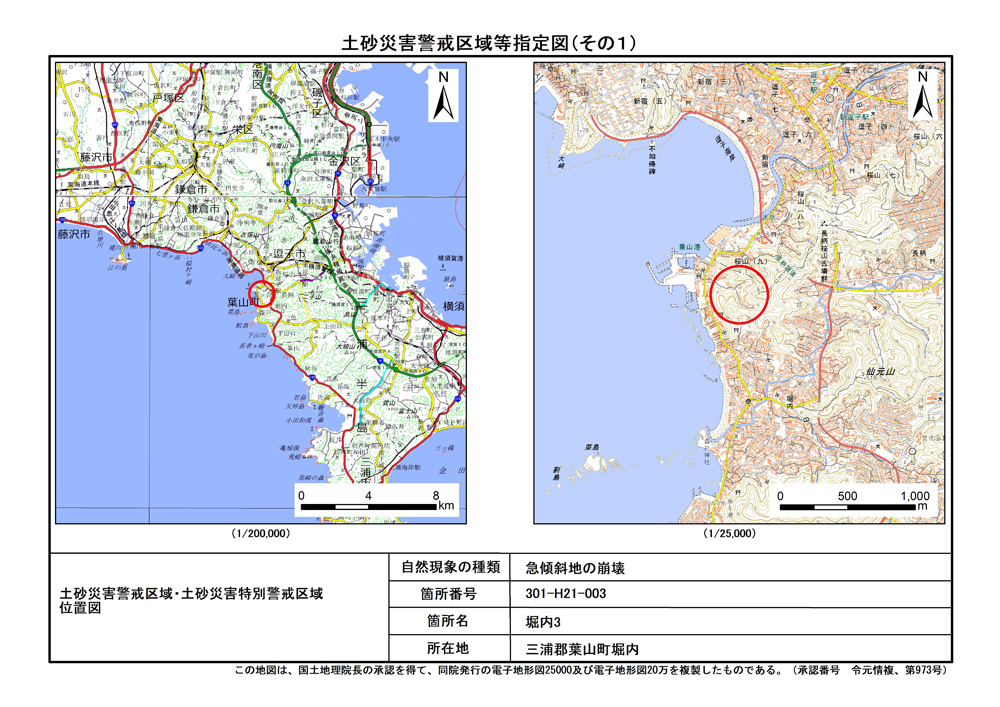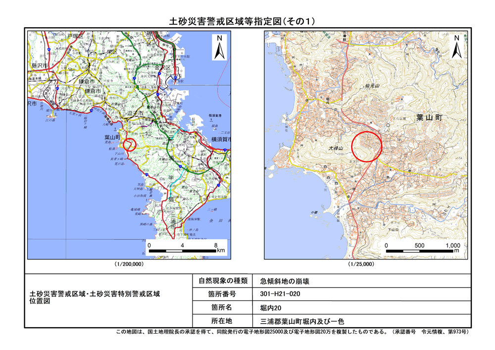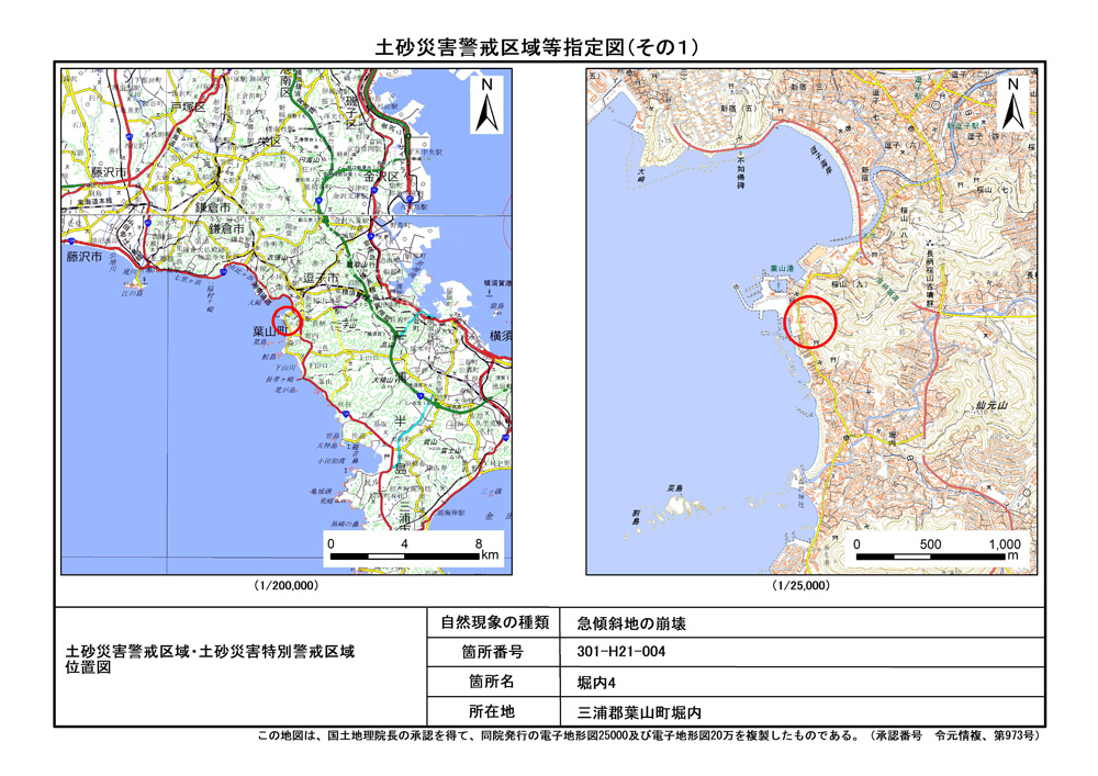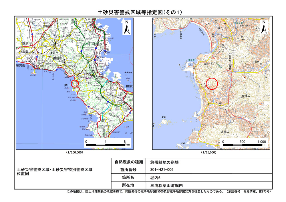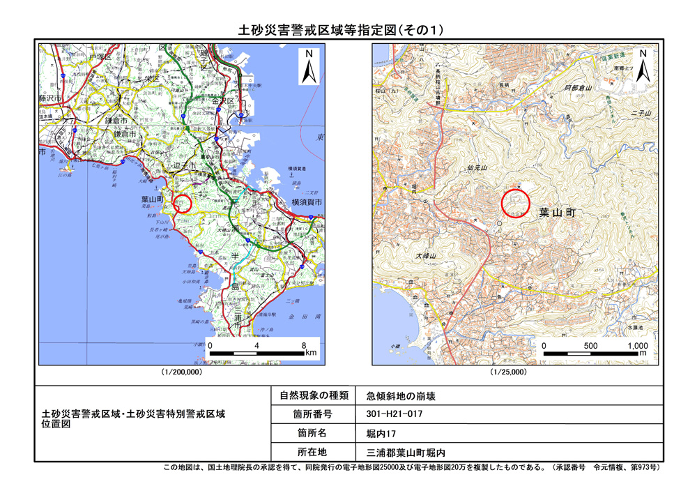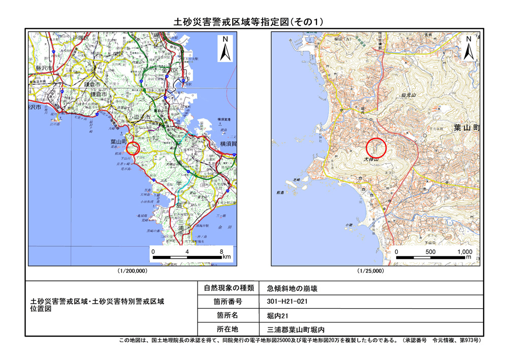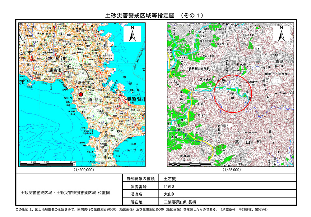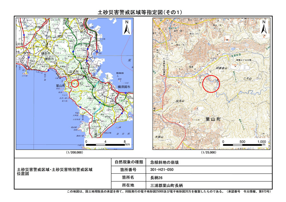 三浦郡葉山町木古庭、横須賀市山中町及び池上7丁目 |